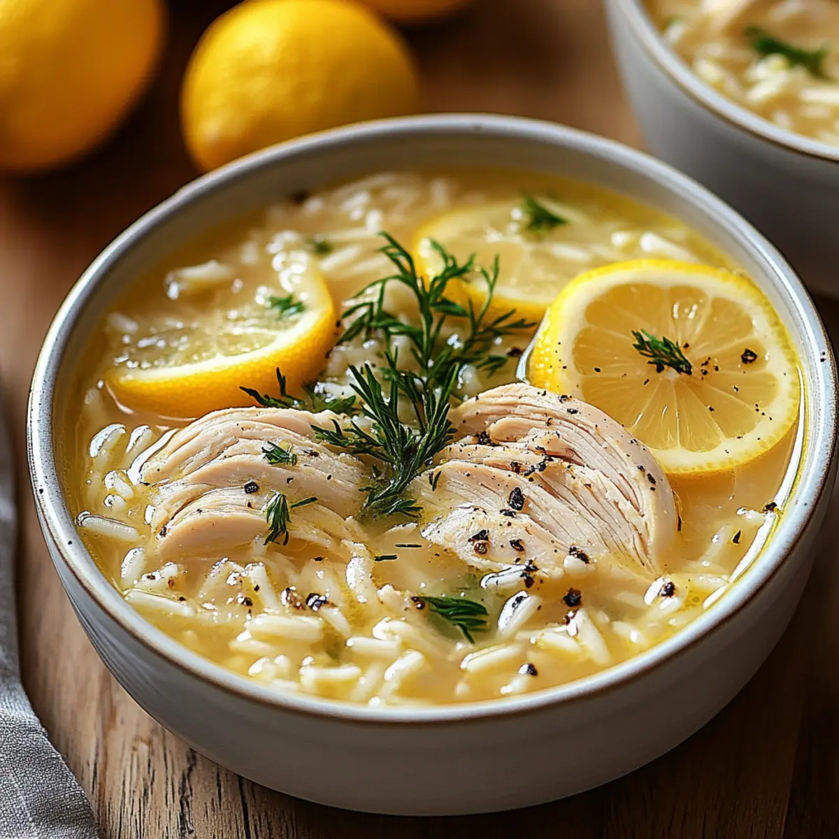 Jump to Recipe Print RecipeAs the sun begins to set on a chilly evening, the craving for something warm and fulfilling hits me. That’s when I turn to my favorite recipe for Greek Lemon Chicken Soup. This cozy bowl of goodness embraces you with tender chicken, zesty lemon, and a luxurious texture that comes from a delicate egg-lemon blend. Not only is this soup incredibly quick to prepare, but it also makes for fantastic leftovers, meaning you can enjoy the comfort of this dish over and over again without any fuss. Perfect for those evenings when you just need a little extra warmth and joy, this one-pot comfort classic is a culinary hug on a plate. Are you ready to whip up your own delicious batch? Why is Greek Lemon Chicken Soup a Must-Try? Comforting Warmth: This soup embodies the essence of coziness, wrapping you in a warm embrace with every spoonful. Bright & Zesty Flavor: The fresh lemon juice cuts through the richness, creating a perfect balance that dances on your palate. One-Pot Wonder: Simplify your cooking process with this easy-to-follow recipe that minimizes cleanup while maximizing flavor. Hearty & Nourishing: Packed with protein from chicken and eggs, this dish provides a wholesome meal that leaves you feeling satisfied and energized. Versatile Ingredients: Feel free to adapt the recipe with your favorite veggies or grains, ensuring it caters to your personal taste and dietary needs. Embrace the spirit of Mediterranean cooking with this delightful Greek Lemon Chicken Soup that’s perfect for chilly days. For more delicious ideas, check out our collection of comforting soups that are sure to warm your soul! Greek Lemon Chicken Soup Ingredients For the Soup Base • Chicken Broth – Use low-sodium broth for a healthier option that still delivers great flavor. • Fresh Lemon Juice – Provides essential tang; substitute with bottled juice if fresh is unavailable. • Shredded Carrots – Adds sweetness and color; diced bell peppers can be used for a different flavor twist. • Finely Chopped Onion – Enhances savory depth; yellow or white onions work best. • Finely Chopped Celery – Contributes crunch and aroma; leeks can be a sweeter alternative. • Chicken Soup Base – Intensifies chicken flavor; chicken bouillon cubes can replace it (watch for gluten). • Ground White Pepper – Adds mild heat; use regular black pepper as a substitute. For Thickening and Creaminess • Margarine – Used for thickening; swap with butter or a dairy-free alternative if preferred. • All-Purpose Flour – Thickens the soup; cornstarch can work as a gluten-free alternative. • Egg Yolks – Create a luscious creaminess; for a dairy-free option, simply skip the yolks and add more flour. For Hearty Elements • Cooked White Rice – Adds heartiness; quinoa or small pasta can make a nice swap. • Diced Cooked Chicken – Provides protein; consider using rotisserie chicken for quick prep or tofu for a vegetarian option. For Garnishing • Lemon Slices – Adds gorgeous presentation and extra citrus aroma; highly recommended for that pop of freshness. Creating a cozy batch of Greek Lemon Chicken Soup is just a few ingredients away! Happy cooking! Step‑by‑Step Instructions for Greek Lemon Chicken Soup Step 1: Prepare Base In a large pot, combine the chicken broth, fresh lemon juice, shredded carrots, finely chopped onion, and finely chopped celery. Add in the chicken soup base and ground white pepper for seasoning. Bring the mixture to a boil over medium-high heat, then reduce to a simmer. Let it cook for 15-20 minutes, until the vegetables are tender and aromatic. Step 2: Thicken Soup While the soup is simmering, take a small bowl and blend the margarine with the all-purpose flour to form a smooth paste. Gradually stir this paste into the simmering soup, ensuring it dissolves fully. Continue to simmer and stir the soup for 8-10 minutes, until it thickens to a velvety consistency that clings to a spoon. Step 3: Temper Eggs In a separate bowl, beat the egg yolks until they turn a pale color. Slowly whisk in a few ladles of the hot soup to temper the eggs, which prevents curdling. Once combined, return the egg mixture to the pot. Stir constantly while gently heating the soup through—avoid boiling to maintain that creamy texture you desire in your Greek Lemon Chicken Soup. Step 4: Finalize Soup Mix in the cooked white rice and diced cooked chicken, allowing them to warm through on low heat. Stir periodically to ensure even distribution and prevent sticking. This step adds heartiness and flavor, making every spoonful of your Greek Lemon Chicken Soup substantial and satisfying. Step 5: Serve Ladle the warm and inviting soup into bowls, garnishing each serving with fresh lemon slices for a pop of color and tang. This final touch not only elevates the presentation but also enhances the zesty aroma, inviting family and friends to savor this comforting dish. Storage Tips for Greek Lemon Chicken Soup Fridge: Store your Greek Lemon Chicken Soup in an airtight container for up to 4 days. Allow it to cool completely before refrigerating to maintain freshness. Freezer: This comforting soup can be frozen in airtight containers for up to 3 months. To prevent freezer burn, ensure containers are tightly sealed. Reheating: When ready to enjoy leftovers, thaw frozen soup in the fridge overnight. Reheat on the stove over low heat, stirring occasionally until heated through. Avoid boiling to retain creaminess. Portioning: For easy meals, consider freezing individual servings. This way, you can enjoy a warm bowl of soup whenever you need a cozy pick-me-up! Expert Tips for Greek Lemon Chicken Soup Perfect Egg Tempering: Whisk the egg yolks thoroughly with the hot broth to prevent curdling, ensuring a smooth and creamy texture in your Greek Lemon Chicken Soup. Avoiding Lumps: Regularly stir the soup after adding the thickening mixture. This helps to dissolve any potential lumps, resulting in an incredibly