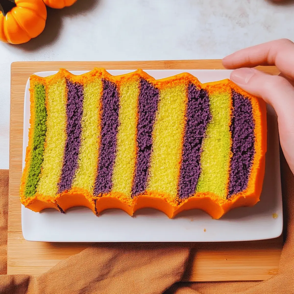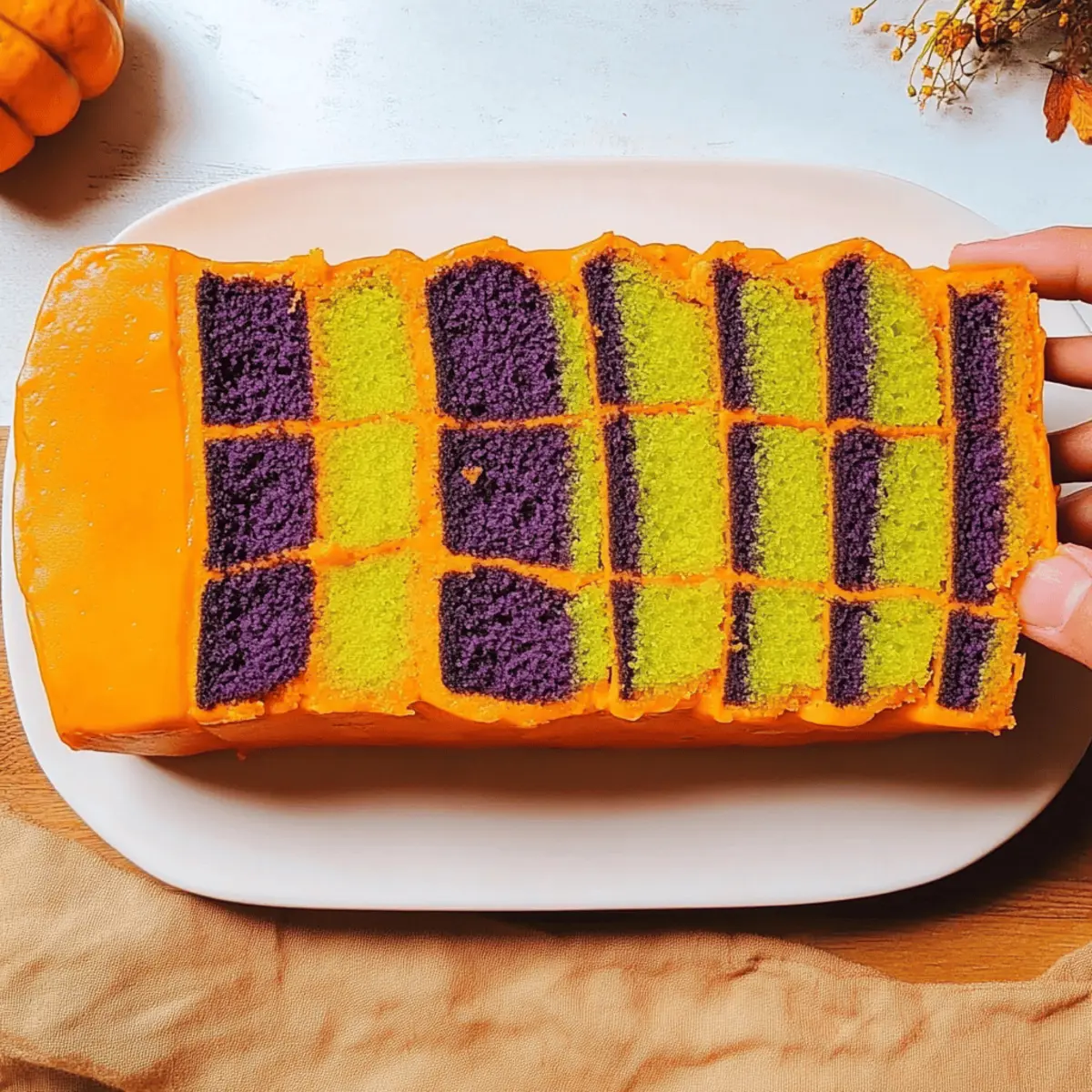 Jump to Recipe Print RecipeAs I scooped out the colors for my latest baking adventure, I couldn’t help but smile at the vibrant hues of the green and purple batter eagerly awaiting their turn in the oven. This Halloween Battenberg cake is a playful take on a classic British dessert, blending nutty almond flavors with a whimsical twist that’s perfect for any spooky gathering. Not only is it a visual masterpiece, elegantly enveloped in bright orange marzipan, but its make-ahead charm means you can create this show-stopping treat without the last-minute rush. So, whether you’re looking to impress guests or simply treat yourself, this cake promises a fun baking experience and a delightful taste journey. Curious to see how to conjure up this festive creation? Let’s dive into the recipe! Why is this Halloween Battenberg cake special? Irresistible flavors: The nutty almond sponge perfectly balances the sweetness of the vibrant marzipan. Visually stunning: Dazzling green and purple layers peeking through the bright orange, this cake is guaranteed to be a conversation starter at any Halloween gathering. Make-ahead magic: Prepare it in advance and store it easily, making your festivities stress-free. Fun for everyone: Kids and adults alike will be delighted by this whimsical spin on a classic dessert. Easy to customize: Change the colors for any occasion, like festive reds and greens for Christmas or soft pastels for Easter. Explore more holiday ideas with our Fun Holiday Desserts for inspiration! Halloween Battenberg Ingredients For the Batter Unsalted Butter – Ensure it’s softened for easy blending and adds moisture to the cake. Caster Sugar – Sweetens the cake while helping achieve a light and fluffy sponge. Medium Eggs – Lightly beaten to provide structure and bind the ingredients together. Self-Raising Flour – Essential for giving the sponge its delightful rise. Ground Almonds – Contributes a nutty flavor and enhances the cake’s moistness. Almond Essence – Intensifies the almond flavor; vanilla can be used as a substitute if desired. For the Colors Green and Purple Food Colouring Pastes (Sugarflair) – Use to achieve the desired vibrant hues in the battenberg layers. Orange Food Colouring Paste (Sugarflair) – Needed for creating the eye-catching marzipan layer. For the Layers Shredless Marmalade – Acts as a delicious spread for layering; heat and strain if using marmalade with shreds. Marzipan – Envelops the cake for an attractive finish and enhances the sweet flavor. Icing Sugar – For dusting, keeping everything neat and preventing sticking. Step‑by‑Step Instructions for Halloween Battenberg Step 1: Preheat and Prepare Start by preheating your oven to 350°F (175°C). While it warms, grease two 8-inch cake pans and line the bottoms with baking parchment. This ensures the Halloween Battenberg will release easily after baking. Keep your ingredients close; organization will make the process smoother as you move to the next steps! Step 2: Cream the Butter and Sugar In a mixing bowl, beat together 1 cup of softened unsalted butter and 1 cup of caster sugar until the mixture is light and fluffy, about 3-5 minutes. This step is crucial as it incorporates air into the batter, resulting in a lighter sponge. Use a handheld or stand mixer to achieve the perfect creamy consistency. Step 3: Add the Eggs Slowly add in 4 lightly beaten medium eggs, one at a time, mixing well after each addition. This gradual incorporation helps create a smooth batter. You’ll notice a glossy texture developing; that’s the sign you’re on the right track for your Halloween Battenberg! Step 4: Combine Dry Ingredients In another bowl, sift together 2 cups of self-raising flour and 1 cup of ground almonds. Gently fold this dry mixture into the wet ingredients using a spatula until fully combined and smooth, being careful not to over-mix. The batter should look rich and creamy, ready for its festive transformation. Step 5: Divide and Color the Batter Divide the batter evenly into two separate bowls. Now, add green food coloring paste to one bowl and purple food coloring paste to the other, mixing until you achieve vibrant colors. This is where the Halloween spirit comes to life in your Battenberg! Aim for a bold hue that will pop when baked. Step 6: Bake the Layers Spoon the green batter into one prepared cake pan and the purple batter into the other. Bake in the preheated oven for about 25-30 minutes, or until a toothpick inserted into the center comes out clean. The cakes should be golden brown on top, providing a delightful contrast to their bright interiors. Step 7: Cool and Slice Once baked, remove the cakes from the oven and allow them to cool in the pans for 10 minutes. Gently transfer them to a wire rack to cool completely. Once cool, trim the tops of the cakes so they are even, and slice each cake into equal-sized rectangles for layering. Step 8: Layer with Marmalade Spread a thin layer of shredless marmalade between each alternating piece of the battenberg sponge, creating an attractive checkerboard effect. Carefully assemble the purple and green slices together, ensuring they align perfectly for a stunning presentation. This step adds both flavor and stability to your Halloween Battenberg. Step 9: Cover with Marzipan Dust your countertop with icing sugar to prevent sticking, then roll out 1 pound of orange marzipan to a thickness of about ¼ inch. Carefully drape the marzipan over the assembled cake, smoothing it out for a seamless finish. This bright exterior enhances the visual appeal and sweetness of the Halloween Battenberg. Step 10: Final Touches and Serve Trim any excess marzipan from the base of the cake. For a festive flair, consider adding edible decorations or a dusting of icing sugar before slicing. Your beautifully crafted Halloween Battenberg is now ready to impress at your gathering, showcasing delightful layers and a striking appearance! What to Serve With Hallo
