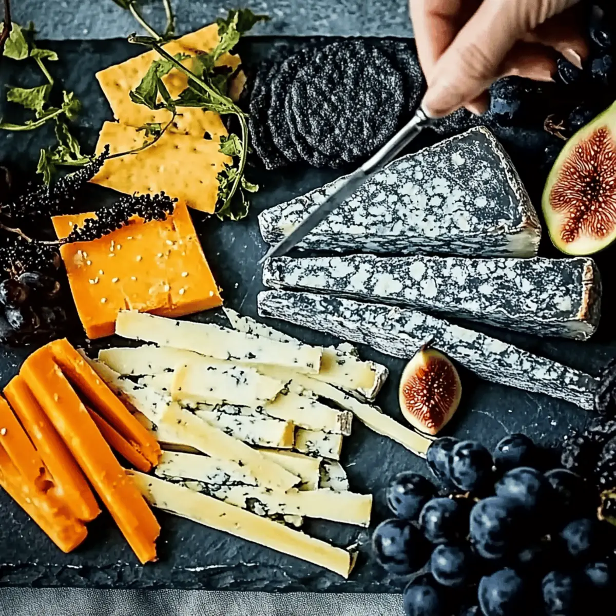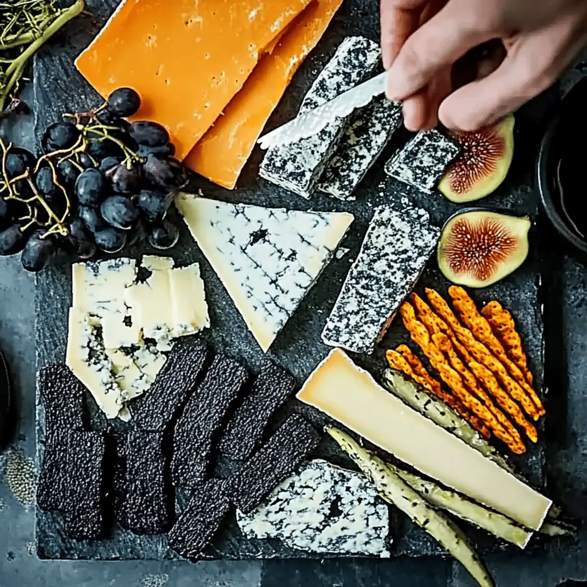 Jump to Recipe Print RecipeAs the leaves turn orange and a chill fills the air, I find myself swept into the magic of Halloween! There’s something truly enchanting about gathering friends and family—especially when a Halloween cheeseboard with creepy crackers takes center stage. This playful dish is an absolute showstopper for your festive gatherings, boasting unique flavors from blue-veined and charcoal-coated cheeses, along with delightfully crunchy homemade crackers. Not only does it impress with its spooky aesthetic, but it’s also a vegetarian-friendly snack that will enchant both little ghouls and grown-up ghosts alike. Imagine their delight as they dive into this easy-to-assemble party treat, perfect for mingling and munching. Ready to conjure up some culinary fun in your kitchen? Let’s dive into the recipe! Why Make a Halloween Cheeseboard? Creativity at Its Peak: This recipe lets you unleash your inner artist, transforming ordinary cheeses and crackers into a spooky masterpiece that thrills any guest. Crowd-Pleasing Favorite: A Halloween cheeseboard is a guaranteed hit—perfect for impressing friends and family at parties. Easy to Customize: Want to spice things up? Feel free to add new flavors or presentation styles, just like in my delicious BBQ Beef Tacos recipe! Vibrant Appeal: The contrast of colors—rich blacks, deep blues, and bright oranges—draws everyone in, making it the centerpiece of your festive table. Quick Assembly: With only a few simple steps, you can craft a show-stopping spread without spending hours in the kitchen. Delicious and Light: Not only is this cheeseboard fun, but each cracker is also a guilt-free snack at approximately 28 calories, just like my refreshing Chickpea Salad Grilled option. This Halloween cheeseboard promises to be both a treat for the eyes and the taste buds! Halloween Cheeseboard with Creepy Crackers Ingredients For the Cheese Selection • Blue-veined Cheese – Adds sharp, tangy flavors to tantalize your taste buds; substitute with gorgonzola for a different twist. • Charcoal-coated Cheese – Provides a visually striking appeal and earthy flavor; a mild cow or goat cheese is a great alternative if needed. • Orange Cheese – Offers a vibrant color and creamy texture; cheddar is commonly used, enhancing the cheeseboard’s allure. For the Crackers • Plain Flour – The essential base for your crackers; use whole wheat flour for a nuttier flavor boost. • Olive Oil – Binds the ingredients and adds moisture; swap for melted butter if you crave extra richness. • Sea Salt Flakes – Elevates the taste; regular table salt can work in a pinch. • Golden Caster Sugar – Balances the flavors with a hint of sweetness; brown sugar can substitute but may darken the color. • Black Sesame Seeds – Introduce texture and flavor depth; regular sesame seeds are a fine replacement. • Black Food Coloring – Creates that spooky cracker appearance; feel free to omit or use activated charcoal for a similar look. Optional Toppings • Figs – Perfect for adding natural sweetness that pairs beautifully with the cheeses. • Black Grapes – Offer a juicy burst of flavor, captivating the palette alongside your cheeses and crackers. Embrace the magic of Halloween with this festive cheeseboard—it’s not just about the flavor, but the fun of gathering and sharing delightful snacks! Step‑by‑Step Instructions for Halloween Cheeseboard with Creepy Crackers Step 1: Preheat the Oven Begin by preheating your oven to 220°C (200°C fan/gas mark 7). This high heat will ensure your creepy crackers bake to a delightful crispness. Grease a baking sheet or line it with parchment paper, preparing for the arrival of your delicious, ghostly treats. Step 2: Make the Dough In a mixing bowl, combine olive oil with 60ml of water. Gradually add the plain flour, sea salt flakes, golden caster sugar, and black sesame seeds, mixing well. Introducing black food coloring will give the dough its spooky hue. Knead the mixture until it transforms into a smooth, pliable dough—a process that should take about 5 minutes. Step 3: Roll Out the Dough On a flour-dusted surface, roll out the dough to a thickness similar to a £1 coin. This ensures your crackers will be thin and crispy. If the dough starts to stick, lightly dust it with more flour. Use a pizza cutter or sharp knife to cut the rolled dough into skinny strips, creating a fun shape reminiscent of witch fingers that’s perfect for your Halloween cheeseboard. Step 4: Prepare the Crackers for Baking Once your dough strips are cut, brush them gently with water to enhance their crispiness. Sprinkle a touch of sea salt and additional black sesame seeds over the strips for added flavor and texture. Prick each strip with a fork to allow steam to escape during baking, preventing them from puffing up and losing their crunch. Step 5: Bake the Crackers Carefully transfer the prepared strips onto your baking sheet, ensuring they’re spaced evenly. Bake in the preheated oven for 12-15 minutes or until the crackers turn golden brown and feel firm to the touch. Keep an eye on them toward the end to avoid overbaking, which can lead to bitterness. Step 6: Cool and Assemble Once baked, remove the crackers from the oven and let them cool completely on a wire rack. As they cool, select a variety of your favorite cheeses for the Halloween cheeseboard, such as blue-veined, charcoal-coated, and vibrant orange cheddar. Arrange them artistically on a serving board alongside your creepy crackers, and complete the spread with figs and black grapes for a touch of sweetness. Halloween Cheeseboard with Creepy Crackers Variations Feel free to let your imagination run wild and tailor this spooky cheeseboard to fit your tastes! Spicy Twist: Add cayenne pepper or paprika to the dough for a fiery flavor that thrills your senses. A touch of heat is sure to bring excitement to your Halloween gathering! Additional Cheeses: Try goa
