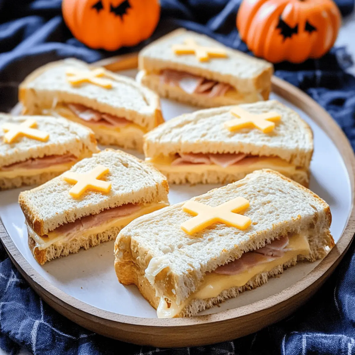Additional Cheese Slices – Cut into strips to form crosses on top of each coffin sandwich; this adds an extra spooky touch!