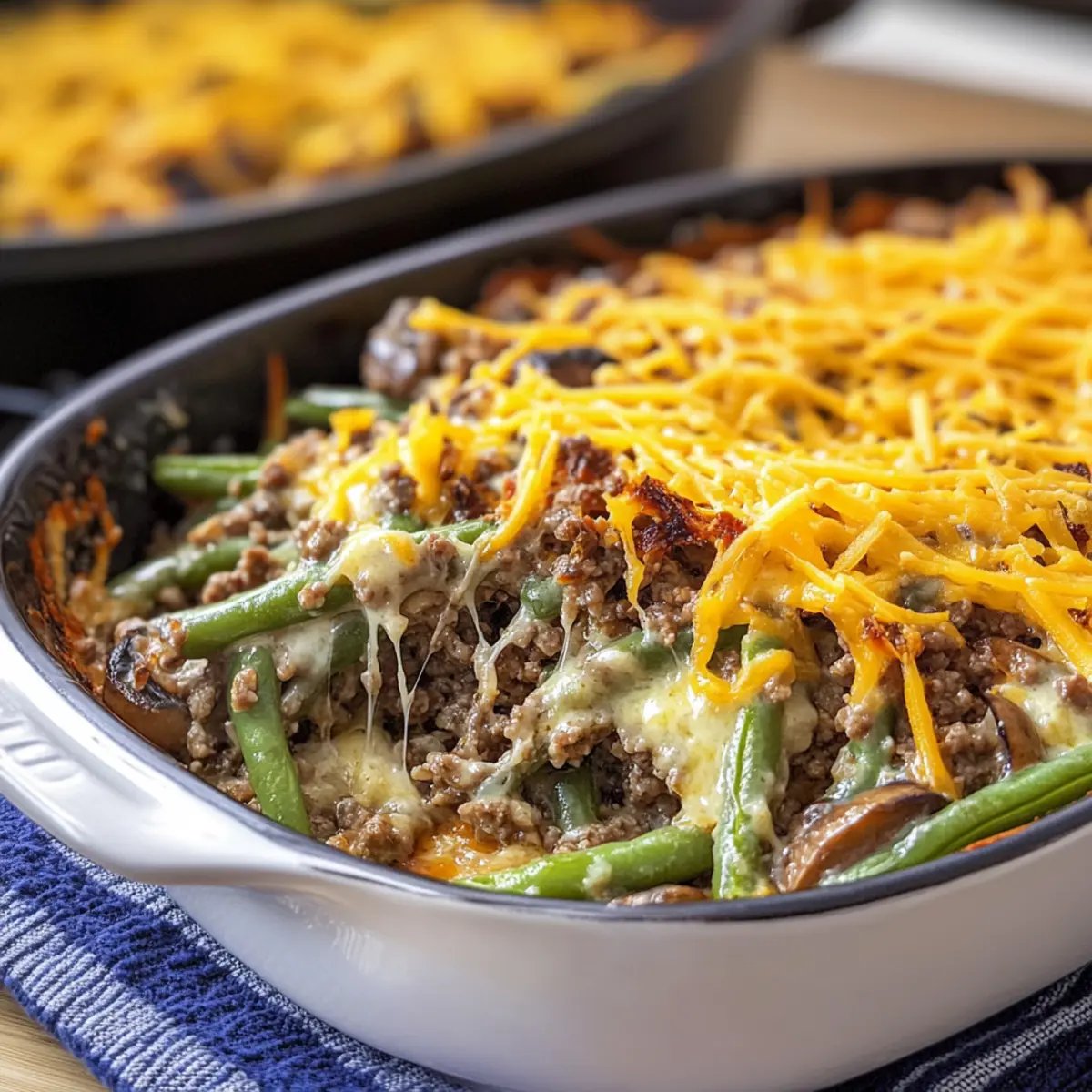 The aroma hits you first: rich, savory ground beef mingling with the earthiness of sautéed mushrooms and the freshness of green beans, all under a warm blanket of creamy cheese. This Hamburger Green Bean Casserole with Mushrooms is the ultimate solution for hectic weeknights when you crave comfort but don’t want to sacrifice your health goals. As an easy keto dinner, this one-pan casserole is not only gluten-free and low-carb, but it also packs a satisfying punch in less than 30 minutes. It’s perfect for those hungry moments when you need something hearty, yet light, and you’ll find smiles all around the table. Are you ready to whip up this delicious dish that’s sure to impress? Let’s dive into the creamy, cheesy goodness!