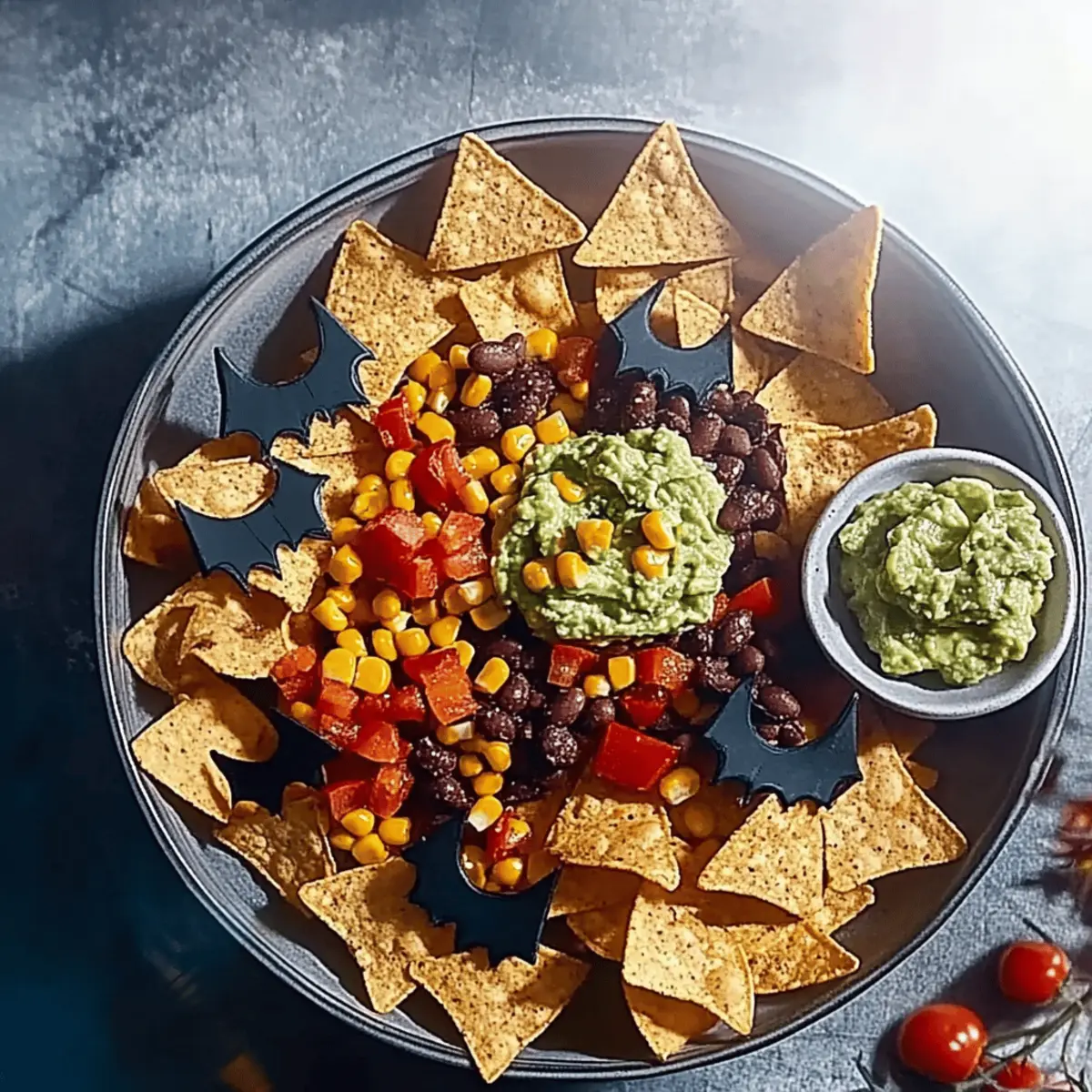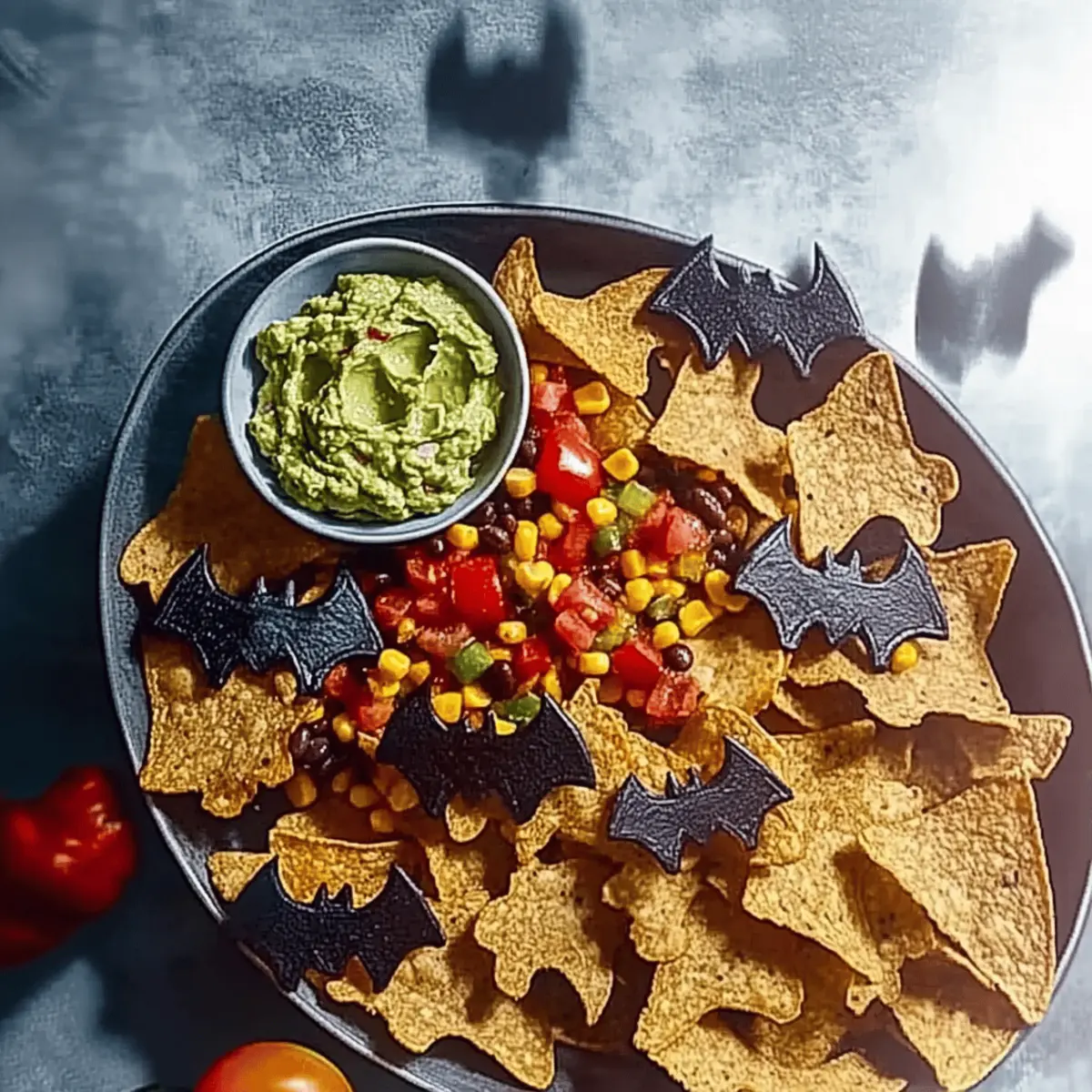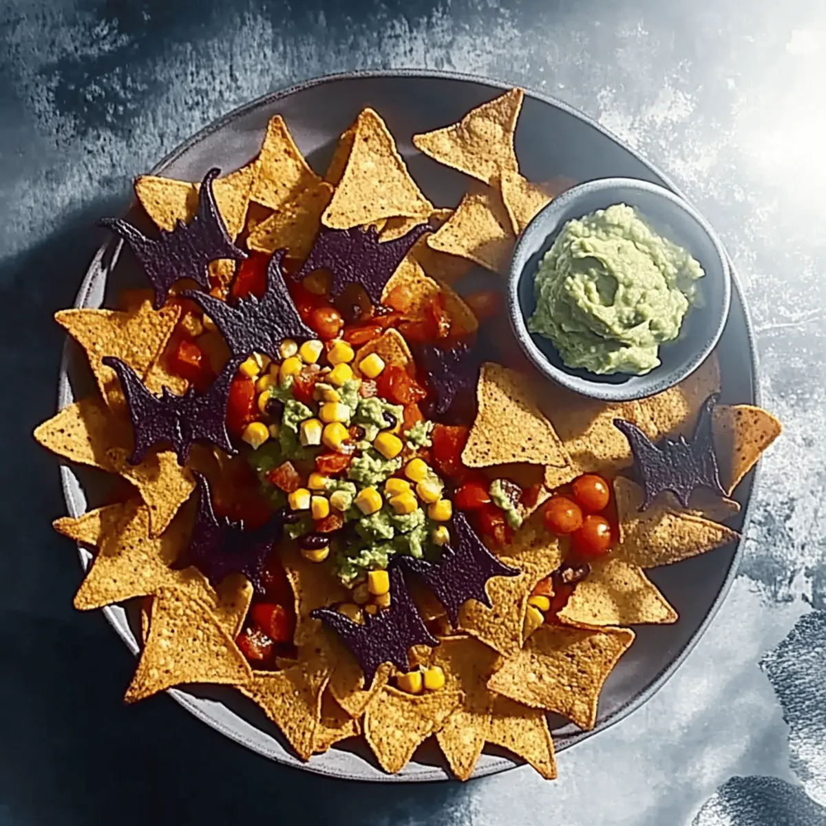 Jump to Recipe Print RecipeAs I pulled my bat-shaped cookie cutters from the drawer, I felt a giddy rush of excitement for the Halloween party ahead. This year, I decided to whisk away the guilt of traditional snacks and whip up Healthy Halloween Nachos with Sweetcorn Salsa and Guacamole instead. These fun, spooky bites are not just appealing to kids and adults alike; they’re a nutritious crowd-pleaser that can be ready in a flash! With crunchy tortillas baked to perfection and a refreshing salsa bursting with vibrant colors, each bite is filled with flavor and health. Whether you’re hosting a festive gathering or simply want to enjoy a savory snack on a cozy night in, these nachos are your ticket to guilt-free indulgence. What unique twists do you think you could add to your spooky snacks this Halloween? Why Are Healthy Halloween Nachos Great? Guilt-Free Indulgence: Enjoy the flavors of Halloween without compromising on health. These nachos are made with wholesome ingredients that will please any crowd. Kid Appeal: Fun bat shapes make them festive and exciting for children, turning snack time into a delightful experience. Bright, Fresh Flavors: The homemade sweetcorn salsa and creamy guacamole elevate your snack, making each bite a burst of taste. Quick & Easy: With simple instructions, you can whip these up in no time, perfect for unexpected guests or last-minute parties. Versatile Options: Customize the salsa with jalapeños for a spicy kick or experiment with your favorite ingredients for a personalized twist! Pair them with other healthy options like Breakfast Granola Cups for a complete snacking experience! Healthy Halloween Nachos Ingredients • Get ready to make a spooky and delicious treat with these Healthy Halloween Nachos! For the Guacamole Limes – Adds acidity to the guacamole; freshly squeezed juice is preferred for flavor. Small Avocados – Provides creaminess; larger avocados can be used if needed, just adjust the quantity. Coriander (bunch) – Adds fresh, herbal notes; if unavailable, fresh parsley can be a tasty substitution. For the Salsa Sweetcorn – Brings sweetness and vibrant color; fresh corn can be a delicious alternative. Cherry Tomatoes (200g) – Delivers juiciness and acidity; any small ripe tomatoes will work well. Red Pepper – Offers a sweet crunch; feel free to substitute with any bell pepper variety. Spring Onions (2) – Adds a mild onion flavor; use regular onion, finely chopped, if necessary. Sundried Tomatoes (3) – Enhances the depth of flavor; fresh tomatoes can be substituted, but expect a different taste. Black Beans (400g can) – Provides protein and texture; kidney beans or chickpeas can be used as alternatives. Cumin and Coriander (½ tsp each) – Adds warmth and earthiness to the salsa. Smoked Paprika (½ tsp) – Imparts a smoky flavor that enhances the overall taste of the salsa. For the Nachos Wholewheat Tortillas (4) – A healthier base for nachos; corn tortillas can be used for a gluten-free option. Oil (1½ tsp) – Used to brush tortillas before baking; substitute with any neutral oil if needed. For Serving Purple Carrots (4) – Offers crunch and health benefits; cut into sticks for added fun—regular carrots can be used too! Let’s dive into the festive fun of Halloween with these vibrant and nutritious bites! Enjoy the scare-free indulgence of Healthy Halloween Nachos! Step‑by‑Step Instructions for Healthy Halloween Nachos Step 1: Make the Guacamole Start by scooping the flesh of your small avocados into a mixing bowl. Mash the avocados until creamy, then squeeze in the juice of one lime and mix in half of the freshly chopped coriander. Season with salt to taste, and if possible, let the guacamole sit for 30 minutes in the fridge to enhance the flavors before serving it alongside your Healthy Halloween Nachos. Step 2: Prepare the Salsa In a large bowl, combine sweetcorn, halved cherry tomatoes, diced red pepper, chopped spring onions, and sundried tomatoes. Add the black beans along with the cumin, coriander, and smoked paprika for an earthy kick. Mix everything well and season with salt and pepper. Let the salsa chill in the fridge for up to 30 minutes to allow the flavors to meld beautifully. Step 3: Shape the Nachos Preheat your oven to 200°C (or 180°C if using a fan oven). While it heats, brush your wholewheat tortillas with a thin layer of oil for crispiness and cut them into bat shapes using cookie cutters or kitchen scissors. Be sure to cut as closely as possible to minimize waste, keeping the anticipation for your Healthy Halloween Nachos rising! Step 4: Bake Tortilla Shapes Once your oven is ready, arrange the bat-shaped tortillas on a baking sheet. Bake for about 4–5 minutes, or until they turn golden and crisp. Keep a close eye to avoid burning, as the perfect crunch is what makes these Healthy Halloween Nachos truly delightful. Step 5: Serve After baking, transfer your crispy nacho bats to a festive platter. Serve immediately with carrot sticks for some extra crunch, and don’t forget to add generous dollops of your creamy guacamole and zesty salsa. Optionally, you can fry off any tortilla scraps from the edges for an extra crispy snack while enjoying your deliciously spooky creation! Healthy Halloween Nachos Variations Feel free to get creative with your Healthy Halloween Nachos and tailor them to your taste preferences! Spicy Twist: Add diced jalapeños to your salsa for a fiery kick that will thrill the heat lovers at your party. Protein Swap: Swap out black beans for lentils to explore a different texture and flavor choice—both are nutritious and delicious. Cheesy Option: Sprinkle a blend of shredded dairy-free cheese on the nachos before baking for a melty addition that kids will love! Salsa Upgrade: Combine mango with your sweetcorn salsa for a delightful sweetness that pairs beautifully with the savory elements. Herbal Infusion: Experiment with fresh basil or mint in your salsa for an u