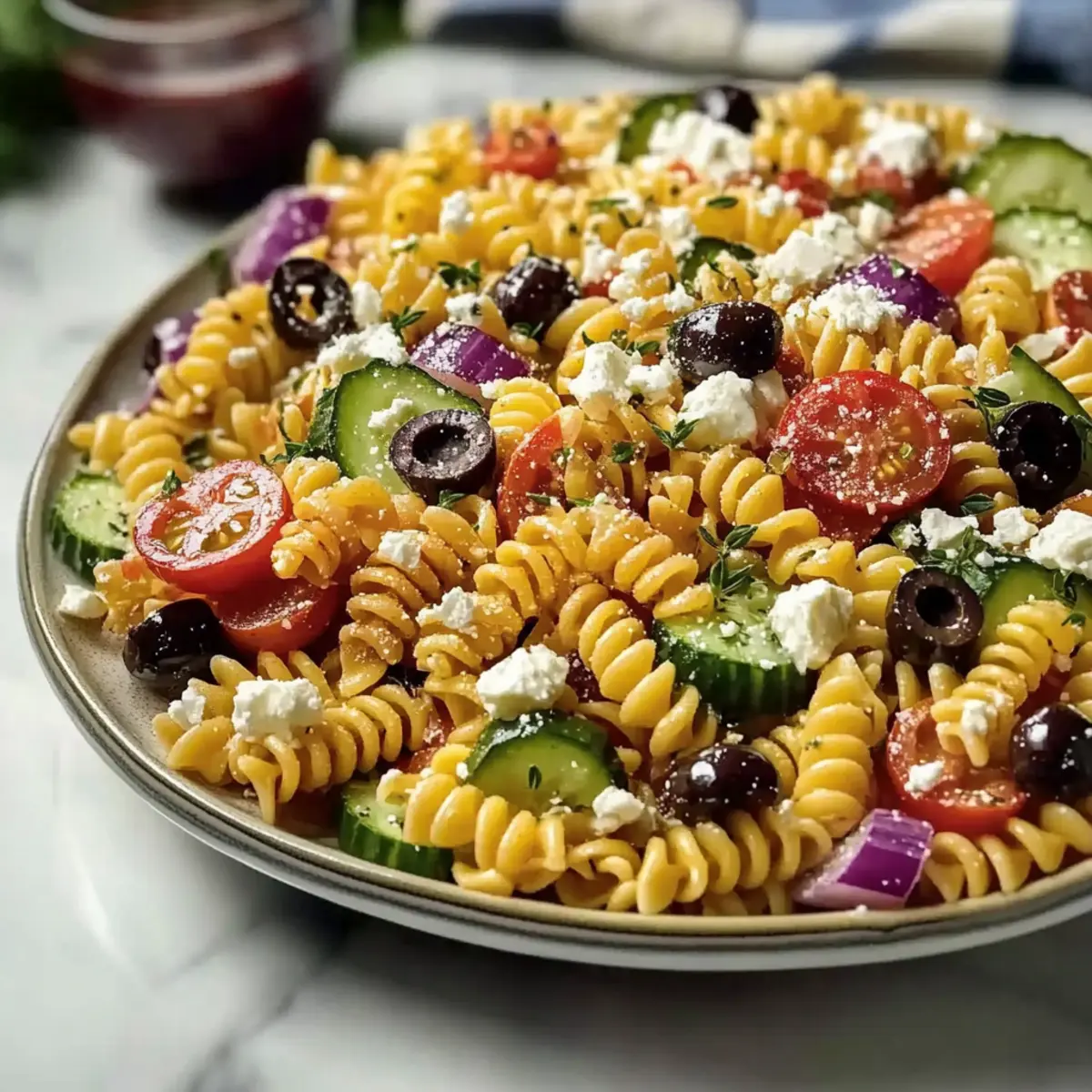 Jump to Recipe Print RecipeSummer picnics and potlucks just got a delicious overhaul! With this Healthy High Protein Pasta Salad No Mayo, I’ll show you how to create a Mediterranean-inspired dish that’s as vibrant as it is satisfying. By swapping heavy mayo for a zesty vinaigrette, I’ve transformed the classic pasta salad into a refreshing option packed with protein from rotini and a colorful array of crisp vegetables. Not only is this salad ideal for meal prep, but it’s also a delightful crowd-pleaser that won’t leave you feeling weighed down. Ready to see how easily you can whip up this light, nutritious salad that’s bursting with flavor? Let’s dive in! Why is this salad a game-changer? Freshness is at the forefront of this delightful High Protein Pasta Salad No Mayo! With a zesty vinaigrette that elevates the flavors, this dish is perfect for anyone looking to break free from heavy, mayo-laden salads. Packed with protein, the rotini and an array of vibrant vegetables provide a satisfying bite that’s both light and nourishing. Versatile enough for meal prep or serving at summer gatherings, it adapts to your dietary needs, making it a hit in any setting. If you love hearty salads, you might also enjoy our Chickpea Salad with Grilled Vegetables or the refreshing Thai Chicken Salad. Enjoy the ease of preparation and the ability to customize flavors, ensuring everyone will be coming back for seconds! High Protein Pasta Salad No Mayo Ingredients • Get ready to create this vibrant dish! For the Salad Rotini – Provides structure and holds the vinaigrette well; consider using protein-enhanced pasta for extra nutrition. Red Bell Pepper – Adds sweetness and crunch; substitute with yellow or orange for a sweeter variant. English Cucumber – Contributes refreshing crunch; can be swapped for regular cucumber with peeling. Broccoli – Offers texture and a nutrient boost; substitute with additional cucumber or bell pepper if desired. Cherry Tomatoes – Adds juiciness and color; grape tomatoes make a sweeter alternative. Red Onion – Provides a sharp flavor contrast; can use shallots for a milder taste. Fresh Parsley and Basil – Enhance freshness and aroma; feel free to use any fresh herb like cilantro or dill. Dried Oregano – Adds earthy flavor; Italian seasoning can be used instead for convenience. Feta Cheese – Brings creaminess and tang; crumbled goat cheese can be a delightful alternative, or omit for a dairy-free option. Black Olives – Adds brininess; substitute with green olives if you want a different flavor profile. For the Dressing Olive Oil – The base for the dressing, providing healthy fats; light olive oil works just as well. Red Wine Vinegar – Adds tang and brightness; can be substituted with white wine vinegar or apple cider vinegar for lighter flavor. Dijon Mustard – Emulsifies and adds flavor depth; yellow mustard is a suitable alternative if Dijon isn’t available. Garlic – Provides aromatic depth; garlic powder can serve as a quick substitute in a pinch. Salt and Pepper – Essential for seasoning; adjust these to taste for the perfect finish. With these fresh and flavorful High Protein Pasta Salad No Mayo ingredients, you’re well on your way to crafting a dish that not only nourishes but tantalizes the taste buds! Step‑by‑Step Instructions for High Protein Pasta Salad No Mayo Step 1: Prep Ingredients Start by dicing the red bell pepper, slicing the English cucumber, and halving the cherry tomatoes. Mince a small amount of red onion, and chop the fresh parsley and basil. Place all these vibrant ingredients into a large mixing bowl, ensuring everything is ready for your colorful High Protein Pasta Salad No Mayo. This prep will make the assembly smooth and efficient. Step 2: Make the Dressing In a small bowl, whisk together minced garlic, olive oil, red wine vinegar, Dijon mustard, salt, and pepper. Stir vigorously until the mixture is well combined and smooth. Let the dressing rest for a few minutes to allow the flavors to meld, adding a zesty punch to your High Protein Pasta Salad No Mayo once dressed. Step 3: Cook Pasta Bring a large pot of salted water to a rolling boil over high heat. Add the rotini and cook for about 8-10 minutes, or until al dente. Drain the pasta in a colander and immediately rinse under cold water to stop the cooking process and remove excess starch. This step ensures your pasta maintains a firm bite in the salad. Step 4: Combine In the large bowl with your chopped vegetables, add the cooled rotini, crumbled feta cheese, black olives, and dried oregano. Gently fold all the ingredients together, mixing until everything is evenly distributed. The combination of flavors and textures will make your High Protein Pasta Salad No Mayo truly delightful. Step 5: Dress the Salad Pour the prepared vinaigrette over the salad mixture and toss gently to coat everything evenly. Be careful not to mash the ingredients; a light hand will keep the salad looking fresh and vibrant. Taste the High Protein Pasta Salad No Mayo and adjust seasoning, adding more salt or pepper as needed for your personal preference. High Protein Pasta Salad No Mayo Variations Feel free to get creative and customize this delightful salad to suit your taste! Pasta Shape: Swap rotini for penne or farfalle for a playful twist in texture. This simple change can make your salad feel entirely new. Add Protein: Toss in diced chicken or chickpeas for an extra protein boost. It’s a great way to make your salad more filling and satisfying! Veggie Swap: Switch out broccoli for zucchini or asparagus to delight your taste buds with seasonal favorites. Seasonal vegetables ensure freshness and can elevate the dish’s appeal. Herb Variations: Experiment with different fresh herbs, like cilantro or dill, to add unique flavor profiles. Each herb offers its own wonderful aroma, transforming your salad into an adventurous dish. Cheese Choices: Use crumbled goat cheese ins