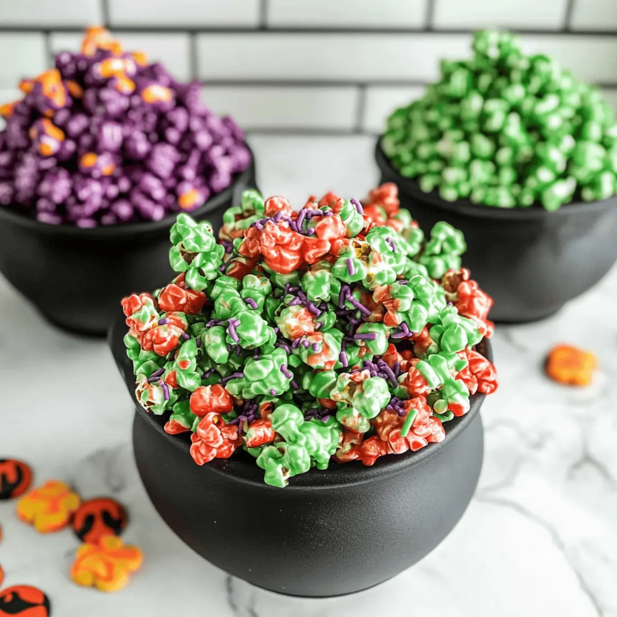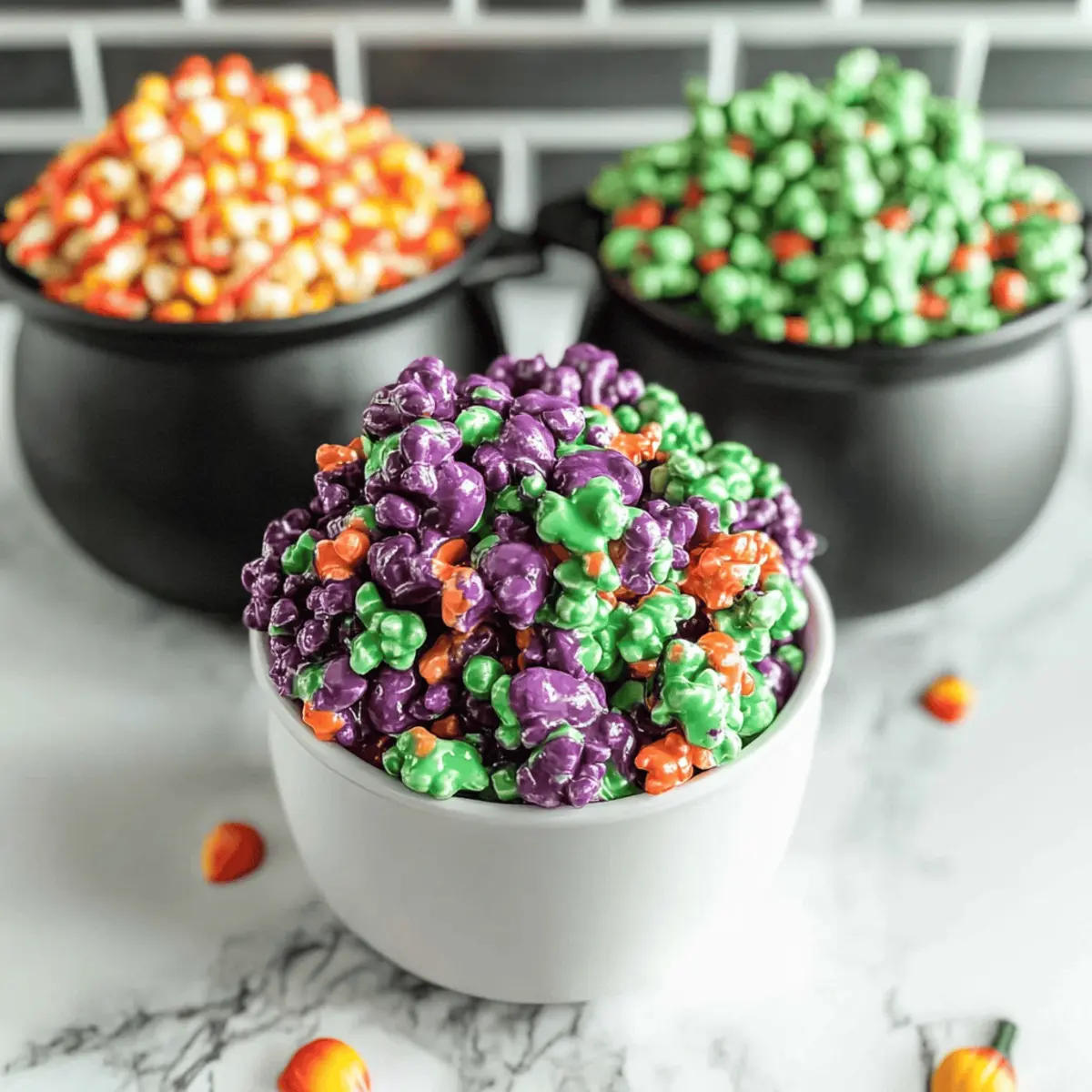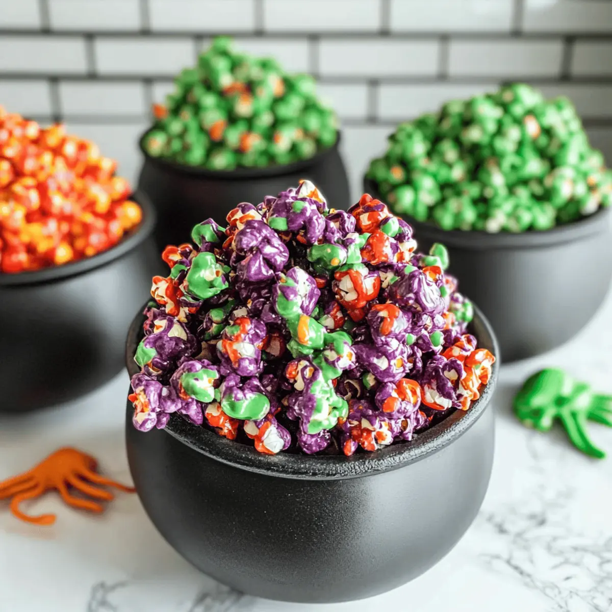 Jump to Recipe Print RecipeAs Halloween approaches, the excitement in the air feels almost magical, doesn’t it? This year, I’m embracing that spellbinding vibe with a treat that’s as playful as it is easy to whip up—Hocus Pocus Popcorn! With just four simple ingredients, this kid-friendly recipe transforms an ordinary snack into a colorful celebration that’s perfect for festive movie nights and spirited gatherings. Not only is it an easy Halloween treat, but it also invites creativity, allowing you to mix and match vibrant colors and character-themed sprinkles. With the delightful crunch and sweetness, your taste buds will dance like the Sanderson sisters on full moon night! Are you ready to cast a delicious spell in your kitchen? Why Is Hocus Pocus Popcorn Amazing? Kid-Friendly Fun: This recipe is perfect for little witches and wizards eager to help in the kitchen! Four Simple Ingredients: No need for complicated steps—just popcorn, candy melts, coconut oil, and sprinkles. Colorful and Festive: Each vibrant batch adds a splash of Halloween spirit, making it a great treat for parties. Crispy, Sweet Delight: Experience the perfect crunch paired with a sweet finish, reminiscent of your favorite childhood snacks. Creative Customization: Mix and match colors or add themed candies for a unique twist! If you’re looking for more ideas, check out our other kid-friendly Halloween recipes. Perfect for Sharing: This popcorn is not only a treat for your taste buds but also a great way to bring family and friends together this Halloween season! Hocus Pocus Popcorn Ingredients Gather your spellbinding supplies for this easy Halloween treat! For the Popcorn Popcorn – Use salted white popcorn for the best base flavor and texture. For the Candy Coating Colored Candy Melts – Choose purple, green, and red melts to represent the enchanting Sanderson sisters. Coconut Oil – Aids in smoothing the candy melts for effortless coating and a glossy finish. For the Festive Touch Sprinkles (Yellow, Orange, Purple, Red) – Adds delightful texture and a burst of color, corresponding to each character’s theme. Step‑by‑Step Instructions for Hocus Pocus Popcorn Step 1: Prepare the Popcorn Begin by popping your popcorn according to package directions. Use an air popper or stovetop method to create approximately 10 cups of salted white popcorn, ensuring it’s fluffy and not burnt. Once popped, transfer the popcorn to a large bowl, allowing it to cool slightly while you prepare the colorful coatings. Step 2: Line the Baking Sheet Line a large baking sheet with parchment paper. This will prevent the Hocus Pocus Popcorn from sticking and make cleanup a breeze afterward. Make sure the parchment paper is smooth and flat on the sheet, so your colorful popcorn can spread out evenly without clumping together. Step 3: Prepare the Candy Melts Divide your colored candy melts into three separate microwave-safe bowls—one for each color: purple, green, and red. Add 1 teaspoon of coconut oil to each bowl to help smooth out the melts. This oil will ensure a glossy finish on your popcorn once coated. Step 4: Melt the Candy Melts Microwave the purple candy melts for 30 seconds on high, then stir them gently. Return to the microwave for additional 10-second intervals, stirring after each, until fully melted and smooth. The melted candy should be glossy without any lumps. Repeat this melting process for the green and red candy melts in separate bowls. Step 5: Coat the Popcorn Once the purple candy melts are fully melted, pour them over the popped popcorn. Using a spatula or large spoon, gently mix the popcorn until it’s evenly coated with the purple coating. You want to see a vivid color covering the kernels, making the Hocus Pocus Popcorn visually appealing and delicious. Step 6: Add Sprinkles and Spread Immediately after coating, transfer the purple popcorn to the lined baking sheet. Scatter yellow and orange sprinkles over the top while the candy coating is still wet. Spread the popcorn out evenly on the sheet, ensuring it doesn’t stick together as it sets. Step 7: Repeat for Other Colors Allow the purple popcorn to set for about 5 minutes. Meanwhile, repeat the coating process for the green and red melts separately, pouring each over the popped popcorn and mixing them just like the first batch. Add corresponding sprinkles to each batch while they’re still wet, creating a colorful Halloween treat. Step 8: Final Setting and Serving Once all the popcorn is coated and sprinkled, let everything dry completely on the baking sheet for about 10 minutes. After drying, break apart any clumps and portion the delightful Hocus Pocus Popcorn into mini cauldrons or festive Halloween-themed containers for a charming serving presentation! Make Ahead Options These Hocus Pocus Popcorn treats are not only fun but also perfect for meal prep! You can pop the popcorn up to 24 hours in advance and store it in an airtight container to keep it fresh and crunchy. Additionally, you can prepare the colored candy melts ahead (they will stay good in the fridge for up to 3 days); simply melt them when you’re ready to coat the popcorn. When you’re set to finish up, warm the candy melts briefly in the microwave, coat your popcorn, and immediately sprinkle the decorations for a delightful presentation. This approach saves time while ensuring your Halloween treat remains just as delicious! Hocus Pocus Popcorn Variations Get ready to sprinkle your magic on this recipe and create your perfect Halloween treat! White Chocolate Swaps: Style-twist your popcorn with melted white chocolate for a sweeter, creamy flavor. Glittering Glam: Add edible glitter for a sparkling touch. It’s an enchanting way to make your popcorn even more magical! Nutty Crunch: Incorporate chopped nuts like almonds or pecans for an unexpected crunch. This addition pairs beautifully with the sweet coating, creating a delightful contrast in texture. Spiced Option: Spri