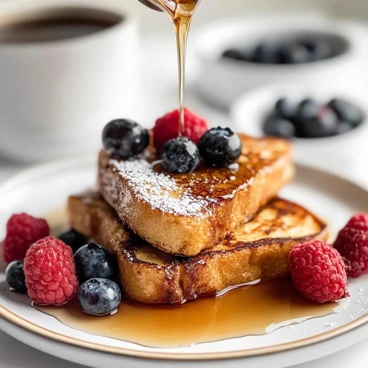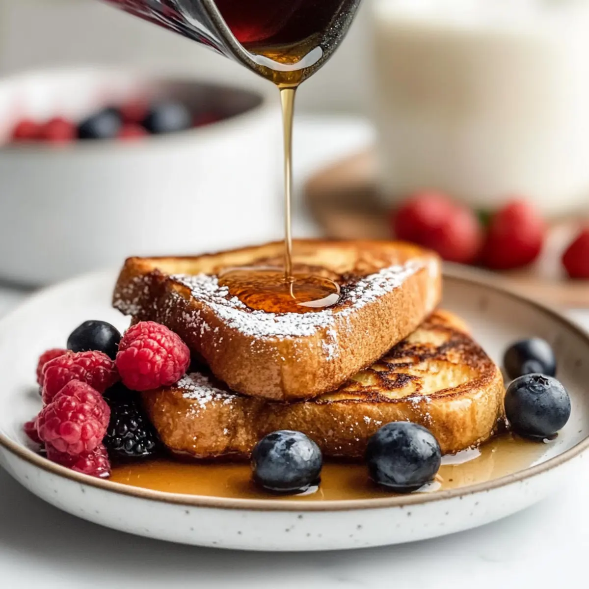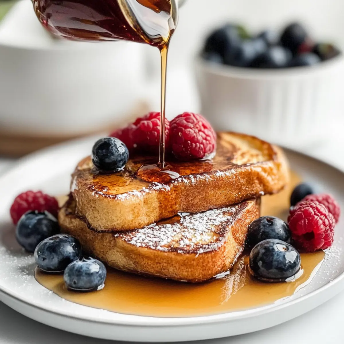 Jump to Recipe Print RecipeThere’s a warm, inviting aroma wafting from my kitchen, signaling the start of something delicious—a plate of crispy sourdough French toast, a quick breakfast wonder that transforms stale bread into pure magic. This favorite recipe not only delights the senses but also highlights the beauty of minimal ingredients. With just eggs, milk, and a sprinkle of cinnamon, you can whip together a brunch-worthy meal that’s ready in mere minutes. It’s perfect for those busy mornings when you crave something comforting yet special. And the best part? You can easily customize it with your favorite toppings, whether it’s drizzled maple syrup or fresh berries. So, are you ready to elevate your breakfast game? Let’s dive in! Why is Sourdough French Toast a Must-Try? Irresistible Flavor: The unique tang of sourdough paired with sweet syrup creates a delightful contrast that’s hard to resist. Quick & Simple: With just a few pantry-friendly ingredients, this recipe is perfect for those busy mornings when time is short. Versatile Options: Customize your toast with various toppings like fresh berries, whipped cream, or even a drizzle of honey. Minimal Waste: Transform stale bread into a delicious dish, reducing food waste while enjoying a scrumptious breakfast. Comforting Delight: This crispy-sweet treat is not only perfect for brunch but also a cozy breakfast option the whole family will love, much like a comforting Croissant French Toast or a classic Homemade Butter Chicken. Homemade Sourdough French Toast Ingredients • Here’s what you’ll need to create this delicious breakfast delight: For the Custard Eggs – Provide structure and richness to the custard; always opt for large eggs for best results. Milk – Adds moisture; you can substitute with almond milk for a delightful dairy-free option. Vanilla Extract – Enhances flavor; for the most delicious results, choose pure vanilla. Cinnamon – Adds warmth and sweetness; nutmeg can be used as a substitute for a unique flavor profile. For the Bread Sourdough Bread – Essential for perfect texture and taste; using day-old or slightly stale bread ensures better soaking. For Cooking Butter – Provides richness during frying; you can easily swap this out for coconut oil to keep it dairy-free. Optional Fresh Toppings Fresh Berries – A delicious way to add flavor and freshness; customize your French toast with your favorite fruits. Whipped Cream – Adds a rich, indulgent touch; it’s perfect for elevating your brunch experience. Now that you have your ingredients ready, let’s get cooking! The Homemade Sourdough French Toast is stepping up to be your new breakfast favorite—comforting, simple, and utterly delightful! Step‑by‑Step Instructions for Homemade Sourdough French Toast Step 1: Prep Custard In a medium mixing bowl, whisk together 4 large eggs, 1 cup of milk, 1 teaspoon of pure vanilla extract, and 1 teaspoon of ground cinnamon. Mix until the ingredients are well combined and slightly frothy. This custard will create that rich, custardy texture in your Homemade Sourdough French Toast, enhancing the overall flavor and experience. Step 2: Soak Bread Take your day-old sourdough bread and slice it into thick pieces, about 1-inch wide. Dip each slice into the custard mixture, ensuring both sides are thoroughly coated—this should take around 15-20 seconds per side. Allow the bread to soak briefly while you prepare your skillet, as this step is crucial for achieving the perfect texture. Step 3: Heat Pan In a non-stick skillet or griddle, melt 2 tablespoons of butter over medium heat. Keep an eye on the butter as it foams and starts to turn a golden brown—this indicates it’s hot enough for cooking. Preheating your pan adequately will ensure an even, crispy result that elevates your Homemade Sourdough French Toast. Step 4: Cook Bread Carefully place the soaked bread slices in the hot skillet, ensuring they don’t overcrowd the pan. Cook each side for about 3-4 minutes, or until golden brown and crispy. Flip them gently with a spatula when you see a rich, golden crust forming, and continue cooking until both sides reach that perfect, inviting hue. Step 5: Serve Once cooked, remove the French toast slices from the skillet and place them on a serving plate. Feel free to keep them warm in a low oven if needed. Top your Homemade Sourdough French Toast with fresh berries, whipped cream, and a drizzle of maple syrup for a delicious finish that complements the delightful crispy and custardy textures. Make Ahead Options These Homemade Sourdough French Toast are perfect for busy mornings when time is tight! You can prepare the custard mixture (4 large eggs, 1 cup of milk, 1 teaspoon vanilla extract, and 1 teaspoon cinnamon) up to 24 hours in advance by refrigerating it in an airtight container. Additionally, you can slice the sourdough bread ahead of time and store it in a resealable bag, leaving it slightly stale for optimal soaking. When you’re ready to cook, simply soak the pre-sliced bread in the prepared custard, then fry as directed. This allows you to whip up a delicious breakfast with minimal effort, so you can enjoy tasty, homemade comfort any day of the week! Homemade Sourdough French Toast Variations Feel free to get creative with your French toast; there’s so much you can customize to make it uniquely yours! Dairy-Free: Substitute milk with almond or oat milk to make this dish dairy-free while still keeping it creamy. Nutty Delight: Add a tablespoon of almond or hazelnut extract to the custard for a lovely nutty flavor that will surprise your taste buds. Cinnamon Swirl: Mix in a tablespoon of cinnamon sugar for a delightful crust on your toast that layers the sweetness beautifully. Fruit-Infused: Incorporate fresh fruit like bananas or strawberries into the custard for an extra burst of flavor and natural sweetness. Sliced bananas work beautifully, infusing the batter with their lovely flavor. 