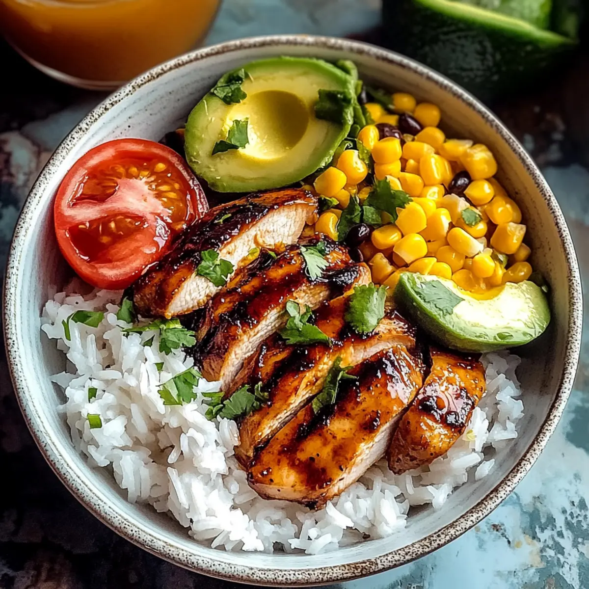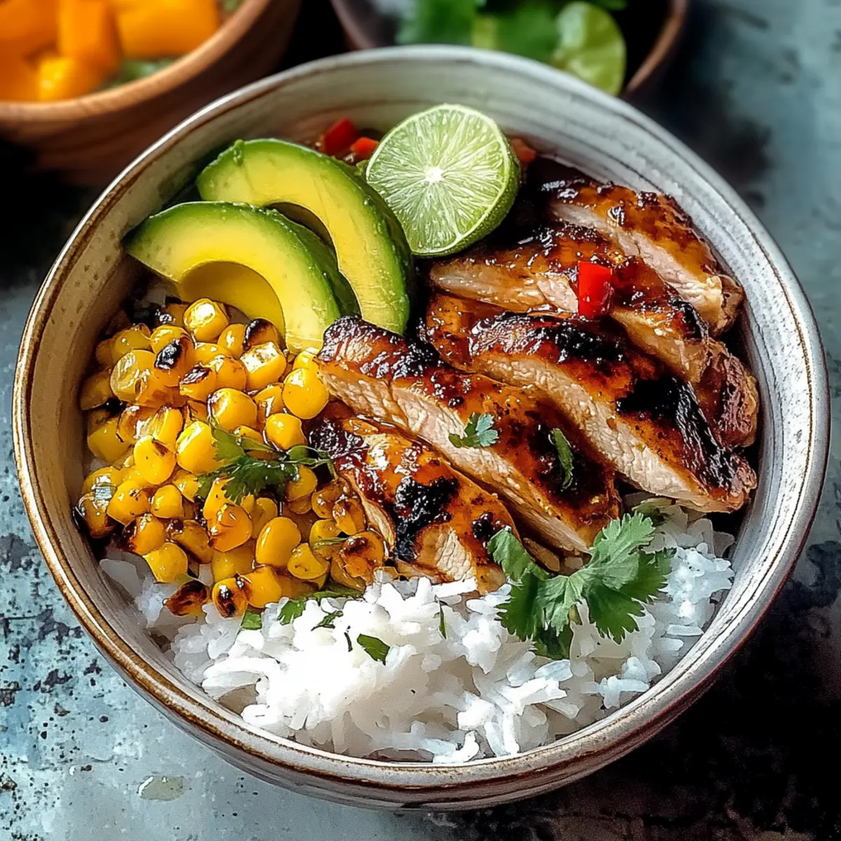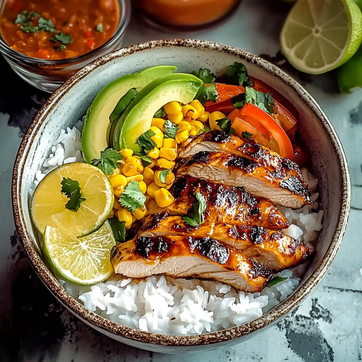 Jump to Recipe Print Recipe“Why settle for bland when you can have a burst of flavor?” That thought crossed my mind as I experimented with my latest creation: Honey Lime Chicken & Rice Bowls. The combination of sweet honey and zesty lime offers a luscious married taste that transforms simple ingredients into something remarkable. This recipe is a star on busy weeknights—quick and easy while being healthy and gluten-free. In just 45 minutes, you can serve a meal that’s as comforting as it is vibrant, making it perfect for both lunch and dinner. Whether you’re an experienced chef or someone just starting out, these bowls are a delightful way to enjoy home-cooked goodness without the hassle. Curious about how this tropical-inspired dish can become your new favorite? Let’s dive in! Why You’ll Love These Bowls Quick and Easy: With just 45 minutes from start to finish, you can serve a delicious meal without stress, perfect for busy weeknights. Bold Flavors: The blend of honey and lime offers a sweet and tangy kick that elevates simple chicken and rice to something extraordinary. Versatile Ingredients: Use chicken, tofu, or even shrimp! Personalize with your favorite vegetables or swaps for a unique twist each time. Healthy and Nutritious: Each serving is packed with protein, fiber, and wholesome ingredients, making it a guilt-free option for lunch or dinner. Crowd-Pleaser: These bowls are sure to impress family and friends, leaving them asking for seconds and the recipe! Don’t forget to check out our tips for perfecting your own Honey Lime Chicken & Rice Bowls or serve them alongside some crispy tortilla chips for an added crunch! Honey Lime Chicken & Rice Bowls Ingredients • To make these delightful bowls, gather your ingredients below for a flavor-packed meal! For the Rice Long-grain white rice – Base of the dish; provides structure and texture. Substitute with brown rice for a healthier option. For the Chicken Boneless, skinless chicken thighs or breasts – Main protein; easy to cook and absorbs marinades well. Can be swapped with tofu for a vegetarian version. Olive oil – For cooking chicken; can be replaced with any cooking oil like canola or avocado oil. For the Marinade Honey – Adds sweetness and helps caramelize the chicken. Use agave syrup for a vegan alternative. Fresh lime juice – Provides acidity and brightness. Bottled lime juice can be used in a pinch, but fresh is recommended for best flavor. Soy sauce – Adds depth and umami flavor. Low-sodium soy sauce can be used for healthier cooking. Lime zest – Enhances lime flavor; use fresh zest for potency. Dried lime zest is not recommended. Garlic powder – Adds a savory note. Fresh minced garlic can be substituted if desired. Onion powder – Provides mild sweetness; use fresh onions if preferred. Salt and black pepper – Essential for seasoning; adjust to taste. For the Bowls Corn (fresh, frozen, or canned) – Adds sweetness and texture; use frozen corn for convenience. Black beans – Increases protein content; canned beans should be drained and rinsed to reduce sodium. Avocado – Adds creaminess and healthy fats; can substitute with sour cream if preferred. Fresh cilantro – Garnish; adds color and freshness. Omit if allergies are a concern. Lime wedges – Serve on the side for extra lime flavor. By gathering these ingredients, you’ll be well on your way to creating delicious Honey Lime Chicken & Rice Bowls that everyone will love! Step‑by‑Step Instructions for Honey Lime Chicken & Rice Bowls Step 1: Cook Rice In a medium pot, combine 2 cups long-grain white rice with 4 cups of water. Bring the mixture to a rolling boil over high heat, then reduce to low heat and cover. Let it simmer for about 18-20 minutes, or until the rice is tender and liquid is absorbed. Once done, fluff the rice with a fork and set it aside while you prepare the rest of the dish. Step 2: Prep Marinade In a mixing bowl, whisk together ¼ cup honey, ¼ cup fresh lime juice, ¼ cup soy sauce, the zest of one lime, 1 teaspoon garlic powder, 1 teaspoon onion powder, and a pinch of salt and black pepper. This vibrant marinade combines sweet and tangy flavors, setting the perfect foundation for your Honey Lime Chicken. Step 3: Marinate Chicken Place 1.5 pounds of boneless, skinless chicken thighs or breasts in a shallow dish and pour half of the marinade over the chicken. Ensure that the chicken is well coated, and let it marinate for at least 15 minutes on the counter or up to 1 hour in the refrigerator for richer flavor. Step 4: Cook Chicken Heat 2 tablespoons of olive oil in a large skillet over medium-high heat. Once the oil is shimmering, carefully add the marinated chicken pieces. Cook for about 5-7 minutes on each side until the chicken is golden brown and reaches an internal temperature of 165°F. Discard any remaining marinade to ensure a clean, safe cooking surface. Step 5: Add Extras After the chicken is cooked, stir in 1 cup of corn (fresh, frozen, or canned) and 1 can of drained and rinsed black beans into the skillet. Heat this mixture over medium for about 3-4 minutes until everything is warmed through, adding more flavor and nutrition to your Honey Lime Chicken & Rice Bowls. Step 6: Slice Chicken Once cooked, transfer the chicken to a cutting board and allow it to rest for a couple of minutes. Then, using a sharp knife, slice the chicken into thin strips, letting the juices settle, which keeps the meat juicy and adds great texture to your bowls. Step 7: Assemble Bowls In individual serving bowls, start layering the warm, fluffy rice as the base. Top it generously with the sliced chicken, followed by the warm corn and black bean mixture. Add diced avocado for creaminess and texture, making your Honey Lime Chicken & Rice Bowls colorful and inviting. Step 8: Garnish & Serve Drizzle the remaining marinade over each bowl for an extra burst of flavor. Then sprinkle fresh cilantro for brightness and garnish with li