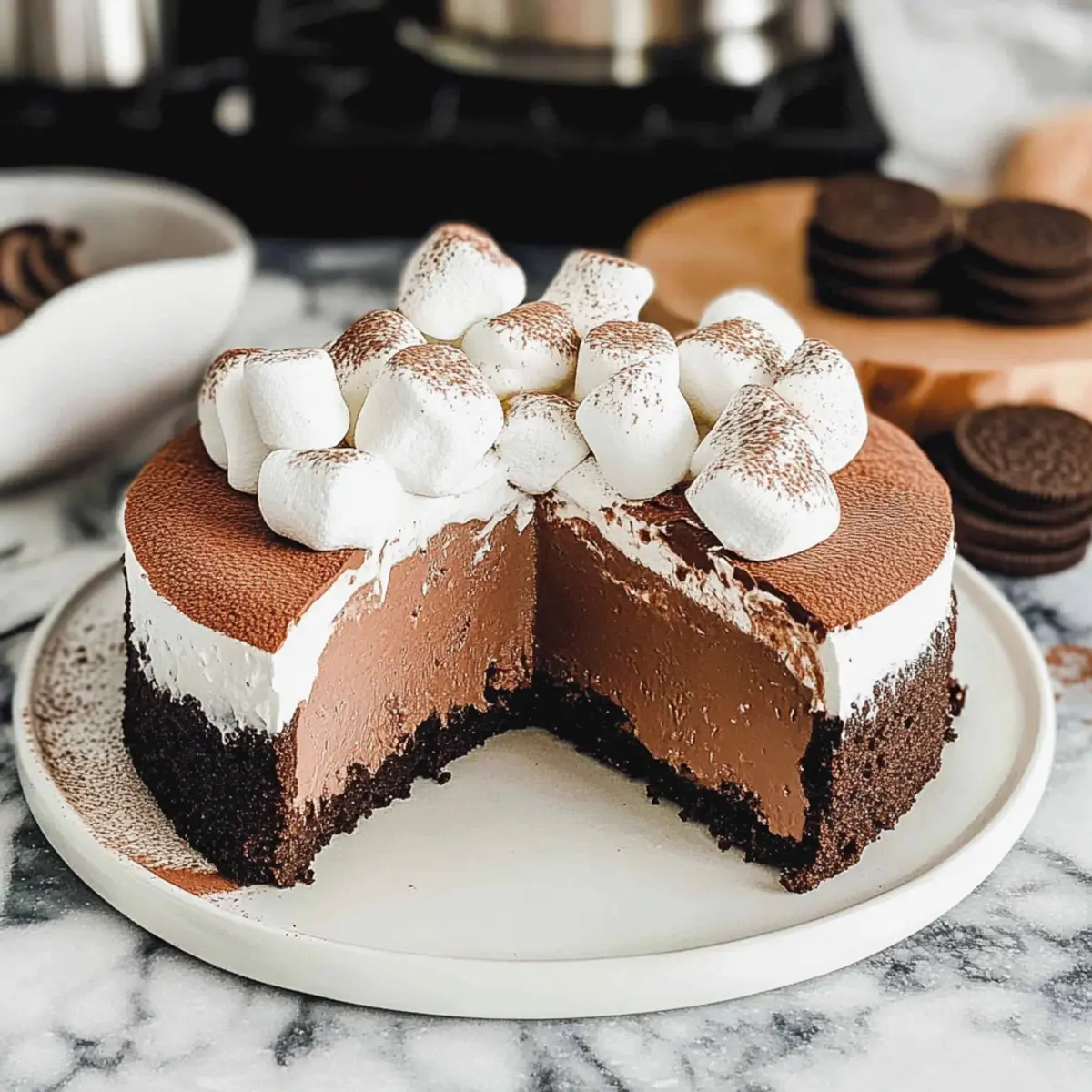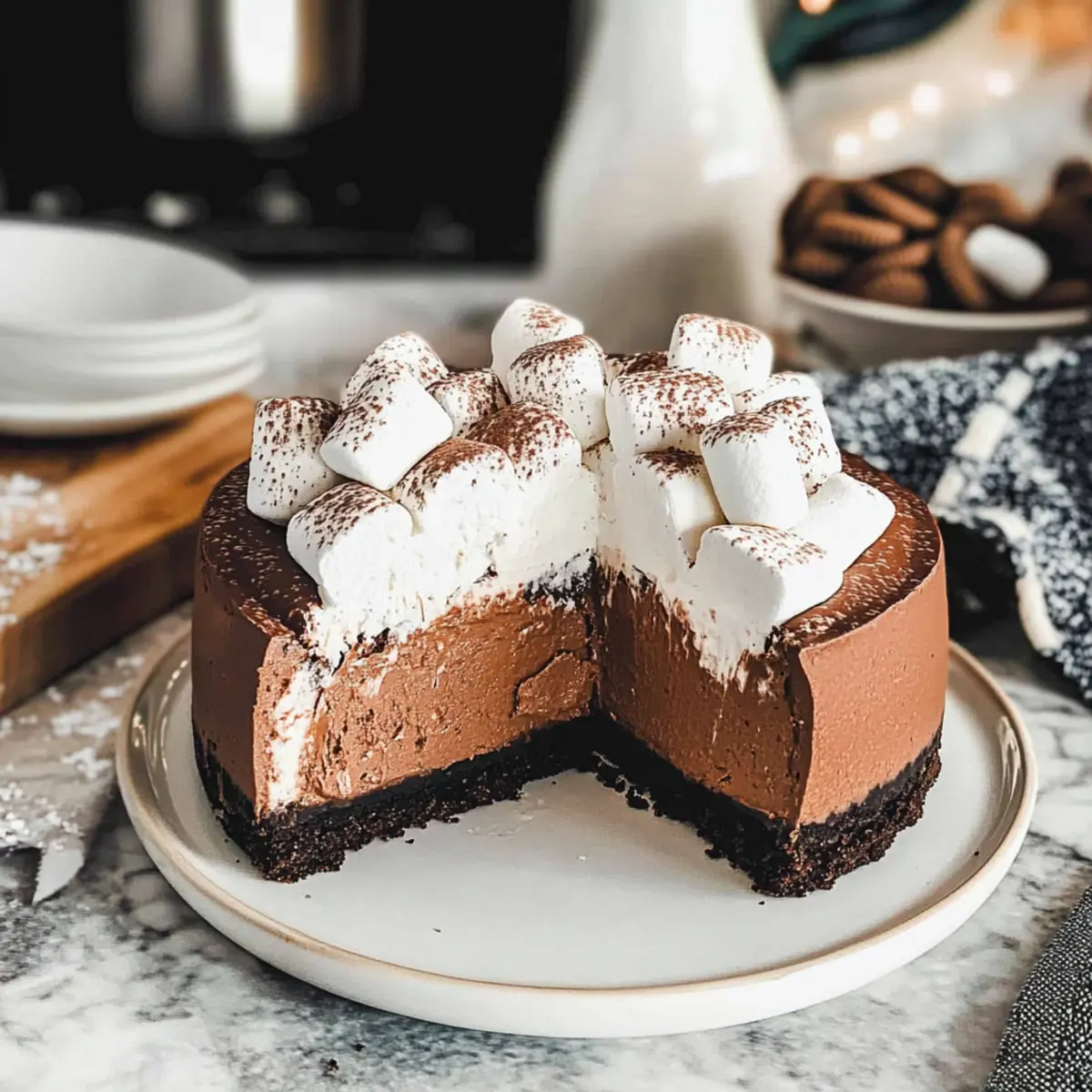 Jump to Recipe Print RecipeAs I stood by the window, watching snowflakes dance lazily to the ground, a cozy feeling enveloped me, igniting an urge for something sweet—Hot Chocolate Cheesecake, to be precise. This dessert beautifully marries the nostalgic comfort of a warm cup of cocoa with the indulgent richness of cheesecake, creating a winter treat that you’ll fall in love with. With its crunchy Oreo crust and a velvety, creamy filling topped off with fluffy whipped cream and marshmallows, it’s not only easy to whip up but also guaranteed to wow your guests at any gathering. Perfect for making memories on chilly nights, this recipe offers a delightful escape from fast food. Ready to dive into a slice of bliss? Why Will You Love This Cheesecake? Irresistible Comfort: This Hot Chocolate Cheesecake brings warmth and nostalgia, capturing the essence of cozy winter evenings with every bite. Easy to Make: With simple instructions, it’s perfect for home cooks of all levels. Versatile Variations: Explore flavors like Mint Hot Chocolate or Spicy Mexican to cater to everyone’s tastes. Crowd-Pleasing Appeal: Your friends and family will rave about this standout dessert at any gathering. Incredible Texture: The combination of a crunchy Oreo crust with a creamy filling creates a delightful experience that’s hard to resist. Make sure to also check out our expert tips for perfecting your cheesecake technique! Hot Chocolate Cheesecake Ingredients For the Crust • Oreo cookies – Adds a crunchy base; substitute with graham cracker crumbs for a different flavor. • Unsalted butter – Binds the crust together; use salted butter for added depth of flavor. For the Filling • Cream cheese – Provides a creamy texture and rich flavor; ensure it’s at room temperature for easy blending. • Granulated sugar – Sweetens the filling; can be substituted with coconut sugar for a less refined option. • Hot cocoa mix – Delivers the signature chocolatey essence of this Hot Chocolate Cheesecake; consider using unsweetened cocoa powder if needed. • Sour cream – Adds a lovely tanginess and creaminess; Greek yogurt can lighten it up as a substitute. • Vanilla extract – Enhances the overall flavor; avoid imitation vanilla for the best results. • Heavy cream – Contributes to the rich, luscious texture; half-and-half can be used for a lighter version. • Eggs – Provides structure; always use eggs at room temperature for better incorporation. For Serving • Whipped cream – Adds a fluffy, airy topping; consider homemade for a special touch. • Marshmallows – Elevates the dessert’s resemblance to hot cocoa; mini marshmallows work perfectly for topping. • Cocoa powder – Dust over the whipped cream finish for a beautiful presentation; sift for a fine layer. Enjoy creating this delightful Hot Chocolate Cheesecake that warms the heart and captures the spirit of winter! Step‑by‑Step Instructions for Hot Chocolate Cheesecake Step 1: Prepare the Crust Begin by preheating your oven to 350°F (175°C). Crush the Oreo cookies into fine crumbs using a food processor or a plastic bag and rolling pin. In a mixing bowl, combine the crumbs with melted unsalted butter until they resemble wet sand. Press this mixture firmly into the bottom of a 9-inch springform pan, creating an even layer. Bake for 10 minutes, then remove and let it cool slightly. Step 2: Make the Filling In a large bowl, beat the room temperature cream cheese and granulated sugar with an electric mixer until smooth and creamy, about 2 minutes. Gradually add the hot cocoa mix, sour cream, vanilla extract, and heavy cream, mixing until fully incorporated and silky. You’ll know it’s ready when the mixture is free of lumps and has a luscious consistency, perfect for your Hot Chocolate Cheesecake. Step 3: Add Eggs Now, it’s time to add the eggs. Incorporate them one at a time into the cream cheese mixture, mixing on low speed just until each egg is blended in. This gentle technique ensures your filling remains airy and helps maintain its creamy texture. Avoid overmixing; the filling should be smooth and homogenous at this point, ready to pour over the crust. Step 4: Bake Pour the cheesecake batter over the cooled Oreo crust, using a spatula to spread it evenly. Tap the pan gently on the countertop to release any air bubbles. Carefully place the springform pan into a large baking dish filled with hot water, creating a water bath to keep the cheesecake moist. Bake in the preheated oven for 60–75 minutes, until the edges are set but the center still has a slight jiggle. Step 5: Cool Once baked, turn off the oven, leaving the cheesecake inside with the door slightly ajar for 1 hour. This gradual cooling process helps prevent cracks from forming. After an hour, remove the cheesecake from the oven and the water bath, letting it cool to room temperature. Finally, refrigerate the cheesecake overnight to set its perfect texture before serving. Step 6: Serve When you’re ready to indulge in your Hot Chocolate Cheesecake, top it generously with whipped cream and a sprinkle of cocoa powder. For an extra treat, add mini marshmallows on top, emulating the comforting toppings of hot chocolate. Use a sharp knife to slice into this rich, creamy delight, and get ready for smiles all around! Hot Chocolate Cheesecake Variations Feel free to mix things up and create your very own version of this dreamy dessert, tailored just for you! Mint Hot Chocolate Cheesecake: Add ½ teaspoon of peppermint extract to the filling and garnish with crushed candy canes for a refreshing twist. Dark Chocolate Cheesecake: Swap the hot cocoa mix with semi-sweet chocolate chips, melting them into the cream cheese mixture for a richer flavor. Spicy Mexican Hot Chocolate Cheesecake: Incorporate ¼ teaspoon of cayenne pepper and ½ teaspoon of cinnamon into the filling for a warm, spicy kick. Cookies and Cream Cheesecake: Fold in chopped Oreos into the cheeseca
