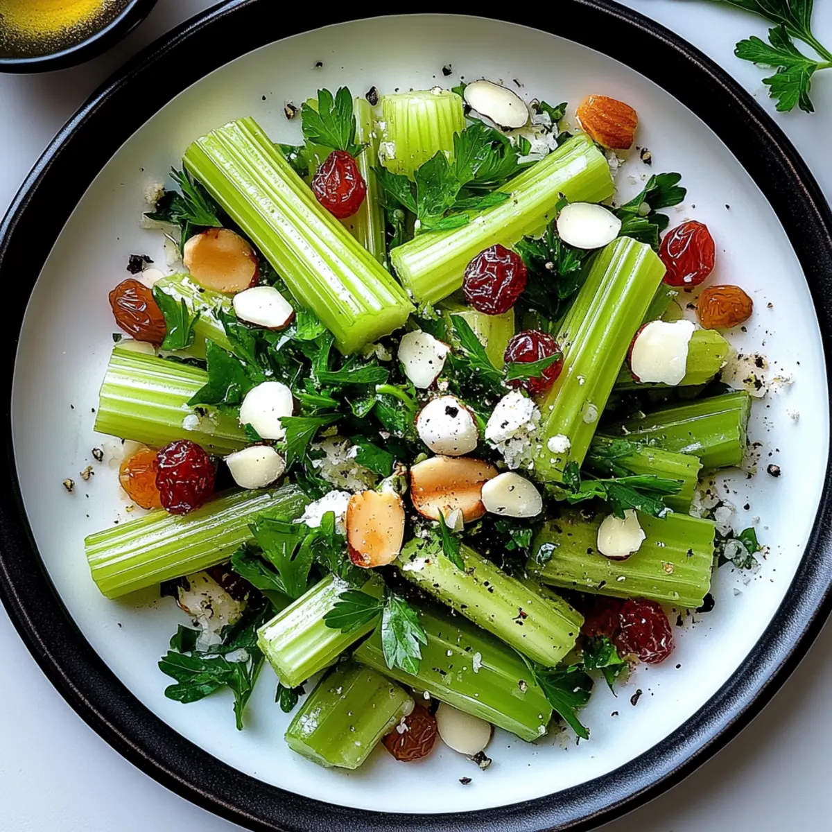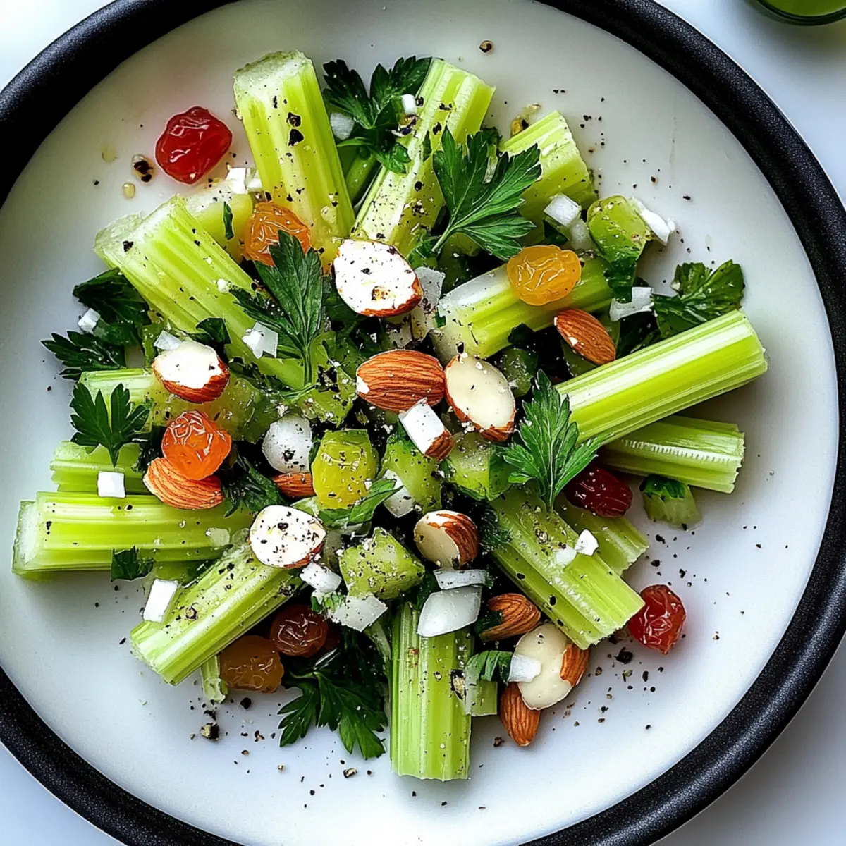 Jump to Recipe Print RecipeAs I sliced through a vibrant stalk of celery, the crisp snap echoed in my kitchen, hinting at the refreshing delight to come. Ina Garten’s Celery Salad transforms this often-overlooked vegetable into a crunchy, herbaceous masterpiece, deserving a spot on your table. With a short prep time, this gluten-free gem is perfect for warm afternoons or as a light lunch, boasting a satisfying texture and just 200 calories per serving. Imagine all the flavor combinations with fresh herbs, sweet golden raisins, and a creamy dressing that brings it all together. You won’t just enjoy this salad; you’ll be reaching for seconds! Ready to give your taste buds a refreshing treat? Why is Ina Garten’s Celery Salad a Must-Try? Vibrant, Crisp Texture: The unique crunch of fresh celery pairs beautifully with slivered almonds, creating a satisfying bite that you’ll love. Herb-Infused Goodness: With fragrant herbs like parsley and tarragon, each forkful bursts with flavor, elevating this dish beyond the ordinary. Versatile Side Dish: Whether you’re enjoying it as a light lunch or serving alongside grilled chicken, this salad adapts effortlessly to any meal. Easy Prep Time: With just a few simple steps, this recipe is beginner-friendly, making it perfect for all home cooks! Nutrient-Packed & Guilt-Free: At roughly 200 calories per serving, indulge in a healthy treat that won’t compromise your diet. If you’re looking for other refreshing options, try my Cucumber Strawberry Salad or Thai Chicken Salad. Ina Garten Celery Salad Ingredients For the Salad Celery – Provides crunch and freshness; wash, trim, and slice on the diagonal to maximize surface area for dressing. Flat-leaf Parsley – Adds a bright herbal note; substitute with other fresh herbs if needed. Tarragon – Offers a slightly anise-like flavor; fresh is preferred, but dried can be used in smaller amounts. Dill – Contributes an aromatic sweetness; as with tarragon, dried dill can be a substitute. Slivered Almonds – Provide a nutty crunch; toast before using to enhance flavor, or swap with walnuts or pecans. Golden Raisins – Add sweetness and chewy texture; substitute with dried cranberries for a tart note. For the Dressing Olive Oil – Acts as the base for the dressing, providing richness; use a quality extra virgin for best flavor. White Wine Vinegar – Adds tanginess; apple cider vinegar can be a substitute. Dijon Mustard – Provides flavor depth and emulsification; yellow mustard can be used if preferred. Honey – Balances acidity with sweetness; maple syrup can replace honey for a vegan option. Salt and Black Pepper – Essential for seasoning and enhancing flavors. With these ingredients at hand, you’re well on your way to creating a delightful Ina Garten Celery Salad that will impress family and friends alike! Step‑by‑Step Instructions for Ina Garten Celery Salad Step 1: Prepare Celery Begin by washing the celery stalks under cool running water to remove any dirt. Trim off the ends and cut the celery diagonally into thin slices, about ¼ inch thick. This technique maximizes surface area for absorption of the dressing. Arrange the sliced celery in a large mixing bowl, allowing their crisp texture to shine. Step 2: Combine Ingredients In the bowl with sliced celery, add in the chopped flat-leaf parsley, tarragon, and dill. Gently toss the herbs with the celery using your hands or a pair of salad tongs until all ingredients are evenly mixed. The fresh herbs will add a vibrant color and aromatic flair to your Ina Garten Celery Salad. Step 3: Add Nuts and Fruit Fold in the toasted slivered almonds and golden raisins to the herb and celery mixture. Make sure to distribute the almonds and raisins evenly throughout the salad, ensuring that every bite is filled with delightful crunch and sweetness. This combination adds both texture and flavor, enhancing the overall deliciousness of the dish. Step 4: Make Dressing In a small mixing bowl, whisk together ¼ cup of olive oil, 2 tablespoons of white wine vinegar, 1 tablespoon of Dijon mustard, and 1 tablespoon of honey until the mixture is smooth and well-blended. The dressing should have a balanced tanginess that will complement the freshness of the celery and herbs in your Ina Garten Celery Salad. Step 5: Dress Salad Drizzle the prepared dressing over the celery mixture in the large bowl. Use salad tongs to gently toss everything together until the celery and herbs are well-coated with the dressing. This ensures that the flavors meld beautifully, giving each bite an exciting burst of taste. Step 6: Season Sprinkle salt and freshly cracked black pepper over the salad to taste. Start with a little—about ½ teaspoon of salt and a few twists of pepper—and adjust as necessary, tasting as you go. This final touch will enhance all the colors and flavors, making your Ina Garten Celery Salad irresistibly delicious. Step 7: Rest Let the salad rest at room temperature for about 15 minutes before serving. This step is crucial as it allows the flavors to meld together harmoniously, making every mouthful more flavorful and enjoyable. While you wait, you can set the table or prepare any accompaniments. Step 8: Serve Once rested, transfer the salad to a shallow serving bowl. Garnish with a light drizzle of olive oil and an extra sprinkle of freshly cracked pepper for an appealing presentation. Your refreshing Ina Garten Celery Salad is now ready to be enjoyed either chilled or at room temperature. Ina Garten Celery Salad Variations Feel free to get creative with this delightful recipe—customizing it to suit your taste buds and dietary needs! Nut-Free: Omit slivered almonds and use sunflower seeds instead for a crunchy twist, perfect for allergy-friendly options. Cheesy Delight: Add a sprinkle of feta cheese for a creamy richness that complements the crispness of the celery, creating a beautifully balanced flavor. Fruit Fusion: Swap golden raisins for dried 