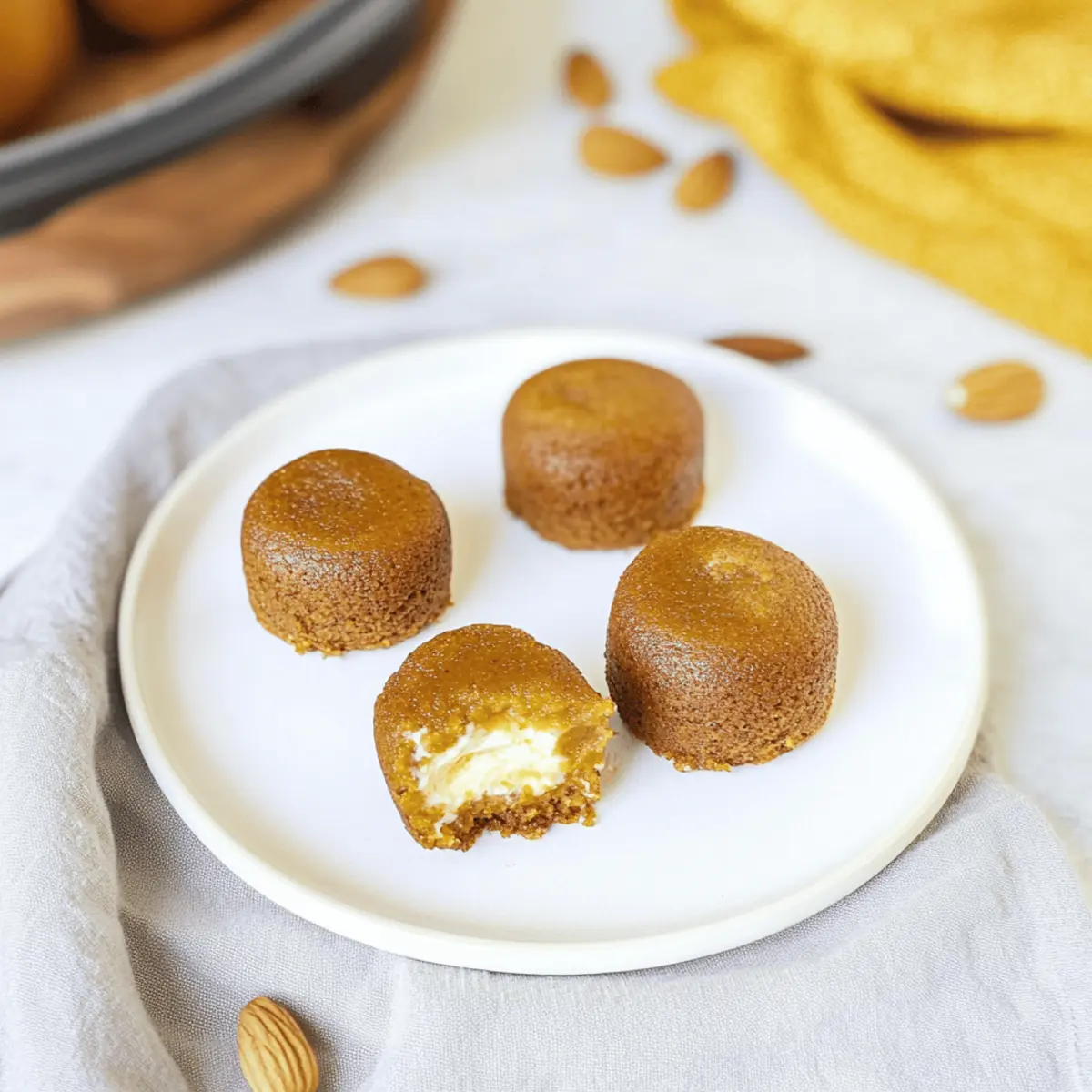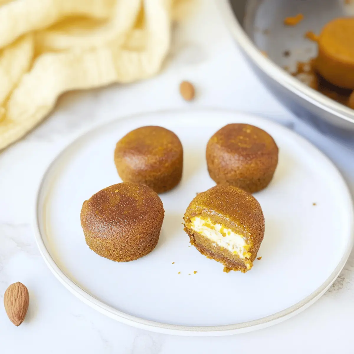 Jump to Recipe Print RecipeAs I peeled back the layers of autumn, a wave of nostalgia echoed through my kitchen filled with the warm, spicy aroma of the season. The star of my culinary adventure today? Instant Pot Pumpkin Bites, a delightful blend of pumpkin pie and cream cheese that’s simply irresistible. Not only are these easy little treats perfect for any holiday gathering, but they also come together in a flash, thanks to my trusty Instant Pot. In just a matter of moments, you can create moist, bite-sized desserts that require no utensils—ideal for both entertaining guests and sneaking a cozy indulgence just for yourself. Ready to dive into the mouthwatering world of pumpkin bliss? Let’s begin! Why are these pumpkin bites a must-try? Irresistible Flavor: Each bite combines the rich taste of pumpkin and cream cheese, creating a dreamy dessert that feels both indulgent and comforting. Quick & Easy: With the Instant Pot, these tasty treats come together in no time, making them perfect for those busy fall days! Versatile Options: Mix it up with chocolate chips or a gingersnap crust for a fun twist on the classic recipe. Check out my Garlic Chili Bites for more creative Instant Pot inspiration! Crowd-Pleaser: These mini pumpkin pies are sure to impress family and friends during the holiday season, perfect for gatherings and cozy evenings alike. No Utensils Needed: Serve them straight from the mold; these delightful bites make entertaining a breeze! Instant Pot Pumpkin Bites Ingredients • Get ready to bake these delightful treats! For the Batter Canned Pumpkin – Provides the main flavor and moisture; you can use fresh pureed pumpkin instead for a homemade touch. Eggs – Aid in binding the ingredients; for a vegan version, substitute with flax eggs (1 tablespoon ground flaxseed + 2.5 tablespoons water per egg). Vegetable Oil – Adds moisture to the batter; can be replaced with melted coconut oil for a dairy-free option. Milk – Increases the batter’s liquid content; use almond or oat milk for a dairy-free choice. Honey – Used for natural sweetness; maple syrup can be used as a vegan alternative for a different taste. Brown Sugar – Provides a caramel-like sweetness and richness; coconut sugar can be used for a healthier option. Pumpkin Pie Spice – Adds warmth and flavor; a mix of cinnamon and nutmeg can effectively replace it. Vanilla Extract – Enhances the flavor profile; you can use almond extract for a unique twist. For the Cream Cheese Filling Cream Cheese – The filling component that adds richness; vegan cream cheese works for a dairy-free version. Powdered Sugar – Sweetens the cream cheese filling; adjust to taste for desired sweetness. Remember, with these Instant Pot Pumpkin Bites, you’ll bring a festive spirit to your kitchen while delighting your taste buds! Step‑by‑Step Instructions for Instant Pot Pumpkin Bites Step 1: Prepare the Cream Cheese Filling In a medium mixing bowl, combine the cream cheese, powdered sugar, and a splash of vanilla extract. Use a hand mixer on medium speed to whip the mixture until it becomes smooth and creamy, about 2–3 minutes. Set the bowl aside, allowing the filling to chill slightly while you prepare the pumpkin batter. Step 2: Mix the Pumpkin Batter In a large bowl, whisk together the canned pumpkin, eggs, vegetable oil, milk, honey, brown sugar, pumpkin pie spice, and vanilla extract until smooth and well-combined. This should take about 2 minutes. The batter should be thick and velvety, with a warm, inviting aroma. Make sure there are no lumps before moving on to the next step. Step 3: Combine Dry Ingredients In a separate bowl, mix together the flour, baking powder, and a pinch of salt. Gradually fold these dry ingredients into the pumpkin mixture, stirring gently until just combined. Be careful not to overmix; you want the batter to remain light and fluffy, ready to transform into delicious Instant Pot Pumpkin Bites. Step 4: Prepare the Molds Generously spray your silicone egg bites molds with non-stick cooking spray to prevent sticking. This is a crucial step for ensuring that your pumpkin bites come out easily once cooked. Place the prepared molds on a baking sheet for stability, allowing for easy transfer to the Instant Pot. Step 5: Layer the Batter and Filling Pour half of the pumpkin batter into each mold, filling them about halfway. Next, drop a spoonful of the cream cheese filling in the center of each mold, making sure it doesn’t touch the edges. Top with the remaining pumpkin batter, filling them about three-quarters full to allow for rising during cooking. Step 6: Swirl the Cream Cheese Using a toothpick, gently swirl the cream cheese filling into the batter to create a beautiful marbled effect. This will enhance the visual appeal of your Instant Pot Pumpkin Bites and ensure a delightful cream cheese flavor in every bite. Step 7: Cover the Molds Seal the molds tightly with silicone lids or aluminum foil to prevent moisture from interfering with the texture of your pumpkin bites. Make sure the covering is secure, as this will help maintain the perfect consistency while they cook in the Instant Pot. Step 8: Setup the Instant Pot Pour 1 cup of water into your Instant Pot and place the trivet inside. Carefully stack the prepared molds on top of the trivet, making sure they’re stable. Close the lid securely, ensuring the vent is sealed, and set your Instant Pot to cook on High Pressure for 10 minutes. Step 9: Release and Cool Once the cooking time is complete, allow the Instant Pot to release pressure naturally for 10 minutes, then manually release any remaining steam. Open the lid carefully, allowing the fragrant aroma of pumpkin to fill your kitchen. Remove the molds using tongs and place them on a cooling rack. Step 10: Unmold and Serve After letting the pumpkin bites cool for a few minutes, gently invert each mold onto a plate to release the treats. Dust with powdered sugar for a festive touch, a