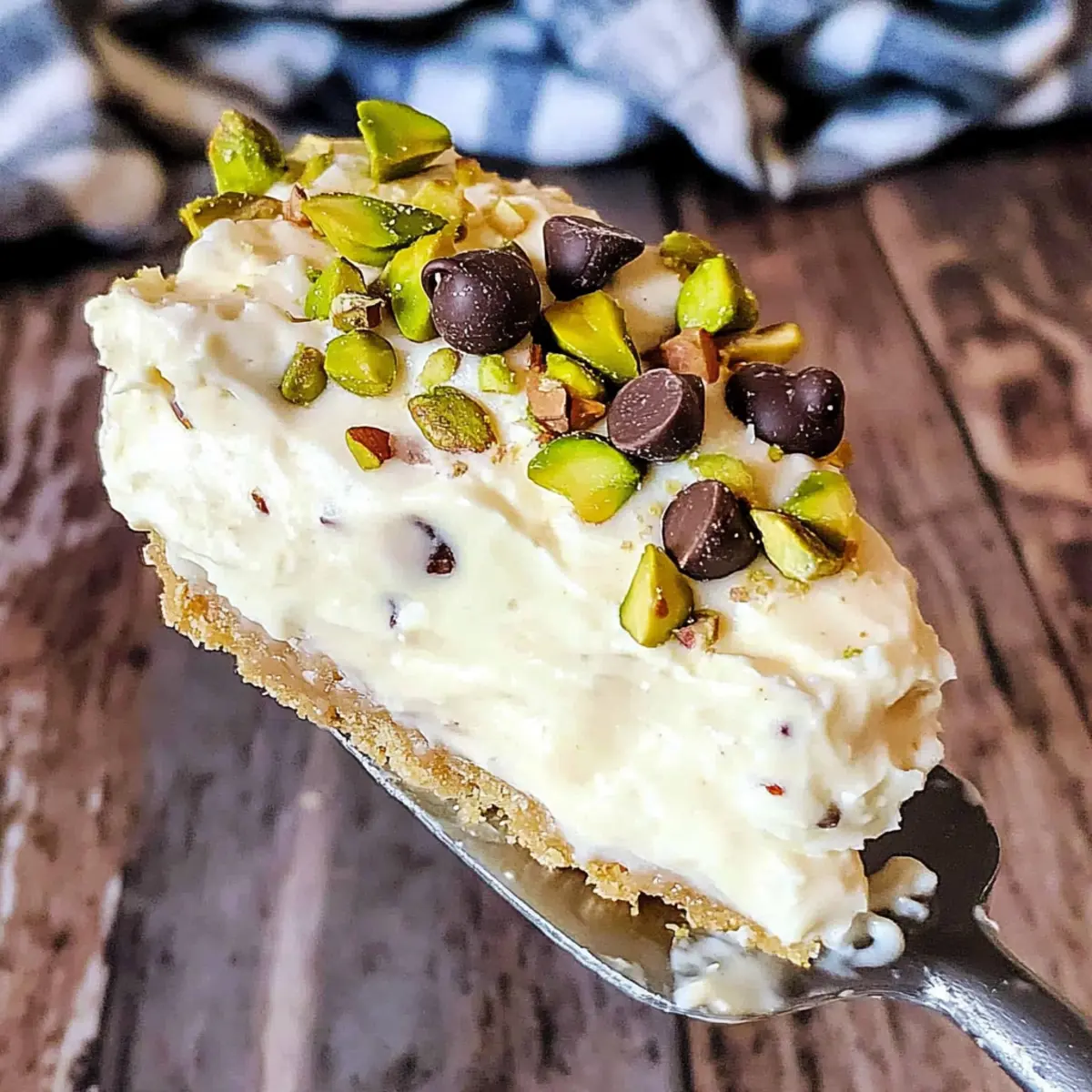 Sprinkle mini chocolate chips and chopped pistachios over the top of the Italian Cannoli Cream Pie for a delightful contrast in texture and flavor. The combination of these toppings not only enhances the visual appeal but also brings additional bursts of sweetness and crunch in each bite.