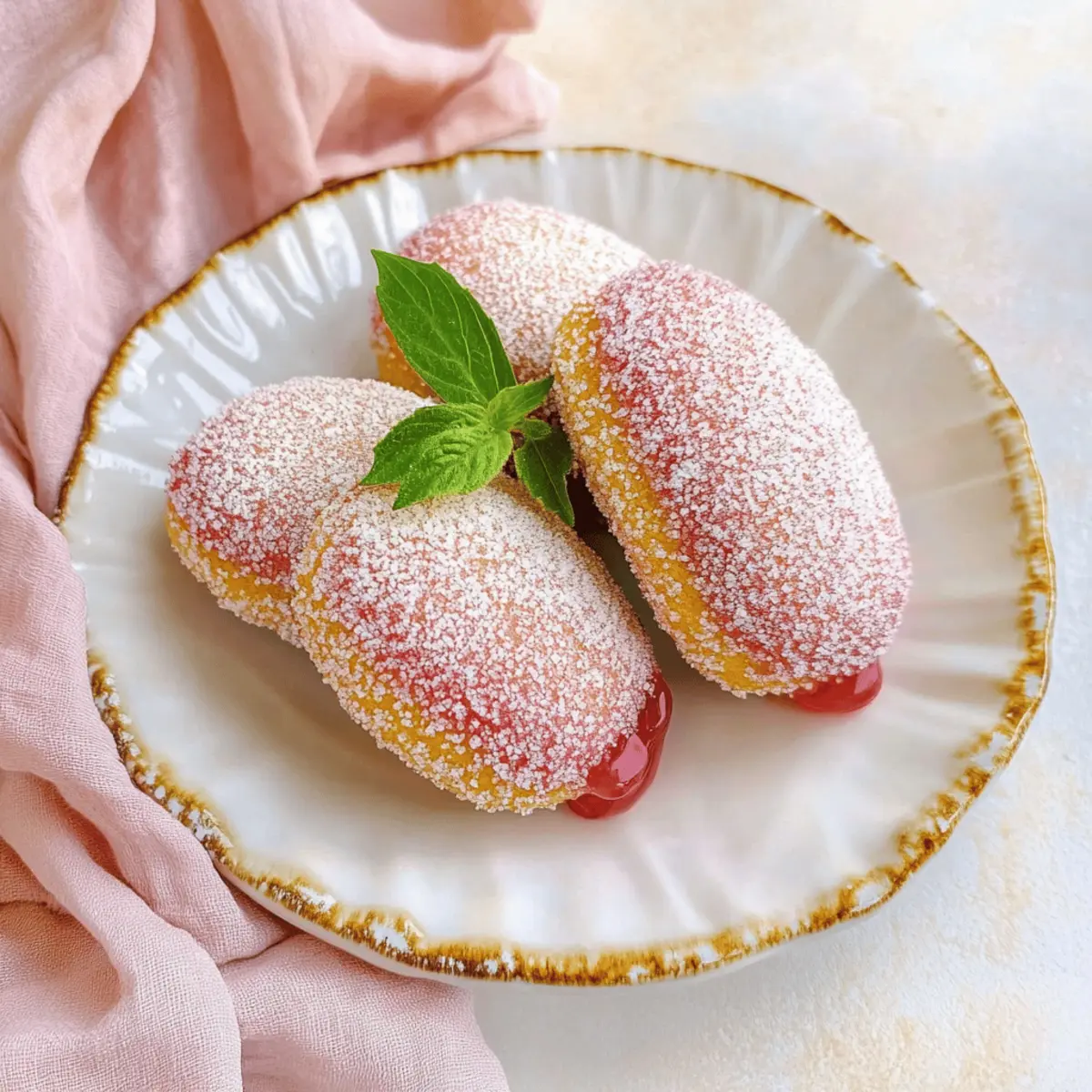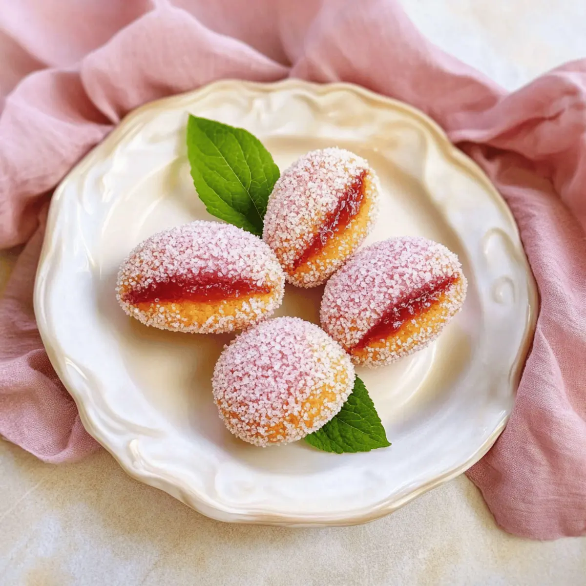 Jump to Recipe Print RecipeStepping into my kitchen feels like embarking on a journey to Italy, where flavors dance and memories are created. Today, I’m thrilled to share my recipe for Italian Peach Cookies, or Pesche dolci, that not only look stunning but are also a breeze to whip up without any advanced baking skills. These delightful cookies offer sweet bursts of peach jam nestled in soft, tender layers, all coated in a sugary crunch that will have your taste buds singing. Perfect for impressing guests at gatherings or treating yourself after a long day, these cookies will quickly become a cherished favorite in your dessert repertoire. Could there be a more satisfying way to bring a touch of Italy to your home? Let’s dive into this charming recipe! Why Will You Love These Cookies? Delightful Presentation: These Italian Peach Cookies are visually stunning, resembling ripe peaches, perfect for adding a touch of charm to any dessert table. Bursting with Flavor: Each cookie is filled with luscious peach jam, creating a delightful balance of flavors that will leave everyone wanting more. Easy to Make: You don’t need advanced baking skills; just follow the straightforward steps to achieve bakery-quality treats at home. Versatile Variations: Feel free to experiment with different fillings or colorings; try swapping peach jam for Italian pastry cream or Nutella for a fun twist! Crowd-Pleaser: Perfect for gatherings, parties, or even a cozy night in with a cup of coffee or tea. You’ll be the star of any occasion with these sweet little delights! Make-Ahead Option: Prep these cookies ahead of time and store them in the fridge for up to five days, making them a convenient choice for busy days ahead. Italian Peach Cookies Ingredients • Get ready to create a delicious masterpiece! For the Cookie Dough Eggs – Provides structure and moisture; use room temperature eggs for easier mixing. Granulated Sugar – Sweetens the dough and helps achieve a crunchy exterior; reserve extra for rolling. Unsalted Butter – Adds richness; make sure to melt it before incorporating into the dough. Vanilla Extract – Enhances flavor, adding a warm aroma to your Italian peach cookies. All-Purpose Flour – Forms the structure of the cookies; spoon and level for perfect measurement. Baking Powder – Ensures the cookies rise nicely, creating a light, fluffy texture. Salt – Balances the sweetness, enhancing the overall flavor profile. For the Filling & Dipping Milk – Adds moisture; blend with red food coloring to mimic the peachy hue. Peach Jam – The star filling, offering a sweet burst of peach flavor in every bite. Red Food Coloring Gel – Creates a beautiful color for dipping, making your cookies resemble real peaches. For the Garnish Mint Leaves – Adds a touch of color and freshness, reminiscent of peach leaves. With these delightful ingredients on hand, you’re all set to embark on a journey to create heavenly Italian Peach Cookies that will bring a smile to everyone’s face! Step‑by‑Step Instructions for Italian Peach Cookies Step 1: Prepare Ingredients Gather all your ingredients for the Italian Peach Cookies, ensuring your eggs are at room temperature for easier mixing. Melt your unsalted butter and set it aside to cool slightly. Having everything ready will help streamline your baking process and keep you organized as you create these delightful treats. Step 2: Preheat Oven Preheat your oven to 350°F (175°C) and line a baking tray with parchment paper to prevent sticking. A well-prepped baking environment is essential for ensuring your cookies bake evenly. You should see the oven light illuminate, signaling the heat is building. Step 3: Mix Batter In a mixing bowl, beat the eggs and granulated sugar together for about 10 minutes until the mixture becomes thick and frothy. Gently stir in the melted butter and vanilla extract until the batter is creamy and smooth. This combination forms the base of your Italian Peach Cookies, creating a sweet and rich flavor. Step 4: Combine Dry Ingredients Sift together the all-purpose flour, baking powder, and salt in a separate bowl. Gradually mix this dry mixture into your wet ingredients, being careful not to overmix. As you blend, add a splash of milk to achieve a soft dough that pulls away from the sides of the bowl, indicating it is ready for the next step. Step 5: Shape Cookies Using a cookie scoop or your hands, shape the dough into small balls and place them on the prepared baking tray, ensuring they are spaced apart to allow for spreading during baking. The dough should look smooth and rounded, ready to transform into delicious cookies. Step 6: Bake Bake the cookies in the preheated oven for approximately 12 minutes or until they are lightly colored and firm on the edges. Keep an eye on them to ensure they don’t brown too much; they should be pale to maintain their tender texture. This is a key moment to capture that ideal bake. Step 7: Hollow & Fill While the cookies are still warm, use a small knife or a spoon to hollow out the centers gently. Once hollowed, fill each cookie generously with peach jam, allowing the warm cookies to absorb the flavor for a mouthwatering bite. This step is what truly defines your Italian Peach Cookies. Step 8: Assemble Carefully press two cookie halves together to create cookie sandwiches, ensuring the peach jam is tucked in between them. You should see the jam peeking out slightly, making each cookie look even more tempting. This assembly is where the magic of the Italian Peach Cookies comes together. Step 9: Finish Appearance Mix red food coloring with the milk, then dip each assembled cookie into the mixture, allowing excess to drip off. Immediately roll the cookies in granulated sugar for that lovely crunch, and garnish with mint leaves to mimic the appearance of peach leaves. It’s the finishing touch that makes these cookies visually stunning! Step 10: Refrigerate For the best texture and flavor, r
