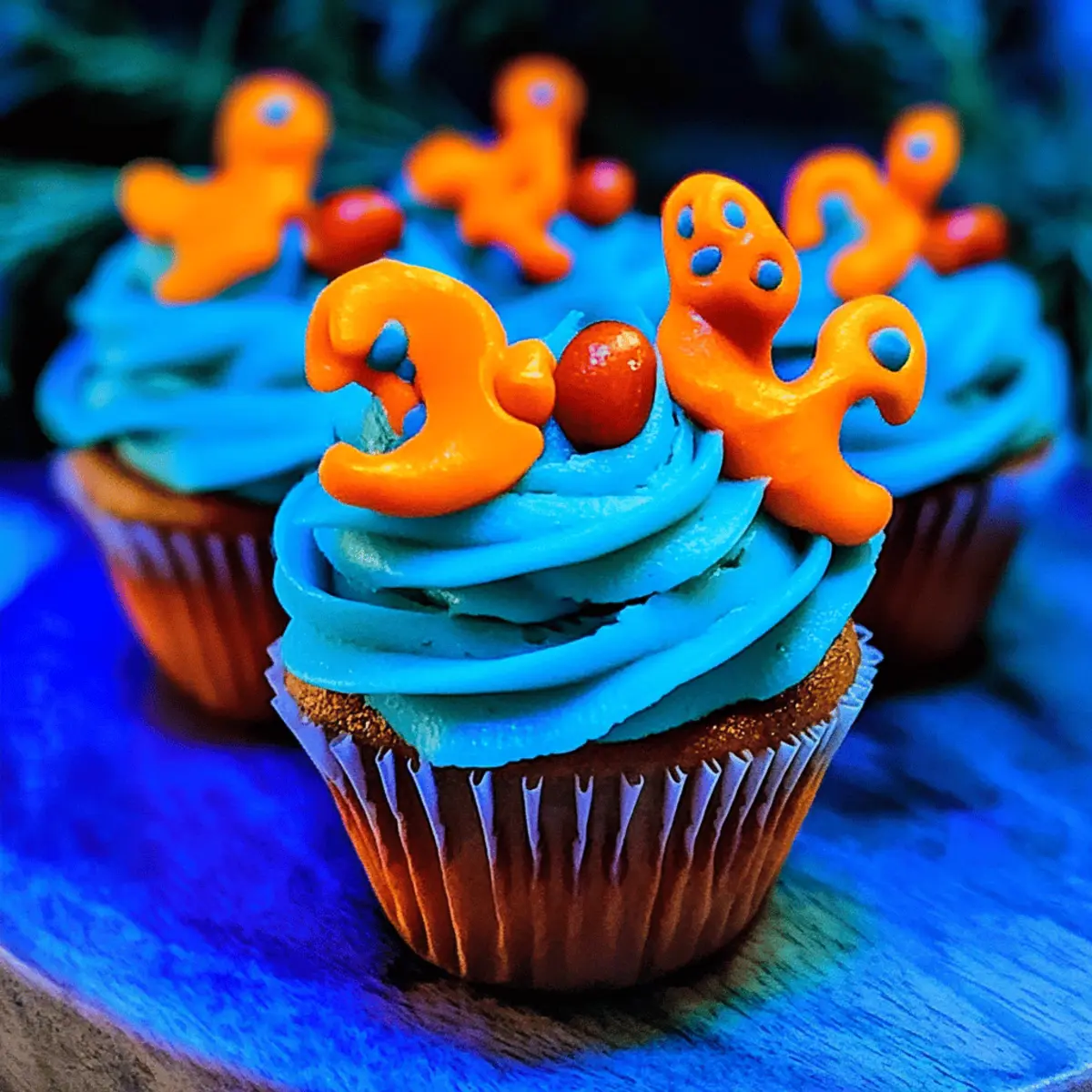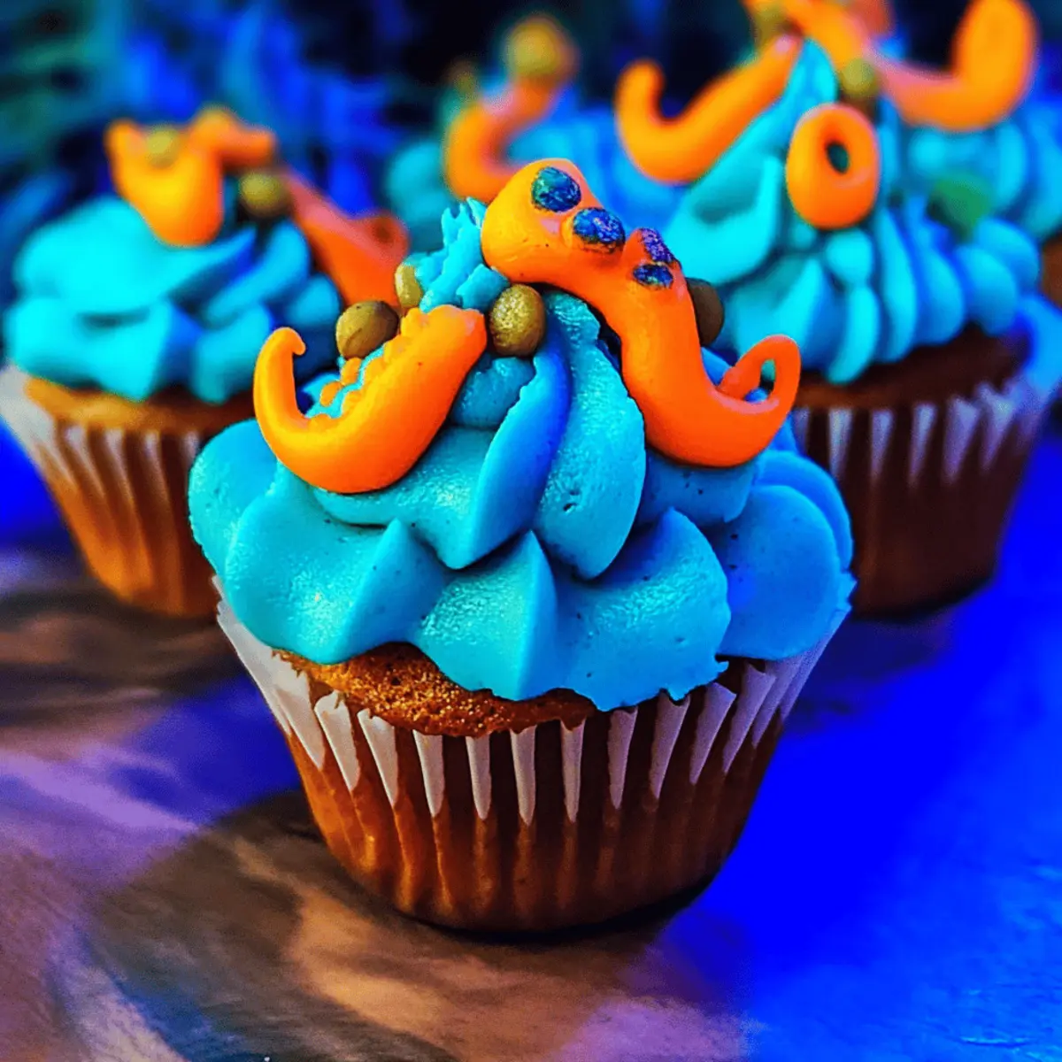 Jump to Recipe Print RecipeAs I browsed through the sea of Halloween treats, a whimsical thought floated to mind: what if I made cupcakes that are as fun to look at as they are to eat? Enter my Kraken Cupcakes—an enchanting blend of spiced rum and raisins, bringing together the flavors of the sea in every bite. These delightful little masterpieces are not only a hit among the kids but also indulge the adult palate, making them the perfect family-friendly Halloween project. With just a touch of creativity and a few ingredients, you’ll whip up moist, flavorful cupcakes topped with colorful fondant tentacles that will surely spark joy at your party. So, are you ready to dive into this baking adventure? Why are Kraken Cupcakes a must-try? Unique twist: These cupcakes fuse spiced rum and plump raisins, crafting a flavor that’s a step above your typical bake. Eye-catching design: Topped with whimsical fondant tentacles, they add a splash of fun to your Halloween table. Perfect for all ages: Both kids and adults will delight in this family-friendly treat! Simplicity: With straightforward steps, the complex flavors come effortlessly. Versatile variations: Experiment with non-alcoholic options or customize designs for other occasions to keep the fun going! Create a memorable experience this Halloween with these delightful Kraken Cupcakes that will surely impress everyone at your gathering! Kraken Cupcakes Ingredients For the Cupcakes • Raisins – Adds sweetness and chewiness; soak in spiced rum for enhanced flavor. • Spiced Rum – Infuses the cupcakes with warm, aromatic depth; use an alcohol-free flavoring if desired. • Unsalted Butter, softened – Provides moisture and richness; ensure it’s at room temperature for easy mixing. • Dark Brown Soft Sugar – Contributes moisture and deep toffee-like flavor; substitute with light brown sugar if needed. • Medium Eggs, lightly beaten – Binds ingredients and adds structure; use room temperature eggs for best results. • Vanilla Extract – Enhances overall flavor; opt for pure extract for the best quality. • Self-Raising Flour – Creates a light and fluffy texture; can substitute with all-purpose flour plus baking powder if necessary. For the Decoration • Orange Fondant Icing – Used for decoration resembling the Kraken’s tentacles; other colors can be used for variety. • Yellow Fondant Icing – Adds detail to the tentacles; optional for an extra flair. For the Frosting • Unsalted Butter (for frosting), softened – Essential for a creamy icing texture; should be softened well. • Icing Sugar, sifted – Sweetens and thickens the frosting; sifting avoids lumps and assures smoothness. • Blue Food Colouring Gel – For creating oceanic hues on decorations; can replace with other colors if preferred. With these Kraken Cupcakes ingredients in hand, you’re ready to bake a spooktacular treat that will be the highlight of any Halloween gathering! Step‑by‑Step Instructions for Kraken Cupcakes Step 1: Preheat the Oven Begin your baking adventure by preheating the oven to 180°C (350°F). While the oven warms, prepare your cupcake cases by placing them in a muffin tin, ensuring they are evenly spaced. This step sets the stage for your Kraken cupcakes to rise beautifully and achieve that fluffy texture. Step 2: Cream the Butter and Sugar In a large mixing bowl, combine the softened unsalted butter and dark brown soft sugar. Use an electric mixer to beat the mixture on medium speed until it becomes creamy and light in color, about 3 to 5 minutes. This process incorporates air, which is essential for making your cupcakes light and airy. Step 3: Add the Wet Ingredients Pour in the spiced rum, add the soaked raisins, lightly beaten medium eggs, and vanilla extract into the butter-sugar mixture. Mix on low speed until everything is well-combined, ensuring no lumps remain. The addition of the rum will deepen the flavor profile, making these Kraken cupcakes irresistibly moist. Step 4: Incorporate the Flour Gradually fold in the self-raising flour using a spatula or wooden spoon. Mix until just combined, being careful not to overwork the batter as this could make your cupcakes dense. The dough should appear thick but smooth, setting you up for a delightful bake. Step 5: Fill the Cases and Bake Carefully pour or spoon the batter into the prepared cupcake cases, filling each about two-thirds full to allow for rising. Place the tin in the preheated oven and bake for 20 to 25 minutes. They’re done when a toothpick inserted in the center comes out clean and the tops are golden brown. Step 6: Cool the Cupcakes Once baked, remove the Kraken cupcakes from the oven and allow them to cool in the tin for about 5 minutes. Then, transfer them onto a wire rack to cool completely. Cooling is crucial to prevent the frosting from melting, ensuring your decoration stays intact and visually appealing. Step 7: Prepare the Frosting In a clean mixing bowl, beat the softened butter and sifted icing sugar until the mixture is light, fluffy, and pale—about 4 to 5 minutes. Gradually add the blue food coloring gel, mixing until you achieve your desired oceanic hue, setting the perfect base for your Kraken cupcake decorations. Step 8: Frost the Cupcakes Once cooled, frost each cupcake generously with the blue buttercream using a piping bag or a simple spatula. Aim for an enticing wave-like effect that mimics the sea, creating a stunning backdrop for your festive designs. Step 9: Decorate with Fondant Using orange and yellow fondant icing, shape the tentacles for each Kraken cupcake. Roll the orange fondant into long, twisted shapes for the tentacles and use the yellow fondant for detailing. Gently press them into the frosted cupcakes, making them playful, fearsome, and utterly unique. Step 10: Serve and Enjoy With your Kraken cupcakes beautifully adorned, they’re ready to be served at your Halloween gathering. These treats are not just visually ca