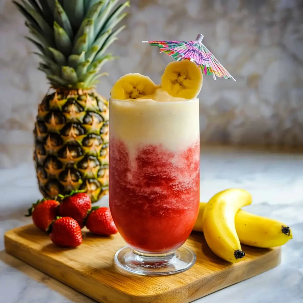 Jump to Recipe Print RecipeAs I stood in my kitchen, the scent of fresh pineapple and coconut wafted through the air, instantly transporting me to my favorite beach destination. The Lava Flow Drink is not just a cocktail; it’s a tropical escape right in your glass, blending the familiar flavors of piña colada and strawberry daiquiri. This vibrant concoction is a breeze to whip up, making it the ultimate choice for summer gatherings or cozy evenings. With its eye-catching layers of fruity red and creamy white, you’ll find it hard to resist. Plus, this delightful drink can easily be transformed into a refreshing virgin version, perfect for all ages! Ready to impress your guests and treat yourself to a slice of paradise? Let’s dive into this refreshing recipe! Why is the Lava Flow Drink So Special? Tropical Flavor Explosion: The combination of pineapple and coconut creates a vibrant taste that transports you to a sun-soaked beach. Simple to Make: Just blend a few ingredients, and you’ve got a drink that looks and tastes like a gourmet cocktail. Eye-Catching Presentation: The stunning layers of red and white make this drink perfect for impressing guests at summer parties or festive gatherings. Versatile Enjoyment: Easily transform it into a virgin drink by swapping out the rum for coconut water. Check out our Vegan Tofu Cauliflower for more refreshing ideas! Family-Friendly: A fun option for all ages, the Lava Flow Drink can be enjoyed by everyone, making it a holiday favorite. Fast and Fun: Whip it up in minutes, giving you more time to enjoy the festivities without the hassle of complicated cocktails! Lava Flow Drink Ingredients • Let’s gather everything you need to create your delicious Lava Flow Drink! For the Strawberry Layer Frozen Strawberries – The primary flavor base that provides sweetness and a vibrant color; fresh strawberries work too if frozen aren’t available. Light Rum – Adds a smooth touch of alcohol; for a non-alcoholic version, replace it with coconut water. Coconut Rum – Enhances the tropical essence; you can mix with more light rum for a bolder flavor or skip it altogether for a virgin variant. For the Banana Layer Banana – Brings creaminess and natural sweetness to the drink; for fewer calories, use half a banana or substitute with yogurt. Cream of Coconut – A crucial ingredient for luxurious texture and tropical flair; coconut milk can be used but will change the creaminess factor. Pineapple Juice – Brightens the flavor profile and adds tartness; using fresh juice boosts the flavor intensity. Ice – Essential for blending this tropical cocktail into a refreshing frozen delight; opt for crushed ice to achieve a silkier drink. Now, you’re just a few steps away from savoring that irresistible Lava Flow Drink! Step‑by‑Step Instructions for Lava Flow Drink Step 1: Blend Strawberry Layer In a blender, combine 1 cup of frozen strawberries, 1 ounce of light rum, and 1 ounce of coconut rum. Blend on high for about 30 seconds, or until the mixture is completely smooth and has a vibrant red color. Once blended, pour this mixture into a tall glass, leaving some space at the top for the next layer. Step 2: Prepare Banana Layer Rinse out the blender to prevent mixing flavors. Add 1 banana, 2 ounces of cream of coconut, 1 ounce of pineapple juice, and 1 cup of ice to the cleaned blender. Blend on high for 30 seconds, or until you achieve a creamy, smooth consistency that resembles a tropical smoothie. Step 3: Create the Lava Effect Carefully layer the banana mixture on top of the strawberry layer in the glass. Pour it gently to allow the banana mixture to float atop the strawberry layer, creating a stunning “lava” effect. Take your time, as this visual layering is key to the beauty of the Lava Flow Drink. Step 4: Garnish and Serve For a festive touch, garnish your Lava Flow Drink with a slice of fresh pineapple and a cocktail umbrella. This adds a playful theme perfect for summer gatherings. Serve immediately to enjoy the vibrant colors and smooth texture, as the drink is best consumed fresh for optimal flavor and consistency. Lava Flow Drink Variations & Substitutions Let your creativity flow and customize this tropical delight in fun and exciting ways! Virgin Option: Replace the rums with coconut water to create a refreshing non-alcoholic version that everyone can enjoy. Yogurt Twist: Swap out the banana for ½ cup of Greek yogurt for a tangy, creamy layer that adds a protein boost—perfect for a healthy twist! Mango Magic: Feel adventurous? Use frozen mango chunks instead of strawberries for a unique flavor profile that transports you to a tropical paradise. Nutty Coconut Delight: Add a splash of almond milk or a dollop of almond butter for a nutty flavor and creamier texture to the banana layer. Zesty Kick: Incorporate a dash of lime juice to the pineapple juice for a zesty brightness that enhances the tropical flavors. Passion Fruit Layer: Mix in some passion fruit puree for an extra fruity layer; the tartness complements the sweetness beautifully. Spicy Option: Spice things up with a pinch of cayenne pepper in the banana layer to give it a surprising kick! Colorful Presentation: Layer in some spinach or kale for a green layer—smooth it in, and you’ll have a vibrant twist that adds a healthful touch! Don’t forget to check out our delightful Roasted Cauliflower Soup or Shells Roasted Cauliflower for more ways to elevate your culinary adventures! What to Serve with Lava Flow Drink Elevate your tropical cocktail experience with delicious pairings that create a feast for the senses. Coconut Shrimp: Crispy and succulent, these delightful bites add a savory crunch that complements the fruity sweetness of the drink. Tropical Fruit Salad: A medley of fresh tropical fruits like mango, kiwi, and papaya enhances the refreshing vibe of your drink. Grilled Pineapple Slices: Charred and naturally sweet, grilled pineapple accentuates the drink’s p