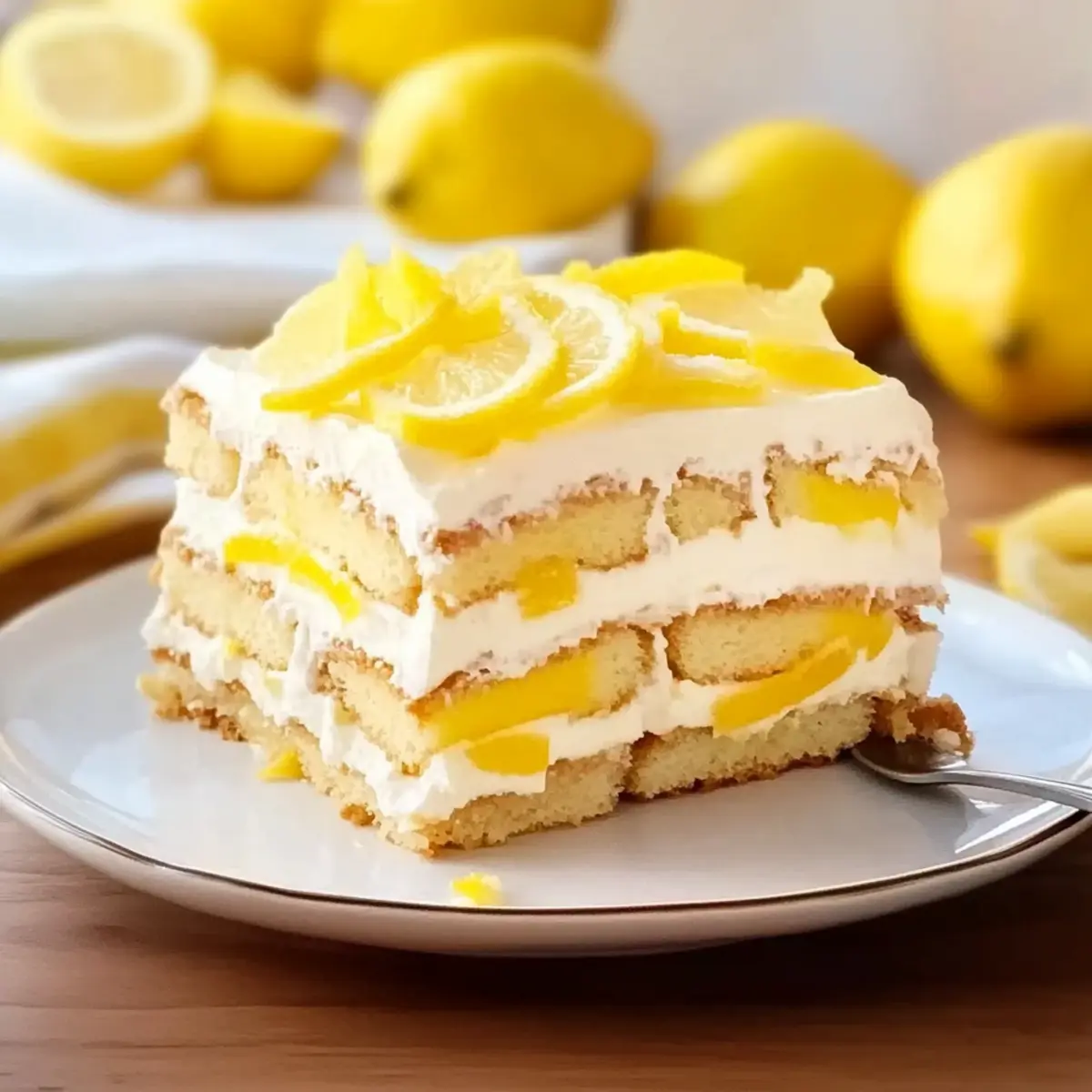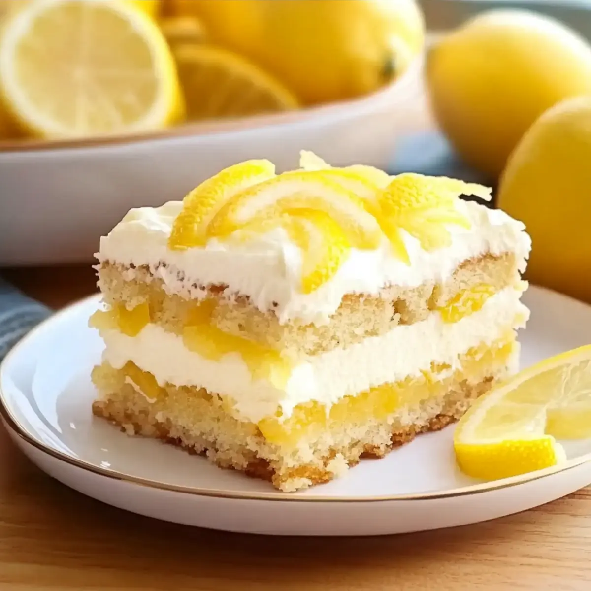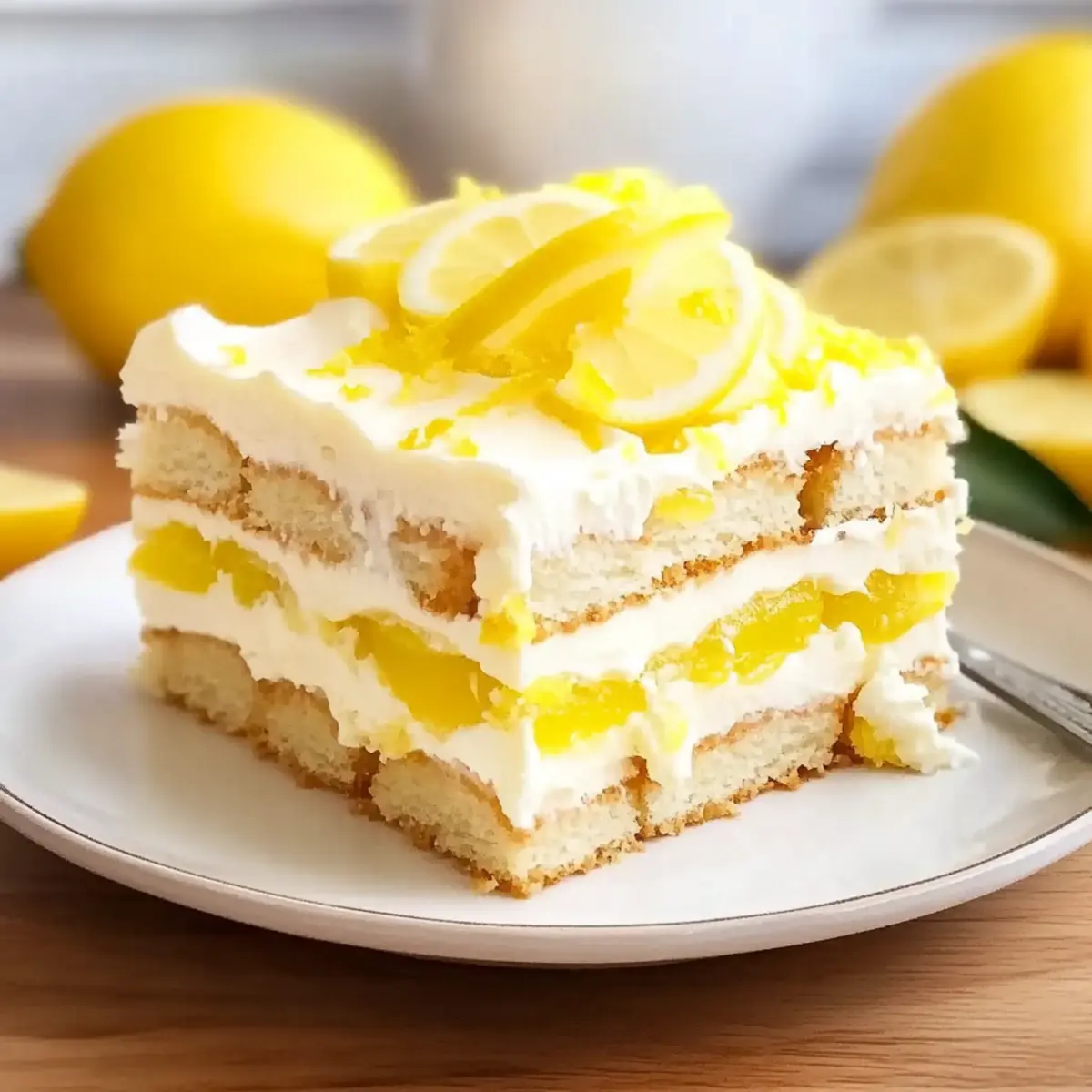 Jump to Recipe Print RecipeAs I poured the refreshing lemon syrup over the delicate ladyfingers, it transported me straight to a sunlit terrace overlooking the Amalfi Coast. This Lemon Tiramisu is my favorite no-bake Italian dessert that captures the essence of summer in every bite. With its creamy lemon mascarpone layer and perfectly soaked ladyfingers, it’s a delightful twist on the classic tiramisu that will impress your friends and family alike. Not only is it an easy dessert to whip up, but its vibrant flavors also make it a refreshing choice for any gathering. Whether you’re hosting an elegant brunch or enjoying a casual summer BBQ, this luminous treat is sure to be a showstopper! Are you ready to bring a taste of Italy into your kitchen? Why is this Lemon Tiramisu unforgettable? Refreshing and Zesty: This no-bake dessert bursts with vibrant lemon flavor, offering a perfect balance of tanginess and sweetness. Easy to Prepare: With no complicated baking required, even novice cooks can impress with this Italian delight. Versatile: Serve it at brunch or pair it with coffee; this dessert shines on any occasion! Make-Ahead Magic: Prepare it a day in advance, letting the flavors meld for a deliciously enticing treat ready when you are. Crowd-Pleaser: Everyone will rave about this unique spin on tiramisu, making it a perfect addition to your dessert table. Once you savor this Lemon Tiramisu, you’ll be inspired to try more delightful dishes like Raspberry Cinnamon Rolls or a refreshing Lemon Arugula Pasta. Get ready for rave reviews! Lemon Tiramisu Ingredients For the Lemon Syrup • Lemon Juice – Freshly squeezed offers the best bright acidity and flavor. • Water – Used to dilute the lemon syrup for a perfect balance. • Granulated Sugar – Sweetens the syrup; coconut sugar can add a unique touch. For the Mascarpone Cream • Heavy Whipping Cream – Helps create a rich texture; chill before whipping for best results. • Mascarpone Cheese – Essential for authentic creaminess; cream cheese can be a tasty substitute. • Powdered Sugar – Adds sweetness and a fine texture to the mascarpone layer. • Vanilla Extract – Enhances flavor; no substitutes necessary. • Lemon Zest – Fresh zest elevates the lemon flavor in the cream. For Assembly • Ladyfinger Cookies (Savoiardi) – Base for the dessert; dip briefly to avoid sogginess—sponge cake works in a pinch. For Garnish • Garnish (Lemon Zest/Candied Lemon Slices) – Adds a lovely touch and an extra burst of flavor upon serving. This delightful Lemon Tiramisu perfectly combines vibrant citrus notes with creamy goodness, making it a must-try for your next gathering! Step‑by‑Step Instructions for Lemon Tiramisu Step 1: Prepare Lemon Syrup In a saucepan over medium heat, combine freshly squeezed lemon juice, water, and granulated sugar. Stir the mixture until the sugar dissolves completely, which should take around 2-3 minutes. Once dissolved, remove it from heat and let it cool completely at room temperature, ensuring that the syrup is delightful and refreshing for soaking the ladyfingers later. Step 2: Make Mascarpone Cream In a large mixing bowl, whip cold heavy whipping cream with powdered sugar and a splash of vanilla extract until soft peaks form, taking about 4-5 minutes with an electric mixer on high speed. In a separate bowl, beat the mascarpone cheese and freshly grated lemon zest until smooth and creamy. Gently fold the whipped cream into the mascarpone mixture until thoroughly combined, creating a luscious Lemon Tiramisu filling. Step 3: Assemble the Dessert Take the cooled lemon syrup and briefly dip each ladyfinger into it, ensuring they soak just enough without becoming soggy. Lay the dipped ladyfingers in a 9×9-inch dish in a single layer. Spread half of the zesty mascarpone cream over the ladyfingers evenly, then repeat the layering process with another set of dipped ladyfingers followed by the remaining cream, making delightful layers of Lemon Tiramisu. Step 4: Chill Cover the assembled Lemon Tiramisu with plastic wrap or a lid and place it in the refrigerator. Allow it to chill for at least 4-6 hours, but preferably overnight, giving the flavors ample time to meld together. The cooling process is crucial to achieving the perfect creamy texture and zestiness, enhancing the overall enjoyment of this no-bake dessert. Step 5: Serve Once chilled, remove the Lemon Tiramisu from the refrigerator. Before serving, garnish with a sprinkle of fresh lemon zest, a few mint leaves, or some candied lemon slices for an extra touch of elegance. Cut into squares and serve, allowing the refreshing flavor of this Lemon Tiramisu to shine as a perfect dessert for any gathering. Storage Tips for Lemon Tiramisu Fridge: Store your Lemon Tiramisu in the refrigerator for up to 2 days. Cover tightly with plastic wrap to retain its creamy texture and prevent absorption of other fridge odors. Freezer: For longer storage, wrap the dessert tightly in plastic wrap and then in aluminum foil to freeze for up to 1 month. Thaw in the fridge overnight before serving for the best results. Serving: Always serve the Lemon Tiramisu chilled. Garnish with fresh lemon zest or mint leaves right before serving for that extra freshness. Reheating: There’s no need to reheat Lemon Tiramisu; it is best enjoyed cold. If possible, make it a day ahead for enhanced flavor and texture. Lemon Tiramisu Variations & Substitutions Customize your Lemon Tiramisu to suit your taste and dietary needs, bringing an exciting twist to this classic dessert! Dairy-Free: Use a coconut cream or blended silken tofu in place of mascarpone for a rich, non-dairy option. This can elevate the dessert while ensuring everyone can enjoy it. Gluten-Free: Swap ladyfinger cookies for gluten-free sponge cake or gluten-free ladyfingers. It allows those with dietary restrictions to indulge in this delightful treat. Fruit-Infused: Layer fresh berries between the ladyfingers and