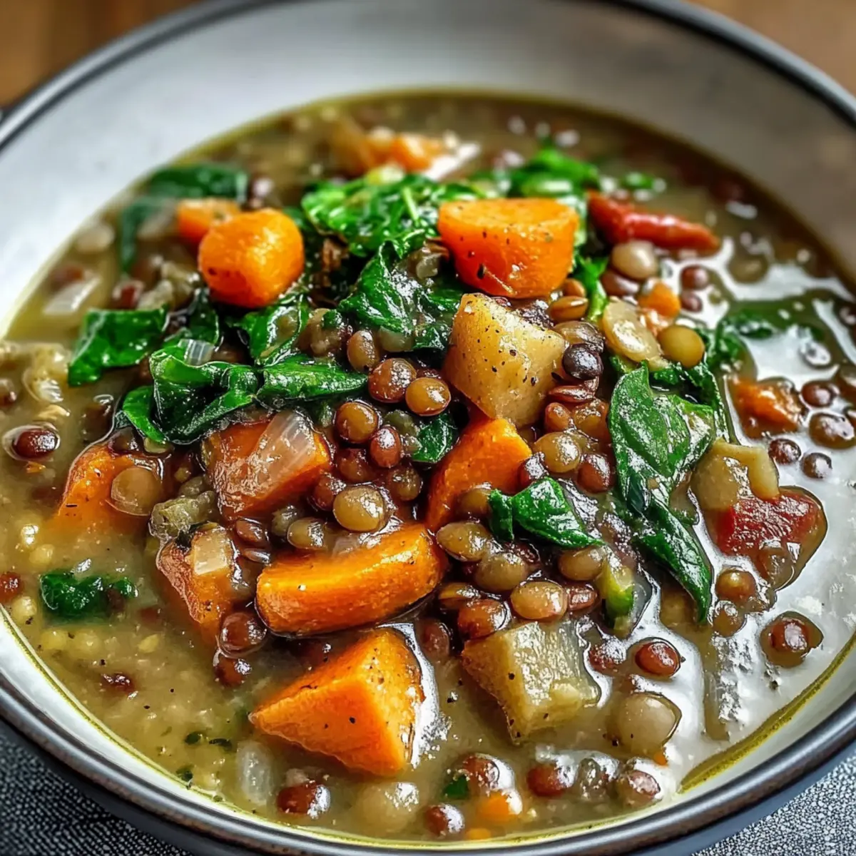Jump to Recipe Print RecipeAs the sun settles into the horizon, the comforting scent of simmering lentils fills my kitchen, casting a warm glow over a busy weekday. This Hearty Vegan Green Lentil Stew with Carrots and Sweet Potatoes is a personal favorite, offering a delicious escape from the time-crunched fast food traps many of us fall into. Made with wholesome, plant-based ingredients, this recipe is not only uncomplicated, allowing for prep in under an hour, but it’s also perfect for those crisp evenings when you want a hearty, nourishing meal. Plus, it’s customizable—whether you toss in some seasonal greens or sprinkle in a hint of smoked paprika, it can easily adapt to your taste. Are you ready to join me on this comforting culinary journey? Why is this stew a must-try? Comforting and Nutritious: This Little Sprout Green Lentil Stew is a wholesome hug in a bowl, packed with plant-based ingredients that nourish without weighing you down. Customizable Delight: With options to mix in various vegetables and spices, feel free to experiment with kale or smoked paprika to match your cravings. Quick and Easy: This stew comes together in under an hour, making it an ideal choice for busy weeknights when you crave a warm meal without the hassle. Crowd-Pleasing: Perfect for family gatherings or cozy nights with friends, this dish will impress even those who usually swear by takeout. Versatile Leftovers: Not only does it store well, but it also freezes beautifully—perfect for meal prep! You’ll love how leftovers can shine just as bright, similar to a Beef Stew Hearty or a flavorful Oyster Stew Deliciously. Dive into a comforting dish that satisfies body and soul! Little Sprout Green Lentil Stew Ingredients For the Stew • Green Lentils – Rinse thoroughly before cooking to remove starch and achieve a clearer broth. • Carrots – Adds a natural sweetness and vibrancy; feel free to substitute with parsnips for a different flavor. • Potatoes (or Sweet Potatoes) – Provide creaminess; sweet potatoes bring an extra layer of sweetness to the dish. • Onion – Essential for creating a deep, aromatic base; don’t skip this ingredient! • Garlic – Fresh minced garlic enhances the stew’s aroma and flavor; the more, the merrier! • Celery – Contributes a slight crunch and earthy notes; can be omitted if you don’t have it on hand. • Vegetable Broth – A quality broth elevates the flavor; opt for natural and additive-free for the best results. • Olive Oil – Needed for sautéing the aromatics; can substitute with coconut or avocado oil if desired. • Dried Thyme – Infuses the stew with herbaceous notes; use fresh thyme for even more flavor if available. • Dried Oregano – Complements the thyme beautifully; it’s optional, but highly recommended to deepen the taste. • Bay Leaf – Adds depth of flavor; remember to remove it before serving to avoid bitterness. Optional Seasonings • Ground Cumin – Introduces warmth and complexity; use if you’re looking for deeper flavor in your Little Sprout Green Lentil Stew. • Salt and Pepper – Essential for seasoning; adjust according to your taste preferences. • Lemon Juice – Brightens the stew and balances the richness; add just before serving for a fresh punch. For Serving • Baby Spinach or Microgreens – Optional for added nutrition and color; stir in at the end for a lovely touch. Get ready to create a dish that will not only nourish your body but your spirit too! Step‑by‑Step Instructions for Little Sprout Green Lentil Stew Step 1: Sauté Aromatic Base Begin by heating 2 tablespoons of olive oil in a large pot over medium heat. Once shimmering, add 1 chopped onion, 3 minced garlic cloves, and 1 diced celery stalk. Sauté for 3-4 minutes until the onion is translucent and fragrant, ensuring the aromatics form a flavorful base for your Little Sprout Green Lentil Stew. Step 2: Build Foundation with Vegetables Next, introduce 2 diced carrots and 2 cubed potatoes (or sweet potatoes) to the pot. Cook for an additional 5 minutes, stirring occasionally, until the vegetables begin to caramelize and their natural sweetness is released. This step adds depth to the overall flavor of your hearty stew. Step 3: Combine Legumes and Liquid Now, stir in 1 cup of rinsed green lentils, ensuring they’re well mixed with the sautéed vegetables. Add 4 cups of vegetable broth, 1 cup of water, 1 teaspoon of dried thyme, 1 teaspoon of dried oregano, 1 bay leaf, and optional 1 teaspoon of ground cumin. Bring the mixture to a gentle boil, enticing aromas will fill your kitchen. Step 4: Simmer Until Tender Once boiling, reduce the heat to low and cover the pot. Allow the stew to simmer for 30-35 minutes, stirring occasionally, until the lentils and vegetables are tender yet hold their shape. You’ll know it’s ready when the lentils have softened and the flavors are beautifully melded together. Step 5: Incorporate Greens After cooking, remove the bay leaf, then stir in a handful of baby spinach or microgreens. Cook for an additional 2-3 minutes until the greens are wilted but vibrant, adding a lovely touch of color and nutrition to your Little Sprout Green Lentil Stew. Step 6: Finish and Season To elevate the flavors, add a splash of fresh lemon juice, stir well, and taste for seasoning adjustments. Feel free to sprinkle in salt and pepper according to your preference, allowing the stew to reach its full flavor potential before plating. Step 7: Plate and Serve Ladle the steaming Little Sprout Green Lentil Stew into deep bowls. For a finishing touch, garnish with fresh herbs if you have them on hand. Serve hot, and enjoy this nourishing dish that brings warmth and comfort to your table on cozy evenings. Little Sprout Green Lentil Stew Variations Feel free to unleash your creativity and make this stew uniquely yours! The comforting aroma of bubbling lentils invites delightful twists. Sweet Potatoes: Swap regular potatoes for swee