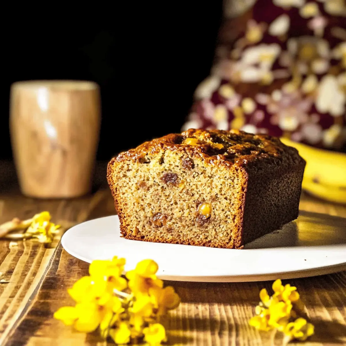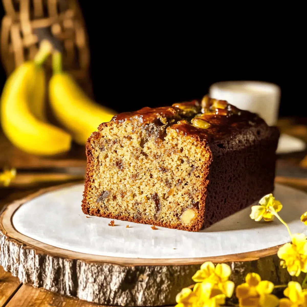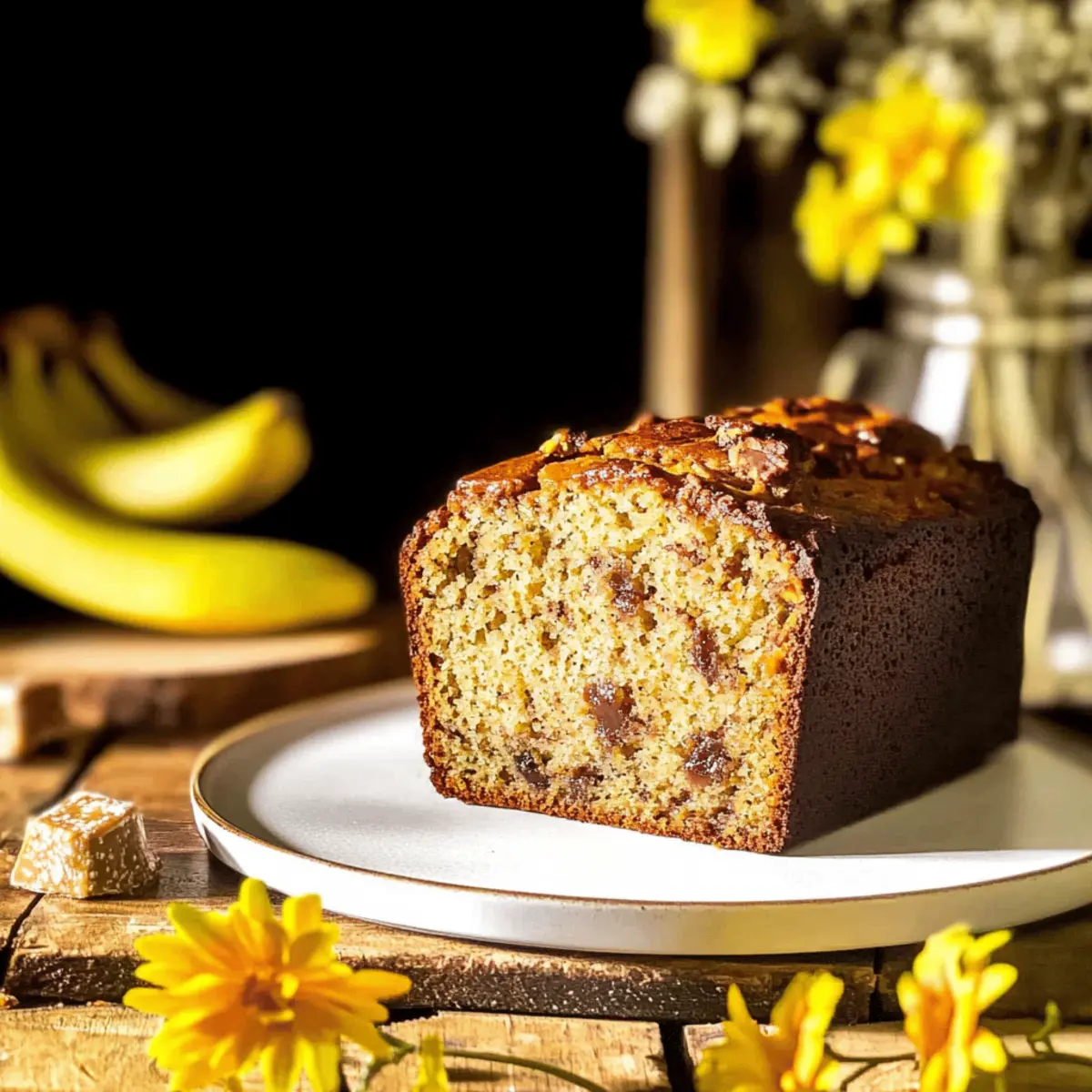 Jump to Recipe Print RecipeThere’s something magical about transforming overripe bananas into a delectable Maple-Bourbon Banana Bread. As I take a whiff of warm spices and rich bourbon wafting through my kitchen, I can’t help but smile. This recipe isn’t just about baking—it’s about creating comfort food that enchants the senses. The combination of bourbon and toffee delivers an incredible moistness complemented by cozy cinnamon and dark brown sugar. With options for both standard and mini loaves, you’ll find this bread to be a quick favorite for brunch or a delightful snack that’s perfect for sharing. Ready to make your kitchen come alive with this sweet flavor adventure? Let’s dive into the steps! Why Is This Banana Bread Irresistible? Decadent, Moist: This Maple-Bourbon Banana Bread is incredibly moist, creating a melt-in-your-mouth experience. Savory Sweetness: The harmony of bourbon and toffee adds a unique depth that elevates it from regular banana bread. Versatile Options: Whether you prefer standard or mini loaves, this recipe caters to all. Easy to Make: With straightforward steps, this is perfect for both novice and seasoned bakers. Perfect for Sharing: Whether at brunch or as an afternoon snack, this bread is sure to impress your friends and family. Serve it warm with a smear of cream cheese and you’ll understand why it’s a beloved comfort food, just like my Banana Split Bars or Garlic Naan Bread! Maple-Bourbon Banana Bread Ingredients For the Batter All-Purpose Flour – Essential for structure; spoon and level for accurate measurement. Baking Soda – A leavening agent that helps your bread rise beautifully. Salt – Balances sweetness and enhances overall flavor—don’t skip it! Cinnamon – Adds warmth; adjust according to your spice preference. Baking Powder – Works together with baking soda for a light, airy texture. White Sugar – Provides sweetness; consider substituting some with dark brown sugar for added richness. Dark Brown Sugar – Brings moisture and depth due to its molasses content. Eggs – Bind the ingredients together while contributing moisture; use room temperature for best results. Vegetable Oil – Ensures tenderness and keeps the loaf wonderfully moist; melted butter is a great alternative. Whole Milk – Enhances moisture; low-fat or plant-based options work too. Bourbon – Offers remarkable flavor complexity; feel free to omit if preferred. Maple Extract – Not a substitute for maple syrup; it adds a concentrated maple flavor that shines. Vanilla Extract – Enriches the overall taste. Mashed Overripe Bananas – The star of the show, providing delicious flavor and necessary moisture—aim for about 5-6 bananas. Chopped Toffee – Adds delightful sweetness and a chewy texture; dark chocolate chips can be a fun alternative. With these ingredients, you’re just steps away from enjoying a home-baked, moist Maple-Bourbon Banana Bread that will surely become a beloved family favorite! Step‑by‑Step Instructions for Maple-Bourbon Banana Bread Step 1: Preheat the Oven Begin your baking adventure by preheating your oven to 350°F (175°C). This is essential for ensuring that your Maple-Bourbon Banana Bread bakes evenly throughout. As the oven warms up, it creates the perfect environment for your ingredients to come together beautifully. Step 2: Prepare Dry Ingredients In a large mixing bowl, whisk together the all-purpose flour, baking soda, salt, cinnamon, and baking powder. This step is crucial as it helps distribute the leaveners and flavors evenly throughout the batter. Set this mixture aside, ready to mingle with the wet ingredients shortly. Step 3: Combine Wet Ingredients In another large bowl, mix the white sugar and dark brown sugar until no lumps remain. Add in the eggs, vegetable oil, whole milk, bourbon, maple extract, and vanilla extract. Whisk until smooth and well combined, creating a rich base for your Maple-Bourbon Banana Bread that will ensure moisture and flavor in every bite. Step 4: Incorporate the Bananas Next, it’s time to add the star ingredients! Stir in the mashed overripe bananas until they are fully incorporated into your wet mixture. You want a uniform consistency, with the bananas blending seamlessly into the batter, contributing moistness and that distinct banana flavor we all love. Step 5: Combine Mixtures Gradually add the prepared dry ingredients to your wet mixture in batches, gently stirring until just combined. Be careful not to over-mix! The goal is to have a cohesive batter; a few lumps are perfectly fine. This ensures your Maple-Bourbon Banana Bread remains delectably moist and tender. Step 6: Add Toffee Gently fold in the chopped toffee, allowing it to distribute evenly throughout the batter. The toffee will add delightful sweetness and a chewy texture to your bread, elevating the flavor profile. This is where the magic happens, and your bake starts to take on a comforting and indulgent character. Step 7: Prepare Pans Coat your chosen loaf pans—whether two standard sizes or eight mini ones—with cooking spray to prevent sticking. This step is often overlooked, but it ensures your Maple-Bourbon Banana Bread releases easily, leaving you with a perfectly shaped loaf ready for cooling and serving. Step 8: Bake Pour the batter into your prepared pans, filling them to about an inch from the top to allow for rising. Bake the mini loaves for 40-45 minutes and the standard loaves for 55-60 minutes, or until a toothpick inserted into the center comes out clean. Your kitchen will fill with a warm, inviting aroma as they bake! Step 9: Cool Once the baking time is up, allow the loaves to cool in their pans for several minutes. This helps them set properly. Then, carefully transfer them to a wire rack to cool completely. Your delicious Maple-Bourbon Banana Bread is now ready to be sliced and savored, perfect for any occasion! Maple-Bourbon Banana Bread Variations Feel free to get creative and cust