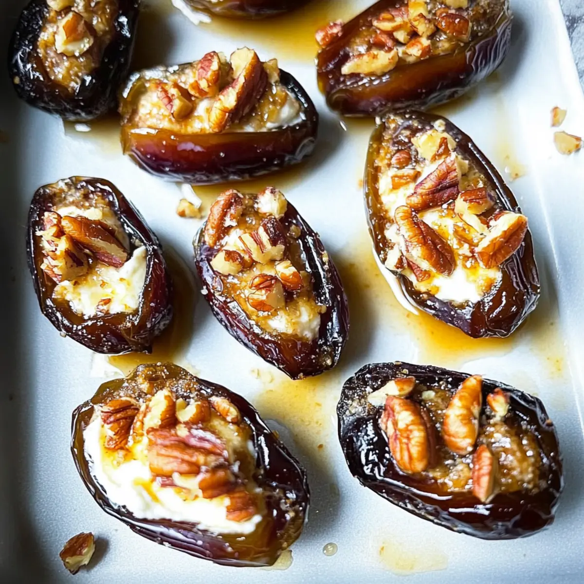 Jump to Recipe Print RecipeAs I unwrapped the bounty of Medjool dates, their glossy, caramel-like surfaces beckoned me with promises of sweetness. I knew I had to elevate these simple fruits into something extraordinary, and that’s how my Easy Mascarpone Stuffed Dates with Maple Drizzle came to life. It’s a dessert that might trick you into thinking it’s a guilty pleasure, but with just four ingredients, it fits perfectly into gluten-free and paleo diets. Not only are they a healthy twist on traditional treats, but they also come together in under 10 minutes—ideal for surprise guests or a quick snack when the sweet tooth strikes! Are you ready to indulge in a little homemade magic that’s sure to impress? Why Are These Dates So Irresistible? Simplicity: With just four ingredients, this recipe is a breeze to whip up, making it perfect for both seasoned chefs and kitchen novices alike. Decadent Flavor: The combination of creamy mascarpone and chewy dates creates a delightful taste that feels indulgent without the guilt. Quick Prep: Ready in under 10 minutes, these treats are a fantastic solution for last-minute gatherings or unexpected sweet cravings. Crowd-Pleaser: Serve them at parties, and watch as everyone falls in love with this gourmet dessert that’s gluten-free and paleo-friendly. Customizable Experience: Feel free to switch up the nuts or drizzle with something unique for your personal touch—making each batch uniquely yours! Mascarpone Stuffed Dates Ingredients • A delightful assembly of flavors awaits! For the Filling Medjool Dates – Sweet and chewy, these dates are the star, providing a rich, caramel-like flavor. Mascarpone Cheese – Luxuriously creamy, this cheese creates a deliciously smooth filling that elevates the dessert. For the Topping Chopped Pecans – The perfect crunchy addition that adds a nutty flavor; walnuts or almonds make great substitutes. Grade A Dark Amber Maple Syrup – A natural sweetener bringing rich flavor; honey can be used as an alternative for an equally delightful result. These Mascarpone Stuffed Dates with Maple Drizzle are a simple yet decadent dessert sure to impress! Step‑by‑Step Instructions for Mascarpone Stuffed Dates with Maple Drizzle Step 1: Preheat the Oven Start by preheating your oven to the broil setting, positioning the rack at the very top. This ensures optimal heat for toasting the dates. While the oven warms up, gather a baking sheet lined with parchment paper to simplify cleanup. The sweet aroma of dates will soon fill your kitchen! Step 2: Prepare the Dates Carefully slice each pitted Medjool date lengthwise, creating a small opening. This step is crucial for stuffing the dates with the luxurious mascarpone cheese. As you slice, take in the beautiful caramel-like color of the dates, which will soon be transformed into a decadent dessert. Step 3: Stuff the Dates Fill each opened date generously with the creamy mascarpone cheese, using a small spoon or a piping bag for precision. Ensure the filling slightly overflows for a delightful presentation. The combination of chewy dates and rich mascarpone will be the star of your Mascarpone Stuffed Dates with Maple Drizzle. Step 4: Add Pecans Sprinkle the chopped pecans on top of the stuffed mascarpone in each date. This adds a crunchy texture that beautifully contrasts with the creamy filling. Feel free to be generous with the nuts, as they deliver a nutty flavor that enhances the dish’s overall taste profile. Step 5: Drizzle with Maple Syrup Arrange the stuffed dates neatly on your prepared baking sheet. Drizzle each date with Grade A Dark Amber maple syrup, ensuring they are well-coated to enhance their irresistible sweetness. The syrup will caramelize in the oven, creating an appealing glaze. Step 6: Broil the Dates Slide the baking sheet into the preheated oven and broil for about 3 minutes. Keep a close eye, as the dates can quickly turn from beautifully golden to burnt. Look for a slight bubbling and golden edges, indicating they are ready to come out. Step 7: Cool and Serve Once broiled, remove the dates from the oven and let them cool slightly for a minute or two. This will allow the flavors to settle and prevent burns. You can serve these delightful Mascarpone Stuffed Dates warm or at room temperature, perfect for sharing! What to Serve with Easy Mascarpone Stuffed Dates with Maple Drizzle? Elevate your dessert experience by pairing these delightful treats with complementary flavors and textures. Creamy Yogurt Parfait: A dollop of Greek yogurt, layered with fresh berries, adds a tart contrast to the sweet dates. The creamy texture enhances the indulgent experience. Salted Caramel Sauce: Drizzling a touch of salted caramel over the dates harmonizes beautifully with the maple syrup, providing a rich and decadent twist. Fresh Citrus Salad: A refreshing salad of citrus fruits like oranges and grapefruits cuts through the sweetness, adding brightness and a burst of flavor to your plate. Coffee or Espresso: A warm cup of coffee or a shot of espresso pairs perfectly with these stuffed dates, providing a delightful balance of flavors for a cozy dessert experience. Chocolate Dipped Strawberries: The sweet, juicy strawberries with a hint of chocolate create a romantic vibe, making this duo the ideal finish for a special occasion. Cheese Platter: Add a cheese board featuring brie or goat cheese for a savory component. The creaminess of the cheese beautifully contrasts with the sweet dates. Dark Chocolate Shavings: Sprinkle dark chocolate shavings over the stuffed dates for an extra layer of sophistication and flavor richness that aligns with the dessert’s theme. Mint Tea: The light and refreshing taste of mint tea serves as a perfect palate cleanser, making it a wonderful beverage option alongside your sweet treats. These combinations not only enhance the flavors of the Mascarpone Stuffed Dates with Maple Drizzle but also create a memorable dining experience. Varia
