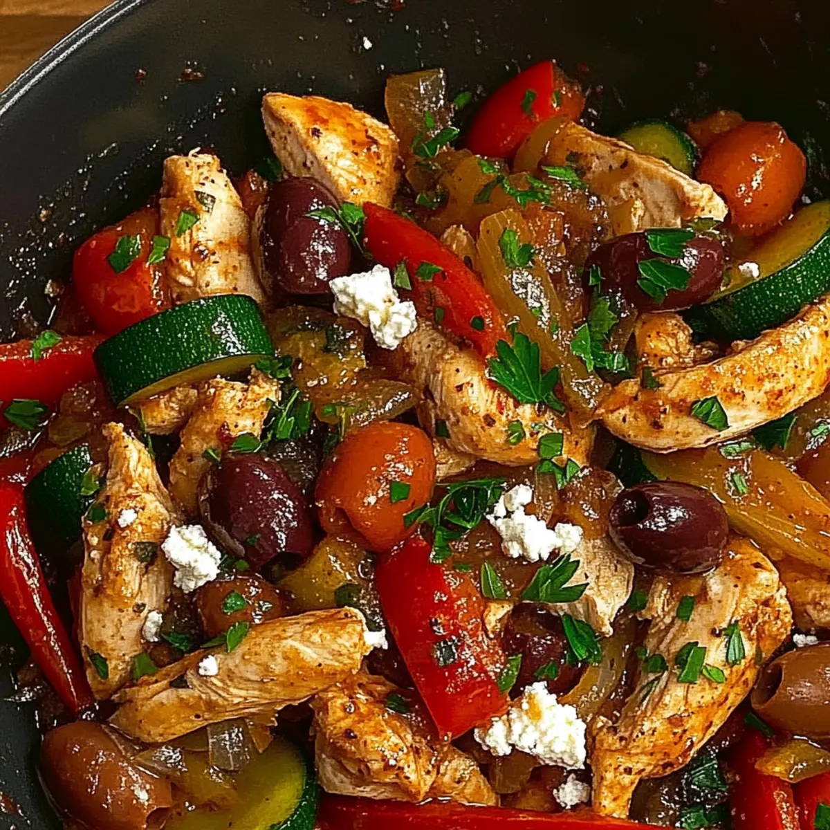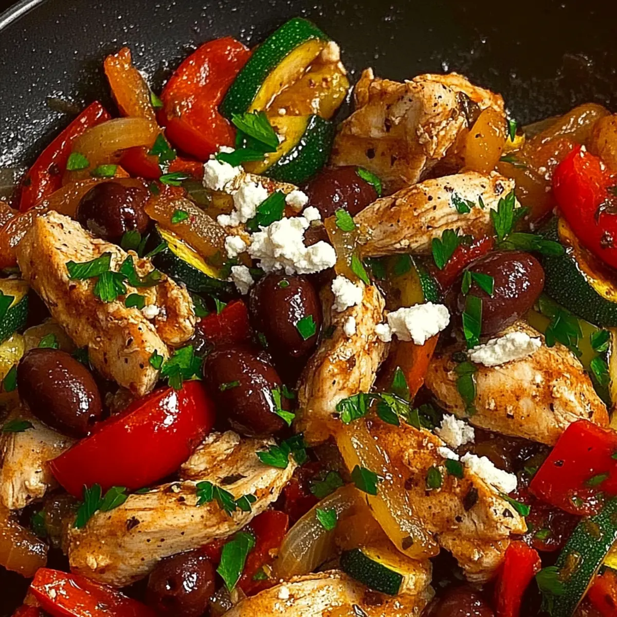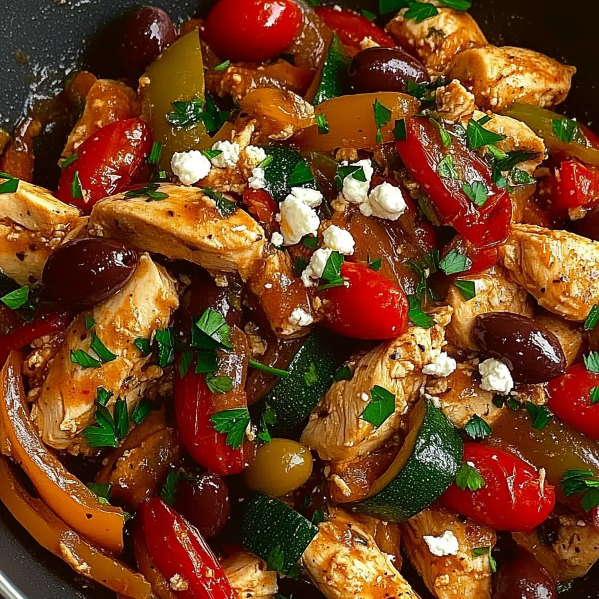 Jump to Recipe Print RecipeIn the hustle and bustle of the week, there’s nothing quite like the magic of a quick dinner that feels like an escape. Enter my Mediterranean Chicken Stir Fry, a vibrant dish bursting with color and flavor. With tender chicken, an array of fresh vegetables, and a zesty lemon kick, this recipe brings a taste of the Mediterranean right to your kitchen. It’s not only healthy and gluten-free, but it also makes for a delightful crowd-pleaser, perfect for busy weeknights or casual gatherings with friends. As you savor each stunning bite, I guarantee the cheerful medley of tastes will lift your spirits and leave you craving more. Curious about how to whip this up in no time? Let’s dive into the recipe! Why is Mediterranean Chicken Stir Fry a Must-Try? Colorful Presentation: The vibrant mix of red bell peppers, zucchini, and cherry tomatoes creates a feast for the eyes, tantalizing your guests before they even take a bite. Quick and Easy: In just 30 minutes, you can whip up a flavorful meal that fits seamlessly into your busy schedule. Healthy Benefits: Packed with lean protein and fresh vegetables, this dish is not only gluten-free but also a nutritious choice for any dinner table. Versatile Options: Customize your stir fry by swapping chicken for shrimp or chickpeas, or experimenting with seasonal veggies like asparagus. Deliciously Flavorful: With a zesty lemon kick and creamy feta, this stir fry brings Mediterranean magic to your plate, making it a surefire crowd-pleaser. Why not serve it over fluffy quinoa or as a fresh salad with a side of warm pita bread for an even heartier meal? This Mediterranean Chicken Stir Fry is bound to become a family favorite! Mediterranean Chicken Stir Fry Ingredients For the Chicken Chicken breasts, boneless & skinless – The main protein source; substitute with tofu for a vegetarian option. For the Vegetables Zucchini – Adds texture and mild sweetness; substitute with seasonal vegetables like asparagus. Red bell peppers – Provides sweetness and color; other bell peppers can be used as well. Red onion – Adds sweetness and depth; can be replaced with yellow onion. Cherry tomatoes – Offers juiciness and vibrant color; you can use diced regular tomatoes if needed. Garlic – Essential for aroma and savory flavor; garlic powder can be used if fresh isn’t available. Kalamata olives – Boosts the dish with a tasty briny touch; swap with other olives if desired. For the Flavor Extra virgin olive oil – Great for cooking and adds flavor; can substitute with canola oil for a different taste. Dried oregano, basil, and thyme – Use these herbs for a lovely Mediterranean flavor; Italian seasoning can be a convenient alternative. Sun-dried tomatoes – Adds richness and umami; use more fresh tomatoes if necessary. Salt & black pepper – Essential for seasoning and flavor balance; adjust to your liking. For the Finishing Touches Lemon – Provides acidity and freshness; crucial for brightening the dish’s flavors. Feta cheese – Adds creaminess and a salty element; omit for a dairy-free version or use a vegan cheese. Fresh parsley – An optional garnish that enhances color and flavor. As you gather these delightful ingredients for your Mediterranean Chicken Stir Fry, you’re well on your way to creating a quick and satisfying dinner that everyone will love! Step‑by‑Step Instructions for Mediterranean Chicken Stir Fry Step 1: Prep Ingredients Start by washing and chopping all your vegetables and chicken into similarly sized pieces, ensuring even cooking. Dice the chicken breasts into bite-sized chunks, and slice the zucchini, red bell peppers, and red onion. Halve the cherry tomatoes and mince the garlic. This preparation will streamline your cooking process, bringing your Mediterranean Chicken Stir Fry to life smoothly. Step 2: Cook Chicken In a large skillet, heat 2 tablespoons of extra virgin olive oil over medium-high heat. Once the oil is shimmering, season the chicken pieces with salt and black pepper, then add them to the skillet. Sear the chicken for about 6-8 minutes, or until golden brown and fully cooked, stirring occasionally. Once done, remove the chicken from the skillet and set it aside for later. Step 3: Sauté Vegetables In the same skillet, drizzle in the remaining olive oil and turn down the heat slightly. Add the diced red onion and minced garlic, sautéing for around 2 minutes until fragrant. Next, toss in the zucchini, red bell peppers, and cherry tomatoes. Cook everything for 4-5 minutes, allowing the vegetables to become tender but still crisp, creating a colorful base for your Mediterranean Chicken Stir Fry. Step 4: Combine Once the vegetables are cooked to your liking, return the seared chicken to the skillet. Add in the sun-dried tomatoes, dried oregano, basil, and thyme, mixing well to incorporate all the flavors. Season the mixture to taste with additional salt and pepper if desired. This combination will infuse the Mediterranean Chicken Stir Fry with vibrant flavors that enhance every bite. Step 5: Finish To bring everything together, squeeze the juice of one fresh lemon over the stir fry. Gently fold in the Kalamata olives and crumbled feta cheese, allowing the cheese to soften slightly. Cook everything together for another 2 minutes to heat through, ensuring that all the ingredients are well combined. Your Mediterranean Chicken Stir Fry should now be colorful and aromatic, ready to serve hot! Step 6: Serve and Garnish Serve the Mediterranean Chicken Stir Fry immediately, garnished with fresh parsley for a pop of color and flavor. This dish pairs wonderfully over fluffy quinoa or brown rice for a wholesome meal. Enjoy the delightful medley of flavors while savoring the vibrant essence of the Mediterranean in each bite! How to Store and Freeze Mediterranean Chicken Stir Fry Fridge: Store leftovers in an airtight container for up to 3-4 days. This will keep your Mediterranean Chicken Stir F