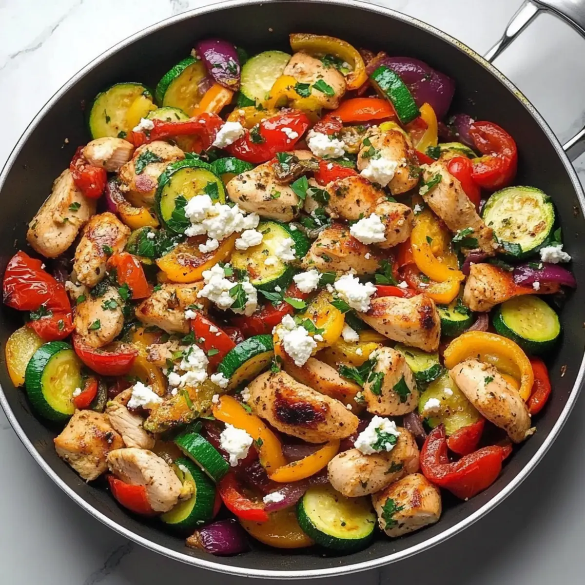 Jump to Recipe Print RecipeWalking into my kitchen, I can almost hear the sun-soaked shores of the Mediterranean calling me. The tantalizing aroma of garlic and sautéing vegetables fills the air, bringing comfort and warmth to my busy weeknight routine. This Quick Mediterranean Chicken Stir Fry is not only a joyful escape into flavor but also a lifesaver for those evenings when time is of the essence. With fresh, vibrant ingredients that can be whipped up in just 30 minutes, it’s a nourishing option that will impress your family and satisfy your cravings. Plus, it’s a one-pan meal, making cleanup a breeze! Who wouldn’t want to dive into a bowl of tender chicken, colorful veggies, and the delightful tang of feta? Ready to discover how effortlessly delicious homemade cooking can be? Let’s dive in! Why is Mediterranean Chicken Stir Fry a must-try? Simplicity at its finest: This one-pan wonder can be pulled together in just 30 minutes, making it a perfect weeknight solution. Vibrant flavors of the Mediterranean shine through every bite, thanks to the marinated chicken, fresh vegetables, and zesty lemon. Versatile base: Easily customize with seasonal veggies or your favorite protein options, making it suitable for various dietary needs. Healthy & hearty: Packed with lean protein and nutritious ingredients, this dish fits wonderfully into a balanced diet, appealing to health-conscious cooks. Crowd-pleasing appeal: Its bright colors and enticing aroma will make this stir fry a hit at the dinner table, leaving everyone asking for seconds! For more quick and easy dishes, be sure to check out our one-pan recipes. Mediterranean Chicken Stir Fry Ingredients • Let’s gather what you need for this delicious dish! For the Chicken • Chicken breasts (1.5 lbs) – Cut into uniform bite-sized pieces for even cooking. For the Veggies • Zucchini (2 medium) – Sliced into half-moons for moisture and color. • Red bell peppers (2) – Diced into chunks for sweetness and crunch. • Red onion (1 large) – Sliced into strips to provide sweetness and aroma. • Cherry tomatoes (2 cups) – Halved, offering juicy pops of flavor. • Kalamata olives (1 cup) – Pitted and halved for a briny kick. For Cooking • Extra virgin olive oil (3 tbsp) – A healthy fat perfect for sautéing that adds flavor. • Garlic (4 cloves) – Minced for a fragrant base. • Salt & black pepper – Adjust to taste for enhanced flavor. For the Flavor Boost • Sun-dried tomatoes (¼ cup) – Chopped for a concentrated flavor enhancer. • Dried oregano (2 tsp) – An herbaceous touch that can be adjusted to your liking. • Dried basil (1 tsp) – Adds depth; optional for added flavor. • Dried thyme (½ tsp) – Optional, lending subtle earthiness. • Lemon (Juice of 1) – Brightens the dish when added at the end. For the Finish • Feta cheese (½ cup) – Crumbled for a creamy texture. • Fresh parsley (2 tbsp) – Optional garnish that adds freshness to each serving. With these ingredients, you’re just a step away from crafting a delightful Mediterranean Chicken Stir Fry that everyone will love! Step‑by‑Step Instructions for Mediterranean Chicken Stir Fry Step 1: Prep Ingredients Begin by ensuring all your ingredients are ready for the Mediterranean Chicken Stir Fry. Chop the chicken breasts into uniform bite-sized pieces for even cooking. Slice the zucchini into half-moons, dice the red bell peppers and red onion, and halve the cherry tomatoes. Measure out the olives, garlic, and sun-dried tomatoes, gathering everything neatly to streamline your cooking process. Step 2: Cook Chicken In a large skillet, heat 3 tablespoons of extra virgin olive oil over medium-high heat. Once the oil shimmers, add the chicken pieces and season with salt and black pepper. Sear the chicken for about 5-7 minutes, stirring occasionally, until they turn golden brown and reach an internal temperature of 165°F. Remove the chicken from the skillet and set aside, keeping it warm. Step 3: Sauté Aromatics In the same skillet, reduce the heat to medium and add the sliced red onion and minced garlic. Sauté for 2-3 minutes until the onions become translucent and fragrant, releasing comforting aromas that will enhance your Mediterranean Chicken Stir Fry. Stir occasionally to prevent burning and ensure even cooking. Step 4: Add Vegetables Next, stir in the zucchini, red bell peppers, and cherry tomatoes into the skillet. Cook for about 5 minutes, allowing the vegetables to soften while retaining some crunch. Look for the bright colors to intensify as they become tender. Stir them gently to mix with the aromatic onion and garlic, getting the flavors combined. Step 5: Combine and Season Return the cooked chicken to the skillet, mixing it with the sautéed vegetables. Add the Kalamata olives, chopped sun-dried tomatoes, dried oregano, basil, and thyme. Toss everything together well, allowing the ingredients to heat through for 3-4 minutes. Make sure the flavors meld beautifully in this Mediterranean Chicken Stir Fry. Step 6: Finish with Lemon and Cheese Remove the skillet from heat and squeeze the juice of one lemon over the stir fry to brighten the flavors. Sprinkle crumbled feta cheese and chopped fresh parsley on top of the dish, adding extra creaminess and freshness. Serve immediately while warm, showcasing the vibrant colors and delightful aromas of this quick Mediterranean Chicken Stir Fry. Mediterranean Chicken Stir Fry Variations Get creative with your Mediterranean Chicken Stir Fry by adding your own twist for an exciting flavor adventure! Veggie Boost: Incorporate fresh spinach (2 cups) in the last minute of cooking for added nutrition and vibrant green color. Rich Flavor: Replace cherry tomatoes with sun-dried tomatoes for a deeper, more concentrated culinary experience. Low-Carb Option: Swap out regular rice for cauliflower rice to keep things low-carb while enjoying a hearty meal. Tangy Twist: Enhance the dish with artich