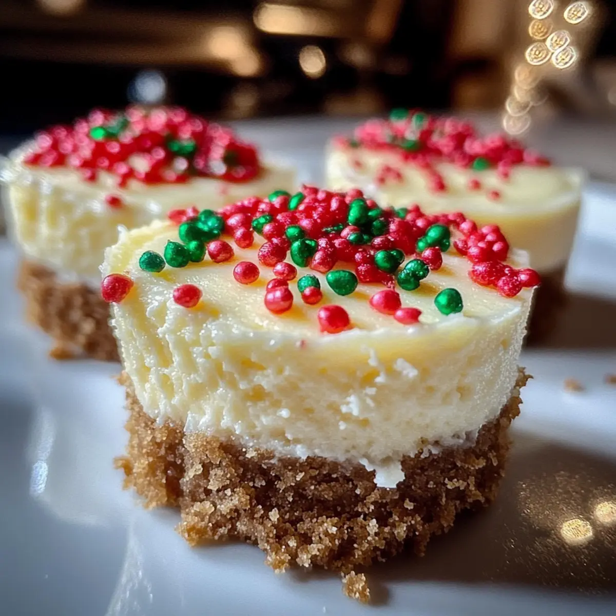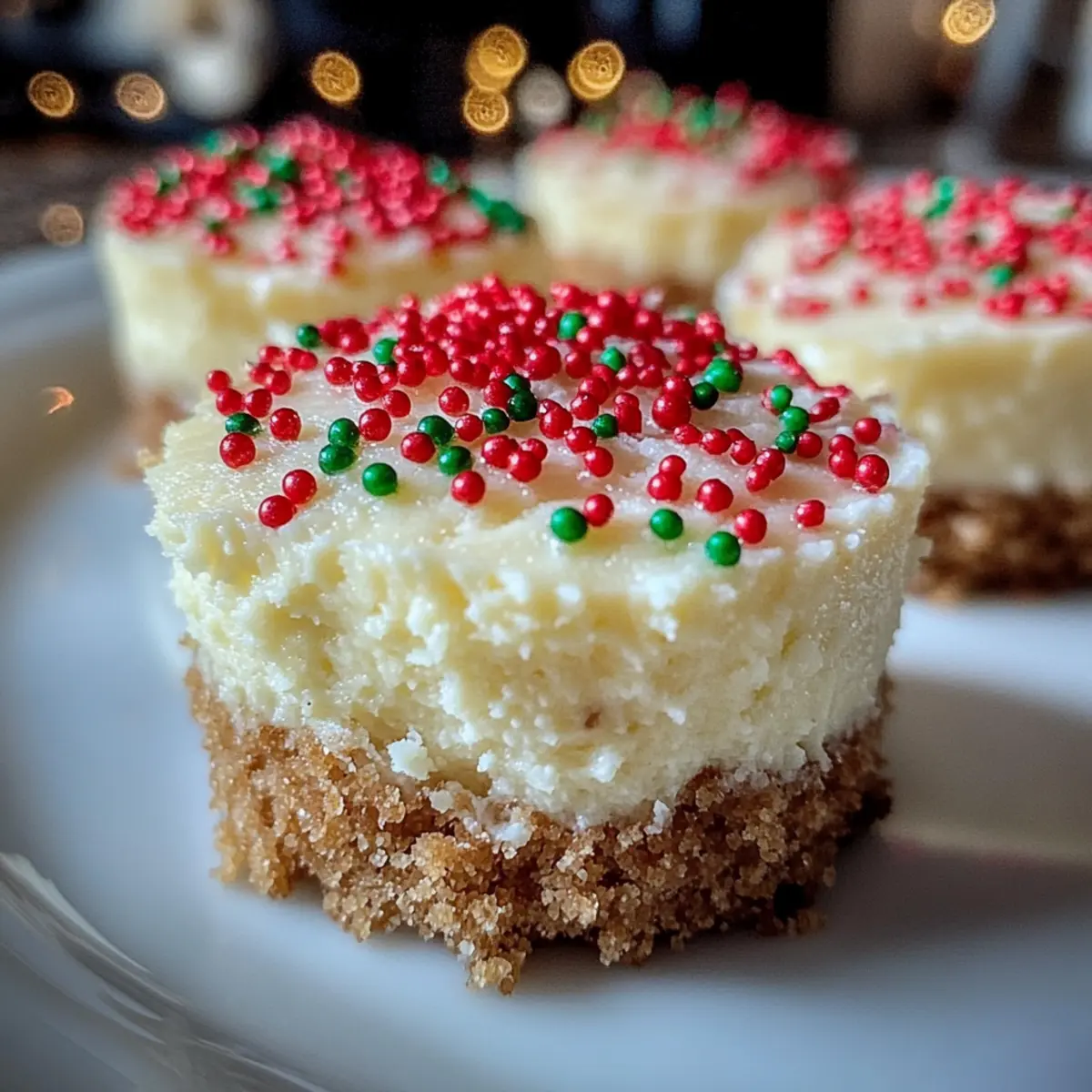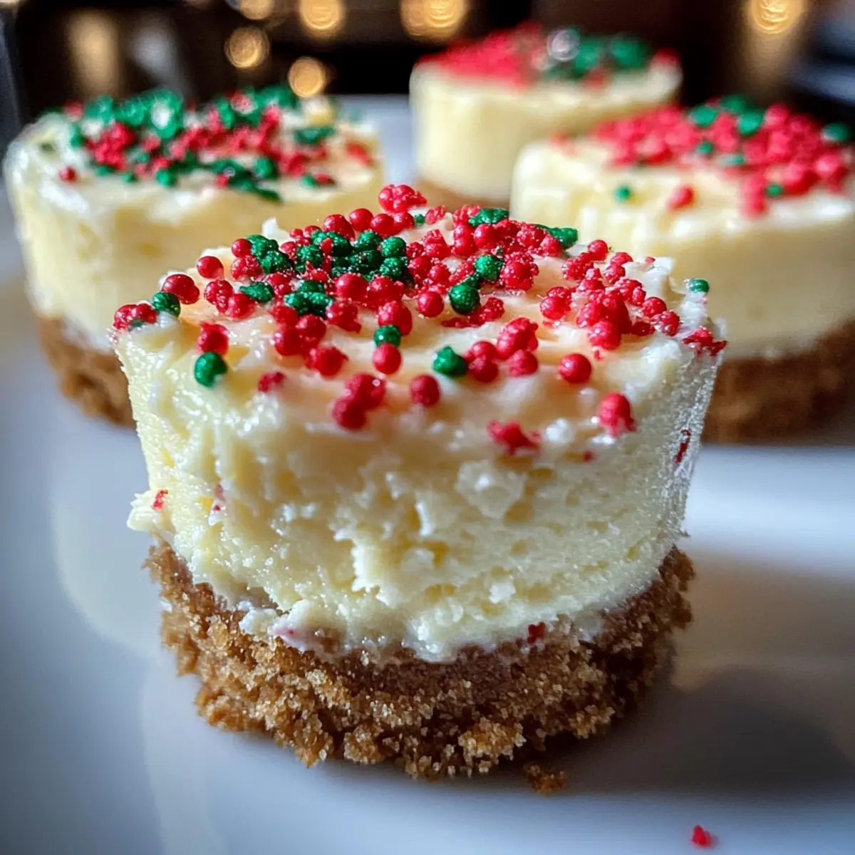 Jump to Recipe Print RecipeAs the aroma of baked treats wafts through the house, I can’t help but feel the magic of the holiday season. This year, I decided to elevate my dessert game with these Mini Christmas Cheesecakes. With their creamy texture nestled in a buttery graham cracker crust, they offer the perfect bite-sized indulgence that’s sure to steal the show at any gathering. Not only are they simple to whip up, but these little delights also bring a touch of festive cheer with vibrant red and green sprinkles on top. Whether you’re tired of the usual holiday desserts or looking to impress your family and friends, these mini cheesecakes are a crowd-pleaser that will keep everyone coming back for more. Ready to bring some joy to your dessert table this season? Why Choose Mini Christmas Cheesecakes? Irresistible Flavor: Each bite bursts with a rich and creamy blend, thanks to the harmonious combination of cream cheese and sour cream. Quick Preparation: Whip these up in no time! In just a few simple steps, you’ll have delicious mini desserts ready for chilling. Festive Presentation: Topped with colorful sprinkles, these cheesecakes are sure to delight at any holiday gathering, adding a pop of joy to your dessert spread. Perfectly Portion-Controlled: Enjoy the indulgence of cheesecake without the guilt; these mini versions make it easy to savor just one—or two! Versatile and Customizable: Feeling adventurous? Mix in some lemon zest or chocolate for a unique twist! For more ideas, check out our holiday dessert variations. Make this festive season memorable with these delightful mini cheesecakes that everyone will love! Mini Christmas Cheesecake Ingredients Get ready to create the perfect bites of holiday joy! For the Cheesecake Filling Cream Cheese – Provides the rich and creamy base. Substitution: Neufchâtel cheese for a lighter option or Greek yogurt for a tangy twist (may alter flavor). Sugar – Sweetness balance and texture. Vanilla Extract – Adds rich flavor depth. Sour Cream – Contributes creaminess and tang. Eggs – Binds the cheesecake; adds structure. Tip: Use room temperature eggs for enhanced mixing. For the Crust Graham Crackers – Forms the crust, lending sweetness and crunch. Prep Note: Crush finely for a smooth base. Butter – Binds the crust ingredients; adds richness. Prep Note: Use melted for easy mixing. These Mini Christmas Cheesecakes promise to be a delightful addition to your holiday festivities! Step‑by‑Step Instructions for Mini Christmas Cheesecakes Step 1: Preheat the Oven Begin by preheating your oven to 325°F (160°C). This ensures your Mini Christmas Cheesecakes bake evenly and achieve that perfect creamy texture. While the oven heats up, gather your ingredients and equipment; you’ll need mixing bowls, a hand mixer, mini cupcake liners, and a muffin tin to create delightful individual servings. Step 2: Prepare the Cheesecake Filling In a large mixing bowl, combine the softened cream cheese and sugar. Using a hand mixer, beat on medium speed until the mixture is smooth and free of lumps, which should take about 2-3 minutes. Then, mix in the vanilla extract and sour cream until everything is well blended. You’ll know it’s ready when the mixture is silky and creamy. Step 3: Incorporate the Eggs Next, add the eggs to the cheesecake filling one at a time. After each addition, mix gently using the hand mixer on low speed. This technique helps maintain the smoothness of the filling. Continue until all the eggs are fully incorporated, and the mixture is homogenous and light. This step adds structure and richness to your Mini Christmas Cheesecakes. Step 4: Make the Crust In a separate bowl, combine the crushed graham crackers with melted butter. Mix well until the crumbs are evenly coated and hold together when pressed. This will form the base of each cheesecake. Make sure the mixture resembles wet sand, which will ensure that your crust holds its shape during baking. Step 5: Assemble the Cheesecakes Line a muffin tin with mini cupcake liners for easy serving. Firmly press the graham cracker crust mixture into the bottom of each liner, creating an even layer. Aim for about a tablespoon of crust per liner. You want it to be compact but not overly packed; this will provide a perfect balance to the creamy filling. Step 6: Pour the Filling Carefully pour the prepared cheesecake filling over the crusts, filling each mini liner about three-quarters full. This gives the cakes room to expand during baking while still allowing for a lovely dome shape. Take your time to ensure an even distribution among all the mini cupcakes for consistent baking. Step 7: Bake and Monitor Place the muffin tin in the preheated oven and bake for approximately 20 minutes. The Mini Christmas Cheesecakes are done when the edges are set but the centers still have a slight jiggle. Keep an eye on them; overbaking may lead to a dry texture, so aim for that perfect balance. Step 8: Cool and Chill Once baked, carefully remove the muffin tin from the oven and allow the cheesecakes to cool for about 10 minutes at room temperature. Then, transfer them to the refrigerator and chill for at least 2 hours. This step is crucial for achieving that velvety, luscious texture that makes the Mini Christmas Cheesecakes irresistible. Step 9: Decorate and Serve Before serving, take the chilled cheesecakes out of the refrigerator. Add a sprinkling of festive red and green sprinkles on top for a joyful holiday touch. These little gems are now ready to be devoured, offering a delightful bite-sized treat for all your holiday gatherings! What to Serve with Mini Christmas Cheesecakes? As you gather around the table, these delightful mini cheesecakes call for complementary dishes that enhance their festive charm and flavor. Warm Mulled Wine: The spiced aroma of mulled wine contrasts beautifully with the creamy sweetness of cheesecakes, creating a cozy vibe for gatherings. Gingerbread Cookies: Th