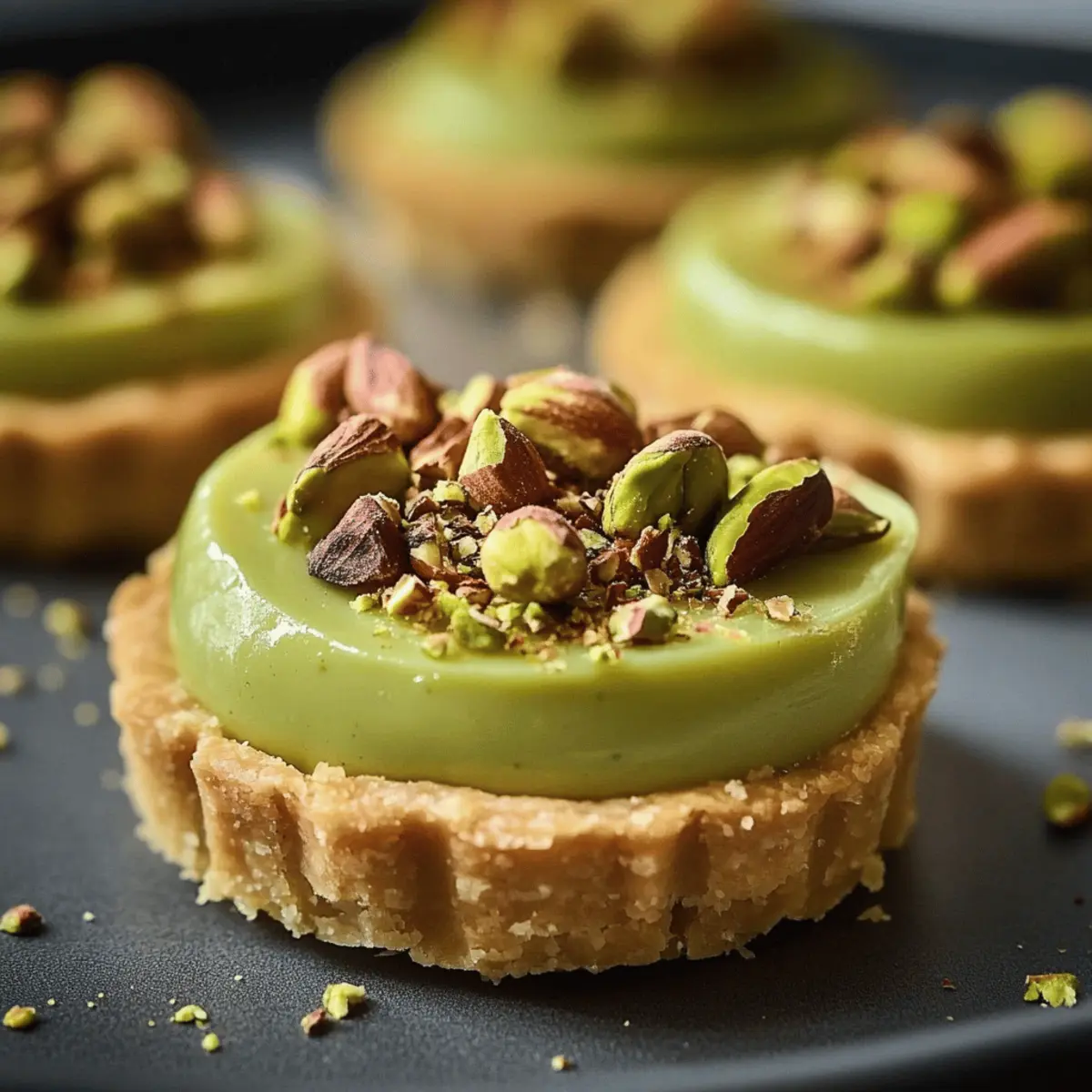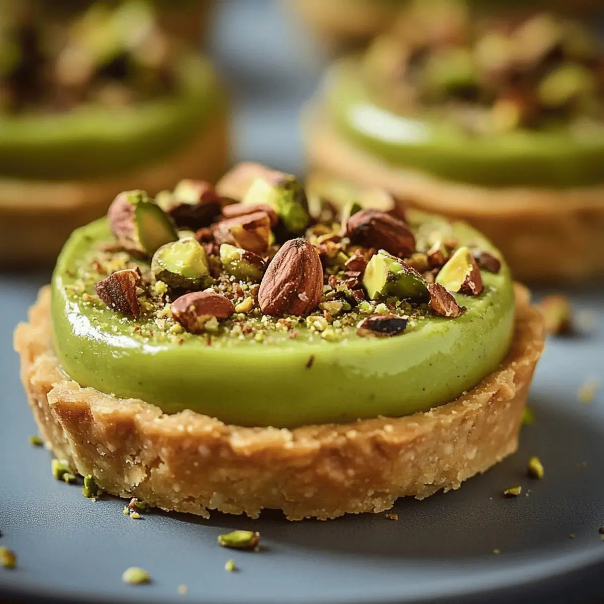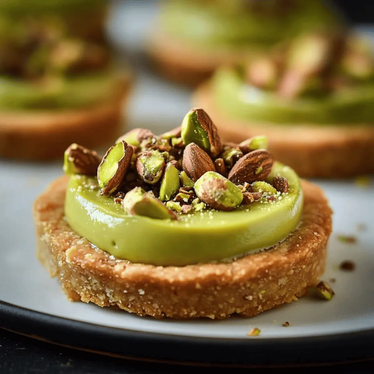 Jump to Recipe Print RecipeAs I whisked together the ingredients for these Mini Pistachio Tartlets, I couldn’t help but think about how a small bite can create a big moment. These elegant, nutty morsels are not just delicious—they’re perfect for impressing guests at your next gathering or enjoying during a cozy afternoon treat. With a buttery, crisp tart shell enveloping a silky pistachio cream, these desserts strike that delightful balance between sweet and savory, making them a definite crowd-pleaser. Plus, they can be made ahead of time, allowing you to spend less time in the kitchen and more time connecting with your loved ones. Are you ready to elevate your dessert game? Let’s dive into this recipe! Why are Mini Pistachio Tartlets so special? Bite-sized elegance: These mini pistachio tartlets are perfect for any occasion, delivering a rich yet delicate flavor profile that impresses every guest. Simple preparation: With a straightforward process, even less experienced bakers can achieve fantastic results that shine at gatherings. Versatile delights: Feel free to swap in different nuts or add fresh berries for a personalized touch! Make-ahead convenience: Prepare the tart shells in advance to make your entertaining effortless. Gorgeous presentation: Their vibrant green filling and lovely garnish of crushed pistachios make them eye-catching and inviting. Treat yourself and your friends to this luxurious dessert, and if you love unique flavor combinations, you might want to check out our Pistachio Croissants Transform for more inspiration! Mini Pistachio Tartlets Ingredients For the Tart Shells • All-Purpose Flour (120 g) – Provides structure to the tart shells; use gluten-free flour for a gluten-free option. • Unsalted Butter (60 g, cold and cubed) – Adds richness and a flaky texture; ensure it’s very cold for the best results. • Sugar (30 g) – Sweetens the crust, balancing the nutty filling; can substitute with coconut sugar for a deeper flavor. • Large Egg (1) – Binds the dough together; no direct substitute recommended for optimal binding. For the Pistachio Cream Filling • Shelled Raw Pistachios (100 g) – Main flavor component providing natural green color and nutty taste; substitute with roasted, unsalted pistachios for a different profile. • Milk (250 ml) – Creates a creamy custard base; use almond milk for a dairy-free version. • Heavy Cream (100 ml) – Adds richness to the custard; coconut cream works as a dairy-free alternative. • Sugar (50 g) – Sweetens the pistachio cream filling. • Cornstarch (2 tbsp) – Thickens the filling; substitute with tapioca starch if needed. • Vanilla Extract (1 tsp) – Adds flavor depth; substitute with vanilla bean paste for a more robust flavor. For Garnishing • Extra crushed pistachios – For garnish and added texture; they enhance the visual appeal of the mini pistachio tartlets. These delightful Mini Pistachio Tartlets will surely elevate your dessert table, blending sweet and nutty flavors beautifully! Step‑by‑Step Instructions for Mini Pistachio Tartlets Step 1: Prepare the Dough Combine all-purpose flour, sugar, and a pinch of salt in a large mixing bowl. Cut in the cold, cubed unsalted butter using a pastry cutter or your fingertips until the mixture resembles coarse crumbs. Add the large egg and mix until the dough forms. Chill the dough in the refrigerator for 30 minutes to firm up, ensuring a flaky crust when baked. Step 2: Shape the Tartlets Preheat your oven to 350°F (175°C). On a lightly floured surface, roll out the chilled dough to about 1/8 inch thick. Carefully cut rounds and press them into mini tart pans, ensuring to cover the bottoms and sides. Prick the bottoms of the tarts with a fork to prevent puffing and bake for 20 minutes, or until they are lightly golden. Let them cool completely before filling. Step 3: Make the Pistachio Cream In a food processor, grind unshelled raw pistachios into a fine powder. Meanwhile, in a medium saucepan, combine milk, heavy cream, sugar, and cornstarch over medium heat. Whisk continuously until the mixture thickens and starts bubbling—this should take about 5-7 minutes. Stir in the ground pistachios and vanilla extract, then remove from the heat, allowing the cream to cool slightly. Step 4: Assemble the Tartlets Once the tart shells are cool and the pistachio cream has thickened, spoon the creamy filling into each tart shell, smoothing the tops for an even finish. Aim for a generous amount in each shell but avoid overfilling. Chill the assembled mini pistachio tartlets in the refrigerator for at least 1 hour to set the filling. Step 5: Serve the Tartlets Before serving, remove the mini pistachio tartlets from the fridge and garnish with extra crushed pistachios for a delightful crunch and visual appeal. These elegant bites are best enjoyed slightly chilled, making them an exquisite treat for any occasion. Mini Pistachio Tartlets Variations & Substitutions Embrace your culinary creativity by customizing these delightful mini pistachio tartlets; there are so many delicious twists to explore! Nut Options: Experiment by substituting crushed pistachios with almonds or walnuts for a flavorful alternative. Each nut brings its unique crunch and profile, adding a lovely surprise to every bite. Dairy-Free: Swap the milk and heavy cream for almond milk and coconut cream to create a dairy-free version. This will keep your tartlets luscious while catering to dietary preferences. Sweetness Tweaks: Exchange regular sugar with maple syrup or honey for a natural sweetness that enhances the tartlets’ delightful flavors. Just remember that the liquid might slightly alter the texture, so adjust as needed. Flavor Infusion: Add a hint of cardamom or a few drops of rose water to the pistachio cream for an exotic twist that will transport your taste buds. These fragrant additions can elevate the dessert into something truly special. Chocolate Lovers: Drizzl