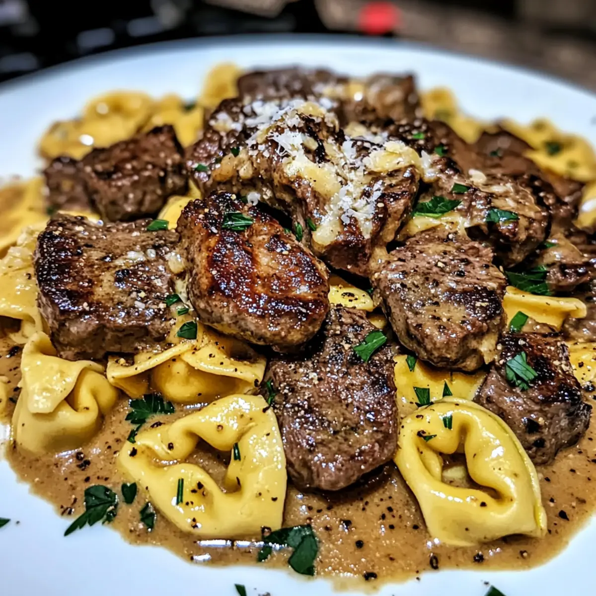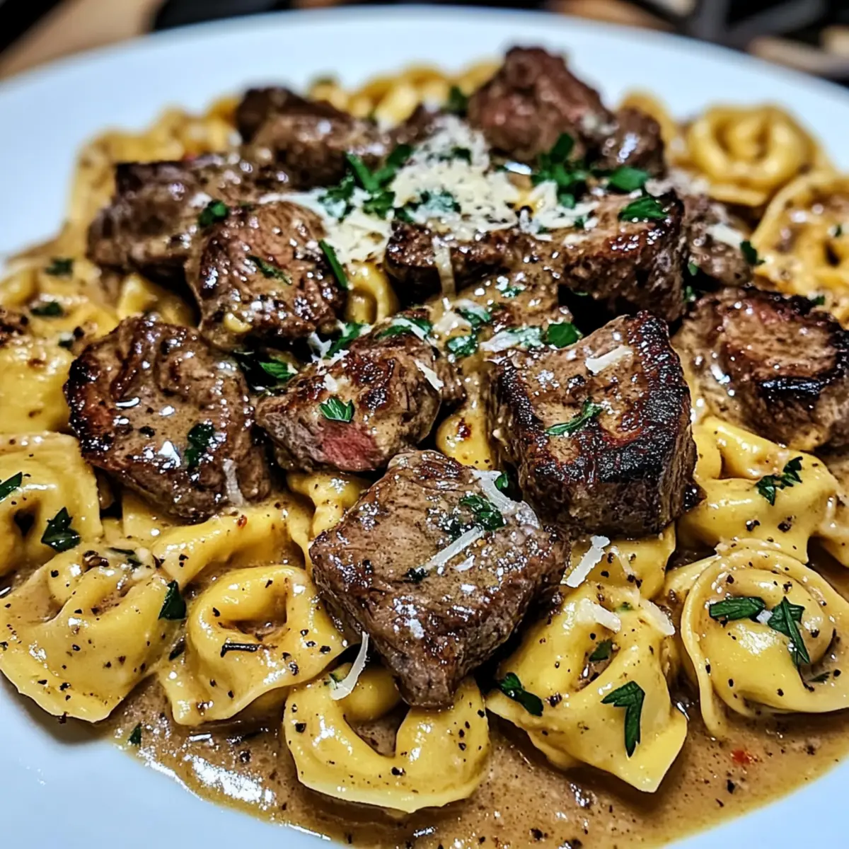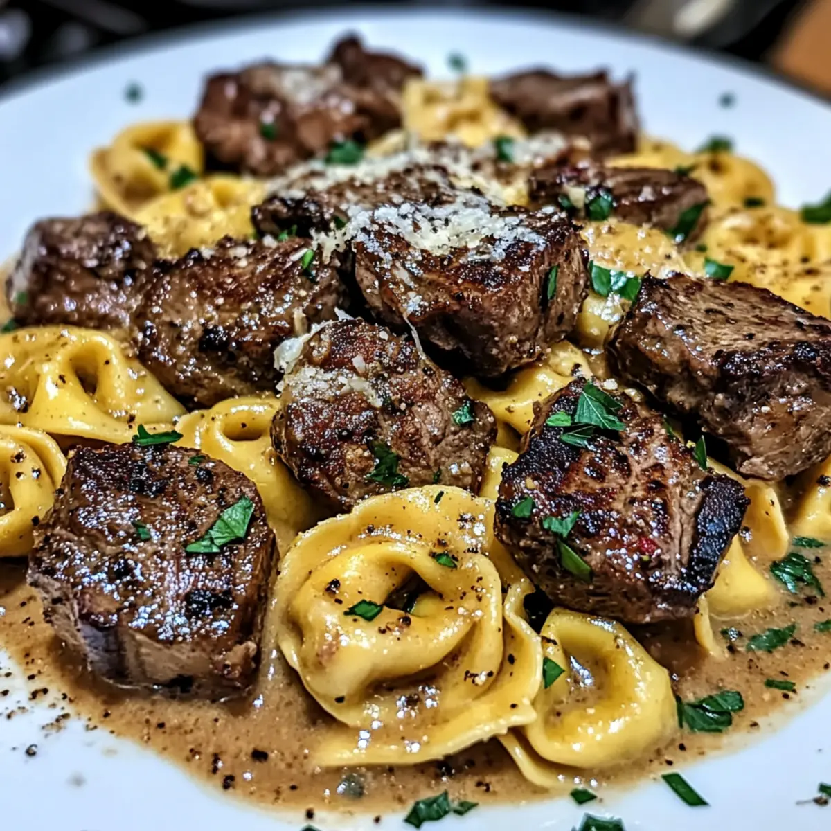 Jump to Recipe Print RecipeThere’s something undeniably comforting about a hearty meal that comes together in one simple pan. My One-Pan Cowboy Butter Tortellini Steak Bites beautifully marries the juicy tenderness of seared steak with the creamy richness of a zesty butter sauce. This dish doesn’t just save on dishwashing time; it packs flavor that impresses without all the fuss. Perfect for those busy weeknights when you crave something both satisfying and quick, this recipe offers a delightful solution to the fast-food temptation. With cheesy tortellini adding that comforting texture, you’re just one pan away from a comforting feast. Are you ready to transform your dinner routine? Let’s dive into this mouthwatering adventure together! Why Choose One-Pan Dinner Bliss? Ease of Preparation: This recipe is astonishingly simple, requiring just one pan and minimal hassle. Flavorful Harmony: The juicy steak bites and creamy zesty sauce create a flavor explosion that everyone will love. Quick and Convenient: Perfect for busy weeknights, you can whip this up in no time without compromising on taste. Versatility: Swap the tortellini for gnocchi or ravioli, or throw in some sautéed veggies—make it your own! Crowd-Pleasing Comfort: It’s a hit with family and friends, making it ideal for dinners or gatherings. This One-Pan Cowboy Butter Tortellini Steak Bites is truly a recipe that fits seamlessly into your life—just like when you pair it with a refreshing salad or some savory garlic bread! If you’re craving more great ideas, try out my delicious Homemade Butter Chicken or a quick and easy One Pan Spicy Sesame Butter Chicken. One-Pan Cowboy Butter Tortellini Steak Bites Ingredients For the Steak Bites Sirloin or Ribeye Steak – Choose ribeye for richer flavor or sirloin for a leaner profile. Cajun Seasoning – This adds spiciness; adjust to your preferred heat level. Smoked Paprika – Essential for that smoky depth, which enhances the steak’s taste. Garlic Powder – A flavor enhancer; fresh garlic can be a tasty alternative. Salt & Black Pepper – Basic seasoning; always modify to your taste. Olive Oil – Ideal for searing the steak, giving it a nice golden crust. For the Cowboy Butter Sauce Unsalted Butter – The rich base of the sauce; opt for salted butter if that’s all you have, but reduce additional salt. Garlic (minced) – Freshly minced garlic offers an aromatic kick; substitute with powder in a pinch. Red Pepper Flakes (optional) – Perfect for those who like a bit of extra heat; skip if you prefer milder. Dijon Mustard – Adds tang; whole grain mustard is a delicious alternative. Lemon Juice – Brightens and balances the sauce; use fresh lemon whenever possible. Fresh Parsley & Chives (chopped) – Elevate flavor and presentation; feel free to swap in other fresh herbs. For the Pasta Cheese Tortellini – The star carbohydrate in this dish; fresh or refrigerated works best. Gnocchi or ravioli is a great swap! Grated Parmesan Cheese – Adds creaminess and richness; pecorino is a fantastic substitute for an intense flavor. Reserved Pasta Water – Don’t skip this! It’s crucial to achieving that luscious, silky sauce. Each ingredient in these One-Pan Cowboy Butter Tortellini Steak Bites plays a key role in creating a hearty, satisfying meal that your family will love. Ready to get cooking? Step‑by‑Step Instructions for One-Pan Cowboy Butter Tortellini Steak Bites Step 1: Cook the Tortellini Begin by bringing a large pot of salted water to a rolling boil. Add the cheese tortellini, cooking them until al dente—approximately 3-5 minutes, checking the package for exact timing. Once cooked, reserve ½ cup of the pasta water for later, then drain the tortellini in a colander and set aside while you prepare the steak bites. Step 2: Prepare the Steak Bites While the tortellini cooks, pat your sirloin or ribeye steak dry with paper towels. Season generously with Cajun seasoning, smoked paprika, garlic powder, salt, and black pepper. In a large skillet, heat 2 tablespoons of olive oil over medium-high heat until shimmering. Sear the seasoned steak bites for about 2-3 minutes on each side, or until they develop a rich, golden-brown crust. Remove the steak from the skillet, allowing it to rest. Step 3: Make the Cowboy Butter Sauce In the same skillet, reduce the heat to medium and add 3 tablespoons of unsalted butter. Once melted, sauté the minced garlic until fragrant, about 1 minute. Gradually stir in the Dijon mustard, lemon juice, and red pepper flakes, if using, blending everything together. This is the base of your flavorful cowboy butter sauce. Step 4: Combine Everything Return the steak bites to the skillet along with the reserved tortellini. Gently toss everything together, ensuring all ingredients are well coated in that luscious cowboy butter sauce. Gradually pour in the reserved pasta water, stirring until you reach your desired sauce consistency—this should take about 2-3 minutes. If needed, adjust seasoning with more salt and pepper. Step 5: Serve and Garnish Once combined, serve your One-Pan Cowboy Butter Tortellini Steak Bites immediately on warm plates. Garnish generously with grated Parmesan cheese, chopped fresh parsley, and chives for a burst of color and flavor. Enjoy the satisfying blend of textures and tastes that make this dish a true comfort food delight. Expert Tips for One-Pan Cowboy Butter Tortellini Steak Bites Pat Steak Dry: Always pat your steak dry before seasoning and searing. This step ensures a beautiful, flavorful crust that seals in juices. Avoid Overcrowding: If your skillet can’t fit all the steak bites, sear them in batches. Overcrowding can lead to steaming rather than that perfect sear. Fresh Garlic Preferred: Opt for fresh garlic in the cowboy butter sauce for the most aromatic flavor. If you must use powder, remember it’s more potent—use less! Reserve Pasta Water: Never skip reserving pasta water; it’s the s
