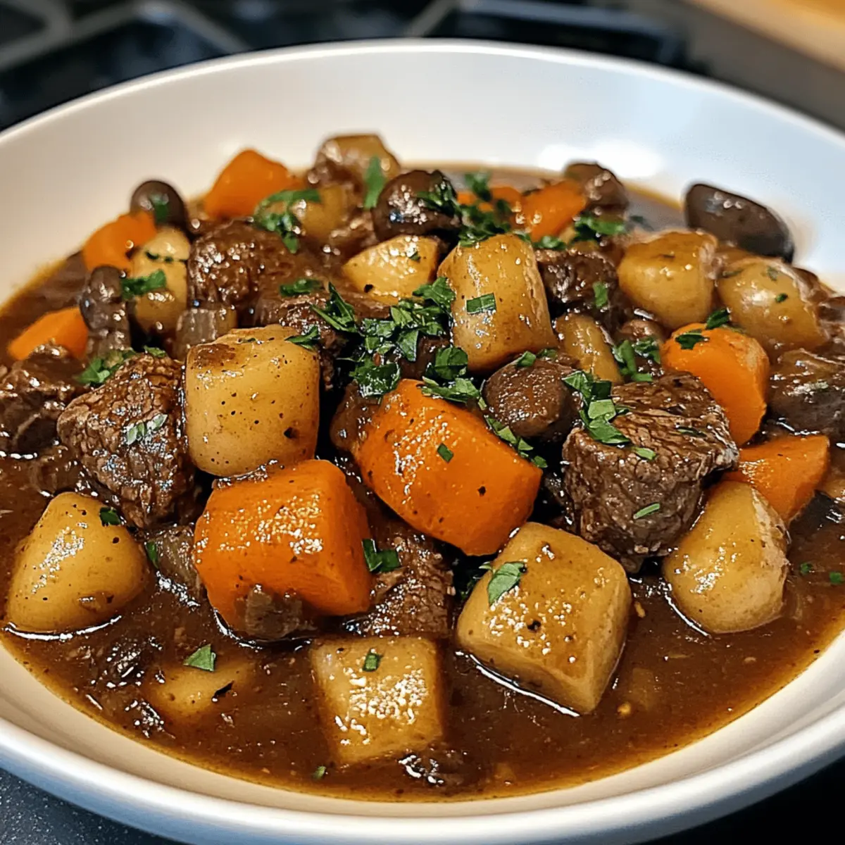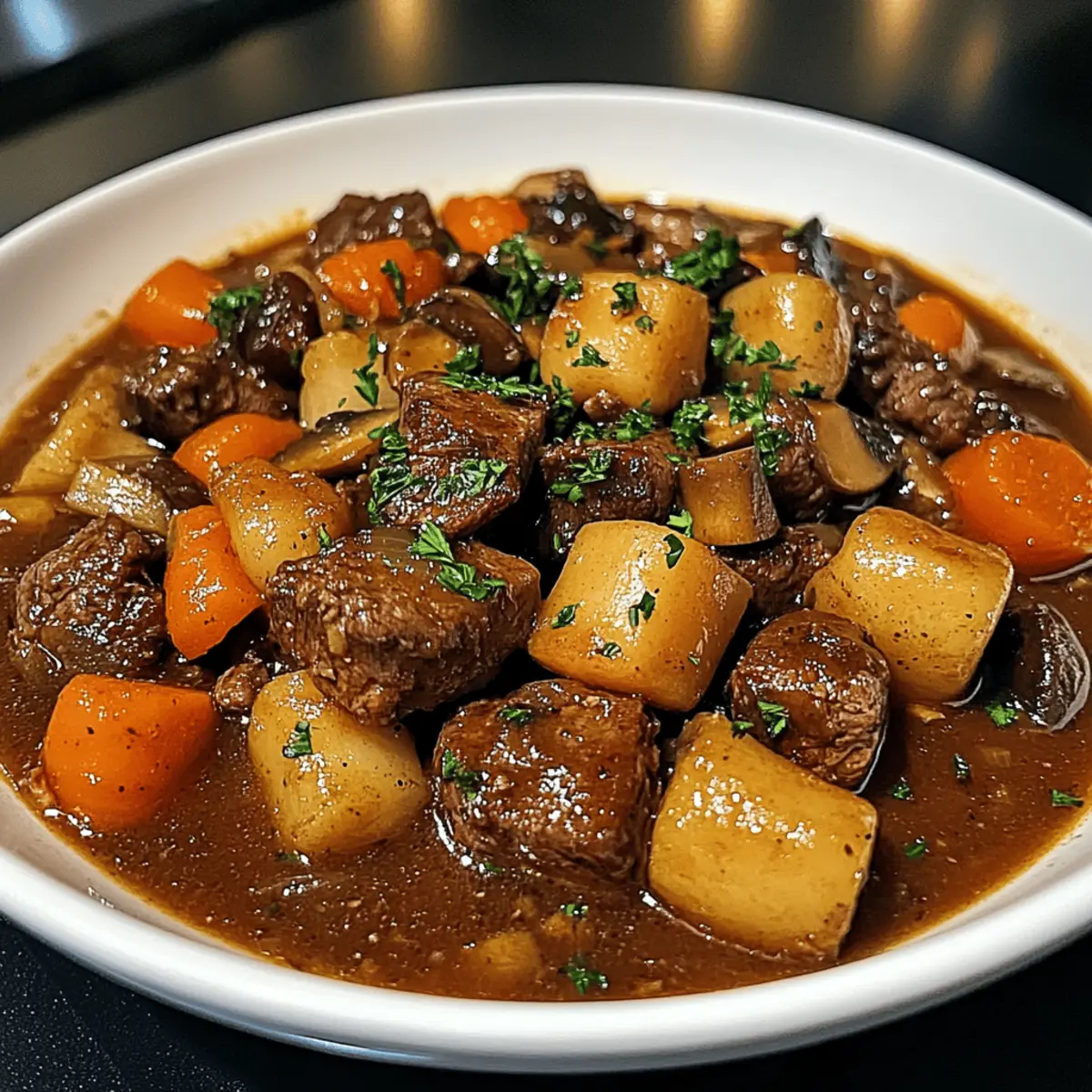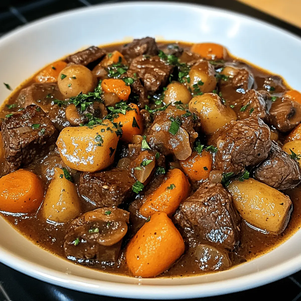 Jump to Recipe Print RecipeAs the leaves begin to fall and a chill fills the air, there’s nothing quite like the comfort of a rich, warming bowl of stew. My One-Pot Autumn Beef Stew captures the essence of this beautiful season, inviting wholesome ingredients to join forces in a single pot for simplicity. Perfect for busy weeknights, this recipe not only delivers a cozy dinner with minimal prep and cleanup but also sneaks in nutrient-packed vegetables, making it as wholesome as it is delicious. As you let the stew simmer, the aroma will wrap around your home, beckoning everyone to the table for a hearty meal. Are you ready to fill your kitchen with the scents of autumn? Let’s get cooking! Why is One-Pot Cooking a Game-Changer? Simplicity at its finest: This One-Pot Autumn Beef Stew requires just one pot, which means fewer dishes and less time spent cleaning up. Hearty and comforting: With tender beef and a medley of vegetables, this stew creates a warm embrace for chilly evenings. Flavor-packed: The combination of herbs and aromatics like garlic and thyme adds depth, making each bite a burst of delightful flavor. Versatile: Feel free to swap in your favorite veggies like peas or green beans, ensuring it suits your tastes perfectly. Crowd-pleasing: Whether for family dinners or gatherings with friends, this recipe guarantees satisfied smiles all around. With its nourishing elements, this dish rivals other fan favorites like Beef Stew Hearty or Bbq Beef Tacos for a cozy dinner that’s easy to prepare. One-Pot Autumn Beef Stew Ingredients • Minimalist and flavorful components for hearty comfort. For the Stew Beef Chuck – Ideal for robust flavor; alternate cuts like brisket work too. Olive Oil – Essential for browning and adds richness to the stew. Onion – Lends sweetness and depth; always a base flavor hero. Garlic – Brightens the flavor; fresh minced is best! Carrots – Adds natural sweetness and a pop of color to your One-Pot Autumn Beef Stew. Potatoes – Provides a filling and comforting texture; use waxy varieties for best results. Mushrooms – Boosts the umami profile of the stew; button or cremini mushrooms work well. Tomato Paste – Enhances richness; don’t skip this key ingredient! Dried Thyme & Rosemary – Essential for autumn flavors; substitute with fresh for a fresher taste. Salt & Pepper – Basic seasonings to elevate your stew. Beef Broth – Base for the stew; opt for gluten-free if needed. Feel free to get creative and adjust any ingredients based on your pantry or preference, keeping in mind that the heart of this dish is its comforting fall flavors! Step‑by‑Step Instructions for One-Pot Autumn Beef Stew Step 1: Searing the Beef Heat 2 tablespoons of olive oil in a large pot over medium heat until shimmering. Add the beef cubes in a single layer, browning them on all sides for about 5-7 minutes. Avoid crowding the pot; work in batches if necessary. This step helps build a flavorful base for your One-Pot Autumn Beef Stew, so aim for a nice golden crust on the meat. Step 2: Sautéing Aromatics Once the beef is nicely browned, remove it from the pot and set aside. In the same pot, add a chopped onion and 3 cloves of minced garlic, sautéing for 3-4 minutes until the onion is soft and fragrant. This process will envelop the pot in a delicious aroma, creating a perfect foundation for the rich flavors to come in your One-Pot Autumn Beef Stew. Step 3: Adding Vegetables Toss in 2 sliced carrots, 2 diced potatoes, and 1 cup of sliced mushrooms, stirring to combine with the aromatics. Allow the vegetables to cook for about 5 minutes, stirring occasionally. This will lightly soften them and deepen the overall flavors of the stew, making each bite heartwarming and nourishing. Step 4: Mixing in Seasonings Stir in 2 tablespoons of tomato paste, 1 teaspoon of dried thyme, and 1 teaspoon of dried rosemary, along with salt and pepper to taste. Mix well to coat the vegetables and release the herbs’ fragrances, enhancing the depth of flavor for your One-Pot Autumn Beef Stew. Cook for another minute to allow the spices to bloom. Step 5: Adding Beef Broth Pour in 4 cups of beef broth while scraping the bottom of the pot to deglaze it, incorporating the flavorful browned bits. Bring the mixture to a boil over high heat. Once bubbling, reduce the heat to low. This crucial step ties all the elements together, ensuring a rich and hearty stew. Step 6: Simmering the Stew Cover the pot and let the stew simmer on low heat for 1.5 to 2 hours, stirring occasionally. This slow cooking will tenderize the beef and meld the flavors beautifully. Look for the beef to become fork-tender and the vegetables to soften, creating a cozy and satisfying One-Pot Autumn Beef Stew. Step 7: Final Adjustments After simmering, taste the stew and adjust the seasoning with additional salt or pepper, if needed. If you prefer a thicker consistency, you can mix a tablespoon of cornstarch with cold water and stir it in during the last few minutes of cooking. This final touch enhances the richness and texture of your One-Pot Autumn Beef Stew. Make Ahead Options These One-Pot Autumn Beef Stew preparations are perfect for busy cooks looking to save time during hectic weekdays! You can chop the vegetables (onion, carrots, potatoes, and mushrooms) and store them in an airtight container in the refrigerator for up to 3 days. Additionally, you can brown the beef and combine it with the tomato paste and spices, letting this savory mix marinate in the fridge for up to 24 hours. When you’re ready to serve, simply heat olive oil in your pot, sauté the aromatics, add your prepared veggies and marinated beef, then pour in the broth and let it simmer until everything is tender and delicious. This advance prep ensures your One-Pot Autumn Beef Stew will be just as comforting and flavorful with minimal effort! How to Store and Freeze One-Pot Autumn Beef Stew Fridge: Store your One-Pot Autumn Beef Stew in an airtigh
