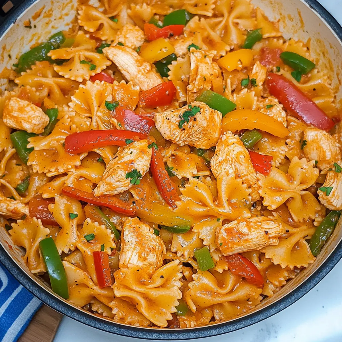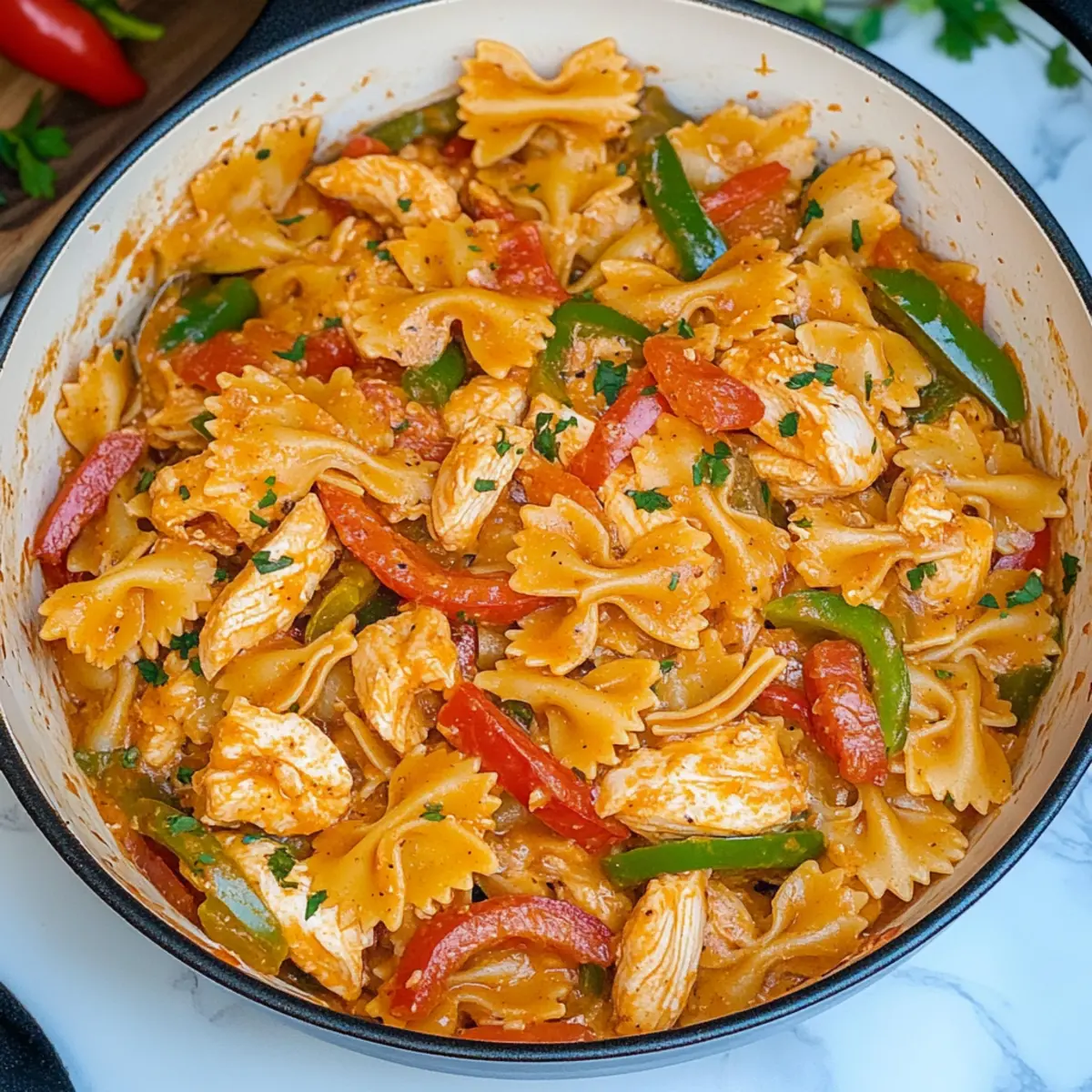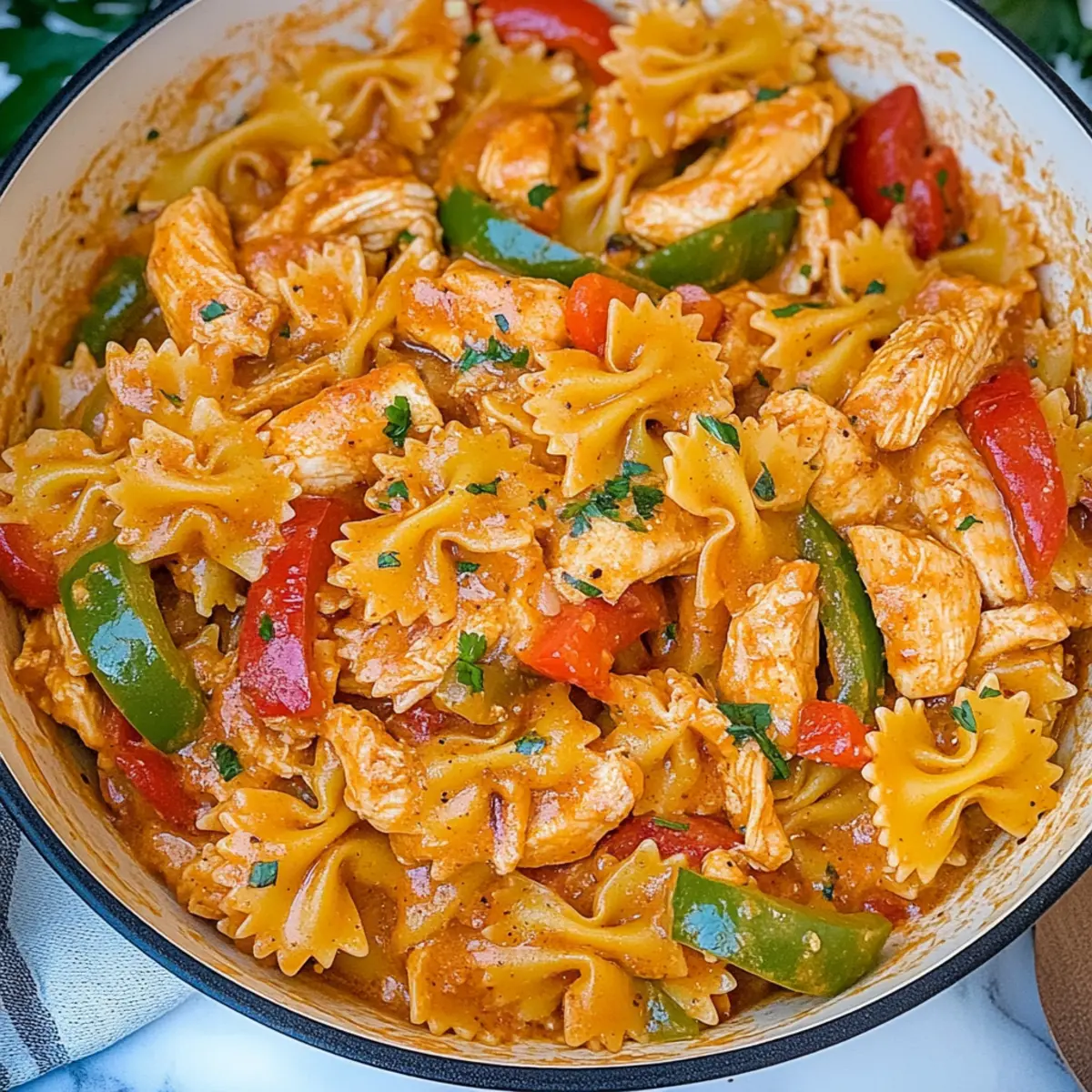 Jump to Recipe Print RecipeA savory medley of spices and sustenance simmering away can turn any kitchen into a haven. Enter my One Pot Chicken Fajita Pasta, a delightful dish that encapsulates the spirit of Mexican cuisine in a cozy, creamy embrace. This recipe promises a hearty blend of tender chicken, vibrant bell peppers, and bowtie pasta that come together effortlessly, making it the perfect solution for those hectic weeknights. In under 30 minutes, you’ll serve up a family-friendly meal that not only satisfies hunger but truly warms the heart. Whether you’re a seasoned home chef or new to cooking, this one-pot wonder is designed to make your life easier while delivering exciting flavors. Curious to discover how to whip up this comforting masterpiece all in one pot? Let’s dive into the details! Why is this recipe a must-try? One-Pot Wonder: This One Pot Chicken Fajita Pasta makes cleanup a breeze, as everything cooks in a single pot. Quick & Easy: In just under 30 minutes, you’ll have a scrumptious meal ready for your family, perfect for busy weeknights. Flavor Explosion: The vibrant blend of fajita spices, creamy sauce, and colorful veggies creates an irresistible taste sensation. Customizable: Want to mix it up? You can easily swap chicken for shrimp or even firm tofu to suit your preferences! Crowd-Pleasing: Whether it’s for the family dinner or a gathering with friends, this dish is sure to impress everyone at the table. One Pot Chicken Fajita Pasta Ingredients For the Sauce • Olive Oil – Used for sautéing; enhances flavor. You can substitute with avocado oil for a similar taste. • Fajita Seasoning – Adds flavor depth; can be swapped with taco seasoning if desired. • Garlic – Intensifies flavors; fresh, minced garlic is ideal, or use garlic powder in a pinch. • Chicken Stock (Reduced-Sodium) – Provides moisture and depth of flavor; vegetable stock can be used for a vegetarian version. • Heavy Cream – Adds creaminess; use half-and-half or coconut cream for a lighter or dairy-free alternative. • Diced Tomatoes (Canned) – Adds juiciness and acidity; substitute with fresh diced tomatoes if in season. For the Pasta • Boneless Skinless Chicken Breasts – Primary protein source, provides structure. Substitute with chicken thighs for a juicier option. • Dried Bowtie Pasta – The main carbohydrate; penne or fusilli can be swapped for variety. For the Vegetables • Yellow Onion – Contributes sweetness and texture; substitute with shallots for a milder flavor. • Bell Peppers (Yellow, Green, Red) – Adds color and sweetness; any mix of bell peppers works, or replace with zucchini for a lower-carb option. For Seasoning • Kosher Salt and Black Pepper – For seasoning to taste. Creating your own One Pot Chicken Fajita Pasta has never been easier! Remember to grab these key ingredients to bring vibrant, mouthwatering flavors to the table. Step‑by‑Step Instructions for One Pot Chicken Fajita Pasta Step 1: Heat the Oil In a large pot, heat 1 tablespoon of olive oil over medium heat. Allow the oil to shimmer—this means it’s ready for the next steps. This will create a flavorful base for your One Pot Chicken Fajita Pasta. Step 2: Cook the Chicken Add 1 pound of diced boneless skinless chicken breasts to the pot. Sauté for 5–7 minutes until the chicken is browned all over, stirring occasionally. Look for a golden color on the chicken pieces to ensure they are properly cooked and sealed. Step 3: Sauté the Vegetables Incorporate 1 diced yellow onion and 1-2 cups of mixed bell peppers into the pot. Continue sautéing for 3–5 minutes until the vegetables soften and the onions become translucent. Enjoy the vibrant colors and fragrant aromas filling your kitchen! Step 4: Add Garlic and Seasoning Stir in 2 cloves of minced garlic and 2 tablespoons of fajita seasoning. Cook for about 1 minute until the garlic is fragrant, stirring constantly to avoid burning. This step adds essential layers of flavor to your creamy dish. Step 5: Combine Liquids Pour in 3 cups of reduced-sodium chicken stock, 1 cup of heavy cream, and 1 can of diced tomatoes (drained). Stir well to combine all the ingredients, ensuring the creamy sauce envelops everything. The mixture should be inviting and aromatic, perfect for your One Pot Chicken Fajita Pasta. Step 6: Add the Pasta Introduce 8 ounces of dried bowtie pasta to the pot and bring the mixture to a boil. Once boiling, reduce the heat to medium-low and cover the pot. Allow it to simmer for 12-15 minutes, stirring occasionally until the pasta is al dente and has absorbed much of the sauce. Step 7: Season and Rest Once the pasta is cooked, remove the pot from the heat and season with kosher salt and black pepper to taste. Stir everything thoroughly and let it rest for about 5 minutes. This allows the flavors to meld together and enhances the overall creaminess of your One Pot Chicken Fajita Pasta. One Pot Chicken Fajita Pasta Variations Feel free to let your creative side shine as you customize this dish to your liking! Shrimp Twist: Replace chicken with shrimp for a delightful seafood twist that cooks quickly and adds a fresh flavor. Tofu Swap: Firm tofu works beautifully in this recipe, perfect for a plant-based meal. Just ensure it’s well-pressed to absorb all the flavors. Extra Veggies: Add black beans or corn for texture and nutrition! These ingredients not only boost fiber content but also add a pop of color. Zesty Heat: Spice things up by incorporating jalapeños or crushed red pepper flakes. Adjust the heat to your preference for a dish that’s as fiery as you like! Pasta Variations: Instead of bowtie pasta, try penne or spiralized zucchini for a twist on texture. Zucchini not only lightens up the dish but introduces more veggies! Creamy Alternatives: For a dairy-free version, swap heavy cream with coconut cream or a cashew cream blend. Both will deliver a luscious creaminess without dairy. Flavored Stock: U
