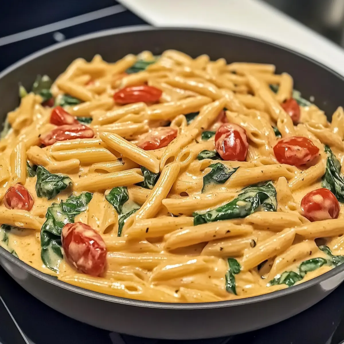 Jump to Recipe Print RecipeOn a chilly evening after a long day, I found myself craving something comforting yet fresh. That’s when it hit me: One-Pot Creamy Spinach Tomato Pasta! This dish is not just a meal; it’s a lifesaver for busy weeknights, conjuring the warmth of home-cooked goodness—all while cutting down on cleanup time. Packed with the vibrant flavors of ripe tomatoes and tender spinach, it strikes the perfect balance between creamy indulgence and nutritious veggies. Plus, it’s wonderfully adaptable—swap in your favorite pasta shape or toss in some grilled chicken or shrimp for that extra touch. Intrigued? Let’s dive into the delightful world of one-pot cooking and craft a dish that your family will keep asking for! Why is One-Pot Cooking So Popular? Convenient Cooking: One-Pot meals simplify dinner preparation, and this creamy spinach tomato pasta is no exception. Everything cooks together, minimizing cleanup time. Flavorful Fusion: Rich tomatoes and savory garlic mingle effortlessly, creating a sauce that coats each piece of pasta in delectable goodness. Adaptable Options: Versatility is key! You can swap pasta shapes or proteins to make this dish your own, whether you’re adding grilled chicken or keeping it vegetarian. Quick to Prepare: Perfect for busy weeknights, this recipe comes together in under 30 minutes, giving you more time to unwind after a long day. Crowd-Pleasing Delight: Everyone loves a comforting bowl of pasta! It’s appealing to both adults and kids alike, ensuring satisfaction around the dinner table. Discover more easy recipes like this one in our collection of simple pasta dinners. One-Pot Spinach Tomato Pasta Ingredients For the Pasta • Penne Pasta – It’s the base of the dish, easy to cook and can be swapped with any medium pasta like fusilli for varied textures. For the Sauce • Fresh Spinach – Adds a vibrant green hue; add it at the end to keep it bright and lively. • Tomatoes (fresh) – The stars of the show, using ripe tomatoes brings sweetness and acidity; they infuse the sauce with luscious flavor. • Garlic – Enhances the aroma and taste; fresh garlic gives a stronger punch. • Olive Oil – A rich base for sautéing that adds depth; for more flavor, try sun-dried tomato oil. • Onion – The aromatic backbone of the sauce; cook until translucent to sweeten its flavor. For Creaminess • Chicken Stock – Adds moisture and flavor; for a vegetarian dish, vegetable stock is a perfect substitute. • Heavy Whipping Cream – Gives the pasta a luscious creamy texture; ensure it’s at room temperature to avoid curdling when added. • Parmesan Cheese – The finishing touch; freshly shredded cheese melts beautifully into the sauce. For Seasoning • Red Chili Flakes – Adds the perfect kick; adjust the amount based on your spice preference. • Kosher Salt and Black Pepper – Essential for balancing flavors; season to taste. Embrace the joy of cooking with this One-Pot Spinach Tomato Pasta—an enjoyable meal that celebrates simplicity, flavor, and adaptability. Step‑by‑Step Instructions for One-Pot Spinach Tomato Pasta Step 1: Heat the Oil Begin by pouring a tablespoon of sun-dried tomato oil into a large pot over medium-high heat. Allow the oil to heat until shimmering, which should take about 1-2 minutes. This aromatic base sets the stage for your One-Pot Spinach Tomato Pasta, enhancing the flavors of the upcoming ingredients. Step 2: Sauté the Aromatics Add one chopped onion to the pot and sauté for 3-5 minutes, stirring occasionally until the onion is softened and translucent. Next, introduce 2 minced garlic cloves and a handful of chopped sun-dried tomatoes, cooking for an additional 2-3 minutes until fragrant. The mixture should begin to caramelize slightly, filling your kitchen with a delightful aroma. Step 3: Incorporate Tomato Paste Stir in 2 tablespoons of tomato paste, allowing it to cook for another 2 minutes. This process intensifies the flavor profile of your One-Pot Spinach Tomato Pasta, thickening the sauce. You’ll notice the color deepening as the paste mingles with the sautéed onion and garlic. Step 4: Add Chicken Stock Gradually pour in 4 cups of chicken stock, stirring continuously to deglaze the bottom of the pot. This step, lasting about 1-2 minutes, will lift any flavorful bits from the pan and ensure they blend into your sauce. The mixture should begin to bubble gently as it heats. Step 5: Mix in the Cream Next, reduce the heat to medium and pour in 1 cup of heavy whipping cream, mixing thoroughly until the sauce is smooth. Allow this to simmer for 2-3 minutes, ensuring the cream is fully incorporated without curdling. The sauce should have a rich, creamy consistency by this point. Step 6: Season the Sauce Generously season your sauce with 1 teaspoon each of kosher salt and freshly cracked black pepper, along with a pinch of red chili flakes for a touch of heat. Taste the sauce to adjust seasonings as necessary, enhancing the overall flavor of your One-Pot Spinach Tomato Pasta. Step 7: Cook the Pasta Add 12 ounces of penne pasta into the bubbling sauce, stirring well to coat each piece. Cover the pot and cook for about 10 minutes, stirring frequently to prevent sticking. The pasta should be about 75% cooked, absorbing the creamy sauce and flavors as it softens. Step 8: Add Spinach Incorporate 5 cups of fresh spinach into the pot, stirring gently until wilted, which should take about 2-3 minutes. If the pasta seems dry, feel free to add a splash of additional stock. This step brings vibrant color and freshness to your One-Pot Spinach Tomato Pasta, enhancing its visual appeal. Step 9: Stir in Cheese Once the spinach is wilted, add 1 cup of freshly shredded Parmesan cheese, stirring to combine. This will enrich the sauce further, creating a creamy coating over the pasta. The cheese should melt beautifully, making your dish irresistibly delightful. Step 10: Serve and Enjoy Dish out the cr