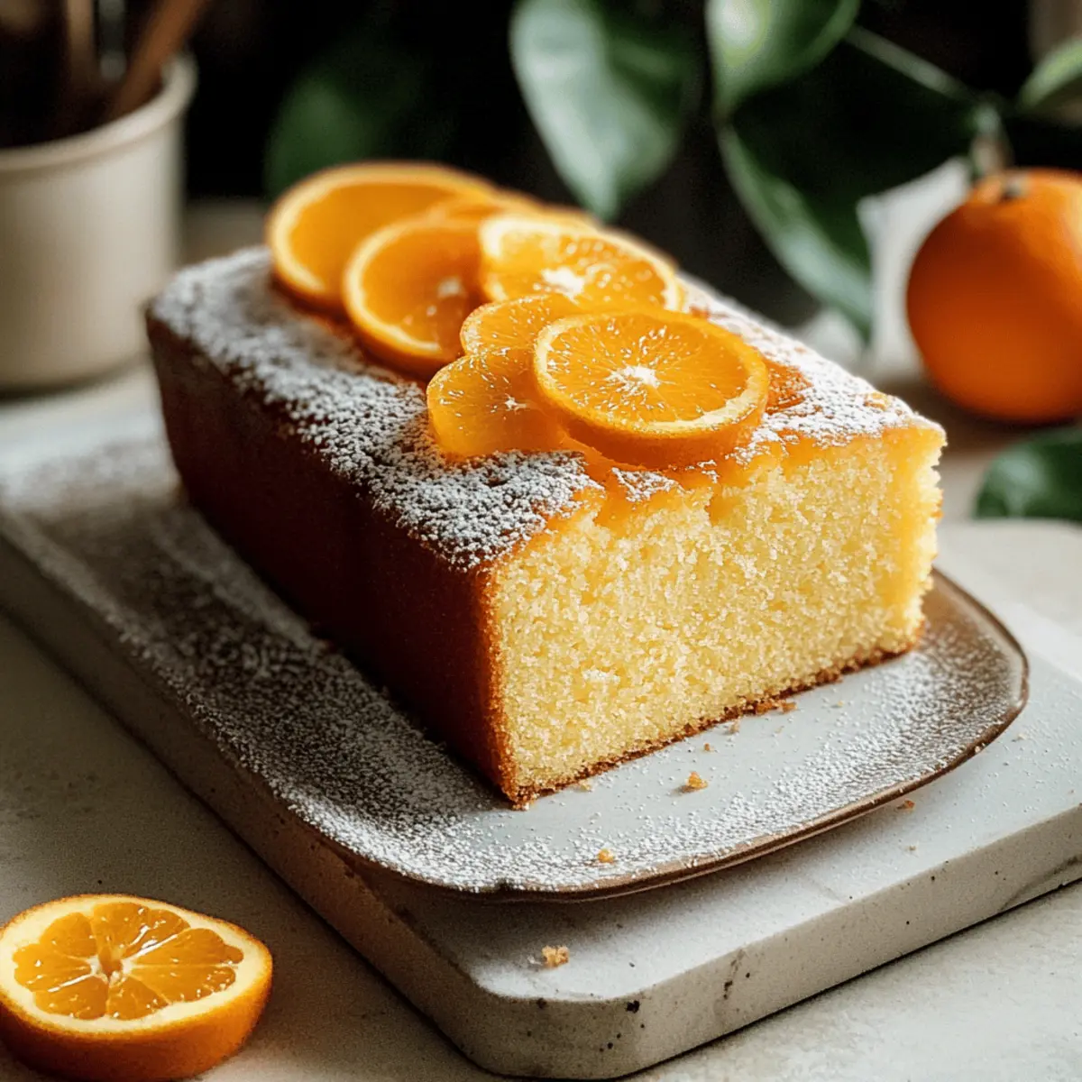 Jump to Recipe Print RecipeThe fragrant aroma of freshly zested oranges wafted through my kitchen, instantly transporting me to a sunny afternoon at a Japanese tea house. That’s the magic of the Orange Castella Cake—an elegant dessert that balances a light, airy texture with a delightful citrus flavor. This easy-to-make treat is perfect for any occasion, whether you’re enjoying a cozy afternoon with friends or celebrating a special milestone. The best part? It becomes even more flavorful after chilling, making it an ideal make-ahead dessert. Imagine serving this charming cake alongside a steaming cup of green tea or a sparkling mimosa. Are you ready to whip up this delightful dessert and impress your loved ones? Why is Orange Castella Cake a Must-Try? Citrusy Freshness: The bright orange zest infuses every bite with a refreshing citrus flavor that lifts your spirits. Delightfully Easy: Even novice bakers can whip this up with simple ingredients and straightforward steps. Perfectly Versatile: Serve it as a light dessert, an afternoon snack, or even a delightful addition to your brunch spread. Chill for Extra Flavor: This cake develops richer flavors after chilling, making it a perfect make-ahead treat. Pair it with a cup of green tea or a sparkling mimosa for a delightful experience! Orange Castella Cake Ingredients For the Batter • Bread Flour – Provides structure and bounce; you can substitute with all-purpose flour for a slightly different texture. • Salt – Enhances the overall flavor profile; no substitutes needed. • Orange Zest – Adds fragrant citrus notes and brightness; always use fresh zest for best results. • Canola Oil – Keeps the cake moist and tender; alternately, use vegetable oil. • Honey – Adds a hint of sweetness and a touch of floral flavor; can be substituted with agave syrup. • Hot Water – Activates the honey and helps blend the ingredients; no alternative necessary. • Eggs – Key for lift and texture, creating a light and airy cake; use large eggs at room temperature for the best results. • Sugar – Sweetens the cake and helps with volume during whipping; granulated sugar is preferred—do not substitute. • Cream of Tartar – Stabilizes egg whites for better volume; if unavailable, lemon juice can be used as a substitute. For the Topping • Powdered Sugar – For dusting the top, adding a decorative touch; optional, can be skipped. • Thinly Sliced Oranges – For decoration, adding fresh visual appeal; any citrus can be used here. Step‑by‑Step Instructions for Orange Castella Cake Step 1: Preheat Your Oven Begin by preheating your oven to 350°F (175°C). While the oven is heating, line a 9×5-inch loaf pan with parchment paper, ensuring it’s well fitted. This will help the Orange Castella Cake release easily after baking. Gather your ingredients to have everything on hand for a smoother process. Step 2: Combine the Dry Ingredients In a medium-sized bowl, whisk together the bread flour, salt, and freshly zested orange peel until well combined. Ensure no lumps remain, as this will contribute to the cake’s light texture. Set this bowl aside, and prepare to mix the wet ingredients next. Step 3: Prepare the Wet Mixture In a small bowl, combine the canola oil, honey, and hot water. Whisk them together until they are fully blended, creating a smooth mixture. This wet preparation adds moisture to your Orange Castella Cake, and it’s essential for a tender outcome. Once mixed, set it aside to cool slightly before integrating into the batter. Step 4: Whip the Eggs In a mixer bowl, crack in the eggs and beat them on medium speed for about 1-2 minutes until they appear frothy. Gradually add in the granulated sugar and cream of tartar. Increase the mixer speed to medium-high and continue beating for 8-10 minutes, until your mixture has tripled in size and is thick enough to form ribbons when drizzled. Step 5: Incorporate the Wet Ingredients With the mixer on low speed, slowly pour in the prepared wet mixture into the whipped egg batter. Mix for 1-2 minutes until fully combined, ensuring that the texture remains fluffy and airy. This step is crucial for achieving that signature lightness in your Orange Castella Cake. Step 6: Fold in the Dry Ingredients Now, gently fold the dry ingredient mixture into the egg batter using a spatula. Carefully combine until no dry flour streaks are visible; however, be cautious not to overmix, as you want to retain as much air as possible in the batter. The final mixture should be smooth and slightly thick. Step 7: Bake the Cake Pour the batter into the prepared loaf pan, smoothing the top with a spatula. Place it in the preheated oven and bake for 30-33 minutes, or until the top is golden brown and a toothpick inserted into the center comes out clean. Resist the urge to open the oven door too early, as it can cause the cake to collapse. Step 8: Cool and Store Once baked, remove the pan from the oven and let the Orange Castella Cake cool in the pan for about 10 minutes. Carefully wrap it in plastic wrap while still warm, which helps to lock in moisture. Allow it to chill in the refrigerator for at least 2 hours or preferably overnight before serving. Step 9: Serve and Enjoy When ready to serve, gently trim the edges of your chilled cake if desired. Dust with powdered sugar for an elegant finish, and add thinly sliced oranges on top for a beautiful presentation. Slice and enjoy this delightful Orange Castella Cake, perfect for pairing with tea or coffee! What to Serve with Orange Castella Cake? Imagine hosting a charming tea party or simply enjoying a quiet afternoon with a slice of this delightful cake, perfectly paired for an unforgettable experience. Green Tea: The earthy notes of green tea beautifully complement the citrus flavor, creating a refreshing balance with each bite. Coffee: A rich cup of coffee adds depth, enhancing the cake’s sweetness and providing a delightful contrast to its light 