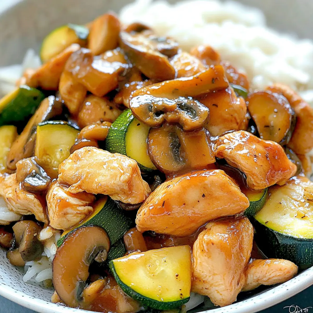 Jump to Recipe Print RecipeAs I chopped the mushrooms and breathed in their earthy aroma, I couldn’t help but feel transported to my favorite little corner of the city, where the savory scents of Panda Express wafted through the air. Today, I’m excited to share my Easy Copycat Panda Express Mushroom Chicken, a dish that brings that restaurant magic straight to your kitchen. With tender chicken marinated in garlic soy sauce and sautéed with fresh zucchini, this recipe is not only a delightful weeknight dinner option but also quick to whip up, perfect for busy lives. You’ll love how this comforting meal satisfies those cravings for takeout while being made with fresh ingredients. Are you ready to recreate this beloved classic right at home? Let’s dive in! Why is this dish a must-try? Quick & Easy Preparation: This copycat dish comes together in no time, making it an ideal solution for those hectic weeknights. You’ll appreciate the minimal prep and cook time! Flavor Explosion: The perfect balance of garlic, ginger, and savory sauces creates a rich flavor profile that will have your taste buds dancing. Healthy Ingredients: Featuring fresh veggies and tender chicken, you can enjoy a delicious meal without compromising on nutrition. Crowd-Pleasing Appeal: This dish is sure to please everyone, whether you’re serving up family dinner or entertaining guests. Endless Customization: Feel free to experiment with different vegetables or spice levels for a personalized touch. It’s a versatile recipe that can easily adapt to your preferences! Panda Express Mushroom Chicken Ingredients For the Chicken • Boneless, Skinless Chicken Breast – This is your main protein source; thighs can be substituted for a richer flavor. • Vegetable Oil – Ideal for frying; swap with sesame oil for enhanced taste. For the Vegetables • Mushrooms (2 cups) – These add umami; choose shiitake or button mushrooms based on what’s available. • Zucchini (1 large) – Provides crunch; bell peppers or broccoli can be used instead. For the Marinade • Garlic (3 cloves, minced) – Adds aromatic goodness; increase for a more potent flavor. • Ginger (1 teaspoon, minced) – Infuses warmth; fresh is preferred, but ground can work too. • Light Soy Sauce (2 tablespoons for marinade, 1/4 cup for sauce) – Delivers depth of flavor; tamari is a great gluten-free alternative. • Rice Vinegar (1 tablespoon for marinade, 1 tablespoon for sauce) – Balances flavors with acidity; white vinegar suffices if needed. • Sesame Oil (1 tablespoon) – Introduces a nutty richness; omit if unavailable, but it will be less flavorful. • Cornstarch (2 tablespoons for marinade, 1 tablespoon for sauce) – Acts as a thickener; arrowroot or tapioca starch can replace it. For the Sauce • Water (1/2 cup) – Essential for sauce consistency; don’t skip this. • Oyster Sauce (2 tablespoons) – Adds sweetness and depth; hoisin sauce can substitute if you prefer a sweeter profile. • Brown Sugar (2 teaspoons) – Balances savory flavors; honey or maple syrup can serve as replacements. These carefully chosen ingredients make your Panda Express Mushroom Chicken Copycat not only delicious but also a quick-to-prepare family favorite that captures the essence of your favorite restaurant meal! Step‑by‑Step Instructions for Panda Express Mushroom Chicken Copycat Step 1: Marinate the Chicken In a medium bowl, whisk together 2 tablespoons of light soy sauce, 1 tablespoon of rice vinegar, 1 tablespoon of sesame oil, and 2 tablespoons of cornstarch until smooth. Add the sliced boneless, skinless chicken breasts, coating them well in the marinade. Allow the chicken to marinate for at least 20 minutes, or for deeper flavor, up to overnight in the refrigerator. Step 2: Prepare the Sauce In a separate mixing bowl, combine ½ cup of water, ¼ cup of light soy sauce, 2 tablespoons of oyster sauce, 1 tablespoon of rice vinegar, 2 teaspoons of brown sugar, and 1 tablespoon of cornstarch. Stir them together until the mixture is smooth and the cornstarch is fully dissolved. Set this sauce aside, as it will enhance the final flavor of your Panda Express Mushroom Chicken Copycat. Step 3: Cook the Chicken Heat 2 tablespoons of vegetable oil in a large skillet over high heat until shimmering. Carefully add the marinated chicken in a single layer, making sure not to crowd the pan for optimal browning. Cook the chicken for about 3-5 minutes, or until golden brown and cooked through. Once done, remove the chicken from the skillet and set it aside on a plate. Step 4: Sauté the Vegetables In the same skillet, add the cleaned and sliced mushrooms and zucchini. Sauté the veggies over medium-high heat for approximately 2-3 minutes, cooking until they are crisp-tender and slightly caramelized. This step adds both texture and flavor to your Panda Express Mushroom Chicken Copycat, making the dish lively and appealing. Step 5: Combine and Finish Lower the heat and return the cooked chicken to the skillet with the sautéed mushrooms and zucchini. Add the minced garlic and ginger, stirring everything together for just 1 minute until fragrant. Pour the prepared sauce over the chicken and vegetables, stirring continuously until the sauce thickens and beautifully coats the ingredients, about 2-3 minutes. Serve your dish hot and enjoy! How to Store and Freeze Panda Express Mushroom Chicken Fridge: Store leftovers in an airtight container for up to 3 days to maintain freshness and flavor. Reheat thoroughly before serving. Freezer: Freeze in individual portions using airtight containers or freezer bags for up to 3 months. Thaw in the refrigerator before reheating for best results. Reheating: Reheat in a skillet over medium heat, adding a splash of water or broth to revive the sauce consistency. Stir occasionally until heated through. Helpful Tricks for Panda Express Mushroom Chicken Copycat Marinate Longer: Extend marination to overnight for a deeper flavor 