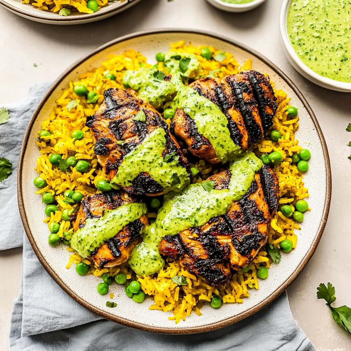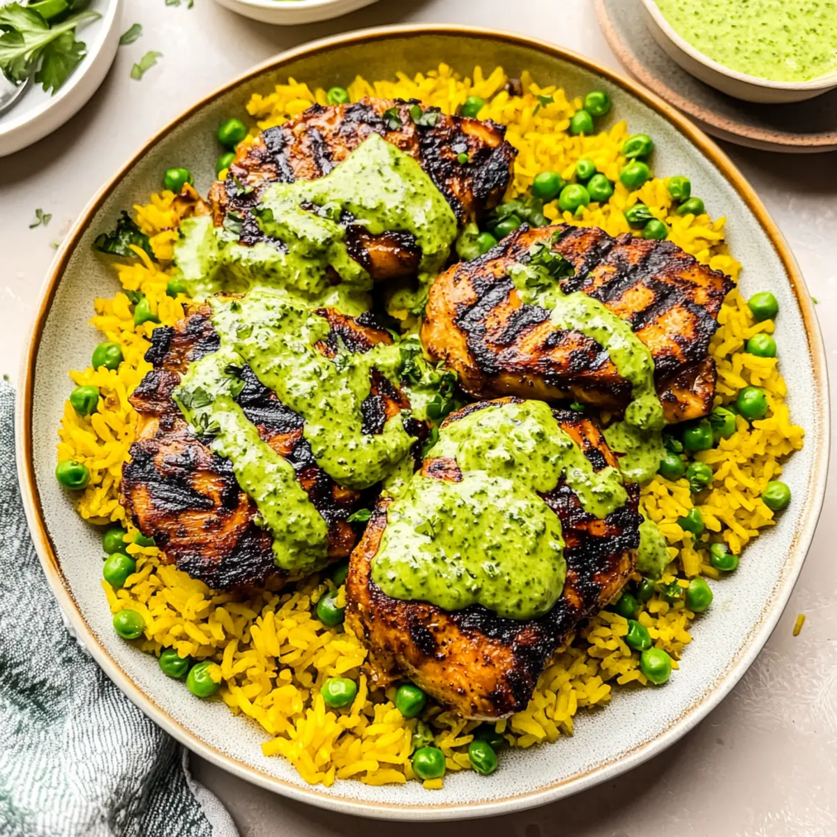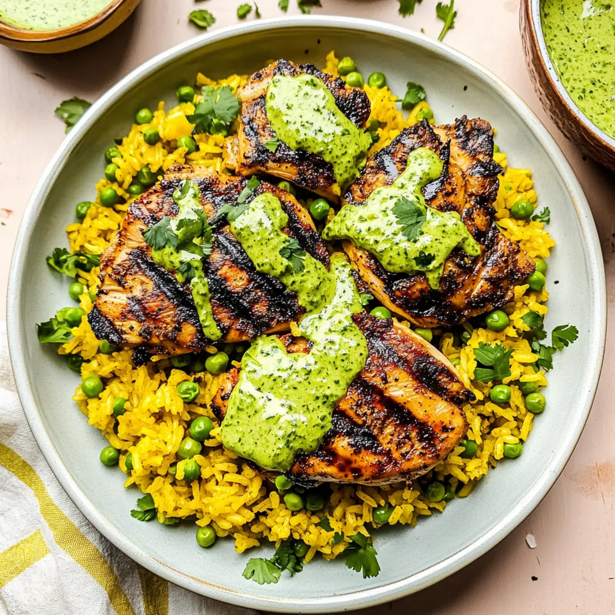 Jump to Recipe Print RecipeAs a burst of sunshine graces the dinner table, I can’t help but think of my favorite comfort food—Peruvian Chicken & Rice with Green Sauce. This versatile dish embraces juicy marinated chicken and fluffy jasmine rice, coupled with a vibrant creamy ají verde sauce that truly elevates every bite. Not only is it a wholesome option for those craving homemade food over fast meals, but it’s also quick to prepare, allowing you to whip up a flavorful feast in no time. Imagine spreading smiles around the table as everyone digs into this colorful, satisfying plate. Are you ready to discover the secret behind this delightful blend of flavors? Let’s dive in! Why is this recipe a must-try? Versatile: This recipe opens up a world of possibilities with your choice of chicken cuts and cooking methods, making it easily adaptable for everyone. Flavor Explosion: The marriage of marinated chicken with zesty ají verde sauce delivers a symphony of flavors that will tantalize your taste buds. Time-Saving: Ready in under an hour, you can enjoy a homemade meal without spending all day in the kitchen—perfect for busy weeknights! Colorful Presentation: The vibrant green sauce over turmeric-hued rice creates a dish that’s as pleasing to the eye as it is to the palate. Crowd-Pleasing: Whether for family dinners or entertaining guests, this dish effortlessly impresses everyone at the table, making you the culinary star of the evening. Don’t forget to serve it alongside a simple green salad for a complete meal that’s bursting with freshness. Peruvian Chicken & Rice Ingredients For the Chicken • Chicken (1.5-2 pounds) – Use any cuts like thighs, breasts, or drumsticks for a versatile and flavorful main. • Garlic (2-3 cloves, minced) – This aromatic ingredient adds depth; increase the amount for a more robust flavor. • Lime juice (2 tbsp) or white vinegar – Brightens the marinade; vinegar is a perfectly suitable alternative. • Oil (2 tbsp, any choice) – Essential for the marinade; olive oil can provide a healthier twist. • Ground cumin (1 tbsp) – Adds warmth and earthiness; coriander can be switched for a unique profile. • Smoked paprika (1 tsp) – Offers rich, smoky notes; regular paprika is an excellent substitute if needed. • Kosher salt (1 tsp) – Your essential seasoning; regular salt can do the trick if kosher isn’t available. • Black pepper (1/2 tsp, ground) – Freshly ground gives the best flavor and enhances seasoning. For the Green Sauce • Fresh cilantro leaves (1 cup) – This ingredient is the backbone of the sauce; feel free to swap with parsley for a different flavor. • Mayonnaise (1/2 cup) & sour cream (1/4 cup) – Adds creaminess; Greek yogurt can lighten it up. • Jalapeños (2, chopped) – Provides a spicy kick; adjust the quantity based on your heat preference. • Garlic (2 cloves) – Strengthens the overall flavor; omit if you’re watching your garlic intake. • Olive oil (1 tbsp) – Ensures a smooth consistency in the sauce; can substitute with avocado oil if desired. • Fresh lemon or lime juice (1 tbsp) – This balances the flavors; add more to taste for an extra zing. For the Peruvian Yellow Rice • Jasmine rice (1 cup) – The perfect base grain; any long-grain rice can also work. • Butter or oil (1 tbsp) – Infuses richness into the rice; a plant-based fat can be used too. • Onion (1/4 cup, diced) & garlic (2-3 cloves, minced) – These contribute aromatic flavor; shallots are an appealing substitute. • Turmeric (1 tsp) – Provides beautiful color; if it’s not on hand, you can simply omit it. • Cumin, onion powder, salt, pepper (1/4 tsp each) – Essential seasonings; feel free to adjust these to fit your taste. • Chicken stock (2 cups) – Rich in flavor; vegetable broth complements the dish beautifully as well. • Frozen peas (1 cup) – Adds a touch of sweetness and vibrant color; swap them out for another veggie if desired. Understanding the ingredients of this Peruvian Chicken & Rice with Green Sauce empowers you to create the perfect balance of flavors and textures in this delightful dish! Step‑by‑Step Instructions for Peruvian Chicken & Rice with Green Sauce Step 1: Marinate Chicken In a mixing bowl, combine minced garlic, lime juice, oil, ground cumin, smoked paprika, salt, and black pepper to create a flavorful marinade. Set aside ¼ cup of this marinade, then add your chicken cuts, ensuring they’re thoroughly coated. Cover and refrigerate, allowing the chicken to marinate for at least 1 hour, or overnight for a deeper flavor. Step 2: Prepare Cooking Method Preheat your grill to medium-high or your oven to 450°F. Ensure the grill grates are clean and lightly oiled to prevent sticking. If baking, line a baking sheet with foil for easier cleanup. Proper preheating will help achieve the perfect char and juiciness in your chicken for the rewarding Peruvian Chicken & Rice with Green Sauce. Step 3: Cook Chicken For grilling, place the marinated chicken on the hot grill, cooking for about 5-7 minutes per side. Use the reserved marinade to baste the chicken for added flavor and moisture. If baking, arrange chicken on the lined baking sheet and bake for 30 minutes, or until it reaches an internal temperature of 165°F, basting halfway through for even seasoning. Step 4: Make Rice While the chicken cooks, rinse and soak 1 cup of jasmine rice in cold water for about 15 minutes, then drain. In a medium saucepan, melt butter over medium heat and sauté diced onion and minced garlic until they’re soft and fragrant. Stir in the drained rice and seasonings for 1 minute, allowing each grain to toast slightly before adding chicken stock. Step 5: Cook Rice Add 2 cups of chicken stock to the rice mixture and bring it to a rapid boil. Once boiling, cover the pot with a lid, reduce the heat to low, and simmer for 15 minutes. After cooking, turn off the heat and let it rest for an additional 5-