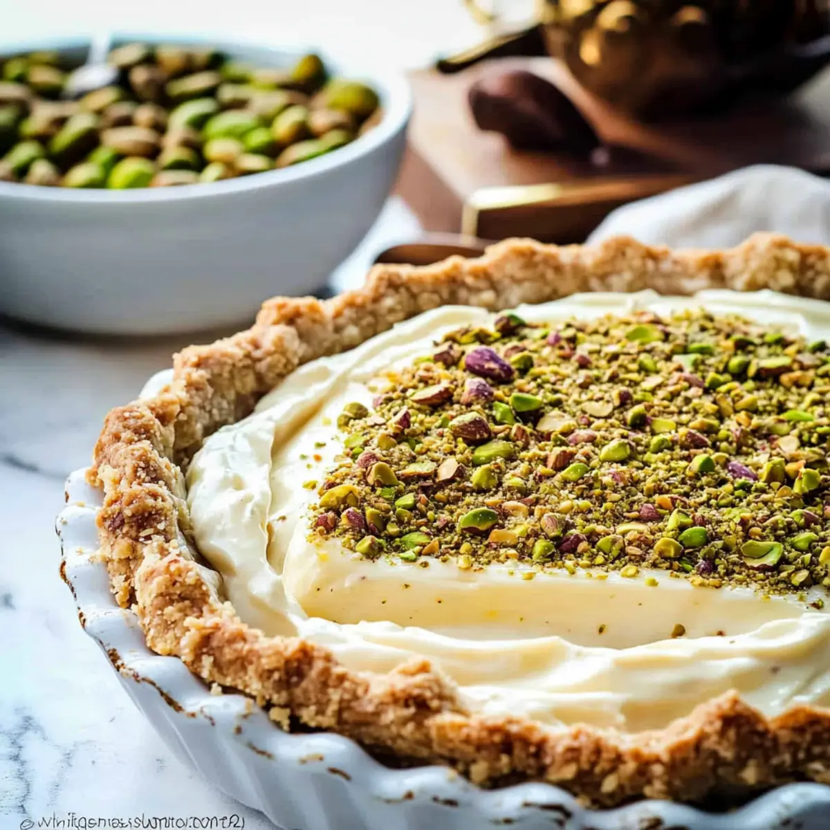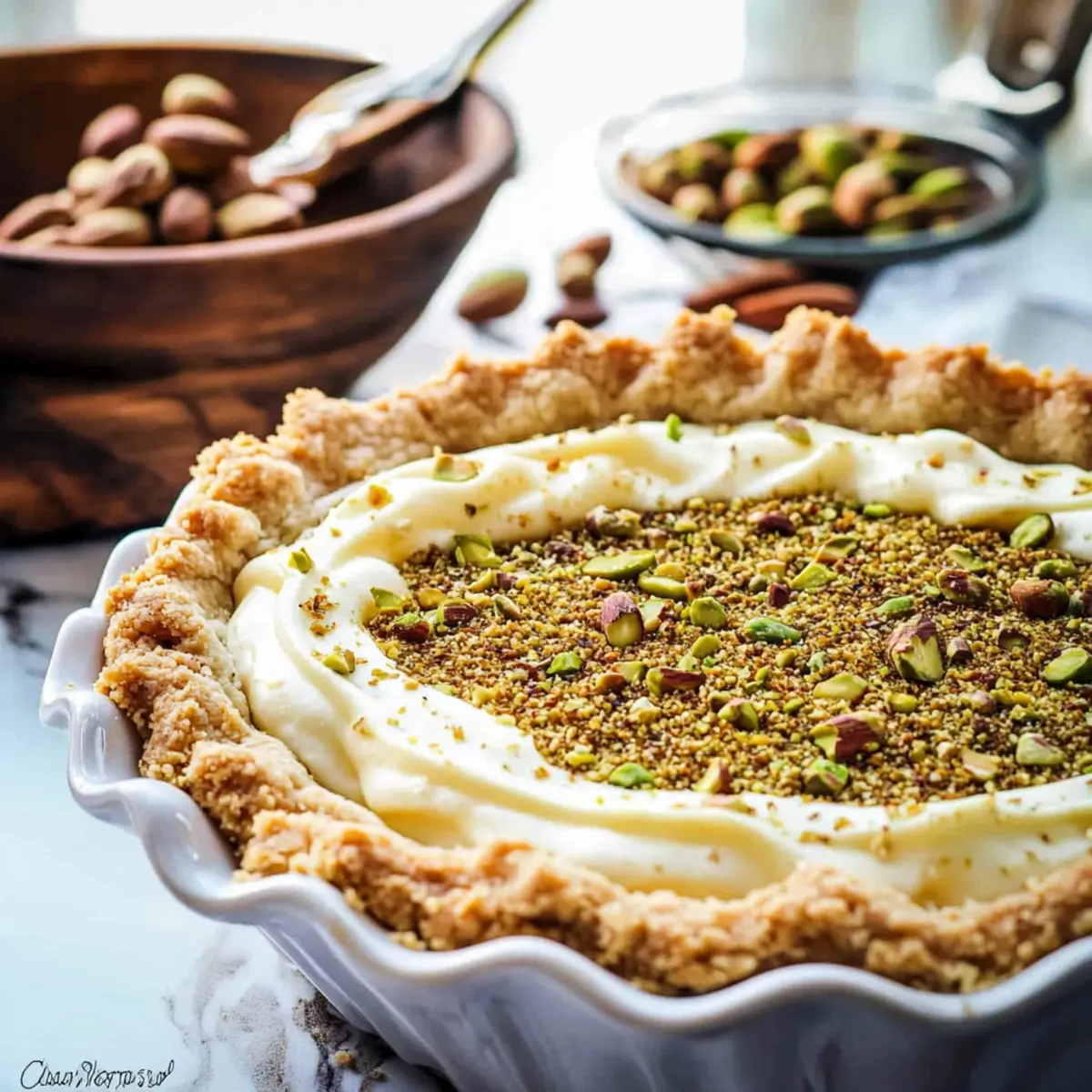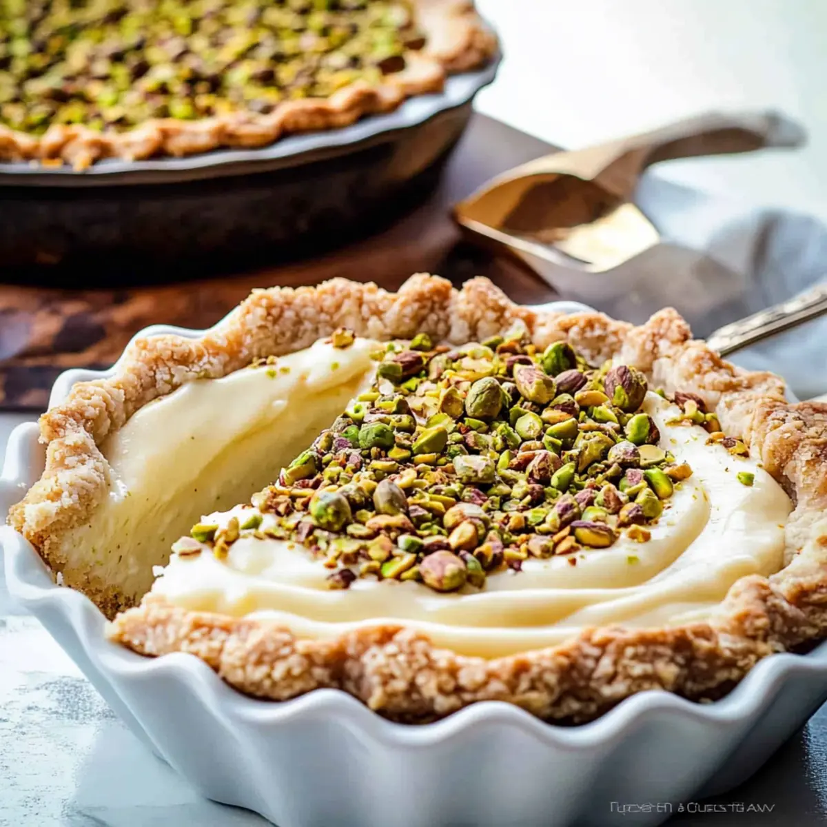 Jump to Recipe Print RecipeAs I sifted through my pantry, the vibrant green of pistachios caught my eye, sparking an idea for a delightful dessert that would warm any gathering. This Creamy Pistachio Custard Pie is more than just a sweet treat; it’s an invitation to indulge in rich, comforting flavors that evoke the joy of celebration. With a buttery shortbread crust and a luscious filling blending the creaminess of cream cheese with the nutty delight of roasted pistachios, it becomes the star of your holiday dessert table. Not only is this pie a crowd-pleaser, but it’s also surprisingly easy to prepare, allowing you to spend less time in the kitchen and more time with loved ones. Ready to create a showstopper that will have everyone asking for seconds? Let’s dive into this dreamy recipe! Why is Pistachio Custard Pie So Special? Irresistible Flavor: The rich alliance of creamy cream cheese and roasted pistachios creates a dessert bursting with flavor that will leave everyone wanting more. Crowd-Pleasing Delight: Perfect for gatherings, this pie never fails to impress guests, making it an ideal show-stopper for your holiday celebrations. Effortless Preparation: With simple ingredients and straightforward steps, you can whip up this delightful custard pie without breaking a sweat. Textural Harmony: Each slice offers a delightful contrast of the flaky shortbread crust and smooth custard, ensuring every bite is a heavenly experience. Versatile Twist: Want to shake things up? Consider adding chocolate or citrus zest for an exciting flavor play that personalizes your dessert. So, gather your ingredients and get ready to impress with this Creamy Pistachio Custard Pie that encapsulates comfort and festive cheer! Pistachio Custard Pie Ingredients Unlock the secrets to making this indulgent, festive dessert! For the Crust All-Purpose Flour – Provides the essential structure; gluten-free alternatives can work if needed. Salt – Enhances flavors; stick to the specified amount for the best balance. Granulated Sugar – Sweetens both crust and filling; consider brown sugar for a richer flavor. Cold Salted Butter – Ensures a flaky texture; unsalted butter is fine if you adjust the salt. Finely Chopped Pistachios – Enhances the crust’s taste; can substitute with crushed almonds if necessary. Ice Water – Binds the crust; add as needed to achieve the right consistency. For the Filling Lightly Salted Roasted Pistachios – The star flavor of the filling; be sure they’re lightly salted to balance sweetness. Cream Cheese – Adds a creamy, smooth texture; vegan cream cheese can be a dairy-free alternative. Eggs – Thickens the custard; aquafaba is a good vegan substitute. Vanilla Extract – Delivers depth of flavor; imitation vanilla can be used but lacks richness. Almond Extract – Provides a subtle nutty essence; omit if you have allergies. Whole Milk – Contributes to creaminess; almond milk is suitable for dairy-free versions. For Serving Whipped Cream – A light topping that finishes the pie beautifully; plant-based whipped topping can be used as an alternative. Now that you have gathered your ingredients, get ready to create a stunning Pistachio Custard Pie that will be the highlight of any gathering! Step‑by‑Step Instructions for Pistachio Custard Pie Step 1: Prepare the Crust In a mixing bowl or food processor, combine flour, salt, and granulated sugar. Cut in cold salted butter using your fingers or a pastry blender until the mixture resembles pea-sized crumbs. Stir in finely chopped pistachios, gradually adding ice water until the dough holds together. Shape the dough into a disc, wrap in plastic wrap, and chill in the refrigerator for at least 30 minutes to ensure a flaky crust. Step 2: Make the Filling Preheat your oven to 350°F (175°C), ensuring it’s hot and ready for baking. In a food processor, blend the lightly salted roasted pistachios with half of the granulated sugar until finely ground. In a separate bowl, beat cream cheese with the remaining sugar until smooth. Incorporate eggs one at a time, mixing well after each addition, followed by the vanilla and almond extracts, milk, and the ground pistachio mixture. Whisk until completely smooth. Step 3: Assemble and Bake Roll out the chilled pie crust on a floured surface until about 1/8 inch thick. Fit the crust into a 9-inch pie dish, crimping the edges for an elegant finish. Pour the creamy filling into the prepared crust, smoothing the top with a spatula. Place the pie in the preheated oven and bake for 45-55 minutes, or until the outer 3 inches are set and the center remains slightly jiggly, indicating the custard is perfectly cooked. Step 4: Cool and Refrigerate Once baked, remove the Pistachio Custard Pie from the oven and allow it to cool completely at room temperature for 1 to 2 hours. This cooling step is crucial for setting the custard. After it has cooled, refrigerate the pie for at least 3 hours, or overnight if you have the time, to enhance its flavor and texture before serving. Step 5: Serve When ready to serve, top the chilled pie with a generous dollop of whipped cream and a sprinkle of finely chopped pistachios for an added crunch. Slice into wedges and enjoy the delightful layers of creamy custard and crunchy crust. This Pistachio Custard Pie is sure to impress your family and friends at any gathering! How to Store and Freeze Pistachio Custard Pie Fridge: Store the pie in the refrigerator, covered tightly with plastic wrap or in an airtight container, for up to 3 days to maintain its creamy texture. Freezer: Avoid freezing the Pistachio Custard Pie, as it may compromise the smooth texture of the custard and the integrity of the crust. Reheating: If you need to enjoy leftovers, let the pie sit at room temperature for about 30 minutes before serving, bringing back its delightful creamy richness. Variations & Substitutions for Pistachio Custard Pie Feel free to get creative and personalize this de