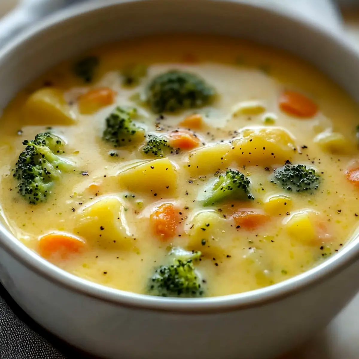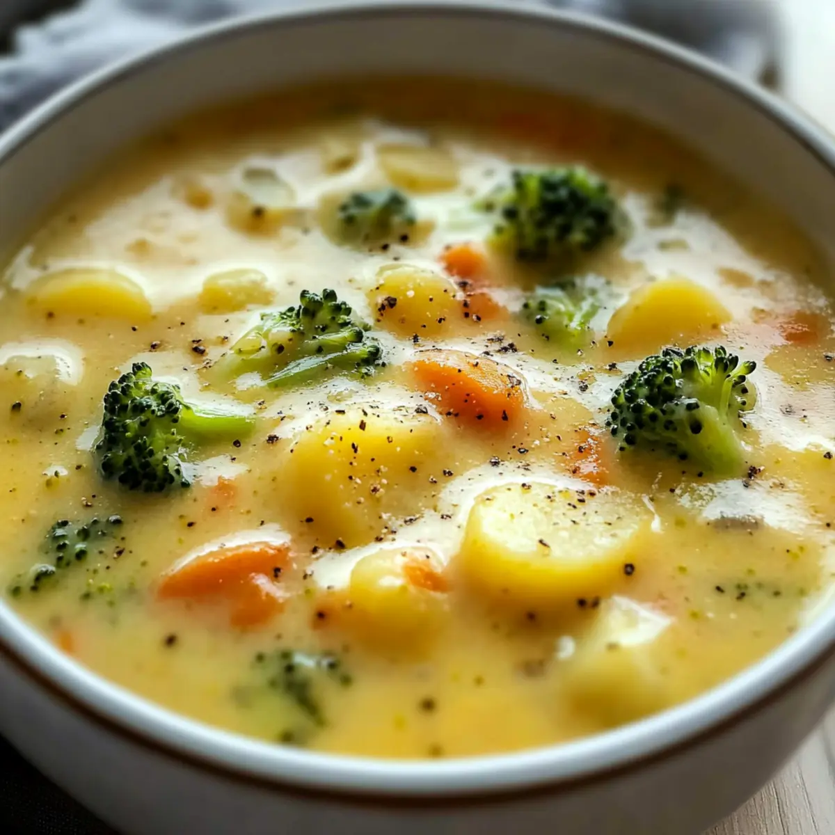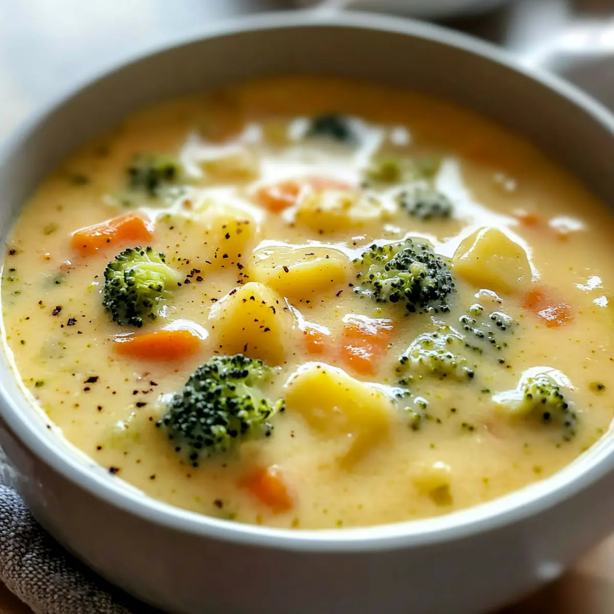 Jump to Recipe Print RecipeAs the first autumn leaves start to fall, the craving for cozy comfort food kicks in. This isn’t just any soup; it’s my Creamy Crockpot Potato Broccoli Cheddar Soup, a delightful dish that brings warmth and solace after a long day. Perfect for chilly evenings, this slow-cooker recipe transforms everyday ingredients into a luscious, creamy delight that’s both hearty and nourishing. The best part? It’s a meal-prep dream, allowing you to whip up big batches with minimal effort, making it a crowd-pleaser for family dinners or quick lunches. Plus, it’s a vegetarian option that doesn’t skimp on flavor! Are you ready to indulge in a bowl of pure comfort? Why is this soup a must-try? Comforting and Creamy: This Crockpot Potato Broccoli Cheddar Soup is a hug in a bowl, with a velvety texture that melts in your mouth. Effortless Cooking: Simply toss in your ingredients and let the slow cooker do the magic—perfect for busy nights! Vegetarian Delight: Packed with vegetables, it’s a rich, hearty option anyone can enjoy, making it crowd-friendly. Meal Prep Friendly: Make a big batch to enjoy throughout the week, ideal for quick lunches or dinners. Flavor Explosion: With the perfect balance of cheese and spices, every spoonful bursts with taste that leaves you wanting more! Potato Broccoli Cheddar Soup Ingredients For the Soup • Broccoli Florets – Adds nutritional value and texture; fresh or frozen can be used for convenience. • Chopped Onion – Provides aromatic depth; substitute shallots for a sweeter flavor. • Shredded Carrots – Brings color and a touch of sweetness; opt for pre-shredded to save time. • Cream Cheese – Delivers richness and creaminess; can be swapped with sour cream for a tangy kick. • Minced Garlic – Elevates the overall flavor; fresh garlic is best for its punchy taste. • Nutmeg – Infuses a warm, nutty aroma; feel free to omit if you don’t have it on hand. • Kosher Salt – Balances flavors well; you can use regular salt but adjust the amount. • Black Pepper – Adds mild heat and depth; freshly ground gives a more fragrant note. • Cornstarch – Serves as a thickening agent; arrowroot powder is a great gluten-free alternative. • Chicken Broth – Acts as the soup’s base; replace it with vegetable broth for a vegetarian option. • Shredded Cheddar Cheese – Creates a rich, cheesy flavor; sharp cheddar amps up the taste. • Milk – Aids creaminess; choose whole, low-fat, or plant-based milk like almond or oat for variety. For a Creamy Finish • Additional Milk – Stir in more before serving if you prefer a silkier texture. • Extra Cheese – Don’t hesitate to sprinkle more cheddar for that cheesy goodness! Step‑by‑Step Instructions for Creamy Potato Broccoli Cheddar Soup Step 1: Prepare the Broccoli Start by chopping fresh broccoli into small, bite-sized florets and place them in the bottom of your slow cooker. This forms the hearty base of your Creamy Potato Broccoli Cheddar Soup, ensuring each spoonful is packed with nutritious goodness. Step 2: Add Layers Next, spread a colorful layer of shredded carrots and chopped onions over the broccoli. Then, dollop in the cream cheese and sprinkle minced garlic evenly across the top. These ingredients will meld beautifully, infusing the soup with flavor as it cooks. Step 3: Mix Broth and Spices In a separate bowl, whisk together chicken broth and cornstarch until smooth, creating a thickening agent that will enrich your soup. Carefully pour this mixture over the layered ingredients in the slow cooker, ensuring all components are well-coated. Cover and cook on High for 2-3 hours or Low for 6-7 hours until the vegetables are tender. Step 4: Final Touch When it’s almost time to serve, reduce the slow cooker heat to Low. Stir in the milk and shredded cheddar cheese, allowing them to melt thoroughly into the soup. This additional 30-minute cooking time allows the flavors to meld into a creamy and delicious broth that’s simply irresistible! How to Store and Freeze Potato Broccoli Cheddar Soup Fridge: Store the soup in an airtight container for up to 4 days. Make sure it cools completely first to maintain freshness. Freezer: Portion the soup into freezer-safe containers, leaving some space at the top for expansion. It can be frozen for up to 3 months. Reheating: When ready to enjoy, thaw overnight in the fridge and reheat on the stove over low heat, adding a splash of broth or milk for creaminess. Avoiding Pockets of Ice: To prevent freezer burn, wrap containers in plastic wrap or aluminum foil before sealing. This keeps your Potato Broccoli Cheddar Soup tasting its best! What to Serve with Creamy Potato Broccoli Cheddar Soup This delicious soup pairs beautifully with sides that complement its cozy, cheesy flavor while adding freshness or crunch. Crunchy Garlic Bread: The toasted richness of garlic bread adds a delightful crunch and is perfect for dipping in the creamy broth. Simple Garden Salad: A fresh mix of greens, tomatoes, and cucumbers lifts the palate and balances the hearty flavor of the soup. Stuffed Baked Potatoes: The fluffy interior and toppings of classic loaded baked potatoes make a satisfying side that blends well with the soup’s creamy texture. Savory Quiche: A slice of spinach or cheese quiche not only brings a burst of flavor but also rounds out the meal with protein. Roasted Cauliflower: Seasoned and oven-roasted, this veggie offers a cozy touch that enhances the overall warmth of your dining experience. Crispy Potato Chips: For a playful contrast, pair with crunchy potato chips that provide a satisfying crunch against the smooth soup. Sweet Cornbread: The soft, slightly sweet corn flavor creates a delightful harmony with the savory soup, making it an inviting addition. Iced Tea or Lemonade: Refreshing beverages like homemade iced tea or lemonade cleanse the palate between bites and elevate the meal. Expert Tips for Potato Broccoli