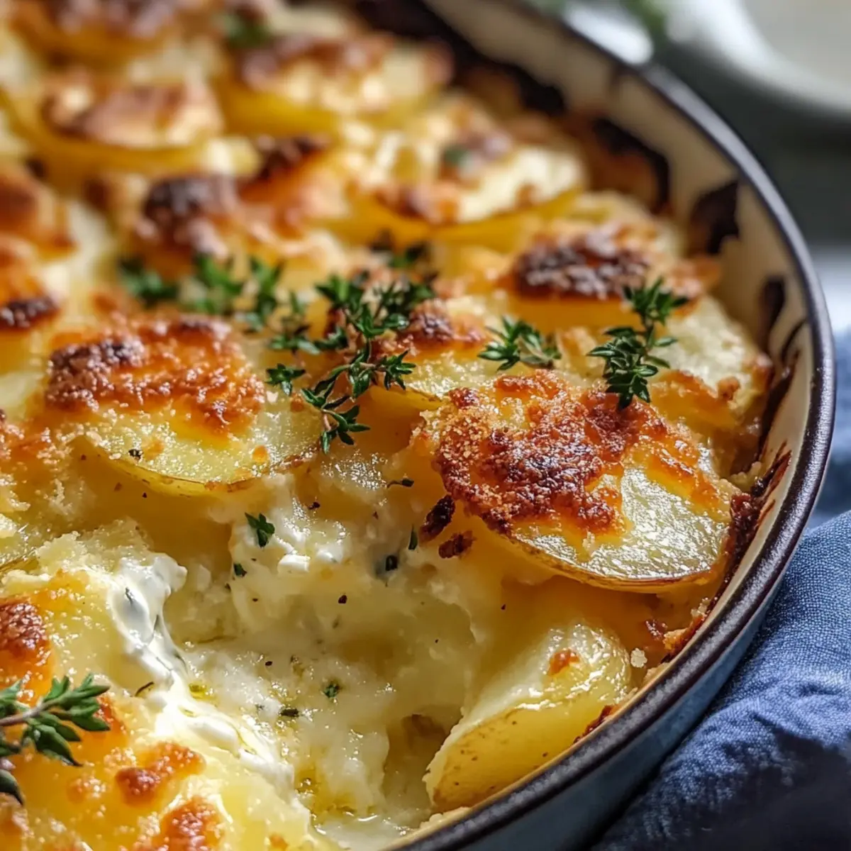 Jump to Recipe Print RecipeThe aroma of cheesy goodness wafting through the kitchen is enough to elicit smiles from everyone gathered around the table. Potatoes Romanoff has a special way of bringing cozy vibes to any meal, transforming humble ingredients into a creamy, cheesy delight that feels indulgent without breaking the bank. This dish is perfect for busy weeknights when you want something hearty but don’t have hours to spend in the kitchen. With just a few simple steps, you can whip up a comforting side that will make your taste buds rejoice and have everyone asking for seconds. So, are you ready to learn how to create this mouthwatering recipe that’ll quickly become a family favorite? Let’s dive into the delicious world of Potatoes Romanoff! Why is Potatoes Romanoff a Must-Try? Comforting warmth: This creamy dish wraps you in a cozy embrace, perfect for chilly evenings. Versatile ingredients: From russet potatoes to optional garlic, the choices allow you to customize to your taste. Easy preparation: No gourmet chef skills needed—just layer and bake for a show-stopping side! Budget-friendly: Enjoy restaurant-level flavors without the hefty price tag. Crowd-pleaser: Ideal for gatherings, this dish will have guests raving. Pair it with Hasselback Potatoes Garlic for a splendid feast! Potatoes Romanoff Ingredients Discover the creamy goodness behind Potatoes Romanoff with these easy ingredients! For the Potatoes Russet Potatoes – The starchy base that provides the perfect creamy texture; essential for this dish. For the Creamy Mixture Sour Cream – Adds a tangy creaminess that elevates each bite; you can swap it with Greek yogurt for a lighter option. Sharp Cheddar Cheese – Brings rich, cheesy flavor; consider gouda for a different twist. Grated Parmesan Cheese – Enhances umami richness; feel free to omit if necessary and add more cheddar instead. Butter – Adds richness and depth; margarine makes a suitable substitute. For the Finish Green Onions – Provides a fresh crunch and a pop of color; chives can be used as an alternative or left out for a milder flavor. Breadcrumbs – Offers a delightful crunchy topping; panko or crushed crackers can be substituted for added texture. Salt and Pepper – Essential for balancing the flavors; adjust according to your taste preferences. Prepare these ingredients, and get ready to experience the joy of making Potatoes Romanoff! Step‑by‑Step Instructions for Potatoes Romanoff Step 1: Preheat the Oven Begin by preheating your oven to 350°F (175°C). This temperature is perfect for creating that golden, bubbly topping while ensuring the creamy inside of your Potatoes Romanoff cooks to perfection. Set out your baking dish, around 9×13 inches, to prepare for the delicious layers to come. Step 2: Prepare the Potatoes Next, peel and slice your russet potatoes into thin, even rounds, about one-eighth inch thick. This will help them cook uniformly and absorb the creamy goodness. Arrange the sliced potatoes neatly in a bowl, and set them aside as you whip up that decadent creamy mixture. Step 3: Mix the Creamy Filling In a large mixing bowl, combine the sour cream, sharp cheddar cheese, grated Parmesan, softened butter, chopped green onions, salt, and pepper. Stir everything together until smooth and creamy, creating a luscious mixture that will coat your potatoes beautifully. This step is where the magic of flavor begins! Step 4: Layer the Potatoes Grease your prepared baking dish generously with butter to prevent sticking. Layer half of the potato slices evenly across the bottom of the dish. Pour half of the creamy mixture over the first layer of potatoes, ensuring they’re well coated. Repeat this process with the remaining potatoes and the rest of the cream mixture, creating a hearty, enticing dish. Step 5: Add the Crunchy Topping For that delightful texture contrast, sprinkle breadcrumbs evenly over the top layer of Potatoes Romanoff. If you love extra cheesiness, add a bit more grated cheddar or Parmesan on top. This crunchy topping will turn a lovely golden brown as it bakes, adding irresistible appeal to your dish. Step 6: Bake Covered Cover the baking dish tightly with aluminum foil to trap moisture and steam the potatoes, allowing them to cook evenly. Place the dish in the preheated oven and bake for 30 minutes. During this time, the potatoes will soften, and the flavors will meld beautifully. Step 7: Bake Uncovered After 30 minutes, carefully remove the foil, letting any steam escape. Continue baking for an additional 15-20 minutes, monitoring until the top is golden and bubbly. The aroma of your Potatoes Romanoff wafting through the kitchen is a sure sign that it’s almost ready to delight your taste buds. Step 8: Cool and Serve Once finished, take the dish out of the oven and allow it to cool for a few minutes before serving. This resting time will help the Potatoes Romanoff set a bit more, making each serving easier to cut. Serve warm, and enjoy this creamy, cheesy comfort food that’s sure to bring smiles around the table! What to Serve with Potatoes Romanoff Each bite of this creamy dish is a testament to the comforting essence of home-cooked meals. Let’s create a delightful spread that complements this cheesy treasure! Roast Chicken: The savory flavor of tender roast chicken balances the richness of Potatoes Romanoff, creating a wholesome feast. Pair it with a drizzle of gravy for extra flavor. Honey Balsamic Glazed Carrots: Sweet, tender carrots add a colorful, fresh contrast to the creamy potatoes, enhancing the overall dining experience. The glaze complements the dish’s savory elements beautifully. Mixed Greens Salad: A crisp salad with vinaigrette provides a refreshing bite, cutting through the indulgence of the potatoes. Feel free to add nuts or cheese for more texture! Grilled Asparagus: The earthy flavor and slight crunch of grilled asparagus harmonize perfectly with the richness of Potatoes Romanoff. 