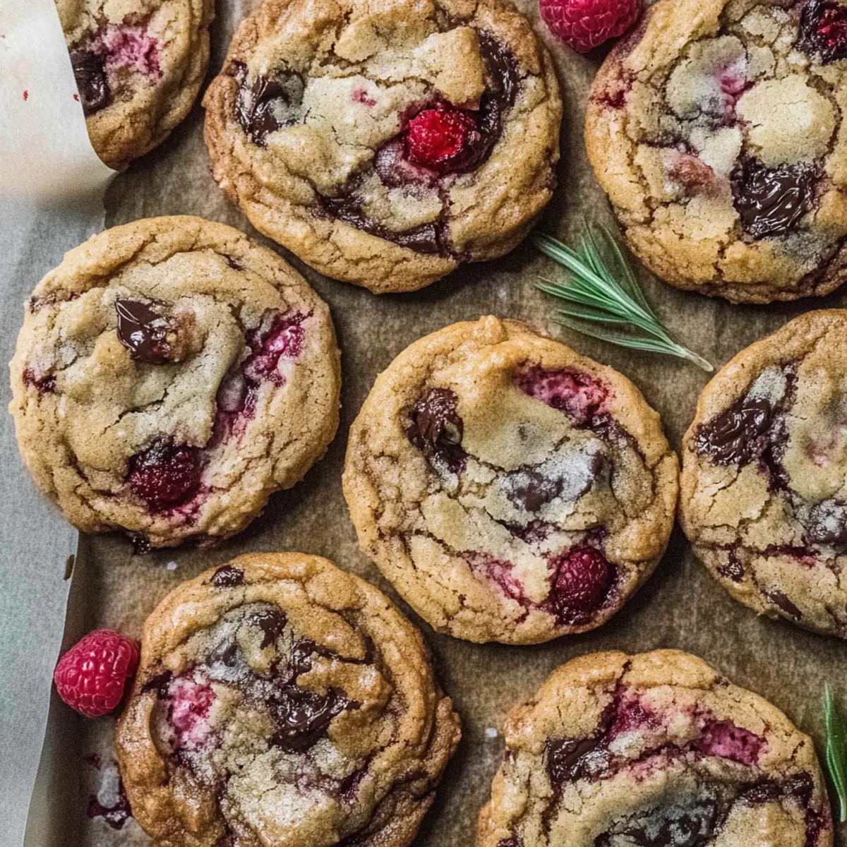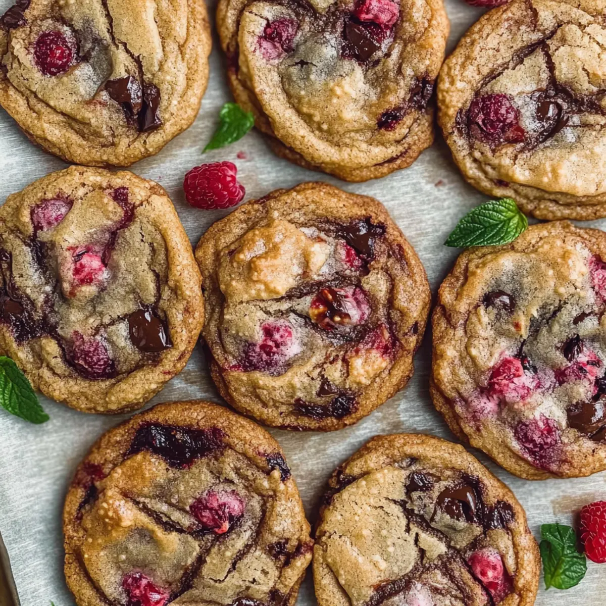 Jump to Recipe Print RecipeAs I pulled away from the bustling streets of my neighborhood bakery, the sweet aroma of warm cookies lingered in the air, reminding me of all the ways chocolate and fruit can intertwine deliciously. This moment inspired my take on Raspberry Chocolate Chip Cookies, where rich dark chocolate meets the bright tang of juicy raspberries. These no-chill cookies are not only quick to whip up but also deliver a delightful soft and chewy texture that makes them a perfect treat for gatherings or cozy evenings at home. Who can resist that gooey chocolate and those wonderful pockets of tartness? Let’s dive into the magic of this seasonal flavor combination—trust me, your taste buds will thank you! Why Are These Cookies So Irresistible? Flavor Explosion: Each bite of these cookies bursts with a vibrant blend of rich dark chocolate and tart raspberries, making them a true delight for your taste buds. No-Chill Convenience: Say goodbye to waiting for dough to chill! These easy-to-make cookies can be whipped up in no time, perfect for impromptu gatherings or late-night cravings. Soft and Chewy Texture: The combination of moist ingredients ensures a soft, chewy consistency that’s hard to resist. Crowd-Pleasing Treat: These cookies are sure to become your go-to dessert—idle hands will be reaching for more as soon as you take them out of the oven! For an added twist, you might also enjoy checking out Cotton Candy Cookies for an entirely different experience! Raspberry Chocolate Chip Cookies Ingredients • Here’s what you’ll need to make these delicious treats! For the Cookie Dough Unsalted Butter – Adds richness and moisture; choose unsalted for better sodium control. Granulated Sugar – Provides sweetness and aids in browning; feel free to reduce for a less sweet cookie. Light Brown Sugar – Offers a deeper flavor for chewy texture; swap for dark brown sugar for extra molasses taste. Egg – Binds the dough together; using a room temperature egg helps emulsification. Vanilla Bean Paste – Adds rich depth of flavor; can be substituted with vanilla extract if preferred. All-Purpose Flour – Provides structure; remember to spoon and level to avoid dense cookies. Baking Soda & Baking Powder – These leavening agents help the cookies rise; ensure they’re fresh for best results. Kosher Salt – Balances sweetness; sea salt can be used if you prefer. For the Mix-Ins Dark Chocolate Chunks – Adds gooey texture and rich flavor; opt for high-quality chocolate for the best results. Frozen Raspberries – Delivers tartness and moisture; avoid fresh raspberries as they can break apart in the dough. These Raspberry Chocolate Chip Cookies will have you baking with joy—perfect for any occasion! Step‑by‑Step Instructions for Raspberry Chocolate Chip Cookies Step 1: Melt the Butter Begin by melting 1 cup of unsalted butter in the microwave or on the stovetop. If using the microwave, heat it in short bursts of 15-20 seconds, stirring in between, until it’s just melted. Allow the melted butter to cool for about 20 minutes, preventing it from dissolving the sugars too quickly and ensuring your Raspberry Chocolate Chip Cookies have the perfect texture. Step 2: Mix the Wet Ingredients In a large mixing bowl, combine the cooled melted butter with 1 cup of granulated sugar and 1 cup of light brown sugar. Whisk these together until you achieve a smooth, paste-like consistency. Next, incorporate 1 large room temperature egg and 2 teaspoons of vanilla bean paste, mixing well until fully combined and smooth, creating a delightful base for your cookie dough. Step 3: Combine the Dry Ingredients In a separate bowl, whisk together 2 ½ cups of all-purpose flour, 1 teaspoon of baking soda, ½ teaspoon of baking powder, and ½ teaspoon of kosher salt. Gradually add the dry ingredients to the wet mixture, stirring gently until just combined. Be careful not to overmix; this ensures your Raspberry Chocolate Chip Cookies remain soft and chewy, with lovely pockets of chocolate and fruit within. Step 4: Fold in the Mix-Ins Gently fold in 1 cup of frozen raspberries and 1 cup of dark chocolate chunks into the cookie dough. Use a spatula to incorporate them carefully, ensuring they are evenly distributed while still retaining some streaks of dough. This step brings the fruity tartness and rich chocolate to life in your Raspberry Chocolate Chip Cookies, making them irresistible! Step 5: Scoop the Dough Using a 2-ounce cookie scoop, portion out the dough and place each scoop onto a parchment-lined baking sheet, ensuring they are spaced about 2 inches apart. This helps the cookies to bake evenly without merging into one another. The dough will yield lovely round mounds that promise soft, chewy cookies filled with melty chocolate and tangy raspberries. Step 6: Bake the Cookies Preheat your oven to 350°F (175°C) and bake the cookies for 12-13 minutes. Rotate the baking sheet halfway through for even baking. The edges of the cookies should turn golden brown while the centers will appear slightly soft. This visual cue is key to achieving that perfect texture for your Raspberry Chocolate Chip Cookies. Step 7: Shape the Cookies (Optional) If you prefer a more uniform shape, use a larger cookie cutter to reshape the cookies immediately after taking them out of the oven. Gently place the cutter around each cookie and move it to smooth the edges. This detail ensures your Raspberry Chocolate Chip Cookies are as beautiful as they are delicious! Step 8: Cool the Cookies Let the cookies cool on the baking sheet for about 5 minutes before transferring them to a wire rack to cool completely. This cooling period allows them to set up nicely while maintaining a soft, chewy center. Once they are on the rack, you can admire the lovely golden edges and gooey chocolate melted into the tart raspberries. What to Serve with Raspberry Chocolate Chip Cookies These delightful cookies are not just a treat on their own;
