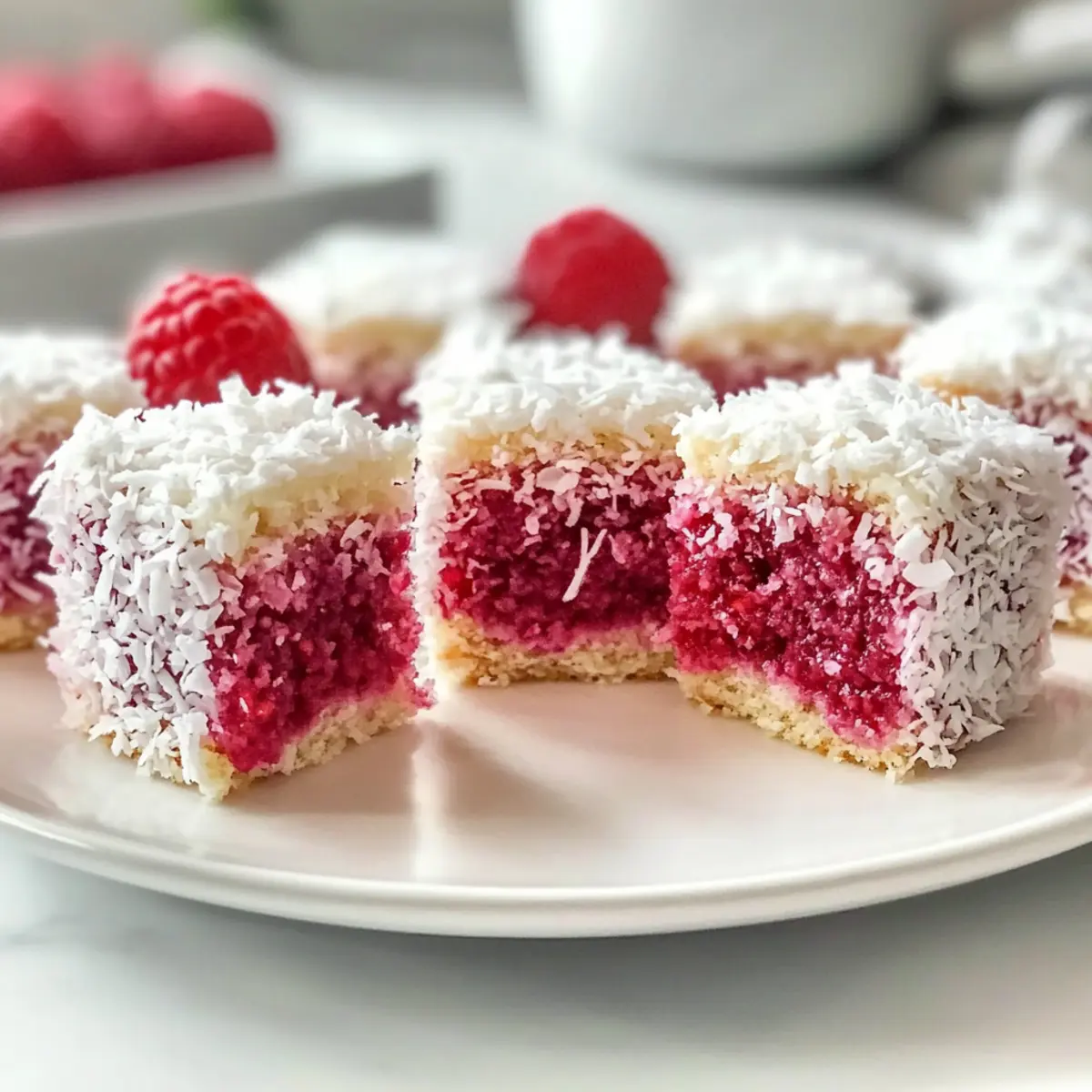 Jump to Recipe Print RecipeAs I took a bite of the fluffy sponge coated in a vibrant raspberry glaze, memories of sunny afternoons in Australia washed over me. Raspberry Lamingtons, an iconic Australian delight, have a way of capturing the essence of home-baked goodness—soft, sweet, and irresistibly charming. This recipe offers more than just a delicious treat; it’s a fantastic way to brighten any gathering, perfect for impressing guests at tea parties or simply indulging in a cozy night in. With easy-to-follow steps and the option for gluten-free adaptations, even the most novice bakers can create these delightful bites. Are you ready to embark on your baking adventure and elevate your dessert game with Raspberry Lamingtons? Let’s dive in! Why are Raspberry Lamingtons so beloved? Irresistible flavor: The combination of fluffy sponge cake, sweet raspberry glaze, and crunchy coconut creates a symphony of taste. Versatile options: Feel free to experiment with variations like Strawberry Lamingtons or a Chocolate Layer for a unique twist. Simple preparation: With straightforward steps, even beginners can achieve bakery-worthy results. Perfect for gatherings: Whether at a potluck or tea party, these lamingtons are a hit, bringing smiles to everyone’s faces. Want something even more delightful? Check out my recipes for Raspberry Cinnamon Rolls that pair beautifully with these treats! Raspberry Lamingtons Ingredients • Get ready to bake these delightful treats! For the Sponge Cake Eggs – Provide structure and leavening; warm them for better volume when whipped. Whole Milk – Adds moisture and richness; can substitute with almond or coconut milk for a dairy-free version. Butter – Contributes flavor and texture; melted butter ensures a smooth batter. Granulated Sugar – Sweetens the cake and retains moisture; ensure accurate measurements for ideal texture. Cake Flour – Creates a tender sponge; all-purpose flour can be used, although it may alter texture slightly. Baking Powder – Acts as a leavening agent; essential for a light and airy sponge cake. Salt – Enhances flavor; ideally used to balance sweetness. Vanilla Extract – Adds aromatic flavor; optional but recommended for depth. For the Raspberry Glaze Unflavored Gelatin Powder – Stabilizes the raspberry glaze; dissolve in water before use. Frozen Raspberries – Used for the glaze; fresh can be substituted but must be pureed well. Powdered Sugar – Thickens and sweetens glaze; fine sugar helps achieve a smooth consistency. For the Coating Desiccated Coconut – Coating for texture and flavor; finely shredded coconut yields the best results. These Raspberry Lamingtons promise a delightful baking experience! Step‑by‑Step Instructions for Raspberry Lamingtons Step 1: Prep Eggs Start by warming your eggs for about 5 minutes in a bowl of hot water. This simple step encourages fluffiness when whipped, ensuring a light and airy sponge cake. Once warmed, set them aside to cool slightly while you gather the other ingredients for these delightful Raspberry Lamingtons. Step 2: Preheat Oven Preheat your oven to 350°F (175°C) and prepare two round cake pans by greasing them generously and optionally dusting them with flour. This ensures easy release after baking, allowing your Raspberry Lamingtons to showcase their perfect shape and texture without sticking to the pans. Step 3: Make Sponge In a saucepan, melt the butter with the whole milk over low heat until smooth. Meanwhile, beat the warmed eggs with granulated sugar in a large mixing bowl for 5-7 minutes until the mixture is pale and tripled in volume. Gently fold in the sifted cake flour, baking powder, and salt, followed by the melted butter and milk mixture, combining until no dry flour remains. Step 4: Bake Pour the batter evenly into the prepared cake pans, smoothing the top with a spatula. Bake in the preheated oven for about 30-34 minutes, or until a toothpick inserted into the center comes out clean. Upon baking, the cakes should be golden brown and spring back lightly when touched, signaling they are ready. Step 5: Prepare Glaze While the sponge cakes cool, prepare the raspberry glaze by soaking gelatin powder in cold water in a small bowl. In a saucepan, combine the frozen raspberries, powdered sugar, and a splash of water. Heat until simmering, then strain the mixture to remove seeds and stir in the dissolved gelatin, ensuring it is completely dissolved for a smooth glaze. Step 6: Cut & Freeze Cake Once the sponge cakes are fully cooled, trim the edges to create clean squares, then cut the cakes into bite-sized squares. Place these on a baking sheet and freeze them for about 15 minutes, making them easier to handle and coat when glazing with the raspberry mixture. Step 7: Coat Cakes Retrieve the chilled sponge squares from the freezer and dip each piece into the raspberry glaze, allowing excess to drip off. Then, roll the glazed cakes in desiccated coconut until fully coated. This coconut coating adds delightful texture and sweetness, transforming your Raspberry Lamingtons into a charming treat. Step 8: Chill & Set Arrange the coated lamingtons on a parchment-lined tray, ensuring they are not touching. Transfer them to the refrigerator and chill for at least 30 minutes, allowing the glaze to set. Once chilled, they are ready to serve and enjoy, showcasing a delightful balance of textures and flavors that make Raspberry Lamingtons irresistible. Expert Tips for Raspberry Lamingtons Warm Eggs: Use warm eggs for increased volume in your sponge. This simple step really sets the foundation for a fluffy cake. Strain Glaze: Strain the raspberry glaze thoroughly to avoid a gritty texture; ensure berries are well-pureed for the smoothest result. Chill Squares: Allowing cake squares to chill before glazing prevents them from falling apart during the coating process, ensuring perfect Raspberry Lamingtons. Glaze Consistency: Adjust the glaze’s thickness as needed. If it