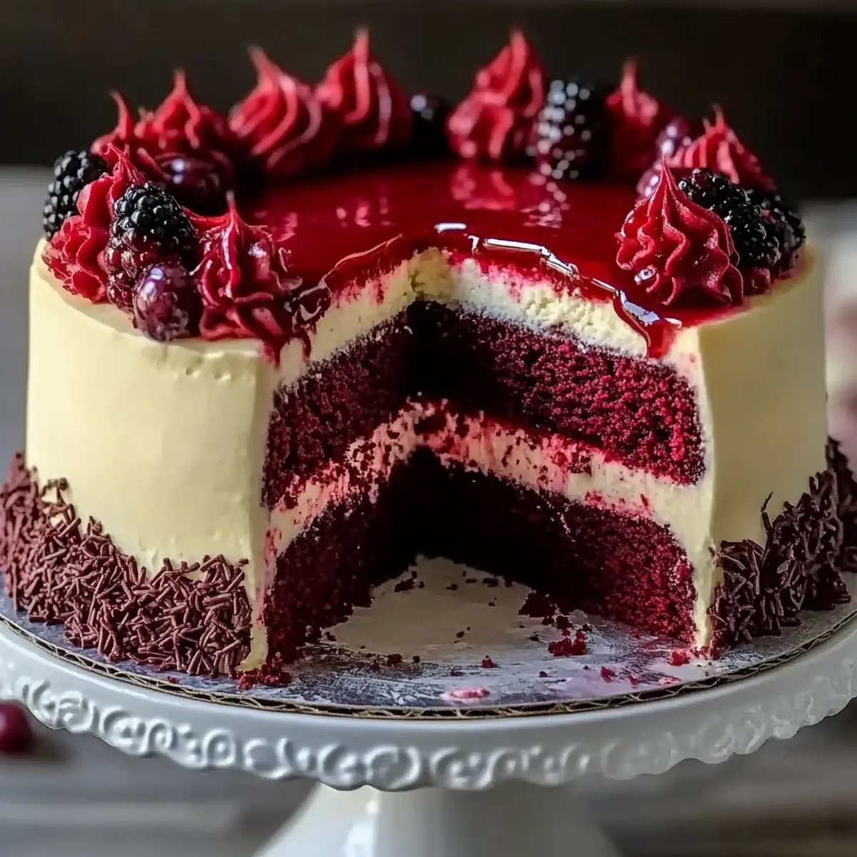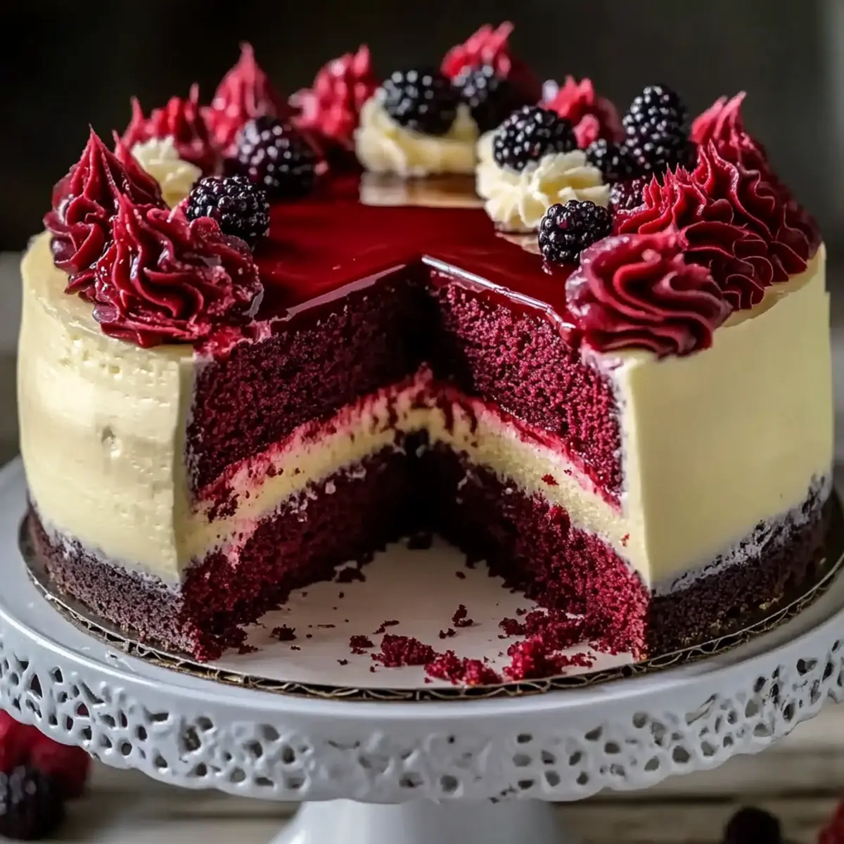 Jump to Recipe Print RecipeAs I prepared to celebrate a friend’s milestone birthday, I could almost hear the delightful sighs of sweet indulgence that would fill the room with my Red Velvet Cheesecake Layer Cake. This recipe beautifully marries the luxurious flavors of red velvet with a creamy cheesecake layer, topped off with a silky cream cheese frosting and a vibrant berry glaze. Not only is this stunning cake a showstopper, it’s also surprisingly quick to assemble, making it a perfect solution for both novice and seasoned bakers looking to dazzle their guests. Whether it’s a birthday or a casual gathering, this layered delight offers a rich taste that elevates any occasion into something special. Are you ready to impress with this elegant fusion of flavors? Why is this cake a must-try? Decadent luxury: This Red Velvet Cheesecake Layer Cake combines two beloved desserts into one truly extraordinary creation. Visually stunning: The vibrant red layers draw the eye and boast a beautiful contrast with the creamy frosting. Ease of preparation: Even if you’re not an experienced baker, this recipe guides you step-by-step for success. Versatile delight: Whether served at a birthday party or a simple gathering, it’s a showstopper that will impress any crowd. Rich flavors: The luscious cream cheese frosting and chocolate cookie crust enhance the rich taste, making each bite unforgettable. Plus, if you’re looking for more delightful cakes, check out my favorite cake recipes for inspiration! Red Velvet Cheesecake Layer Cake Ingredients • Here’s everything you need to create this delightful layered treat. For the Cookie Crust • Chocolate Cookie Crumbs – The perfect base texture; graham cracker crumbs can be used for a different flavor. • Butter (melted) – Helps bind the crust together for a solid foundation. For the Red Velvet Cake • All-Purpose Flour – Provides the structure; substitute with gluten-free flour if desired. • Cocoa Powder – Adds rich chocolate flavor and enhances the red color. • Baking Soda & Baking Powder – Essential leavening agents that help the cake rise. • Salt – Balances and enhances the flavors in your cake. • Granulated Sugar – Adds sweetness and moisture; brown sugar can deepen the flavor. • Vegetable Oil – Keeps the cake moist and tender; melted coconut oil can be a substitute. • Eggs – Acts as a binder; ensure they are at room temperature for better mixing. • Buttermilk – Contributes moisture and tanginess; can be replaced with a milk and vinegar mixture. • Vinegar – Reacts with baking soda to aid in rising and enhance the red color. • Vanilla Extract – Introduces delightful flavor to the cake. • Red Gel Food Coloring – It gives that signature red hue; avoid liquid coloring. For the Cheesecake Layer • Cream Cheese – Adds richness; heavy cream can be an alternative if needed. • Sour Cream – Provides creaminess and balances sweetness for the cheesecake. • Granulated Sugar – Sweetens the cheesecake filling beautifully. • Eggs – Essential for binding the cheesecake layer together. For the Frosting and Glaze • Powdered Sugar – Sweetens and thickens the cream cheese frosting. • Strawberry or Raspberry Jam – Serves as a luscious glaze; fresh fruit can be a healthier substitute. With these ingredients at hand, you’re ready to dive into creating your very own Red Velvet Cheesecake Layer Cake! Enjoy every step of the baking process. Step‑by‑Step Instructions for Red Velvet Cheesecake Layer Cake Step 1: Prepare the Cookie Crust Preheat your oven to 350°F (175°C). In a medium bowl, combine chocolate cookie crumbs with melted butter until well-coated. Press this mixture firmly into the bottom of a 9-inch springform pan, creating an even layer. Bake for 10 minutes, then remove and let cool completely, setting a solid base for your Red Velvet Cheesecake Layer Cake. Step 2: Make Red Velvet Cake Batter In a large mixing bowl, sift together all-purpose flour, cocoa powder, baking soda, and salt to combine the dry ingredients. In another bowl, whisk together granulated sugar, vegetable oil, eggs, buttermilk, vinegar, vanilla extract, and red gel food coloring until smooth. Gently fold the wet mixture into the dry ingredients, stirring until fully incorporated without overmixing. Step 3: Bake the Cake Layers Grease two 9-inch round cake pans with cooking spray and evenly distribute the red velvet batter between them. Place in the preheated oven and bake for 25-30 minutes, or until a toothpick inserted in the center comes out clean. Once baked, allow the layers to cool in the pans for about 10 minutes before transferring to wire racks to cool completely. Step 4: Prepare Cheesecake Layer Reduce the oven temperature to 325°F (160°C). In a large mixing bowl, beat the cream cheese and granulated sugar until smooth and creamy. Add eggs, one at a time, mixing well after each addition, then blend in sour cream and vanilla extract. Pour this cheesecake batter over the cooled cookie crust in the springform pan and bake for 40-45 minutes, until the center is slightly jiggly but set. Allow to cool before refrigerating. Step 5: Assemble the Cake Once your Red Velvet cake layers and the cheesecake layer are completely cool, take one red velvet layer and place it on a serving plate. Spread a generous layer of cream cheese frosting on top, then add the chilled cheesecake layer. Finish by placing the second red velvet layer on top and frost the entire cake with the remaining cream cheese frosting for a beautiful finish. Step 6: Add Glaze and Decorations For the finishing touch, warm the strawberry or raspberry jam in a small saucepan with a splash of water and lemon juice until smooth. Drizzle this luscious glaze over the top of your assembled cake, allowing it to cascade down the sides. Garnish with additional frosting, cookie crumbs, or chocolate chips for a delightful presentation that will impress every