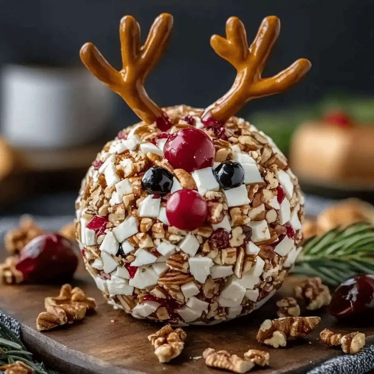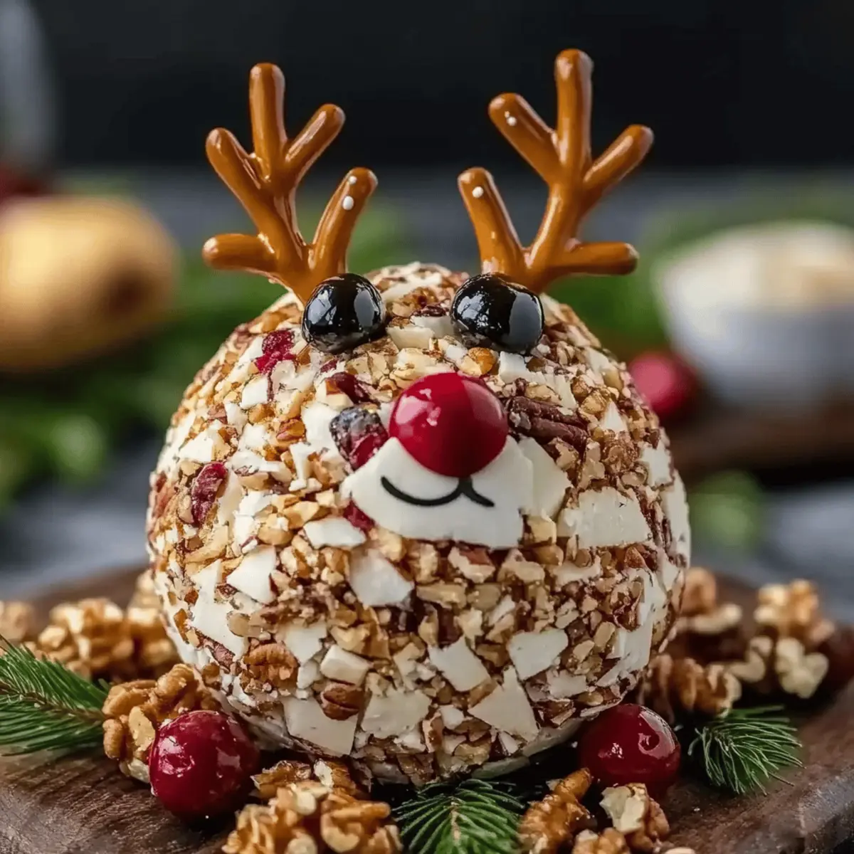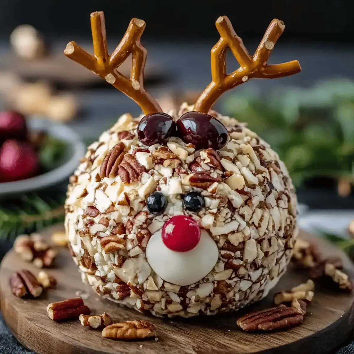 Jump to Recipe Print RecipeAs I arranged the snacks for our holiday party, a delightful little creation caught my eye—the Reindeer Cheese Ball. This whimsical appetizer isn’t just a treat for the taste buds; it’s a playful centerpiece that invites smiles and laughter from everyone gathered around the table. With its creamy blend of sharp cheddar, savory bacon, and velvety cream cheese, this festive beauty is both indulgent and gluten-free friendly. Beyond its delectable flavor, it offers a quick prep that keeps your cooking time to a minimum, allowing you to focus on making memories rather than being stuck in the kitchen. Get ready to impress your family and friends with this charming holiday staple that’s bound to be a conversation starter! What unique touches will you add to make it your own? Why is the Reindeer Cheese Ball special? Festive Presentation: The Reindeer Cheese Ball isn’t just delicious; it’s a cheerful centerpiece that brings joy to your holiday table. Crowd-Pleasing Flavor: Combining sharp cheddar with creamy richness and smoky bacon ensures every bite is a delight—perfect for any gathering! Easy Preparation: With minimal cooking skills required, this recipe lets you whip up a show-stopping appetizer in no time. Versatile Options: You can easily adapt it with vegetarian options or by experimenting with different cheeses for tailored flavor profiles. Memorable Moments: Crafted for sharing, it creates laughter and smiles, making it a conversation starter at parties. For a fun twist, consider pairing it with our delicious Strawberry Cheesecake Sandwiches to create a festive dessert option that complements the savory notes! Reindeer Cheese Ball Ingredients For the Cheese Mixture Cream Cheese – Provides a creamy base and structure; feel free to use low-fat for a lighter option. Shredded Cheddar Cheese – Adds sharpness and enhances flavor; mixing with pepper jack offers a spirited twist. Chopped Bacon – Introduces smokiness and depth; omit for vegetarian variation and try diced sun-dried tomatoes instead. Green Onions – Offers a mild onion flavor; fresh chives work great as a subtler alternative. Worcestershire Sauce – Adds umami richness; use a gluten-free version for your guests with dietary restrictions. Garlic Powder – Enhances overall flavor; fresh garlic can be substituted while adjusting to taste. Black Pepper – Provides a mild heat; adjust according to your preference. For the Coating Chopped Pecans – Offers crunch and a festive touch when rolling the cheese ball; omit for a nut-free option. For the Decorations Pretzel Twists – Create whimsical antlers; use gluten-free pretzels if needed. Black Olives – Used for the eyes; cherry tomatoes can also substitute for a pop of color. Cherry Tomato or Red Pepper Chunk – Acts as the reindeer’s nose; any red vegetable cut into chunks could work as well. Step‑by‑Step Instructions for Reindeer Cheese Ball Step 1: Mix the Cheese Ingredients In a large mixing bowl, combine the softened cream cheese, shredded cheddar cheese, chopped bacon, green onions, Worcestershire sauce, garlic powder, and black pepper. Using an electric mixer, beat the mixture on medium speed until it achieves a smooth and creamy texture, about 2–3 minutes. Make sure the ingredients are well blended; this forms the delightful base of your Reindeer Cheese Ball. Step 2: Shape the Cheese Ball Carefully shape the creamy mixture into a ball using clean hands, ensuring it’s evenly formed. Once shaped, wrap the cheese ball tightly in plastic wrap or parchment paper. Refrigerate it for at least 1 hour; this chilling process helps the flavors meld beautifully and firm up the cheese ball, making it easier to coat later. Step 3: Prepare the Coating After your cheese ball has chilled, remove it from the refrigerator and unwrap it gently. Pour the chopped pecans onto a plate. Roll the cheese ball in the pecans, ensuring it’s evenly coated for a delightful crunch and festive appearance. This step enhances the visual appeal of your Reindeer Cheese Ball, making it even more inviting for your guests. Step 4: Assemble the Reindeer Face Now comes the fun part! Place the cheese ball on your serving plate. Gently press in pretzel twists to create the reindeer’s antlers, earning you extra festive points. Next, use black olives to craft charming little eyes, and finish with a cherry tomato or red pepper chunk nestled in front as the adorable nose, bringing your Reindeer Cheese Ball to life. Step 5: Serve and Enjoy Your delightful Reindeer Cheese Ball is now ready to shine at your holiday gathering! Surround it with an assortment of colorful crackers, pretzels, or fresh vegetable sticks for dipping. This whimsical centerpiece not only serves as a tasty appetizer but also brightens your holiday table, inviting everyone to partake in the joy of this festive treat. Expert Tips for the Best Reindeer Cheese Ball Chill Well: Allow the Reindeer Cheese Ball to chill for at least one hour to enhance the flavors and firm up its shape. Fresh Ingredients: Use fresh green onions and high-quality cheese for a richer flavor profile. Avoid stale or expired ingredients to ensure the best taste. Avoid Soggy Antlers: Add pretzel antlers just before serving to keep them crunchy and prevent sogginess. Customize Flavors: Feel free to experiment with different cheeses, like gouda or pepper jack, for a unique twist. Just remember, the core ingredients should remain intact! Presentation Matters: Roll your cheese ball in pecans or another coating for an appealing look that encourages guests to dig in—it’s all part of the festive fun! Reindeer Cheese Ball Variations & Substitutions Feel free to let your imagination run wild and customize your Reindeer Cheese Ball to suit your taste and dietary needs! Vegetarian Option: Omit the bacon and incorporate sun-dried tomatoes or sautéed mushrooms for a burst of flavor. This twist keeps it hearty while pleasing veget