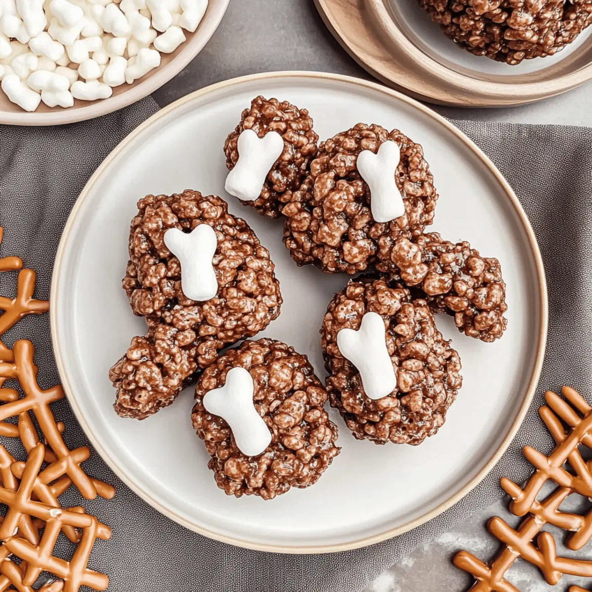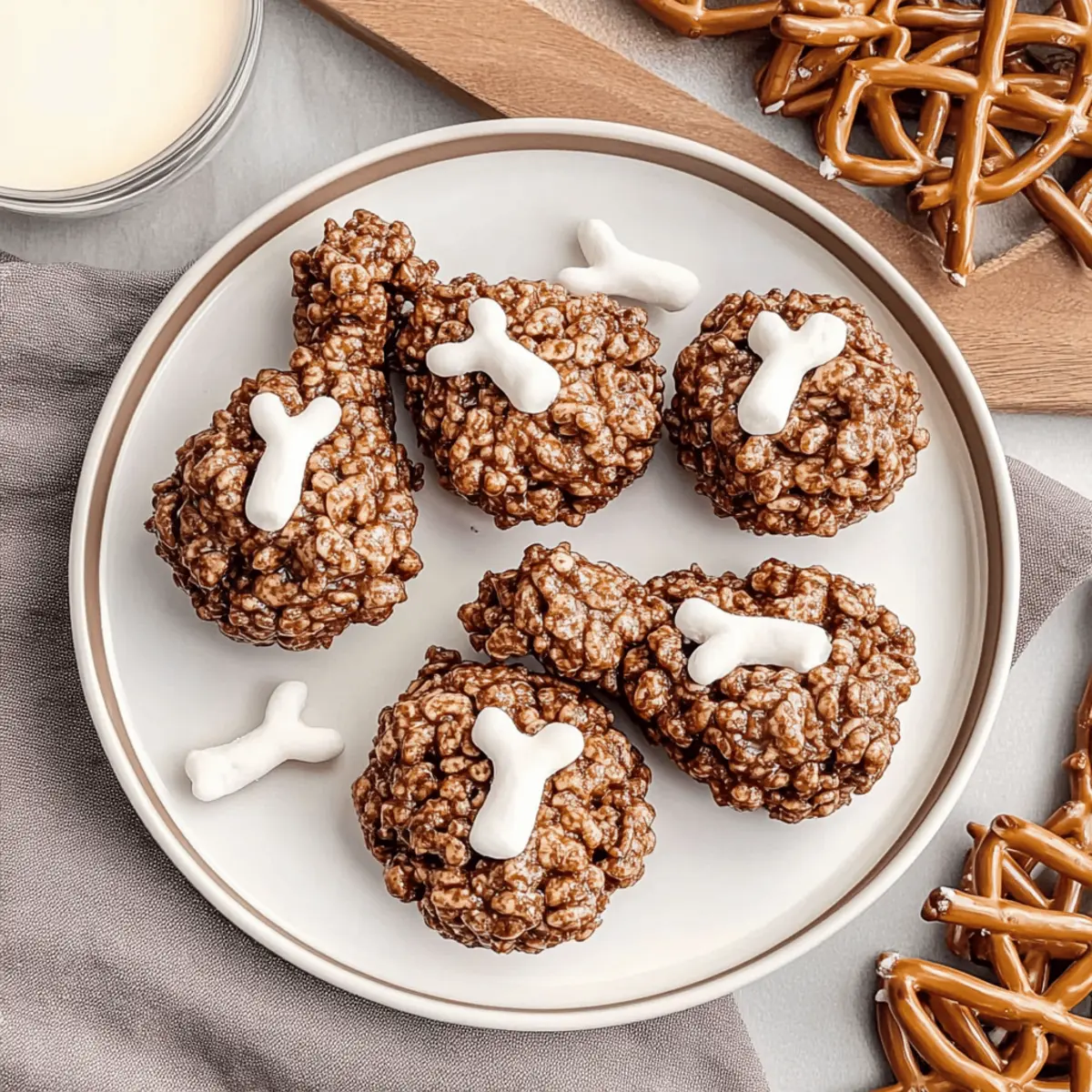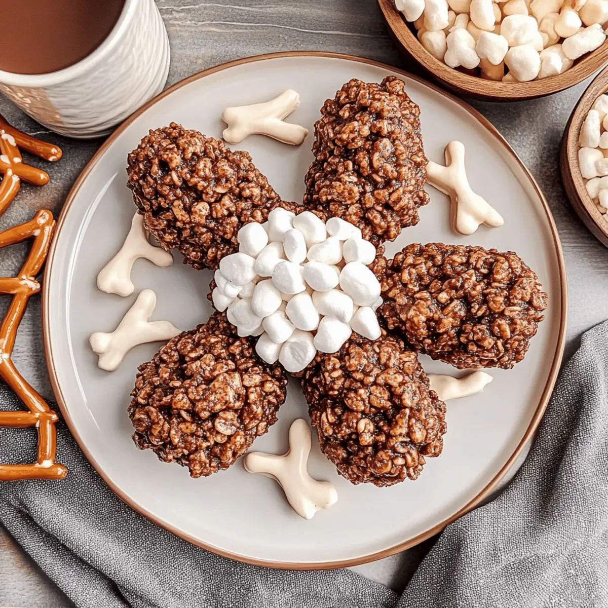 Jump to Recipe Print RecipeAs I prepared for Thanksgiving last year, the kitchen was buzzing with excitement, but one thing stole the show: my whimsical Rice Krispie turkey legs. These adorable treats combine crispy Cocoa Krispies, sweet marshmallows, and crunchy pretzel rods to create a fun, kid-friendly dessert that’s bound to delight guests of all ages. With their playful presentation and delicious flavor, these Rice Krispie turkey legs take just minutes to whip up, making them an effortless addition to your holiday spread. Plus, they’re gluten-free if you swap in some gluten-free pretzels! Ready to impress your family and friends with this creative dessert? Let’s dive into the deliciousness! Why You’ll Love These Turkey Legs Whimsical and fun: These Rice Krispie turkey legs are not just desserts; they’re a playful centerpiece that will fascinate kids and adults alike. Quick and easy: With simple ingredients and minimal prep time, you can whip these up in a flash, perfect for last-minute holiday gatherings. Kid-friendly project: Involve your little ones in the kitchen; they’ll love shaping these adorable treats and sharing in the excitement. Versatile and customizable: Feel free to use flavored melting wafers or swap Cocoa Krispies with Fruity Pebbles for a vibrant twist! Holiday favorite: These treats are guaranteed to steal the spotlight at your Thanksgiving spread, making them a go-to option for future celebrations. Serve them with a delicious hot chocolate or alongside fun desserts like Pumpkin S’mores for a holiday treat everyone will adore! Rice Krispie Turkey Legs Ingredients For the Turkey Legs • Pretzel Rods – Provide structure for the turkey legs; substitute with gluten-free pretzel rods for a gluten-free option. • Vanilla Melting Wafers – Offer a smooth coating with a rich vanilla flavor; any brand works well—choose based on your flavor preference. • Vanilla Extract – Enhances the overall vanilla flavor; consider using vanilla paste for a deeper taste if desired. • Salt – Balances sweetness; reduce the amount if you’ve used salted butter. • Mini Marshmallows – Used for shaping the bones and coating; regular marshmallows can be substituted, but adjust the melting process accordingly. • Unsalted Butter – Adds richness and helps melt the marshmallows; can be replaced with salted butter by reducing additional salt. • Cocoa Krispies – The main ingredient that creates the appearance and base of the turkey leg; feel free to explore other cereals for creative replacements. For Extra Fun • Additional Toppings – Sprinkle some rainbow sprinkles or drizzle caramel for a festive touch; this adds a delightful contrast to the Rice Krispie turkey legs. Step‑by‑Step Instructions for Rice Krispie Turkey Legs Step 1: Melt Melting Wafers In a microwave-safe bowl, combine the vanilla melting wafers. Heat at low power in the microwave, stirring every 30 seconds until fully melted and smooth, which should take about 1-2 minutes. This creates a luscious coating for your Rice Krispie turkey legs, so be careful not to overheat and seize the chocolate. Step 2: Prepare Pretzel Bones Carefully dip each pretzel rod halfway into the melted wafers, letting the excess drip off. Place the dipped rods on a parchment-lined baking sheet and attach two mini marshmallows to each end to resemble turkey leg bones. Chill in the refrigerator for about 10 minutes to set the coating and ensure a sturdy bone structure. Step 3: Melt Remaining Marshmallows In a large saucepan, melt the mini marshmallows with 2 tablespoons of unsalted butter over low heat. Stir constantly until the marshmallows are completely melted and fully integrated, about 4-5 minutes. Once smooth, mix in a pinch of salt and a splash of vanilla extract, enhancing the overall flavor for your Rice Krispie turkey legs. Step 4: Combine Cereal Remove the melted marshmallow mixture from the heat and fold in 4 cups of Cocoa Krispies until evenly coated. Allow the mixture to cool slightly for about 5 minutes, so it becomes manageable and easier to shape. The Cocoa Krispies should hold their crunch while supporting the delightful turkey leg structure. Step 5: Shape Turkey Legs Take a handful of the Cocoa Krispie mixture and mold it around the chilled pretzel bones to create a drumstick shape. Ensure it’s well-coated and resembles a turkey leg, then place the shaped treat back onto the parchment-lined baking sheet. Let the assembled Rice Krispie turkey legs cool and set for 15-20 minutes. Step 6: Serve and Enjoy Once set, your cute Rice Krispie turkey legs are ready to be served! Arrange them on a festive platter, and feel free to add sprinkles or drizzle chocolate for an additional touch of whimsy. These playful treats are sure to enchant your holiday guests and make your Thanksgiving dessert table unforgettable. How to Store and Freeze Rice Krispie Turkey Legs Room Temperature: Keep your Rice Krispie turkey legs in an airtight container at room temperature for up to 2-3 days to maintain their delightful crunchiness. Fridge: If storing in the fridge, use an airtight container, but be aware that refrigeration may make them harder. Enjoy them fresh for the best taste! Freezer: Although it’s not recommended to freeze these treats due to potential texture changes, if you prefer, wrap them tightly in plastic wrap and place in an airtight container for up to a month. Reheating: For best results, enjoy your Rice Krispie turkey legs at room temperature, as reheating may alter their wonderful texture. What to Serve with Adorable Rice Krispie Turkey Legs The whimsical charm of these treats invites a feast of delightful accompaniments that elevate your Thanksgiving gathering. Pumpkin S’mores: These seasonal treats combine the flavors of pumpkin spice and gooey marshmallows, complementing the sweet, crunchy turkey legs perfectly for a cozy dessert experience. Festive Hot Chocolate: Rich and creamy hot chocolate b