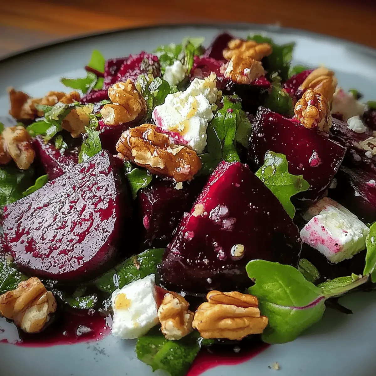 There’s something magical about the deep crimson hue of roasted beets, isn’t there? As I settled down to create my Roasted Beet and Walnut Salad, the warmth of the oven filled my kitchen, enveloping me in earthy aromas. This vibrant dish transforms humble ingredients into a feast that’s not just gluten-free and vegetarian but can be effortlessly made vegan too! With a delightful crunch from toasted walnuts and a zesty lemon-balsamic vinaigrette, this salad strikes the perfect balance between health and satisfaction. It’s an ideal companion for a cozy weeknight dinner or a stunning addition to festive gatherings. Curious to discover how easily you can bring this colorful creation to life? Let’s dive into the recipe!