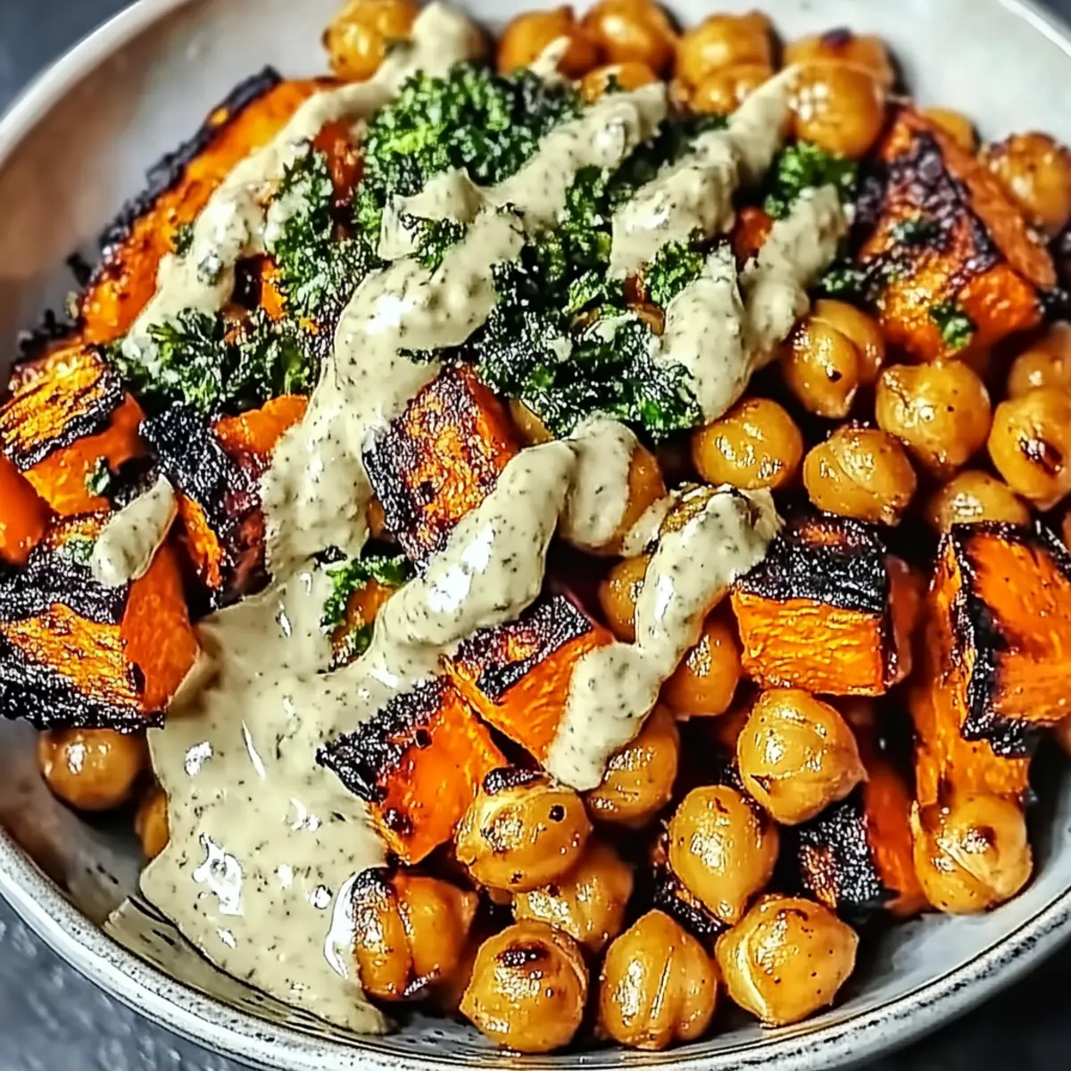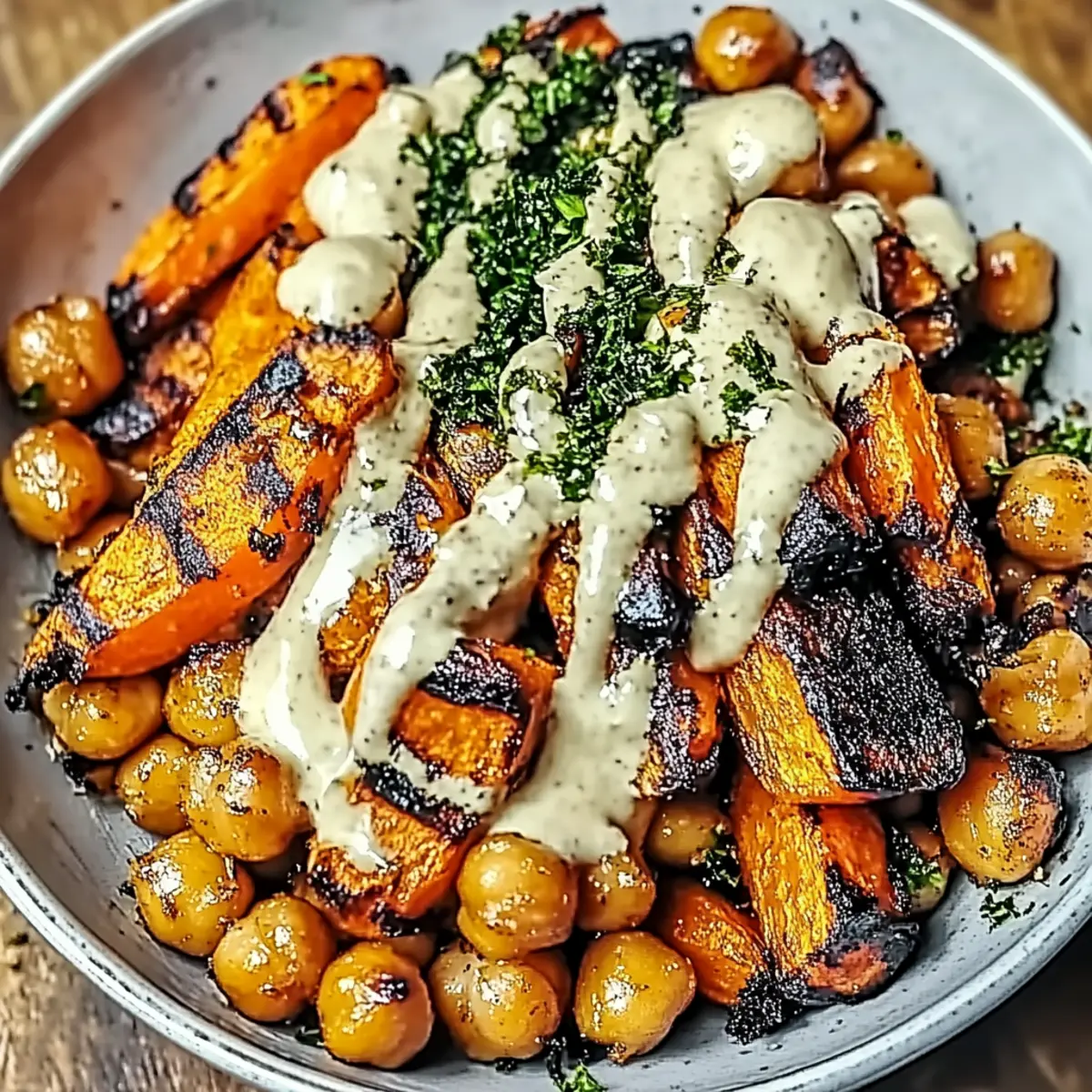 Jump to Recipe Print RecipeAs I prepared to dive into a hectic week, I was searching for a meal that could make my kitchen feel like a calming oasis instead of a chaotic zone. Enter the One-Pan Roasted Carrot and Chickpea Bowl—a dish that transforms simple ingredients into a vibrant celebration of flavors. This vegan delight features perfectly caramelized carrots and crunchy chickpeas, all complemented by a creamy tahini dressing that ties it together beautifully. Not only is this recipe a breeze to whip up, but it’s also ideal for meal prep, making those busy nights easier to navigate. If you’re ready to savor a wholesome meal that pleases the palate and nourishes the soul, keep reading because this colorful bowl just might become your new weeknight favorite! Why is this bowl so irresistible? Simplicity shines through in this recipe, making it perfect for both novice cooks and busy chefs. Flavor-packed with nutty tahini and vibrant spices, each bite offers a delightful contrast of textures between crispy chickpeas and tender carrots. Meal prep friendly, you can whip up a batch to enjoy throughout the week, similar to a nutritious Chickpea Salad with Grilled Vegetables. Customization is a breeze—swap in your favorite veggies or grains, like quinoa, to make it your own. Trust me, this One-Pan Roasted Carrot and Chickpea Bowl will not only save you time but will also earn rave reviews from family and friends! Roasted Carrot and Chickpea Bowl Ingredients Get ready to create a delightful and nourishing dish with these essential ingredients! For the Bowl Carrots – Provide natural sweetness and vibrant color; substitute with sweet potatoes for a different flavor. Chickpeas – A source of plant-based protein and fiber; ensure they are thoroughly drained and dried for crispiness. Olive Oil – Adds healthy fats and aids in roasting; can be substituted with avocado oil. Cumin – Brings a warm, earthy flavor; essential for seasoning your bowl. Paprika – Contributes sweetness and a touch of smokiness, enhancing overall taste. Salt and Pepper – Essential to enhance flavor; adjust according to your taste preferences. For the Tahini Dressing Tahini – The base for the dressing, offering a creamy texture and nutty flavor; can substitute with almond butter. Maple Syrup – Adds a touch of sweetness to the dressing; honey is a great alternative. Lemon Juice – Provides acidity and brightness; lime juice also works well. This One-Pan Roasted Carrot and Chickpea Bowl is not only simple but a fantastic source of nourishment and delight! Step‑by‑Step Instructions for One-Pan Roasted Carrot and Chickpea Bowl Step 1: Preheat Oven Start by preheating your oven to 425°F (220°C). This temperature will ensure that your carrots become beautifully caramelized while the chickpeas achieve optimal crispiness. Give your oven about 10 minutes to fully heat up, and during this time, you can prepare your ingredients for the One-Pan Roasted Carrot and Chickpea Bowl. Step 2: Prepare Ingredients Next, peel and slice your carrots into even sticks to ensure uniform cooking. While you’re at it, drain, rinse, and pat dry your chickpeas with a kitchen towel. It’s important that the chickpeas are dry, as this will help them crisp up nicely when roasting. Set these prepared ingredients aside in a bowl while you move on to the seasoning. Step 3: Season Veggies In a large mixing bowl, combine your sliced carrots and dried chickpeas. Drizzle them generously with olive oil and sprinkle with cumin, paprika, salt, and pepper. Toss everything together with your hands until all the pieces are well coated in oil and spices. This step is crucial for infusing flavor into your Roasted Carrot and Chickpea Bowl. Step 4: Roast Spread the seasoned carrots and chickpeas in a single layer on a baking sheet lined with parchment paper. This will prevent them from steaming and ensure they’re perfectly roasted. Place the sheet in the preheated oven for 25-30 minutes, stirring the mixture halfway through. They should be golden brown and fragrant when finished, ready to be savored. Step 5: Make Dressing While the veggies are roasting, prepare the creamy tahini dressing. In a small mixing bowl, whisk together tahini, maple syrup, lemon juice, salt, and a few tablespoons of water. Keep whisking until the mixture is creamy and smooth. If the dressing is too thick, add a bit more water gradually until you reach your desired consistency—this will elevate your One-Pan Roasted Carrot and Chickpea Bowl. Step 6: Assemble Bowl Once the roasted vegetables have cooled slightly, it’s time to assemble your vibrant bowl. Start with a base of your choice—like quinoa, if desired—then layer the roasted carrots and chickpeas on top. Drizzle the creamy tahini dressing over the dish, and enjoy it warm or chilled. This bowl is not just a meal, it’s a delightful experience! Roasted Carrot and Chickpea Bowl Variations Feel free to get creative and make this delicious dish your own with these simple twists! Sweet Potato Swap: Substitute carrots with sweet potatoes for a slightly different sweetness and texture that enhances the dish’s flavor. Add Grains: Mix in quinoa or brown rice for a heartier meal. The added grains create a wonderful chewy contrast to the crispy chickpeas. Extra Greens: Toss in some kale or spinach for added nutrients and color. These leafy greens wilt beautifully against the warm roasted veggies. Herby Freshness: Sprinkle chopped fresh herbs like cilantro or parsley on top before serving. Fresh herbs add a bright, aromatic note that elevates your bowl. Nutty Flavor: Stir in some toasted nuts or seeds, such as almonds or pumpkin seeds, for a delightful crunch that complements the creamy tahini dressing. Spicy Kick: Sprinkle in a pinch of cayenne or chili powder for added heat. This welcome spice intensifies the dish, making each bite exciting! Swap Tahini: Use almond butter instead of tahini for a different yet equally