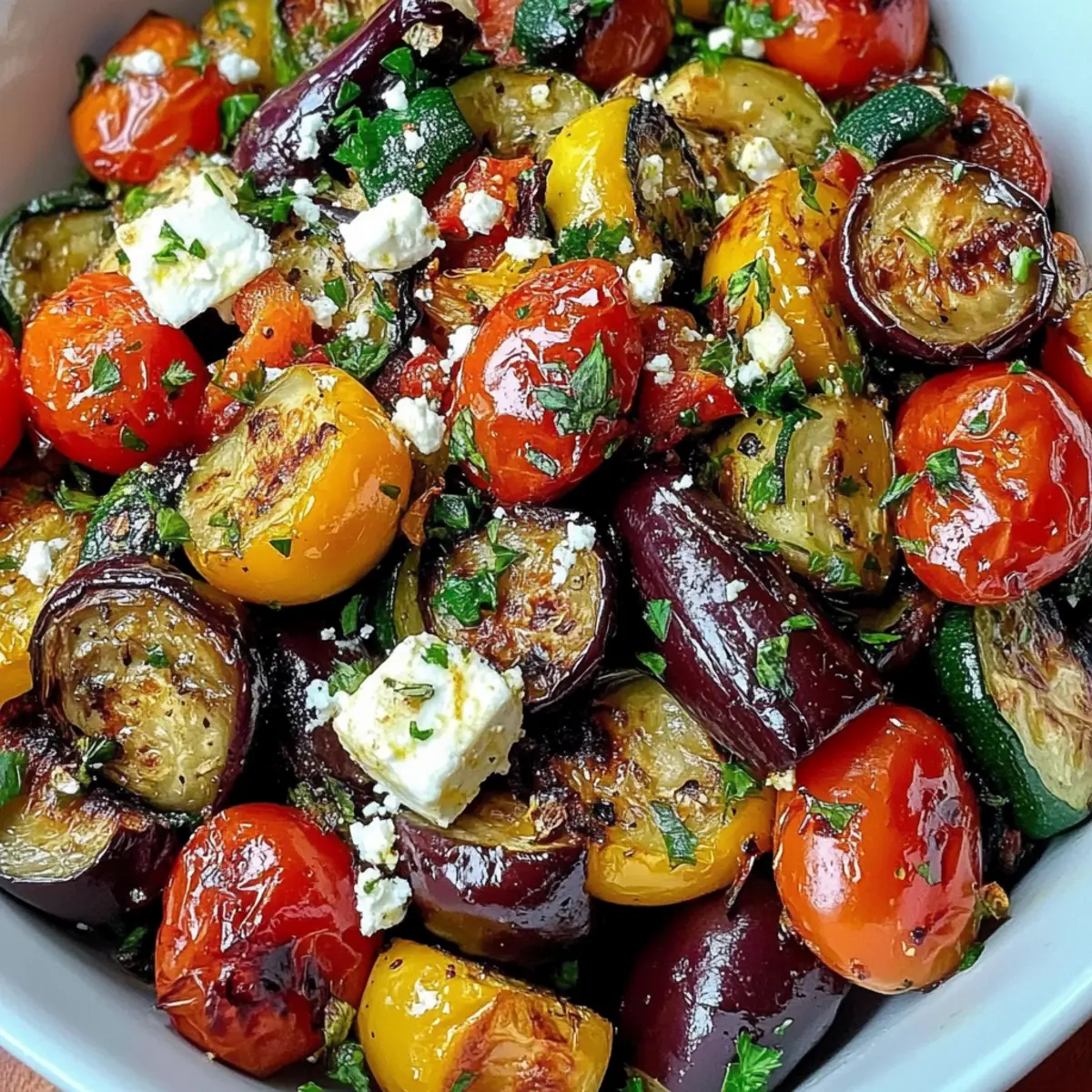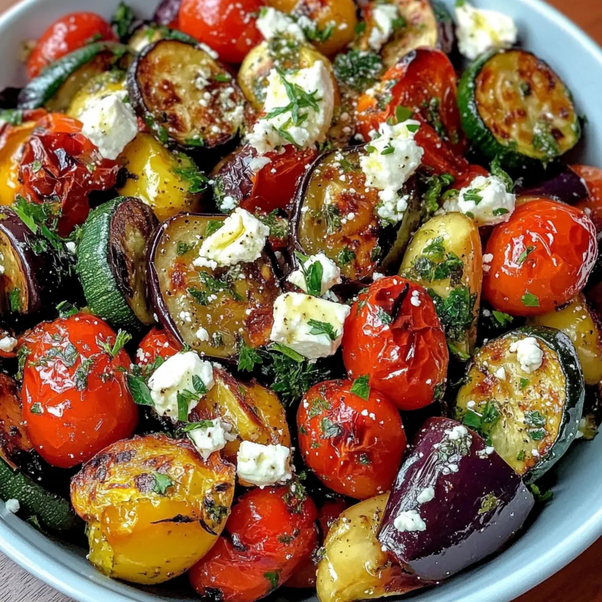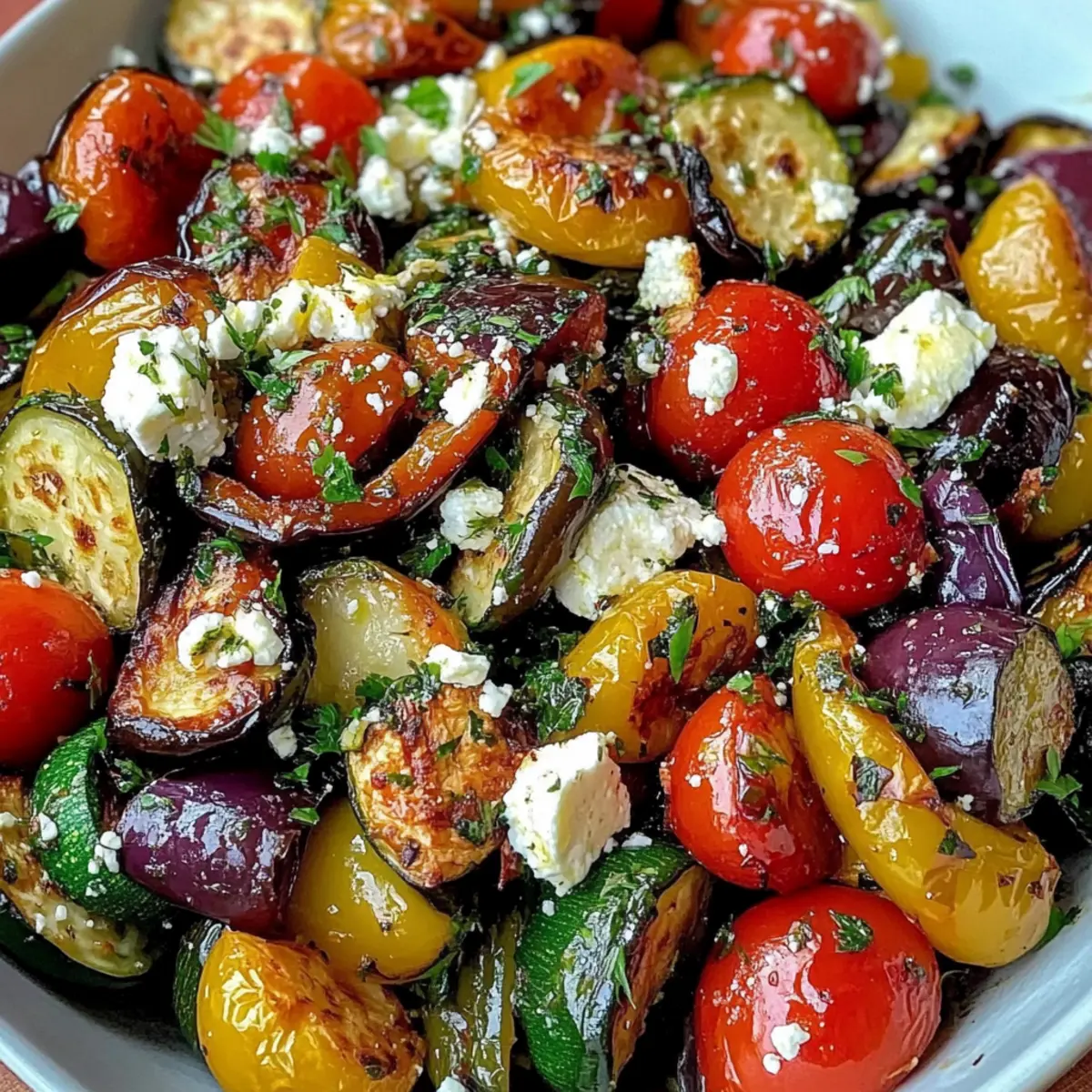 Jump to Recipe Print RecipeAs I opened the oven door, the warm, fragrant aroma of roasted vegetables wrapped around me like a cozy blanket. This Roasted Mediterranean Greek Vegetables recipe transforms a simple selection of fresh produce into a vibrant and healthy side dish bursting with flavor. Whether you’re looking for a quick prep solution for weeknight dinners or a stunning centerpiece for gatherings, this dish checks all the boxes. With its colorful mix of eggplant, peppers, and tomatoes, and the zesty lift from fresh lemon, you’ll find it hard to resist going back for seconds. Plus, it’s incredibly versatile, allowing for a variety of substitutions to cater to your taste and dietary needs. Ready to elevate your mealtime with these delicious roasted vegetables? Let’s dive into the recipe! Why Will You Love This Dish? Vibrant Colors: The medley of eggplant, bell peppers, and cherry tomatoes creates a feast for the eyes, making this dish a showstopper on any table. Easy Prep: Just chop, toss, and roast, making it a quick and stress-free addition to weeknight meals or weekend gatherings. Flavor Explosion: With aromatic herbs and a splash of lemon juice, every bite is packed with Mediterranean goodness, reminiscent of sunny days by the sea. Versatile Options: Customize it with different veggies or try variations like adding mushrooms or artichokes. Check out our easy Greek Stuffed Onions for another delightful dish! Healthy Choice: Low in calories and high in nutrients, this makes a guilt-free side or main dish everyone will enjoy. Crowd-Pleaser: Whether served warm or at room temperature, it’s a hit with friends and family, making it the perfect companion for grilled meats or hearty bread. Roasted Mediterranean Greek Vegetables Ingredients For the Vegetables • Eggplant – Adds hearty texture; can substitute with zucchini for a lighter dish. • Zucchini – Provides moisture and tenderness; alternatively, use summer squash. • Red and Yellow Bell Peppers – Contribute sweetness and color; any bell pepper variety works. • Red Onion – Offers a subtle sweetness when roasted; yellow onion is a suitable replacement. • Cherry Tomatoes – Enhance juiciness and flavor depth; other tomatoes can be used, just adjust roasting time. For the Seasoning • Garlic – Imparts rich flavor; consider using garlic powder in a pinch. • Extra-Virgin Olive Oil – Aids in roasting and adds richness; substitute with avocado oil if needed. • Dried Oregano, Thyme, Rosemary – Provide aromatic herb notes; use three times as much fresh herbs if available. • Salt and Black Pepper – Essential for seasoning; adjust to personal taste. For the Finishing Touches • Lemon Juice – Brightens flavors after roasting; lime juice also works well. • Kalamata Olives (optional) – Adds a briny contrast; omit for simplicity or replace with capers. • Feta Cheese (optional) – Offers a creamy and tangy flavor; substitute with vegan cheese for a dairy-free version. • Fresh Parsley – Adds freshness and color; basil or cilantro can be great alternatives. With these ingredients, you’re well on your way to making a delightful batch of Roasted Mediterranean Greek Vegetables, a perfect blend of health and flavor! Step‑by‑Step Instructions for Roasted Mediterranean Greek Vegetables Step 1: Preheat the Oven Begin by preheating your oven to 400°F (200°C) with the rack positioned in the middle. This ensures an even roast for your Roasted Mediterranean Greek Vegetables, achieving that wonderful caramelization. While the oven heats, allow yourself to gather the fresh ingredients, which will soon be transformed into a vibrant side dish. Step 2: Prepare the Vegetables In a large mixing bowl, combine chopped eggplant, zucchini, red and yellow bell peppers, and red onion. This colorful mix will serve as the base for your dish. Take a moment to admire the medley of textures and hues, highlighting the essence of Mediterranean cooking before moving on to the next step. Step 3: Season the Mix Drizzle the olive oil over the assorted vegetables, followed by the dried oregano, thyme, rosemary, salt, and black pepper. Toss everything together until the vegetables are evenly coated with the flavorful oil and herbs. This step infuses your Roasted Mediterranean Greek Vegetables with aromatic goodness, making every bite a delight. Step 4: Arrange for Roasting Spread the seasoned vegetables in a single layer on a rimmed baking sheet, leaving space between them for proper airflow. This crucial step allows the veggies to roast properly, creating those beautifully caramelized edges. Visualize the vibrant array of colors, and that’s when the magic begins! Step 5: Initial Roasting Place the baking sheet in the preheated oven and roast the vegetables for about 20 minutes. You’ll know they’re ready when they begin to soften and take on a lovely golden-brown hue at the edges. This is your cue to keep watch, as the aroma will start to fill your kitchen! Step 6: Add Cherry Tomatoes and Garlic After the initial roasting, carefully stir or flip the vegetables to ensure even cooking. Now, introduce the cherry tomatoes and minced garlic to the mix, gently incorporating them into the medley. Return the baking sheet to the oven for an additional 10–12 minutes, allowing the flavors to meld beautifully as the vegetables blacken slightly. Step 7: Final Touches Once the vegetables are tender and caramelized, take them out of the oven. Drizzle with fresh lemon juice to brighten all the delightful flavors in your Roasted Mediterranean Greek Vegetables. If you’d like, toss in some Kalamata olives for an added briny bite that enhances the Mediterranean flair. Step 8: Serve and Garnish Transfer the roasted vegetables to a serving platter, and sprinkle with crumbled feta cheese and freshly chopped parsley on top for a fresh finishing touch. Serve warm or allow to cool to room temperature—either way, you’ve created a stu