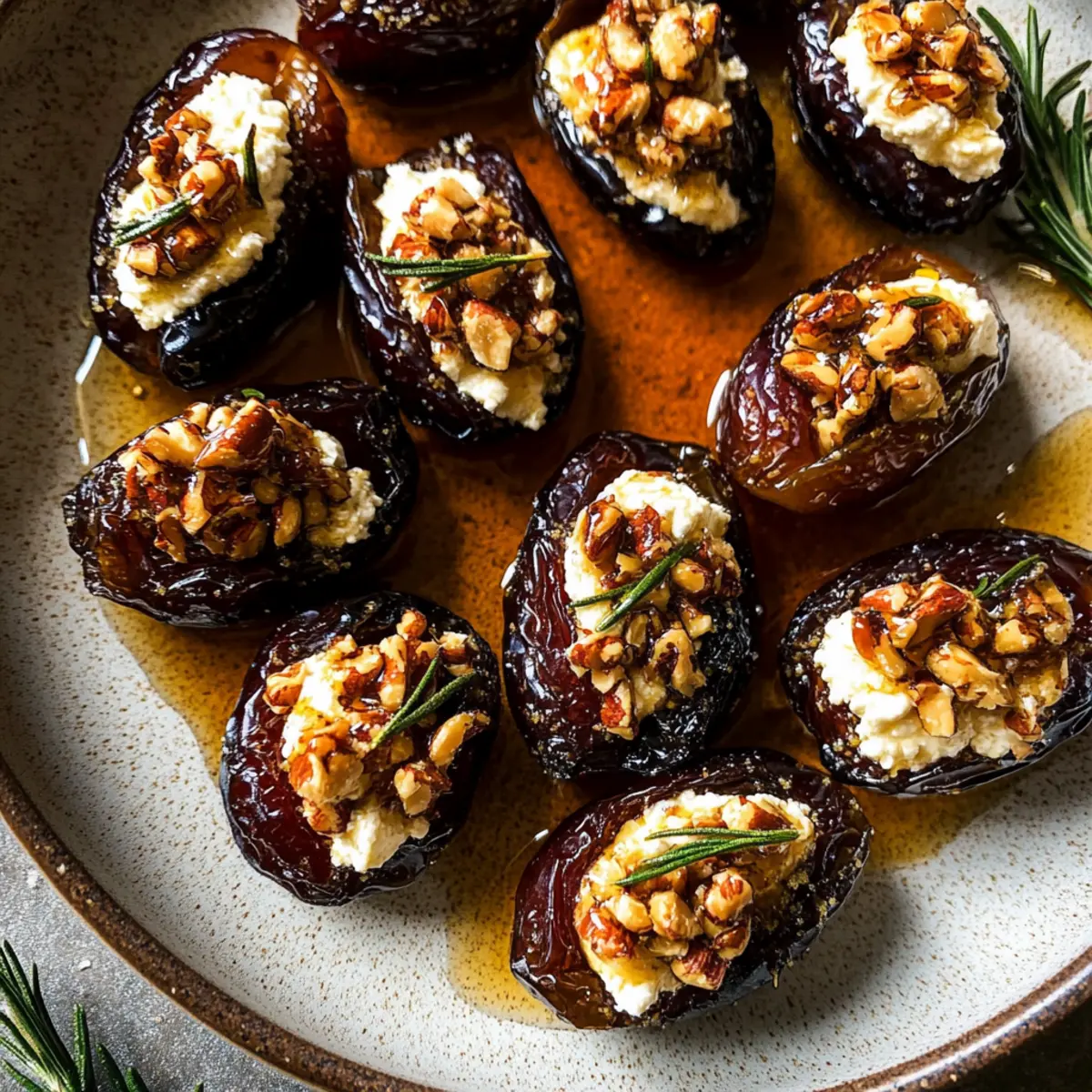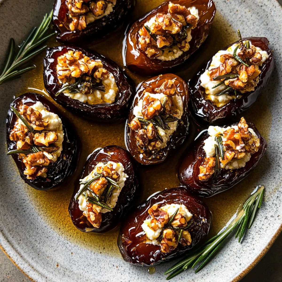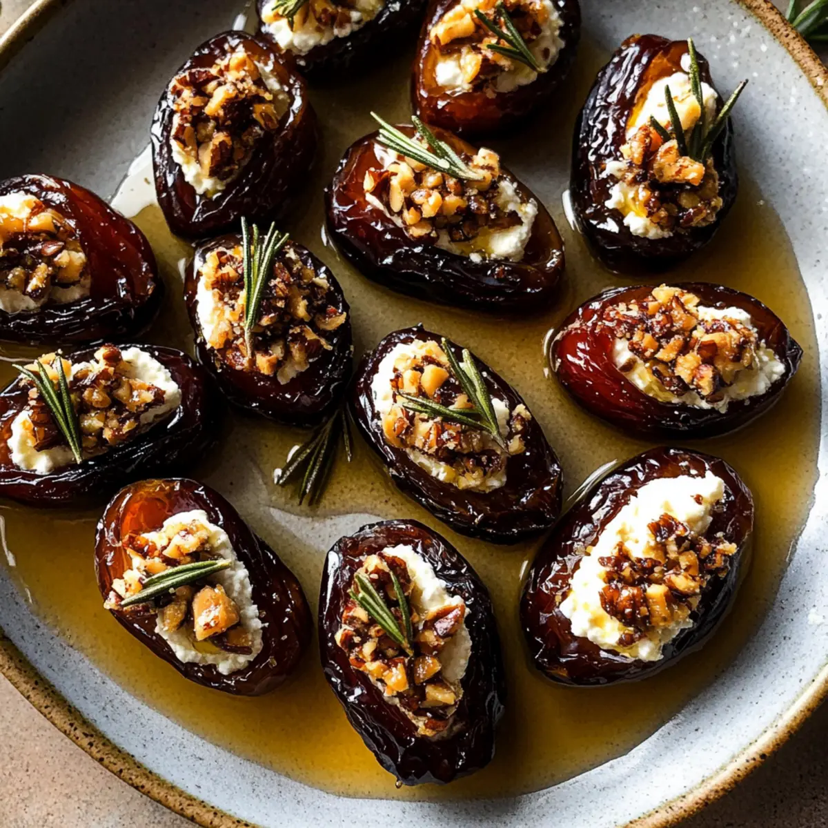 Jump to Recipe Print RecipeThe scent of roasted rosemary wafted through my kitchen, instantly transporting me to a cozy tapas bar where each bite tells a story. That’s the vibe you’ll get with these Roasted Goat Cheese Stuffed Dates — a sweet-and-savory delight that will impress your guests and satisfy your taste buds. This versatile appetizer is not only gluten-free and vegetarian, but it also allows for substitutions catering to various dietary needs. The best part? You can prepare them ahead of time, making them a perfect candidate for any gathering. Just imagine serving a dish that harmonizes creamy goat cheese and chewy Medjool dates, topped with a crunchy walnut mix and a sexy drizzle of hot honey. Intrigued? Let’s dive into this crowd-pleasing recipe that brings joy to your table! Why Are Stuffed Dates So Special? Unique Flavor Fusion: The combination of nutty, sweet dates with creamy goat cheese and a crunchy topping creates a taste sensation that’s hard to replicate. Easy Preparation: These delicious bites come together quickly, allowing you to spend less time in the kitchen and more time enjoying with friends. Versatile Options: With simple substitutions, you can easily cater to dietary preferences, making them a hit at any gathering. Crowd-Pleasing Appeal: These roasted stuffed dates are always a conversation starter, charming both minimalists and flavor-seekers alike. Make Ahead Magic: Prepare them in advance, freeing you up to focus on other party details. Just reheat and serve for fresh-from-the-oven goodness! Roasted Stuffed Dates Ingredients For the Dates • Pitted Medjool Dates – Their sweetness and chewy texture are essential; feel free to substitute with figs if desired. • Goat Cheese – Provides creaminess and tang; remember to soften it before stuffing, or swap for ricotta or cream cheese if you’re looking for a dairy alternative. For the Topping • Chopped Walnuts – Add a delightful crunch and nutty flavor; you can use seeds (like pumpkin or sunflower) for a nut-free option. • Fresh Rosemary – Contributes an herbaceous aroma; if you only have dried rosemary, use it in a pinch, though fresh is best for flavor. • Orange Zest and Juice – This adds brightness to balance the flavors; lemon juice/zest is a great alternative for a citrus variation. • Ground Cinnamon – A warm spice that enhances the sweetness; it’s optional, so omit it if you prefer a straightforward taste. • Sea Salt – Enhances overall taste; kosher salt works well too. • Extra-Virgin Olive Oil – Binds the topping together nicely; you can also use avocado oil if you prefer. • Hot Honey – Provides a sweet-spicy finish; it’s optional, so feel free to skip or use regular honey for a milder touch. Step‑by‑Step Instructions for Roasted Goat Cheese Stuffed Dates Step 1: Preheat the Oven Begin by preheating your oven to 375°F (190°C). This allows your Roasted Goat Cheese Stuffed Dates to cook evenly, giving them a perfect golden finish. While the oven heats up, gather all your ingredients and have a baking dish ready for the stuffed dates. Step 2: Prepare the Dates Carefully slice each pitted Medjool date lengthwise, ensuring you don’t cut all the way through. This will create a pocket to fill with creamy goat cheese. Using a small spoon or a piping bag, generously stuff each date with softened goat cheese, allowing it to ooze out slightly for that tempting look. Step 3: Make the Topping Mixture In a mixing bowl, combine the chopped walnuts, finely minced fresh rosemary, orange zest, orange juice, ground cinnamon, and a pinch of sea salt. Drizzle in some extra-virgin olive oil to bind the mixture together. Stir well until all ingredients are evenly coated, creating a delightful topping for your dates. Step 4: Assemble the Stuffed Dates Once your topping mixture is ready, take each stuffed date and carefully spoon the walnut mixture over the top, ensuring each date is generously coated. Arrange the assembled dates in your baking dish, spaced evenly apart for optimal roasting. Step 5: Roast the Dates Place the baking dish in the preheated oven and roast the dates for about 15 minutes. Keep an eye on them; you’ll know they’re done when the dates are warmed through and the topping is golden brown and fragrant. Step 6: Cool and Drizzle After roasting, remove the baking dish from the oven and let the Roasted Goat Cheese Stuffed Dates cool for about 5 minutes. This brief cooling period lets the flavors settle and makes them easier to handle. Drizzle the warm dates with hot honey for an irresistible finishing touch. Step 7: Serve and Enjoy Transfer the stuffed dates to a beautiful platter, making sure they’re still warm for serving. These Roasted Goat Cheese Stuffed Dates are perfect as an appetizer, and their delightful combination of textures and flavors will have your guests asking for more! What to Serve with Roasted Goat Cheese Stuffed Dates Elevate your gathering with delightful sides that harmonize beautifully with the savory-sweet combination of dates and cheese. Crispy Artisan Bread: The crunch of freshly baked bread provides a wonderful contrast, perfect for soaking up any honey drizzles left behind. Fresh Arugula Salad: A peppery salad adds brightness and freshness to balance the richness of the stuffed dates while keeping everything light. Pair it with a simple lemon vinaigrette for a refreshing touch. Charcuterie Board: Create a stunning spread with cured meats, cheeses, and assorted nuts. The combination visually enchants and adds layers of flavors that play seamlessly with your dates. Roasted Vegetables: Seasonal veggies seasoned and caramelized bring earthy flavors to your table, bridging the gap between sweet and savory with every bite. Sparkling White Wine: A chilled fruity wine enhances the experience, refreshing the palate and complementing the sweet notes of the dates. Dark Chocolate Truffles: For a sweet finale, these rich bites provide 