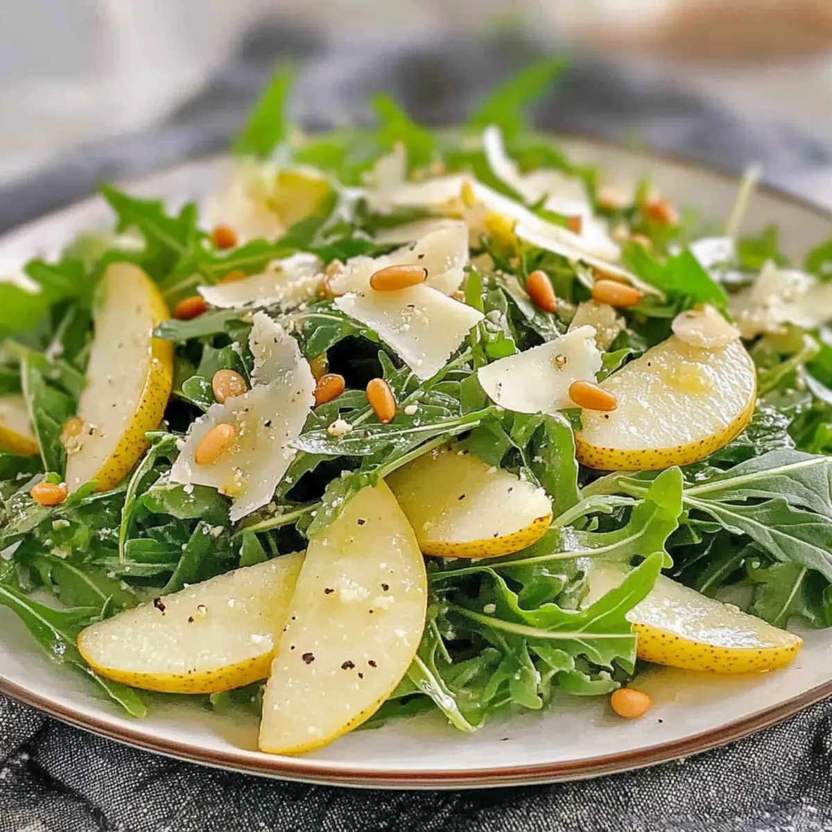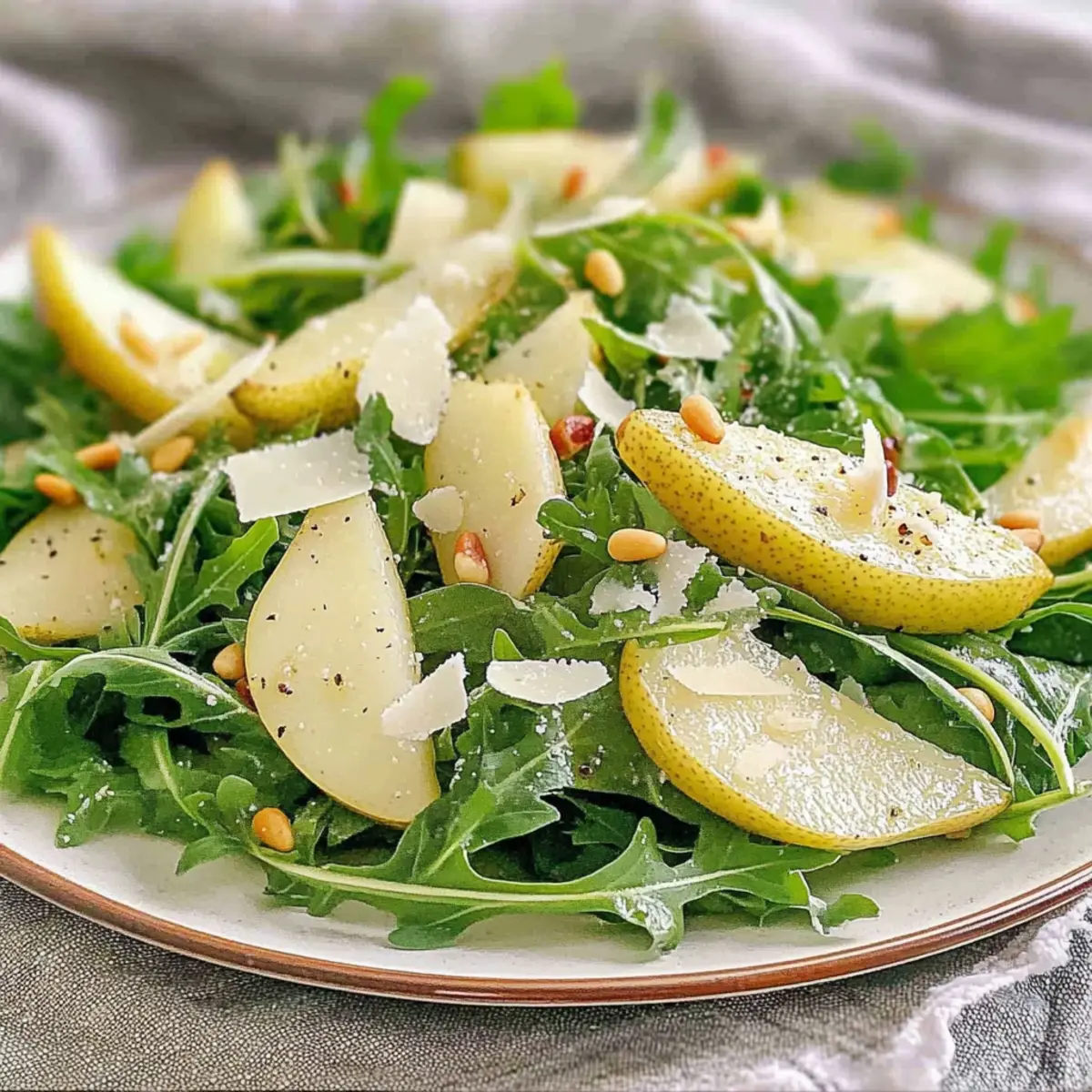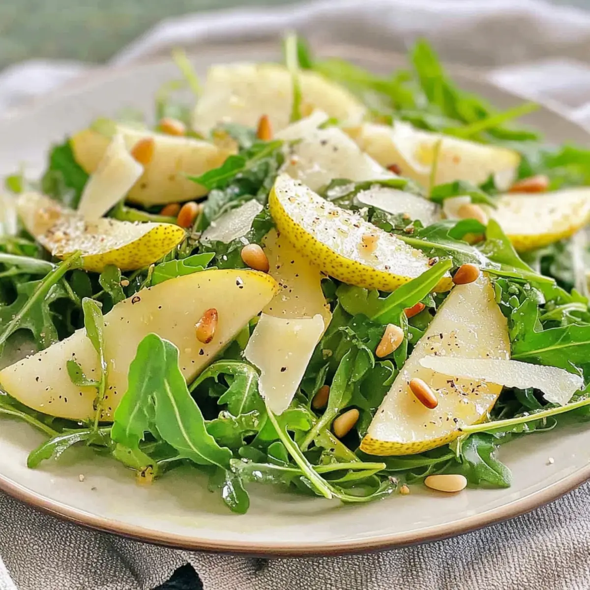 Jump to Recipe Print RecipeIn the midst of a busy week, the last thing I want is to compromise on flavor or freshness. That’s where my Quick Rocket and Pear Salad with Parmesan swoops in, brightening up my dinner table in mere minutes! This elegant side dish features the peppery kick of arugula beautifully complemented by sweet, juicy pears and the savory richness of shaved parmesan. Perfect for those evening meals when you crave something light yet impressive, this salad comes together in just 15 minutes. What I love most? It’s vegetarian, allowing everyone to enjoy its delightful crunchy textures, and can easily transform into a main dish when paired with grilled proteins. Ready to shake up your salad routine? Let’s dive into making this vibrant bowl of goodness! Why is this salad a must-try? Quick and Easy: You can whip up this Rocket and Pear Salad in just 15 minutes—ideal for those busy weeknights when you want fresh food without the hassle. Elegant Presentation: The vibrant colors and textures make this dish not just tasty but visually stunning, perfect for impressing guests. Healthy and Nutritious: With just around 131 calories per serving, it’s a guilt-free treat that fits well into a healthy lifestyle. Versatile Options: Swap in your favorite nuts or cheese to customize it to your tastes, making it a great go-to recipe for various occasions. Crowd-Pleasing Flavor: The balance of peppery arugula, sweet pears, and salty parmesan caters to diverse palates—no more boring salads! Plus, if you love creative salad ideas, check out more in our delicious salad recipes section for even more inspiration! Rocket and Pear Salad Ingredients For the Salad Rocket (Arugula) – Provides a peppery flavor and fresh crunch. Pears – Offers sweetness and moisture; beurre bosc pears are recommended, but you can substitute with apples if preferred. Fresh Parmesan – Adds a savory, rich flavor; shaved for best texture. Pine Nuts – Contribute a toasty flavor and crunch; can be substituted with walnuts for a different taste. For the Dressing Wholegrain Mustard – Serves as the base for the dressing, providing tang and enhancing the salad. Fresh Lemon Juice – Brightens the dish with acidity, making the flavors pop. Olive Oil – Binds the dressing and enhances flavor; opt for a good quality oil. Fine Salt – Adjusts the seasoning to taste, ensuring all flavors are balanced. This delightful Rocket and Pear Salad with Parmesan is not only quick to prepare but offers a burst of flavor and freshness to your meal! Step‑by‑Step Instructions for Rocket and Pear Salad with Parmesan Step 1: Toast the Pine Nuts Begin by heating a small, dry skillet over medium heat. Once hot, add the pine nuts, stirring frequently for about 3-5 minutes. Watch closely as they turn golden and fragrant; once they are lightly browned, remove them from the heat to prevent burning. Set aside to cool while you prepare the other ingredients for the Rocket and Pear Salad with Parmesan. Step 2: Make the Dressing In a medium bowl, whisk together 2 tablespoons of wholegrain mustard, the juice of one fresh lemon, 3 tablespoons of olive oil, and a pinch of fine salt. Keep whisking for about 30 seconds or until the dressing is well combined and creamy. This zesty dressing will perfectly coat the salad and enhance the flavors of the rocket and pears. Step 3: Prepare the Pears Core and thinly slice 2 beurre bosc pears or your preferred variety. To prevent browning, immediately add the pear slices to the dressing in the bowl, tossing gently to coat them. This step ensures the sweetness of the pears shines through in the Rocket and Pear Salad with Parmesan, while also keeping them vibrant and fresh. Step 4: Combine the Salad Ingredients In a large mixing bowl, add 4 cups of fresh rocket (arugula), the toasted pine nuts, and half a cup of shaved parmesan. Gently fold in the pear slices and any remaining dressing from the previous step. Toss lightly until all ingredients are well combined, taking care not to bruise the delicate arugula leaves. Step 5: Serve Immediately Transfer the salad to a serving platter or individual bowls. For the best flavor and texture, serve the Rocket and Pear Salad with Parmesan immediately. Its vibrant colors and delightful crunch make it an elegant side dish that’s perfect for any meal. Enjoy the burst of freshness with every bite! How to Store and Freeze Rocket and Pear Salad with Parmesan Fridge: Store the components separately in airtight containers for up to 3 days to maintain freshness. Keep the salad dressing separate to avoid soggy greens. Freezer: It’s not recommended to freeze this salad, as the texture of arugula and pears can become mushy upon thawing. Reheating: If you’ve pre-dressed the salad, enjoy it cold as a refreshing option. If you prepared the components separately, simply toss together before serving for the freshest taste. Tip: Enjoy your Rocket and Pear Salad with Parmesan fresh for the best flavor and texture—it’s an elegant dish that shines at its peak! Make Ahead Options This Quick Rocket and Pear Salad with Parmesan is ideal for meal prep! You can prepare the dressing and toast the pine nuts up to 3 days in advance to save time during your busy week. Store the dressing in an airtight container in the refrigerator to maintain its freshness. Slice the pears just before serving to prevent browning, or toss them in the dressing immediately after slicing if you prefer to prep those a few hours ahead. When you’re ready to enjoy your salad, simply combine the rocket, parmesan, and prepared pears with the dressing and toasted pine nuts. You’ll have a refreshing dish that remains just as delicious with minimal effort! Variations & Substitutions for Rocket and Pear Salad with Parmesan Feel free to get creative with this vibrant Rocket and Pear Salad, making it uniquely yours with these fun and delicious twists! Dairy-Free: Swap the parmesan for nutritional yeast or a d