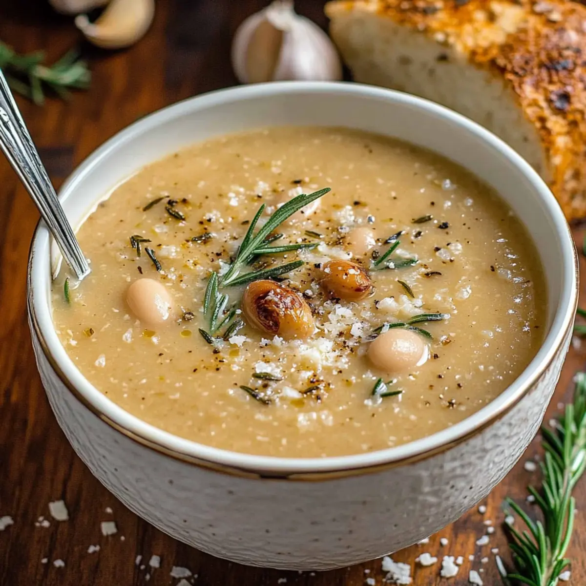 Get ready to enjoy a bowl of warmth with this delightful Rosemary Roasted Garlic Bean Soup. Perfect for cozy nights!