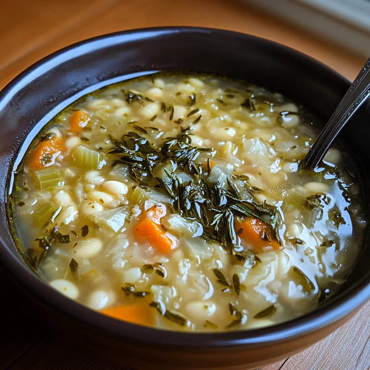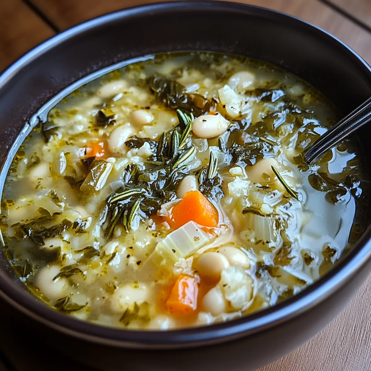 Jump to Recipe Print RecipeAs the autumn chill sets in, there’s nothing quite like a steaming bowl of soup to warm your soul. This Rustic Sardinian Herb Soup invites you to embrace the flavors of the Mediterranean right in your own kitchen. With its fragrant herbs and nourishing beans, this vegetarian-friendly dish strikes the perfect balance between hearty comfort and lightness, making it an ideal companion for cozy evenings. Crafted with simple, wholesome ingredients that are easily adaptable to seasonal produce, this soup not only satisfies your taste buds but also allows you to express your creativity as a home-chef. Are you ready to dive into the rustic charm of this timeless recipe? Let’s get started! Why Is Sardinian Herb Soup So Special? Nourishing Comfort: This soup is a cozy embrace in a bowl, perfect for chilly evenings. Rustic Flavors: Experience the vibrant essence of Mediterranean cooking with fresh herbs and wholesome beans. Adaptable Recipe: Seasonal vegetables can easily find their way into this dish, ensuring deliciousness year-round. Quick and Easy: With minimal prep time, you’ll have a hearty meal in under 40 minutes—ideal for busy weeknights! Crowd-Pleasing Appeal: Serve alongside a crusty bread or Sustenance Sweet Potato Soup for a delightful gathering meal. Indulge in the delightful charm of this soup and make your evenings special! Sardinian Herb Soup Ingredients • Discover the essential ingredients for a delightful bowl of Sardinian Herb Soup! For the Broth Vegetable Broth – This forms the soup’s comforting base; feel free to substitute it with chicken broth if desired. For the Beans Cannellini Beans – Creamy and hearty, these white beans add protein; any white bean variety works too. For the Vegetables Carrots – Sweet and vibrant, they enhance the soup’s flavor profile; seasonal veggies can be interchanged. Celery – Adds a delightful crunch and depth; consider using fennel for a unique twist. Onion – Provides a rich aromatic base; leeks can be a lovely alternative for a milder taste. For the Herbs Fresh Rosemary – This aromatic herb brings a fragrant depth; dried rosemary can work in a pinch. Fresh Thyme – Adds earthy flavor; if fresh is elusive, dried thyme is an excellent substitute. Fresh Parsley – Brightens the dish and balances richness; cilantro can be swapped for a different twist. For Finishing Touches Olive Oil – This luxurious ingredient enhances flavor; choose extra virgin for the best taste. Salt and Pepper – Essential seasonings to bring all flavors to life; adjust to your preference. Prepare to dive into making this scrumptious Sardinian Herb Soup that not only warms you up but is also packed with goodness! Step‑by‑Step Instructions for Sardinian Herb Soup Step 1: Sauté Aromatics In a large pot, heat two tablespoons of extra virgin olive oil over medium heat. Add one chopped onion, two diced carrots, and two stalks of chopped celery. Sauté these vegetables for about 5-7 minutes until they are softened and fragrant, stirring occasionally to prevent browning. This base will create a wonderful depth of flavor for your Sardinian Herb Soup. Step 2: Add Herbs Once the aromatics are softened, stir in two tablespoons each of chopped fresh rosemary, thyme, and parsley. Continue to cook for another minute, allowing the herbs to release their essential oils and vibrant aromas. You’ll know they’re ready when your kitchen is filled with a delightful herbal scent, enhancing the rustic charm of your Sardinian Herb Soup. Step 3: Incorporate Beans Next, add one can of rinsed cannellini beans to the pot along with four cups of vegetable broth. Stir everything together and bring the mixture to a gentle simmer over medium-high heat. As the broth heats, your soup will begin to bubble and blend the flavors together beautifully. This step typically takes about 2-3 minutes to reach a simmer. Step 4: Simmer Lower the heat to maintain a gentle simmer and cover the pot. Allow the Sardinian Herb Soup to cook for 25-30 minutes, stirring occasionally. During this time, the vegetables will become tender, and the flavors will meld harmoniously, creating a nourishing and fragrant soup that warms the soul. Step 5: Finish and Serve After simmering, taste the soup and season with salt and pepper to your liking. Drizzle a touch of olive oil over the top just before serving to enhance the richness. Ladle the soup into bowls and consider serving it alongside crusty bread or a sprinkle of Pecorino cheese for added flavor. Revel in this cozy Mediterranean delight that is sure to please everyone at the table! Make Ahead Options Sardinian Herb Soup is perfect for meal prep enthusiasts! You can chop all your vegetables (onion, carrots, celery) and store them in an airtight container in the fridge for up to 3 days. Additionally, you can also prepare the herb mixture (rosemary, thyme, parsley) in advance and refrigerate it. When you’re ready to enjoy your cozy soup, simply sauté the prepped vegetables, add the herbs, and then incorporate the beans and broth as directed. This approach saves you time on busy weeknights, allowing you to savor the comforting flavors of your Sardinian Herb Soup just as deliciously as if you prepared it all from scratch that day! What to Serve with Sardinian Herb Soup Imagine savoring a steaming bowl of soup while enjoying enticing aromas wafting through your kitchen—let’s turn this cozy moment into a full meal. Crusty Bread: A slice of warm, crusty bread is perfect for dipping, soaking up the comforting flavors of the soup. Pecorino Cheese: Adding a sprinkle of this salty cheese elevates the dish, enhancing the Mediterranean character beautifully. Mixed Green Salad: A fresh salad with cherry tomatoes and cucumber lightens the meal, adding a refreshing crunch to balance the soup’s richness. Roasted Vegetables: Serve a side of seasonal roasted veggies for an added layer of texture and flavor, giving your plate a he