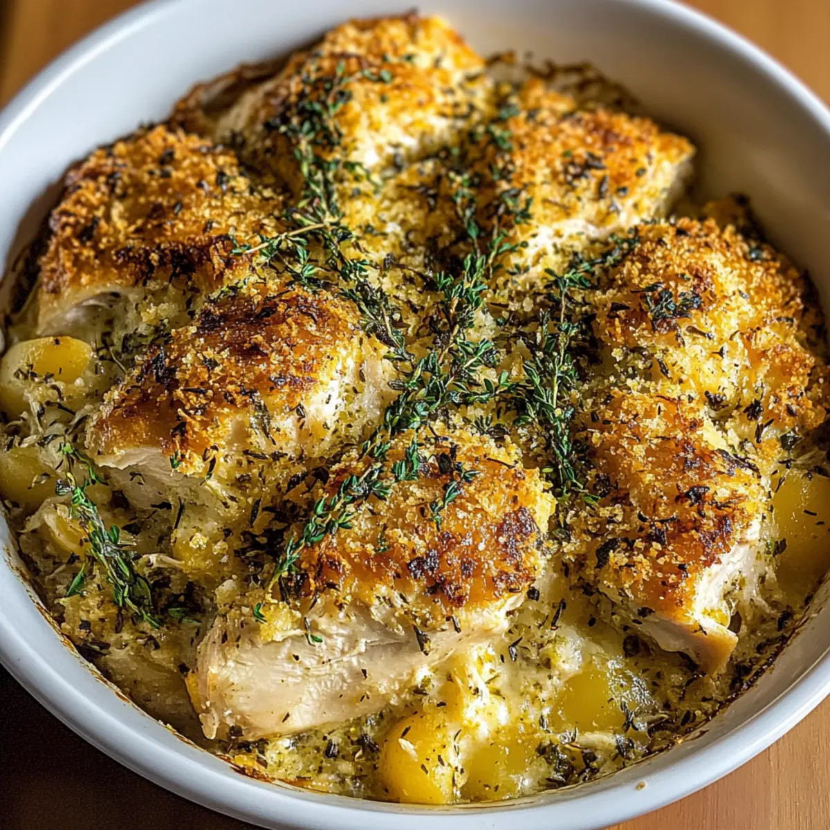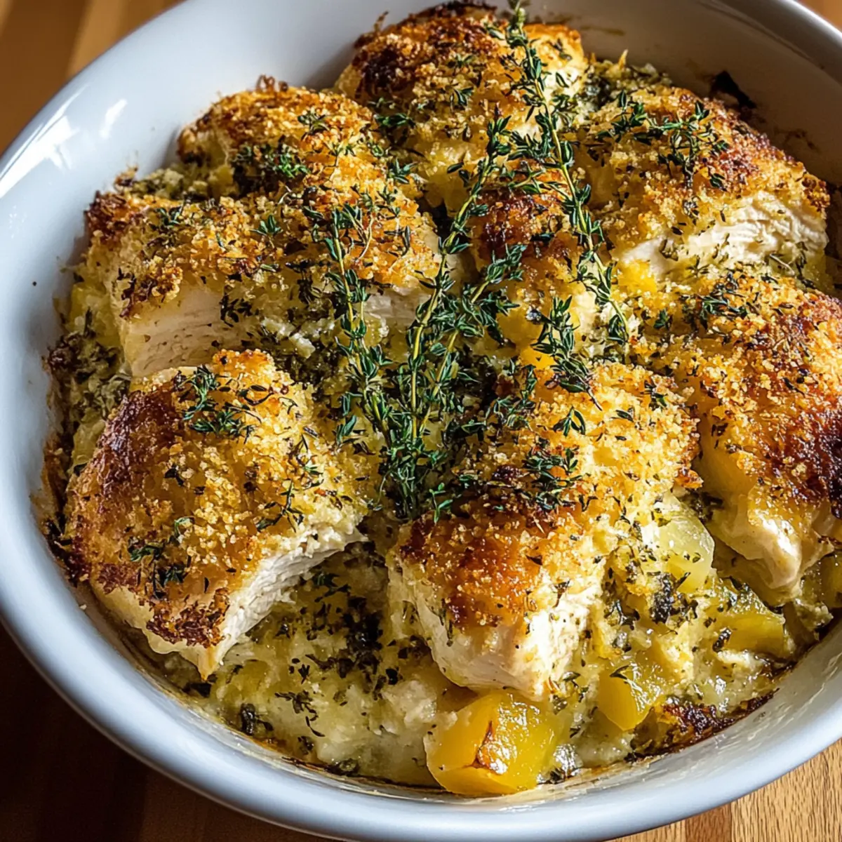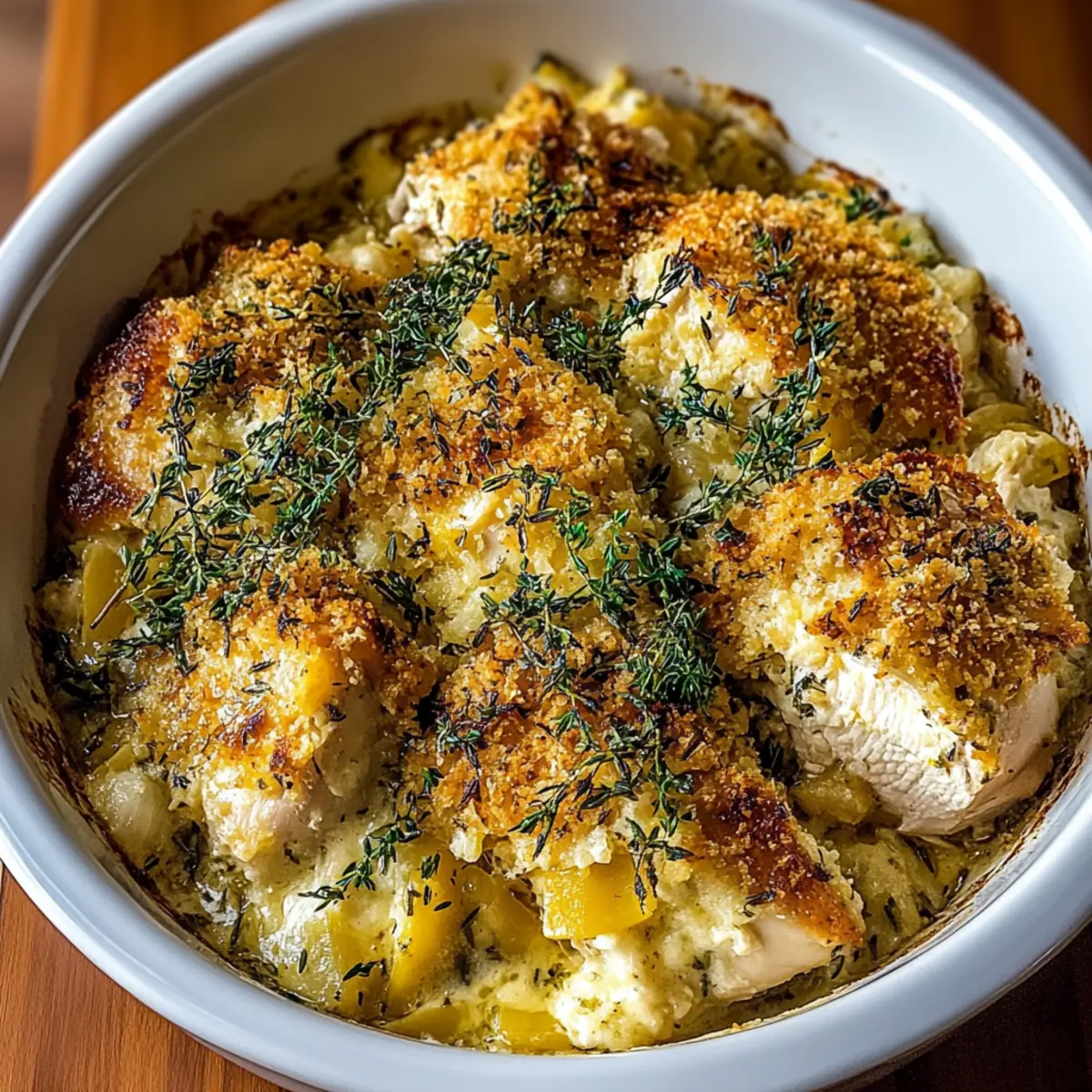 This Savory Baked Herb Chicken Casserole combines tender chicken in a creamy sauce, topped with a crunchy breadcrumb crust. Perfect comfort food for any gathering or family dinner.