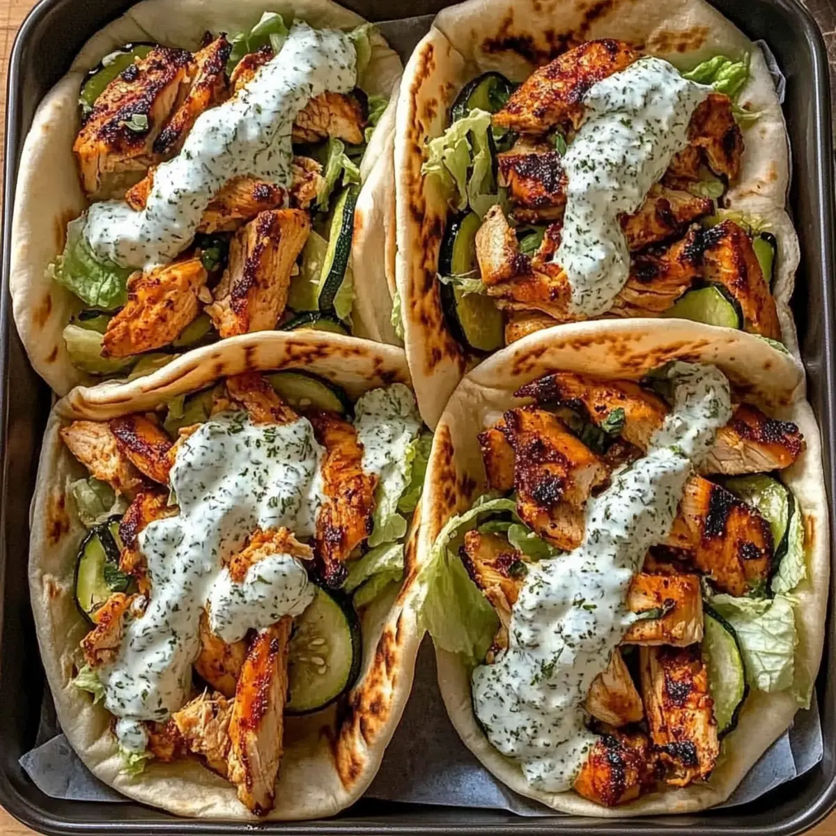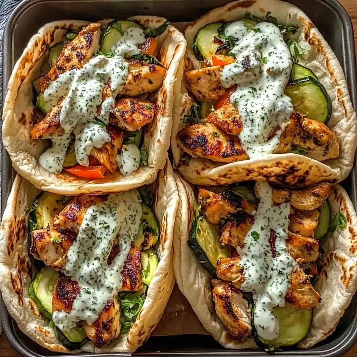 Jump to Recipe Print RecipeAs I sliced into the tender, perfectly roasted chicken and inhaled the comforting aroma dancing in the air, I felt an instant wave of nostalgia. These Sheet Pan Chicken Pitas with Herby Ranch are a delightful reminder that weeknight dinners don’t have to be a hassle. With bold flavors of smoked paprika and roasted veggies, this easy dinner shines as a healthy meal option that marries convenience and taste seamlessly. It’s a dish that comes together with minimal effort yet delivers maximum satisfaction, making it perfect for busy evenings when you crave something delicious without the stress. Whether you’re enjoying them with family or sharing with friends, I can promise these pitas will quickly become a beloved favorite. Curious how to bring this dish from my kitchen to yours? Let’s dive into the recipe! Why are Sheet Pan Chicken Pitas a hit? Simplicity at its Core: This dish requires minimal prep, making it a breeze for weeknight cooking. Bold and Flavorful: The combination of smoked paprika and fresh herbs delivers a punch of flavor that elevates ordinary dinners. Versatile Options: Feel free to swap chicken for turkey or tofu to fit dietary preferences, and explore seasonal vegetables for variety. Crowd-Pleasing Appeal: Perfect for family dinners or entertaining friends, these pitas are sure to impress. Healthy and Balanced: With approximately 400 calories per serving, they offer a wholesome meal that tastes indulgent without the guilt. For more easy and delicious meal ideas, check out my One Pan Chicken or Sheet Pan Clambake for dinner inspiration! Sheet Pan Chicken Pitas Ingredients These ingredients make creating delicious Sheet Pan Chicken Pitas with Herby Ranch a breeze! For the Chicken and Vegetables Chicken Breasts (2 pieces, boneless, skinless) – The main protein that roasts quickly, making it easy to slice for your pitas. Olive Oil (1 tablespoon) – Helps to brown the chicken and keep it juicy. Salt and Pepper (to taste) – Essential for enhancing the natural flavors of the dish. Garlic Powder (1 teaspoon) – Adds a savory depth without overwhelming the other flavors. Paprika (1 teaspoon) – Introduces a warm color and smoky sweetness to the mix. Mixed Vegetables (1 cup, e.g., bell peppers, onions, zucchini) – Roasted veggies add color and irresistible caramelization. For the Herby Ranch Dressing Greek Yogurt (1/2 cup) – Provides a creamy base with a delightful tang. Ranch Seasoning Mix (1 tablespoon) – Delivers a familiar, comforting flavor with minimal effort. Fresh Herbs (to taste, e.g., parsley, dill) – Brighten up the dressing and the dish with their aromatic freshness. For the Pitas Pitas (4 pieces) – Soft or lightly toasted, they serve as the perfect vessel for all the delicious fillings. With these ingredients on hand, you’ll be all set to whip up your own batch of irresistible Sheet Pan Chicken Pitas with Herby Ranch! Step‑by‑Step Instructions for Sheet Pan Chicken Pitas with Herby Ranch Step 1: Prepare Oven Preheat your oven to 400°F (200°C) to ensure a sizzling hot environment for your Sheet Pan Chicken Pitas with Herby Ranch. This temperature will help cook the chicken evenly while browning the vegetables beautifully. Make sure your oven rack is positioned in the middle for optimal heat distribution. Step 2: Toss Chicken and Vegetables In a large mixing bowl, combine the boneless, skinless chicken breasts with olive oil, salt, pepper, garlic powder, and paprika. Use your hands or a spatula to coat the chicken thoroughly, ensuring every piece is seasoned well. Add in the mixed vegetables, tossing until everything is evenly coated and ready to infuse flavors as it bakes. Step 3: Arrange on Sheet Pan Spread the seasoned chicken and colorful vegetables in a single layer on a baking sheet lined with parchment paper. Avoid overcrowding the pan to allow for proper roasting and caramelization. As you arrange them, make sure the chicken pieces have space between them for even cooking—a key to delicious Sheet Pan Chicken Pitas with Herby Ranch! Step 4: Bake Place the sheet pan in the preheated oven and bake for 20-25 minutes. Keep an eye on the chicken and vegetables, which will be ready when the chicken reaches an internal temperature of 165°F (74°C) and the veggies are tender with a hint of browning. This step is where all those delicious flavors begin to meld together beautifully. Step 5: Make Herby Ranch Dressing While the chicken and vegetables are baking, whip up the herby ranch dressing. In a bowl, combine Greek yogurt, ranch seasoning mix, and your choice of fresh herbs. Stir well until the mixture is smooth and creamy, allowing the flavors to mingle. This dressing will add a delightful tang to your pitas once assembled. Step 6: Warm Pitas With about 5 minutes left on the timer, place the pitas directly in the oven alongside the chicken and vegetables. Warming them will transform your pitas into soft, inviting vessels for all the delicious fillings. Be sure to check them regularly to prevent them from becoming too crispy. Step 7: Assemble Once the chicken is cooked through, take the sheet pan out of the oven and let the chicken rest for 3-5 minutes. Slice the chicken and then layer it generously inside the warm pitas along with the roasted vegetables. Finish off by drizzling the herby ranch dressing over the top for a burst of fresh flavor in your Sheet Pan Chicken Pitas with Herby Ranch. Make Ahead Options These Sheet Pan Chicken Pitas with Herby Ranch are perfect for meal prep, allowing you to save time on busy weeknights! You can marinate the chicken and chop vegetables up to 24 hours in advance; simply refrigerate them in an airtight container to keep everything fresh. When you’re ready to enjoy dinner, arrange the chicken and vegetables on a sheet pan and bake as directed. Additionally, you can prepare the herby ranch dressing a day ahead and store it in the fridge, allowing the flavors to meld be