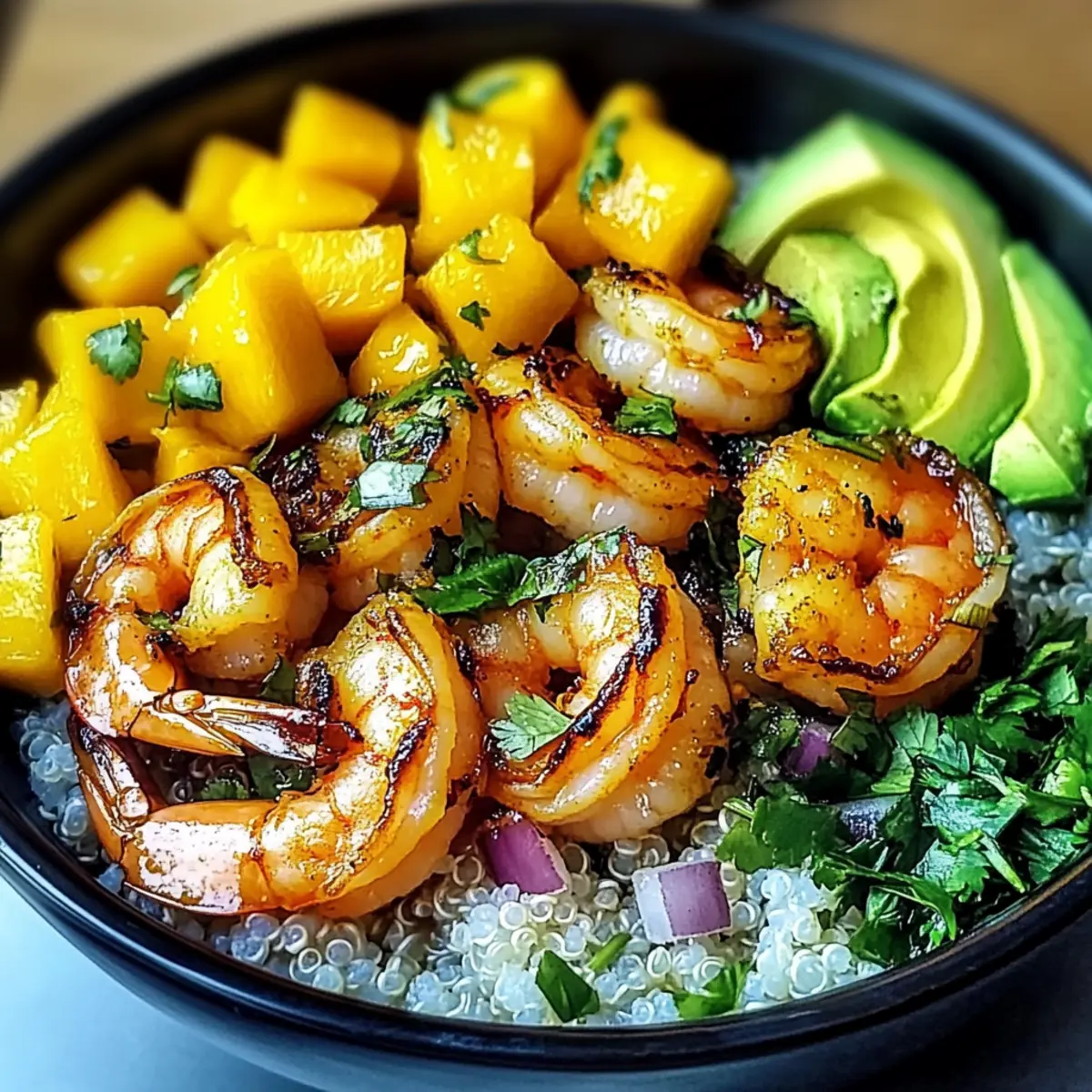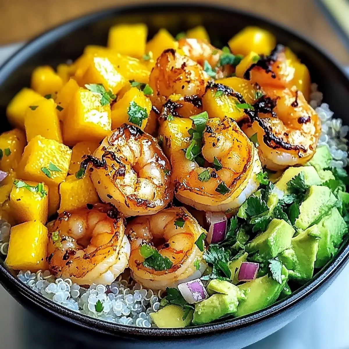 Jump to Recipe Print RecipeAs the sun streams through my kitchen window, I can almost feel the tropical breeze with every slice of ripe mango. These Vibrant Shrimp Avocado Mango Bowls not only bring a splash of sunshine to our dinner table but also transform the ordinary into something extraordinary. With fresh ingredients and the delightful textures of creamy avocado, sweet mango salsa, and tender shrimp, this dish is a healthful and quick weeknight meal that caters to even the busiest schedules. You won’t just savor the flavor; you’ll love how easy it is to whip up—making it a guaranteed crowd-pleaser. Are you ready to dive into this fresh twist on dinner? Why are Shrimp Avocado Mango Bowls a must-try? Vibrant and colorful, these bowls will brighten any dinner! Healthy and nutritious, they’re packed with protein and healthy fats, making them a perfect choice for a quick weeknight meal. Ease of preparation means you can have dinner on the table in no time, while customization options cater to diverse tastes—swap shrimp for grilled chicken or tofu! Plus, they’re gluten-free and dairy-free, so everyone can enjoy. Want more delicious seafood options? Try our Bang Bang Shrimp for another crowd favorite! Shrimp Avocado Mango Bowls Ingredients For the Shrimp Shrimp – Fresh or thawed frozen shrimp works best for optimal flavor and texture. Olive Oil – Helps marinate the shrimp and adds richness to the dish. Spices: – Using chili powder, cumin, garlic powder, salt, and black pepper allows you to customize the seasoning to your taste. For the Salsa Mangoes – Sweet mangoes add a tropical flair; consider substituting with pineapple or peaches if preferred. Red Onion – Adds a nice sharpness; soak in lime juice for a milder taste! Jalapeño (Optional) – For a bit of heat; adjust according to your spice preference! Cilantro – Provides fresh herbal notes; feel free to omit it if it’s not your favorite. Lime Juice – Essential for brightening the flavors in the salsa; don’t skip it! For the Bowls Avocados – Creamy and loaded with healthy fats; chop just before serving to keep them fresh. Cooked Rice or Quinoa – A hearty base for the dish; cauliflower rice makes a great low-carb alternative! Optional Toppings Honey or Maple Syrup – Adds a touch of sweetness to the lime dressing; omit for a sugar-free option. Sesame Seeds – For extra crunch and texture. Red Pepper Flakes – If you fancy a spicy kick! Chopped Green Onions – Adds flavor and visual appeal. Tortilla Strips or Crispy Wonton Strips – For that satisfying crunch. This vibrant Shrimp Avocado Mango Bowls recipe not only looks amazing but is also packed with delicious flavors and textures! Enjoy crafting this easy, healthy dinner your family will love! Step‑by‑Step Instructions for Shrimp Avocado Mango Bowls Step 1: Prepare Mango Salsa Begin by dicing one ripe mango, finely chopping half a red onion, and mincing a jalapeño if you enjoy heat. Combine these ingredients in a bowl, and add a handful of chopped cilantro for freshness. Squeeze fresh lime juice on top, seasoning it with salt. Let the salsa rest for about 10 minutes, allowing the flavors to meld beautifully while you work on the shrimp. Step 2: Marinate and Cook Shrimp In a mixing bowl, toss one pound of shrimp with two tablespoons of olive oil and spices like chili powder, cumin, garlic powder, salt, and black pepper to taste. Allow the shrimp to marinate for 10 minutes. Heat a non-stick skillet over medium heat, and cook the shrimp for around 3-4 minutes on each side until they turn pink and opaque, then set aside to cool slightly. Step 3: Prepare Avocado and Rice/Quinoa While the shrimp is cooking, cook your choice of rice or quinoa according to package instructions; aim for fluffy grains. Chop two ripe avocados just before serving to maintain their creamy texture. Place the cooked rice or quinoa at the bottom of each serving bowl, creating a hearty base for your vibrant Shrimp Avocado Mango Bowls. Step 4: Make Optional Lime Dressing In a small bowl, whisk together a tablespoon of lime juice, a splash of olive oil, and a bit of honey or maple syrup for sweetness if desired. Adjust the consistency and flavors to your preference, and drizzle this bright dressing over your assembled bowl later for an extra layer of flavor in the Shrimp Avocado Mango Bowls. Step 5: Assemble Bowls Now for the fun part! Layer the cooked rice or quinoa generously in each bowl, then gracefully add slices of fresh avocado. Spoon the mango salsa on top, followed by the succulent shrimp. For added flair, drizzle with the lime dressing and sprinkle optional toppings such as sesame seeds or tortilla strips. Serve the Shrimp Avocado Mango Bowls immediately for the best taste and freshness! Shrimp Avocado Mango Bowls Variations & Substitutions Feel free to get creative with these variations and substitutions, adding your personal touch to each bowl’s vibrant flavor profile. Chicken or Tofu: Substitute shrimp with grilled chicken or tofu for a nutritious vegetarian option. This swap opens up delightful flavor avenues while still being healthy. Cauliflower Rice: For a low-carb alternative, swap rice or quinoa with cauliflower rice. This change keeps the dish light yet satisfying, perfect for health-conscious diners. Sweet & Spicy: Add diced pineapple for sweetness or extra jalapeño for a spicy kick. Both additions can elevate the tropical vibe and add pleasing contrasts to each bite. Veggie Boost: Enhance nutrition by adding bell peppers, cucumbers, or black beans. These ingredients introduce crunch and wholesome goodness, making the bowls even heartier. Herb Alternatives: Switch cilantro with chopped parsley or mint if you prefer a different herb profile or want to avoid cilantro’s unique taste. This simple change can refresh the whole dish. Dress it Up: Experiment with different dressings like a tangy yogurt sauce or sesame ginger dressing to create a unique flavor